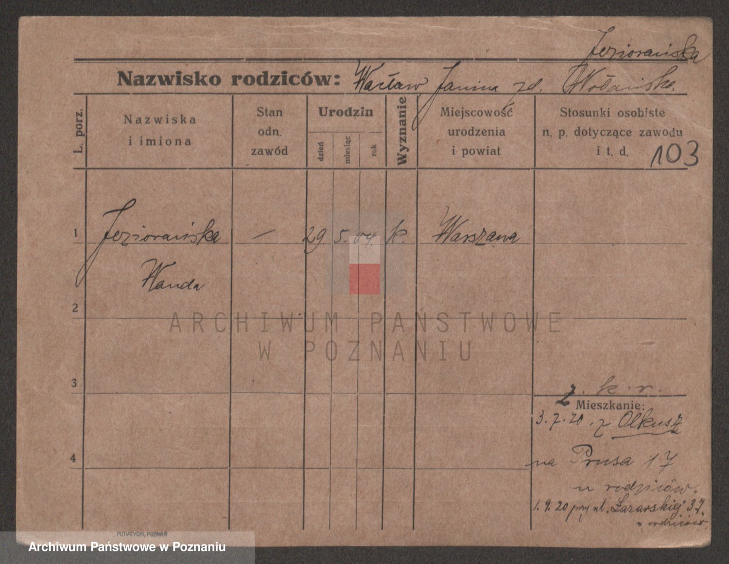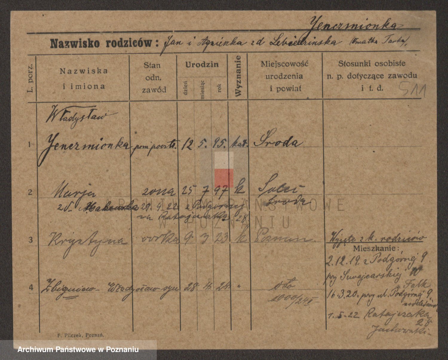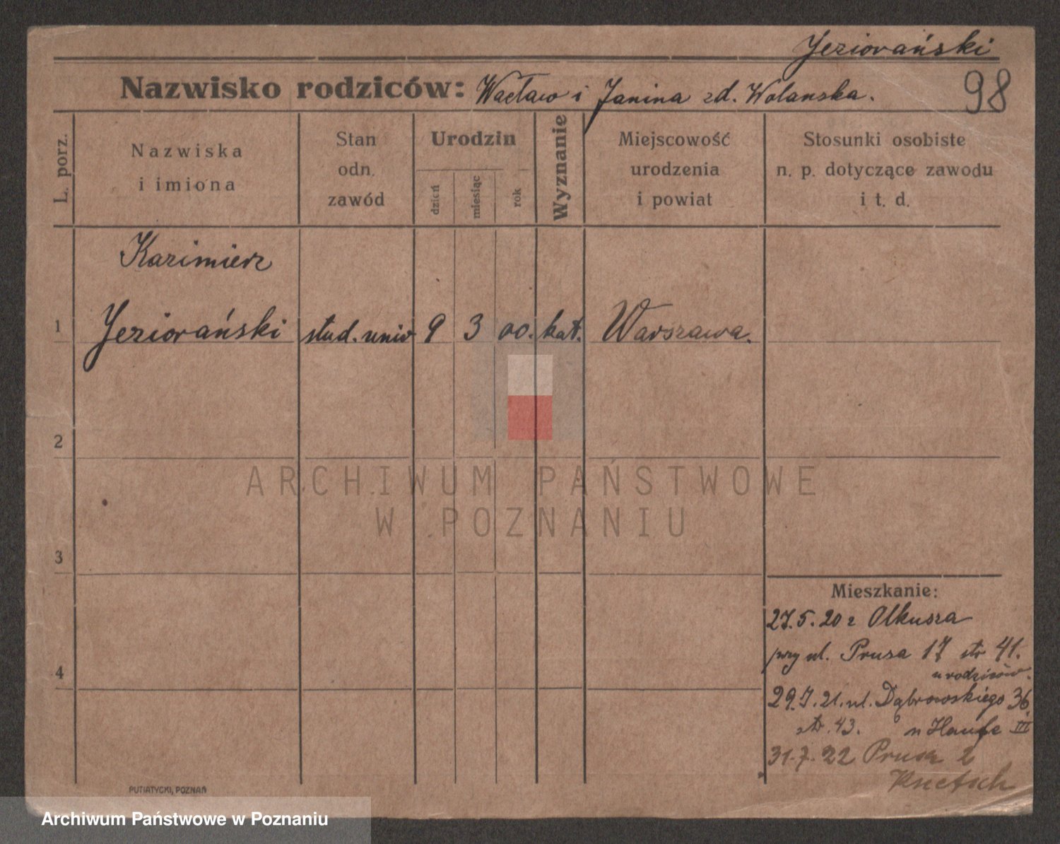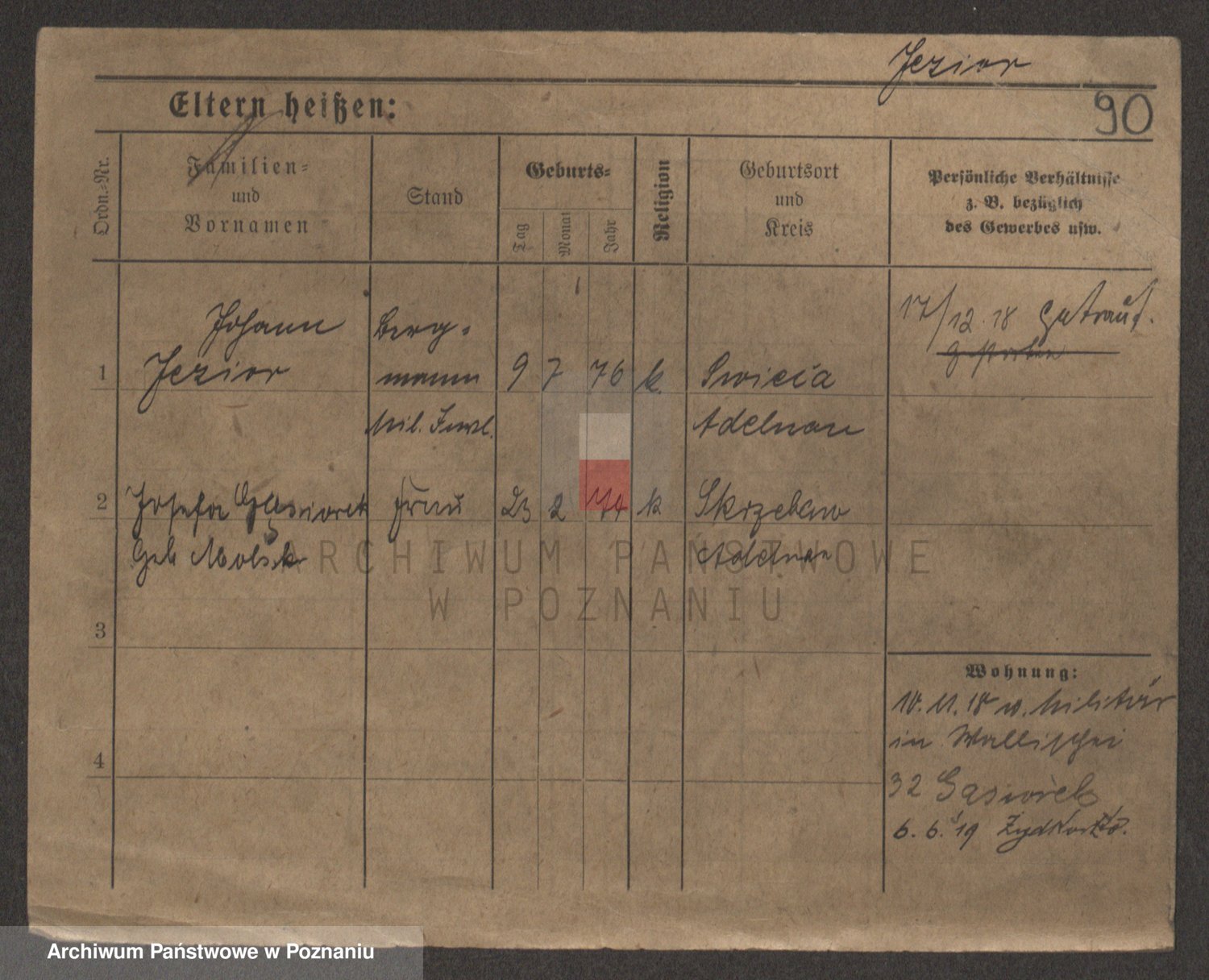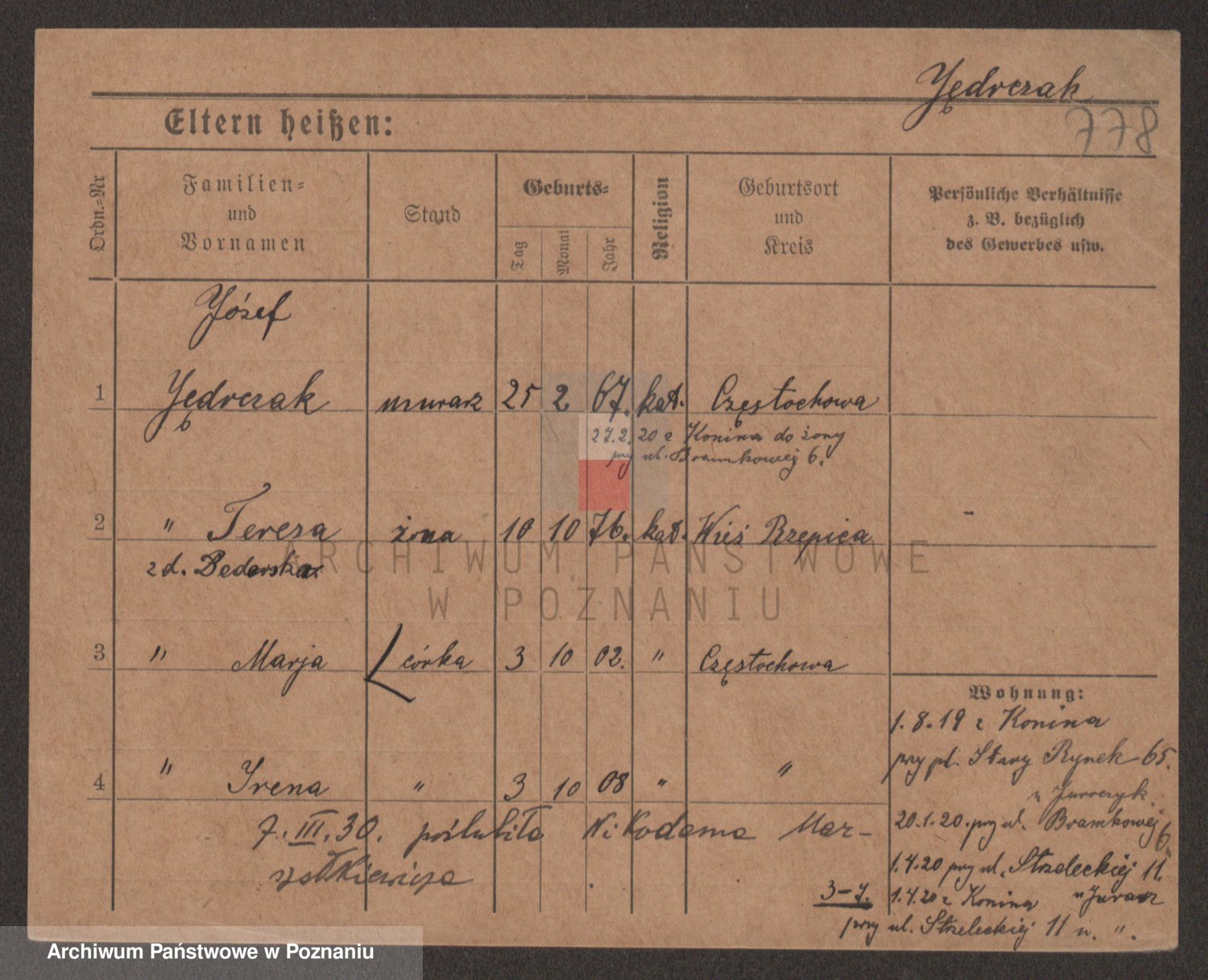 Podgląd karty osobowej dostępny jest po kliknięciu na nazwisko lub ikonkę karty. Można dokonywać powiększenia (ikony na górze) lub przechodzić między kolejnymi skanami (strzałki po bokach).
