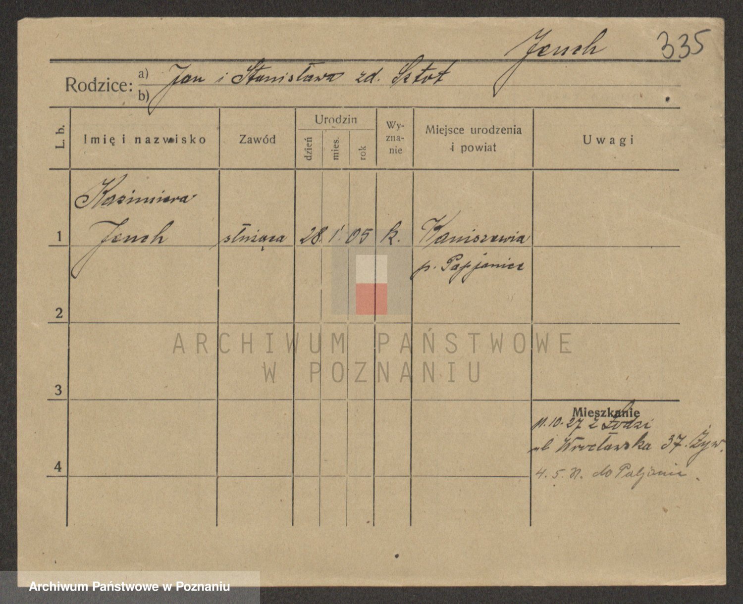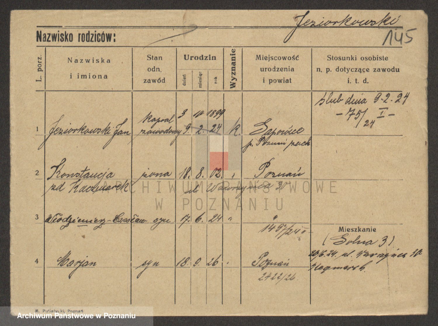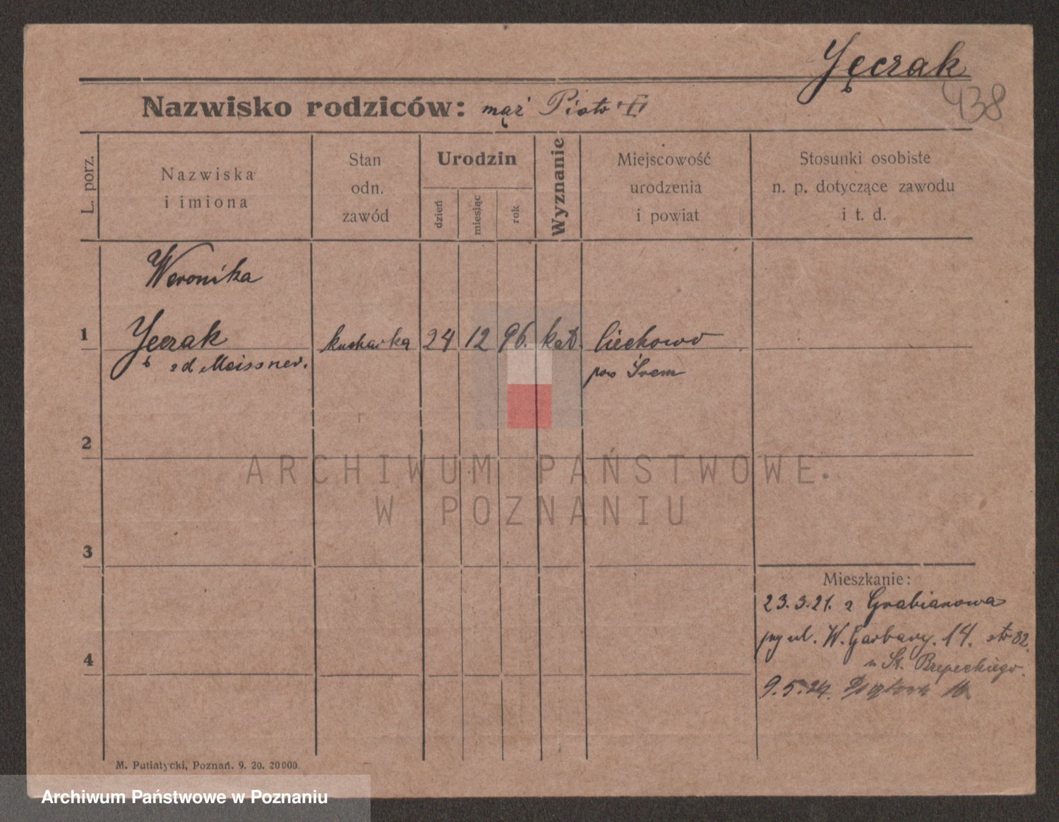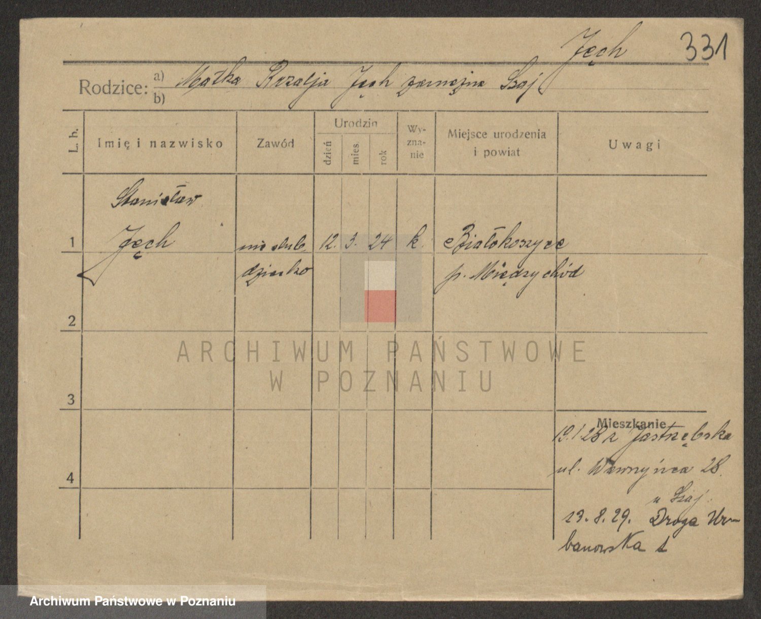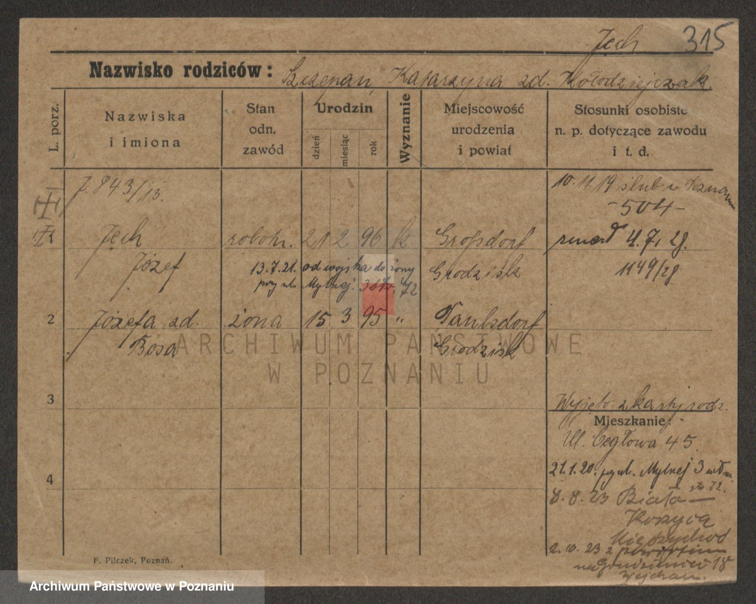 Podgląd karty osobowej dostępny jest po kliknięciu na nazwisko lub ikonkę karty. Można dokonywać powiększenia (ikony na górze) lub przechodzić między kolejnymi skanami (strzałki po bokach).