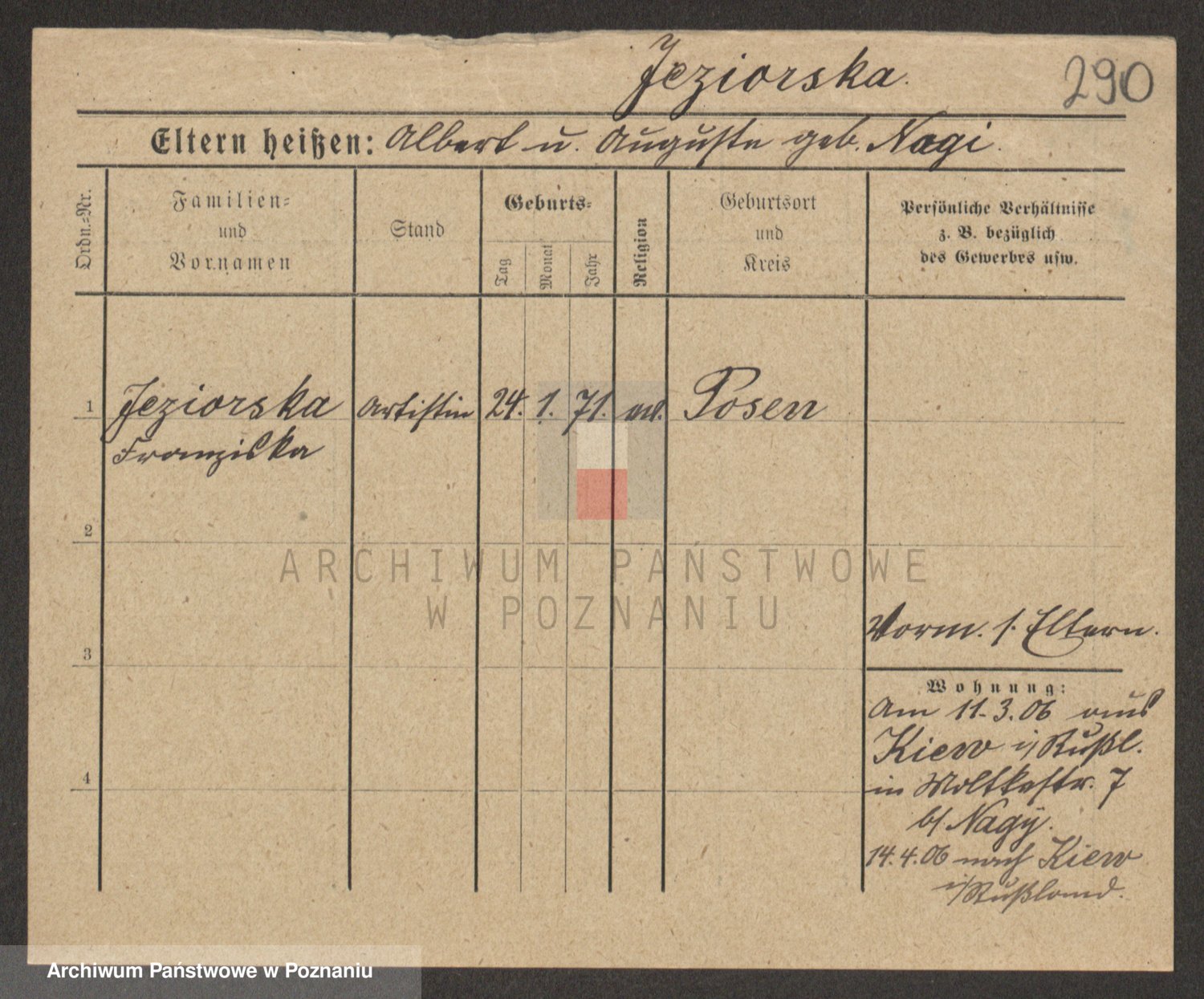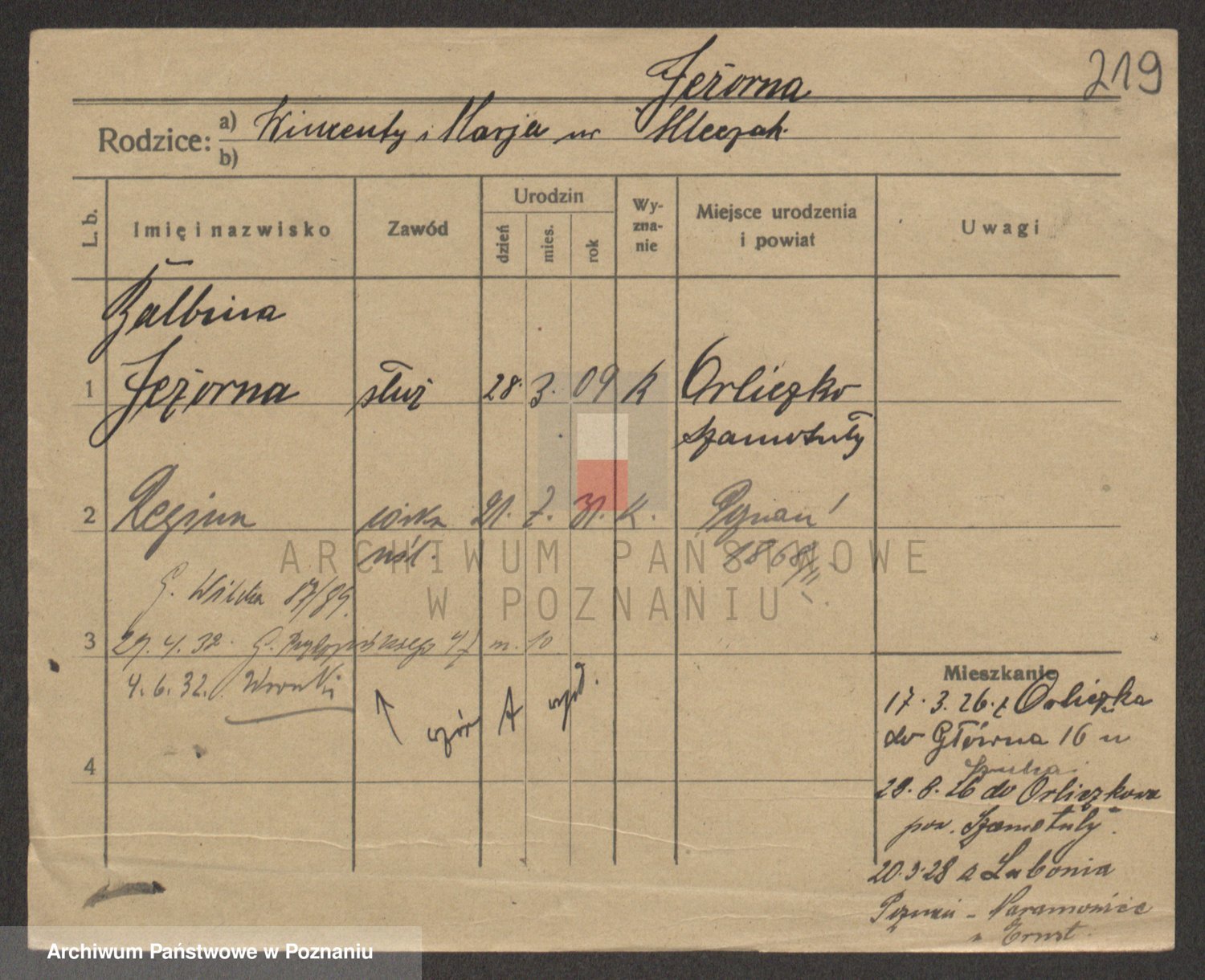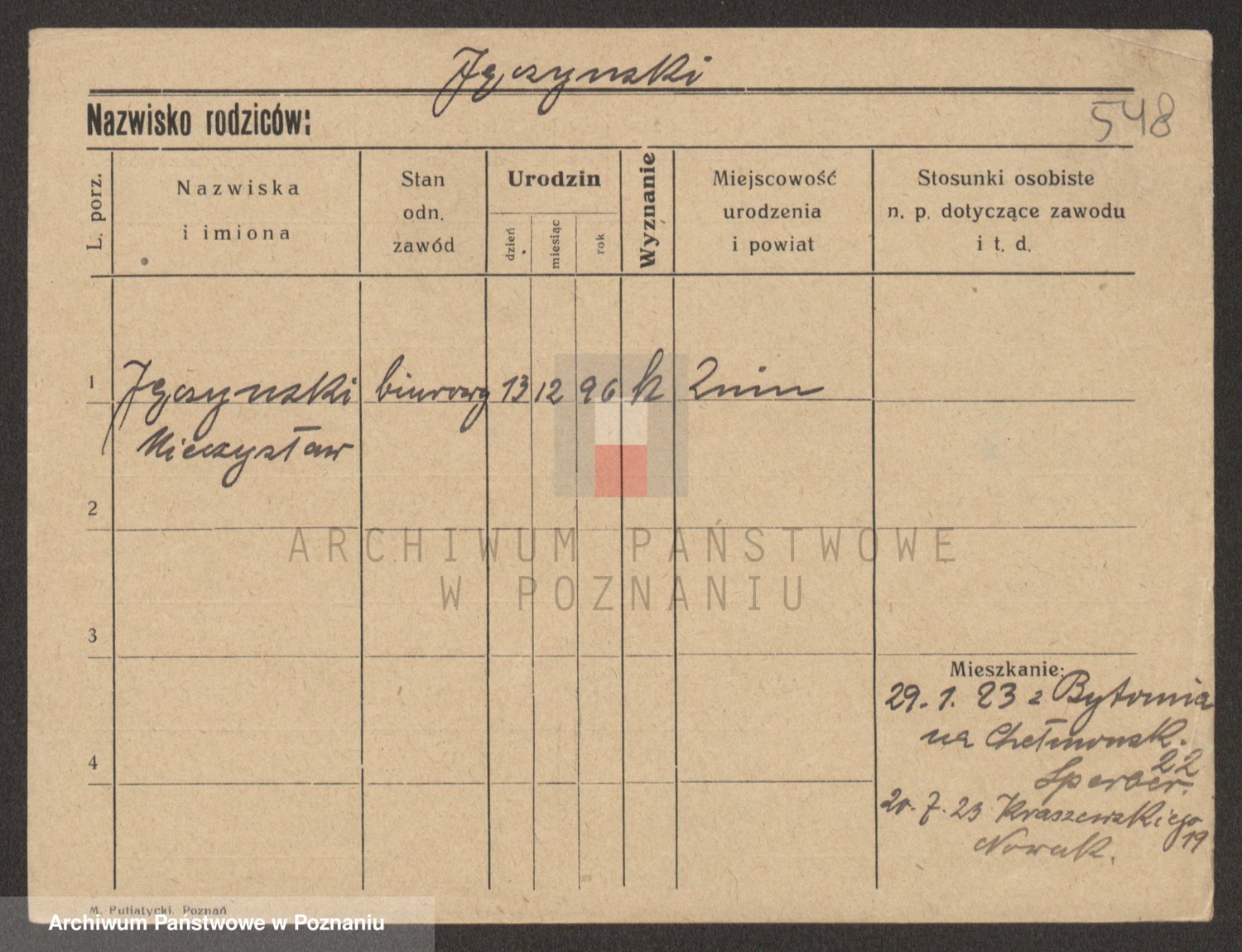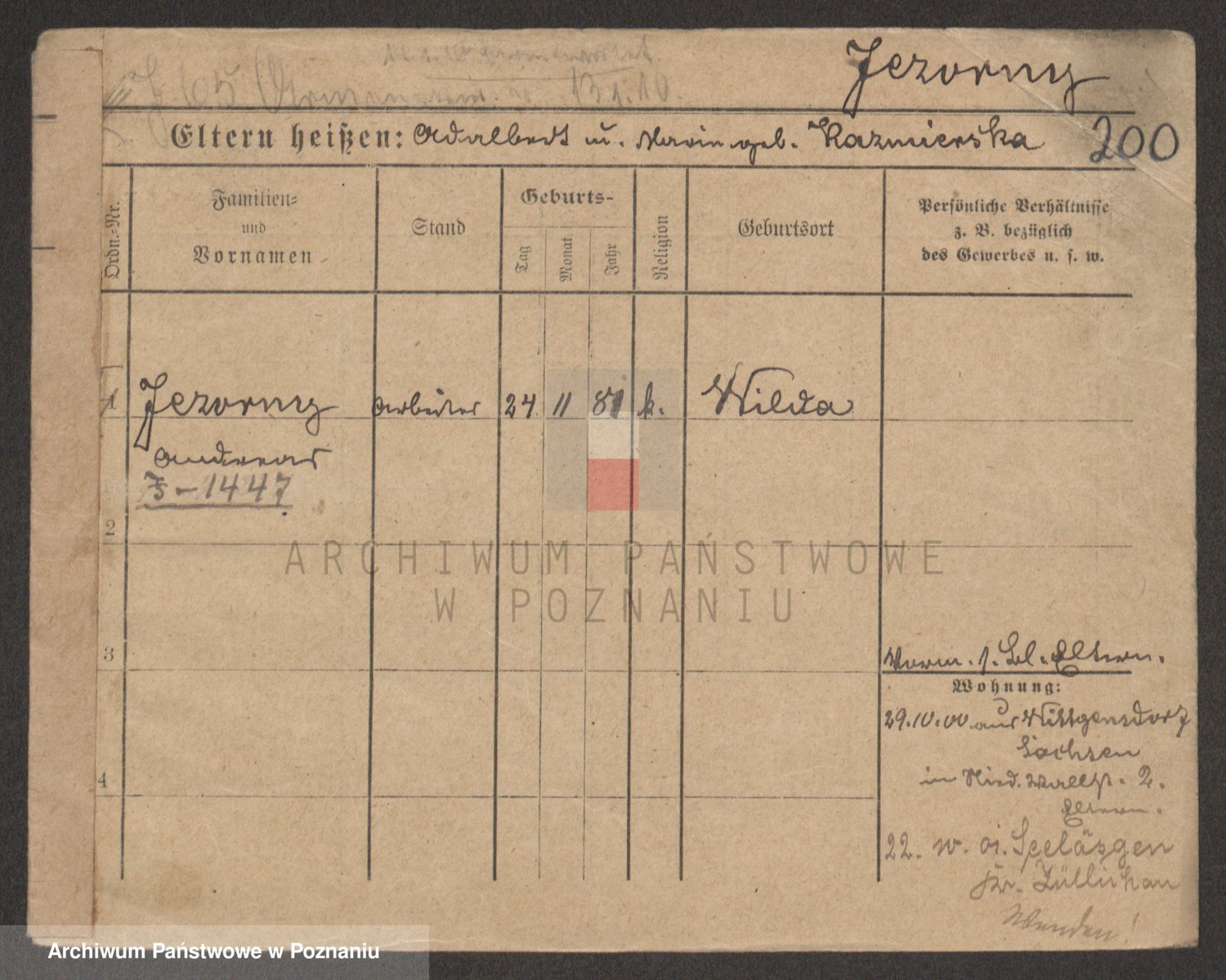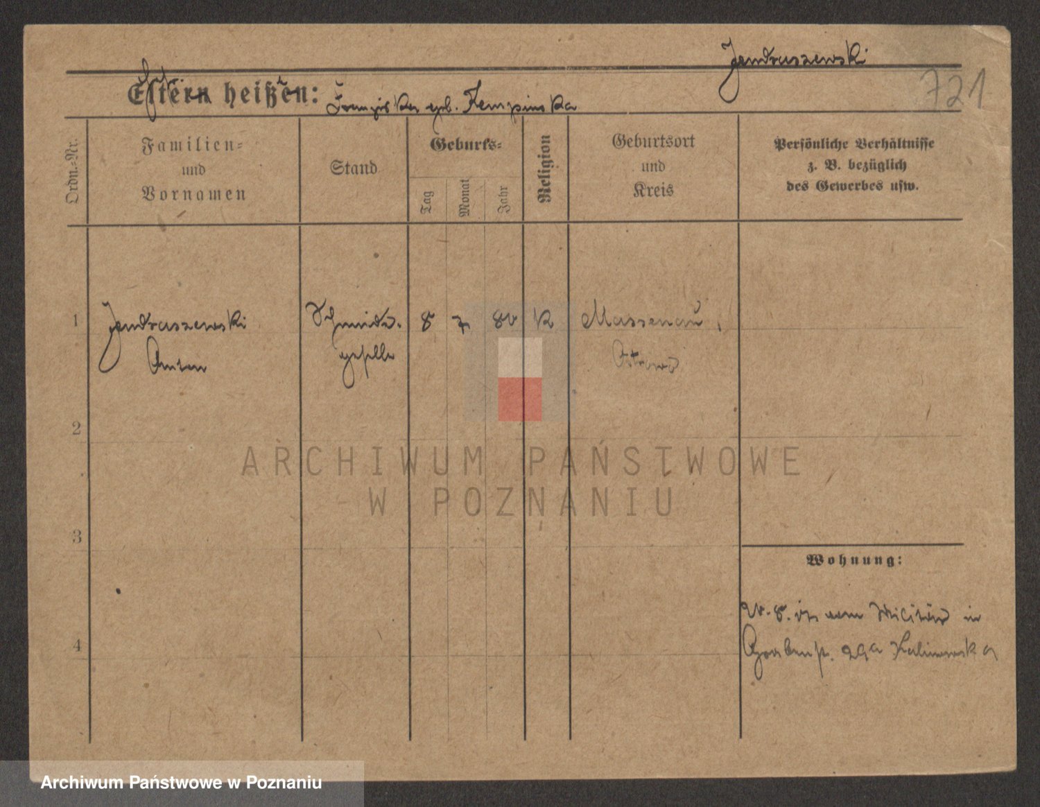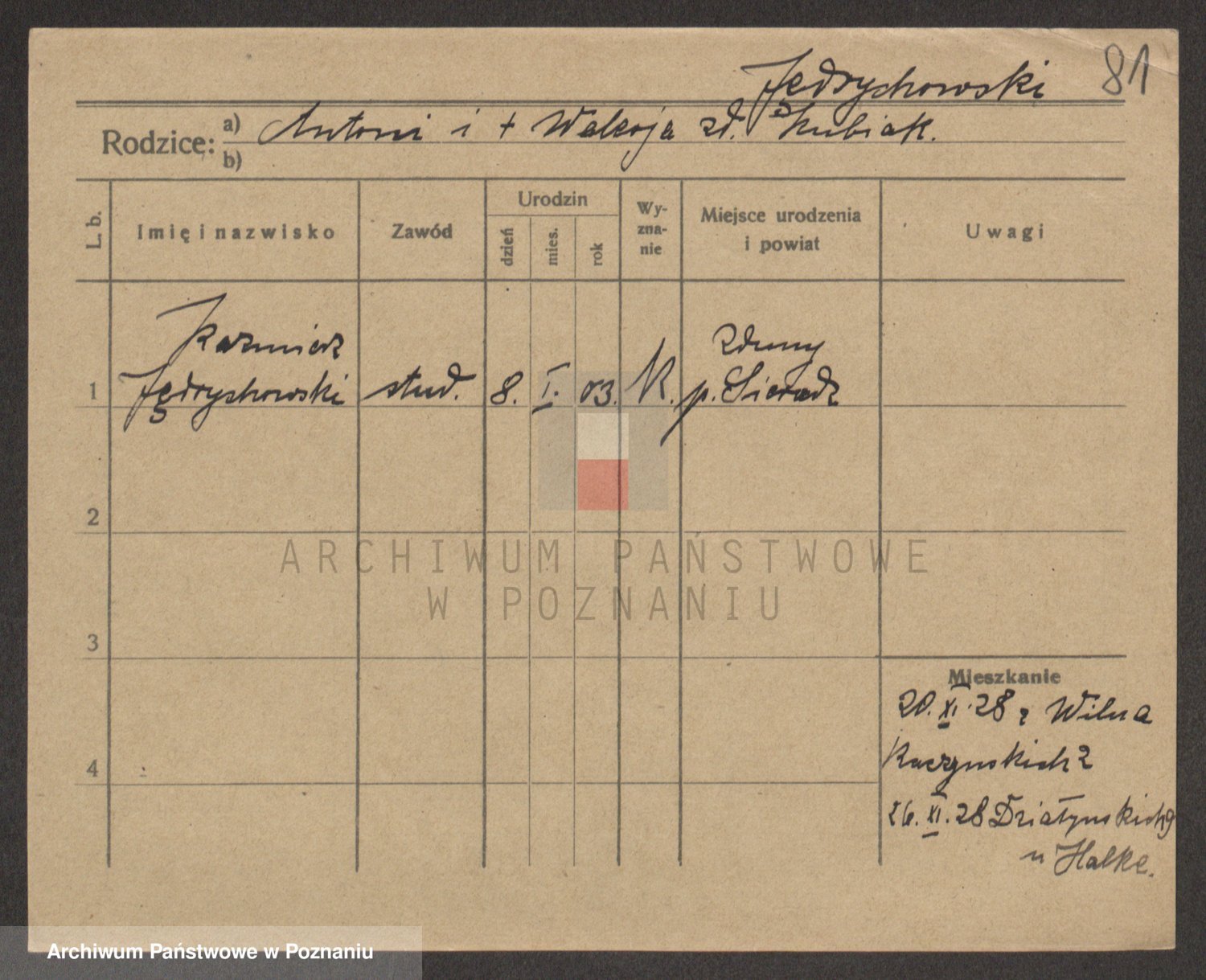 Podgląd karty osobowej dostępny jest po kliknięciu na nazwisko lub ikonkę karty. Można dokonywać powiększenia (ikony na górze) lub przechodzić między kolejnymi skanami (strzałki po bokach).