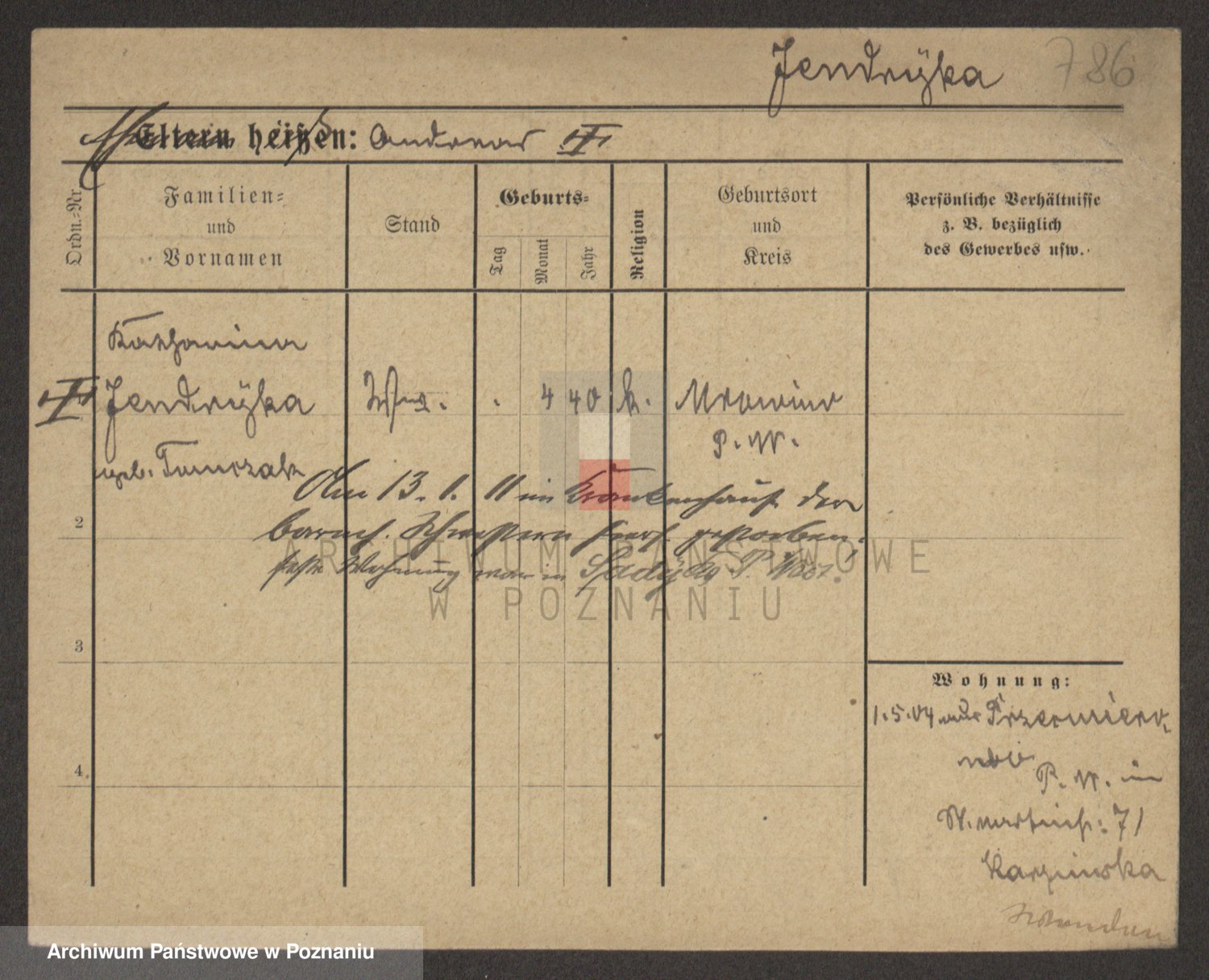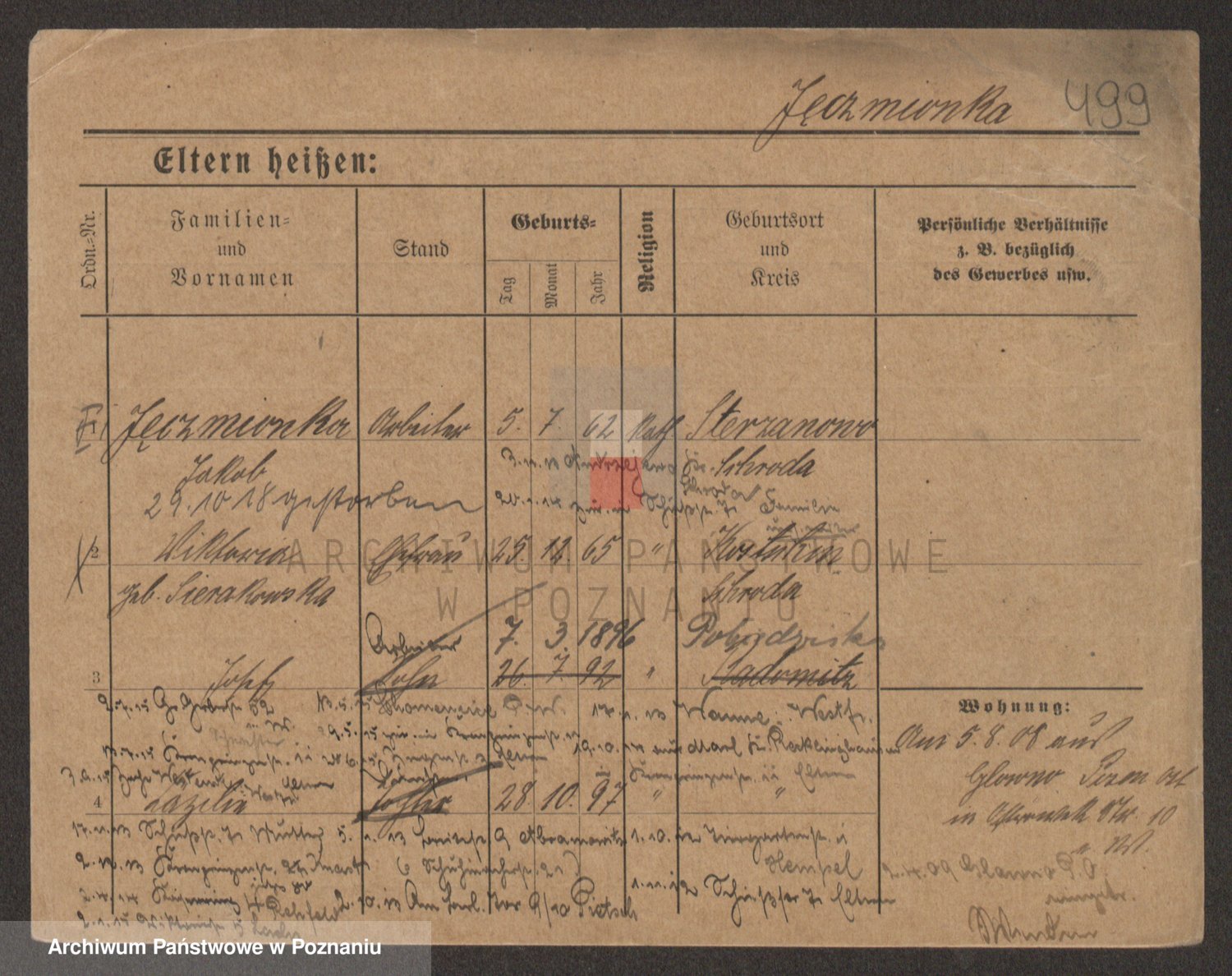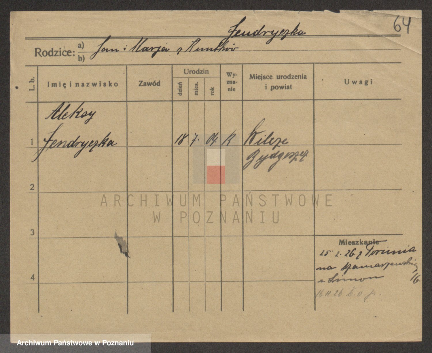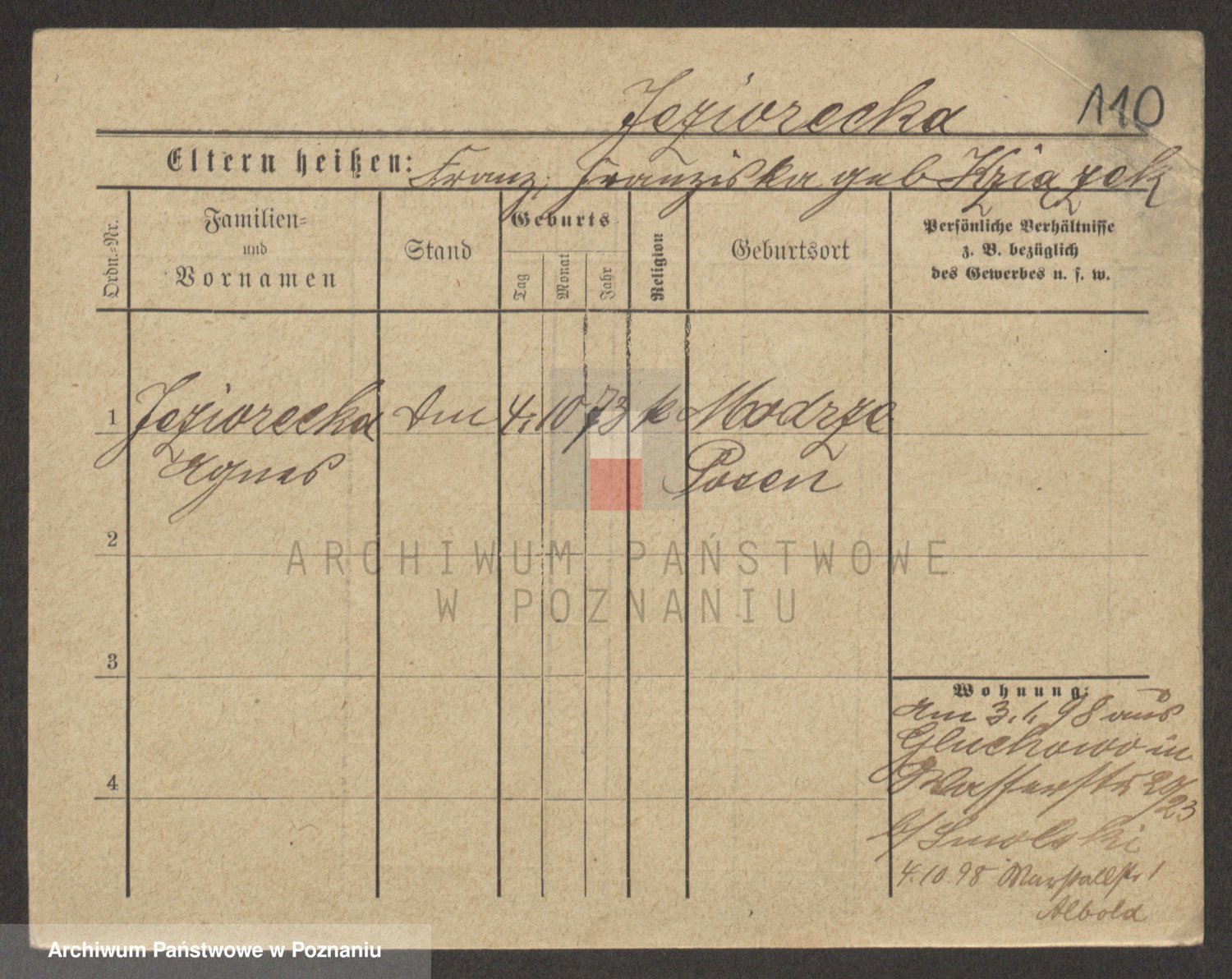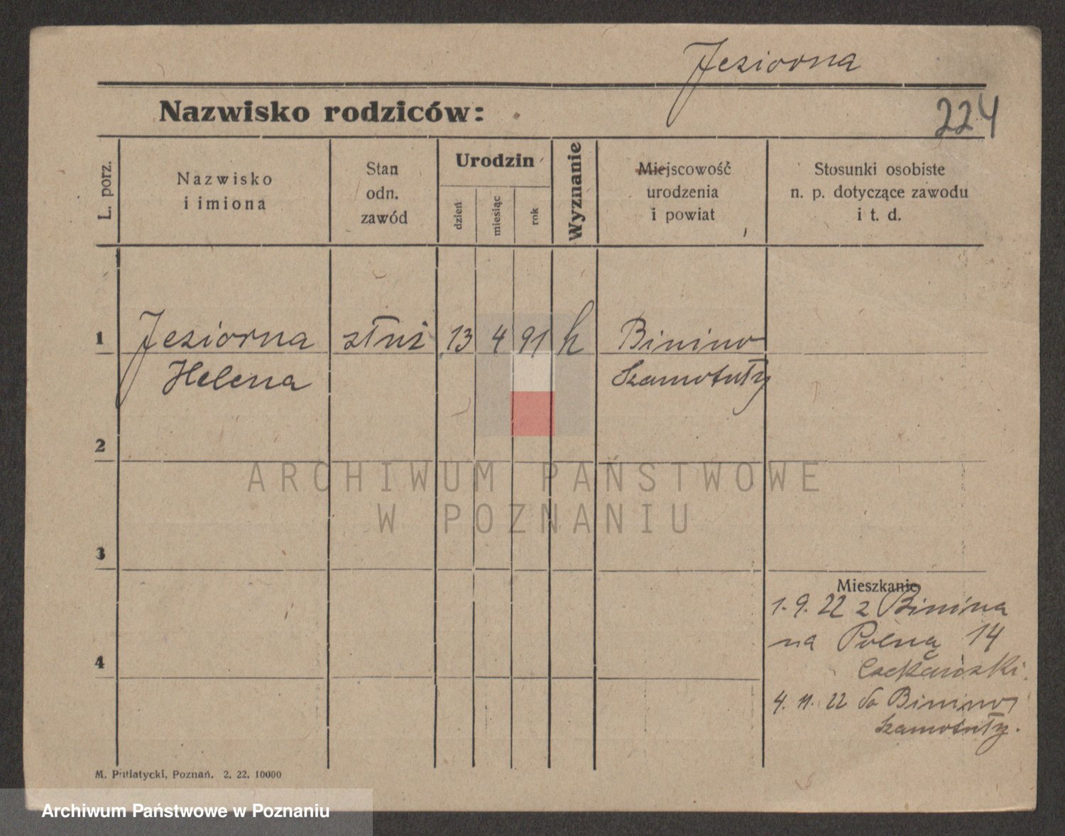Podgląd karty osobowej dostępny jest po kliknięciu na nazwisko lub ikonkę karty. Można dokonywać powiększenia (ikony na górze) lub przechodzić między kolejnymi skanami (strzałki po bokach).