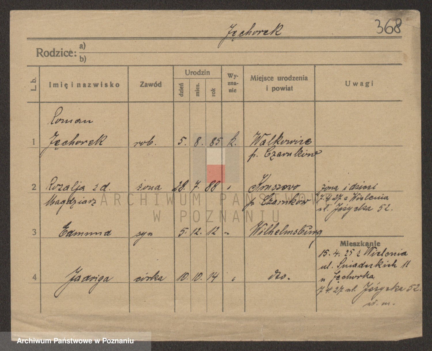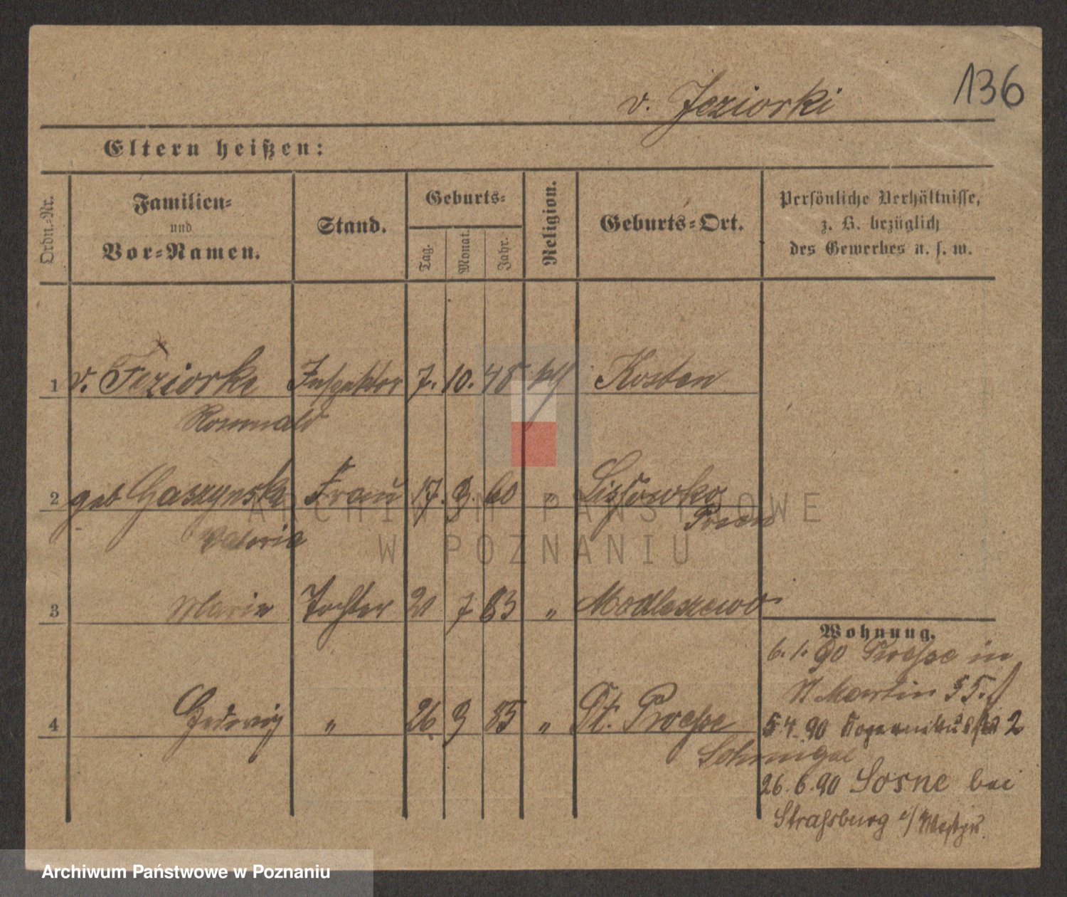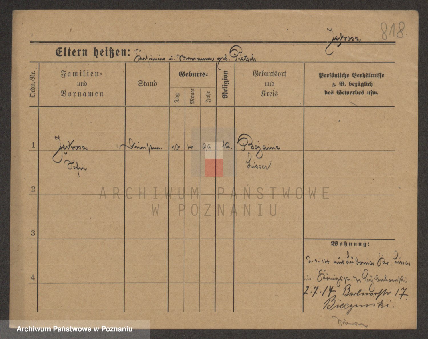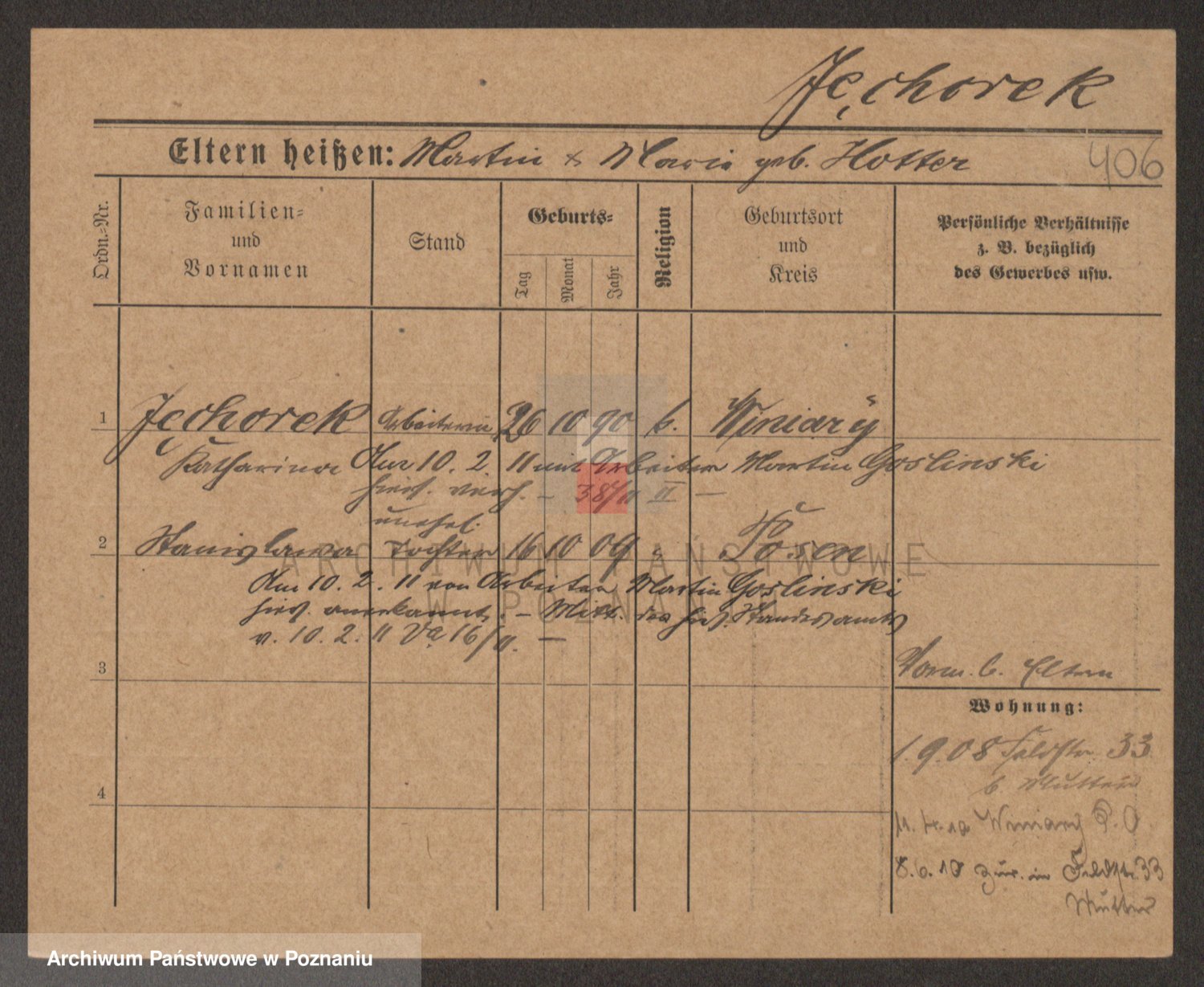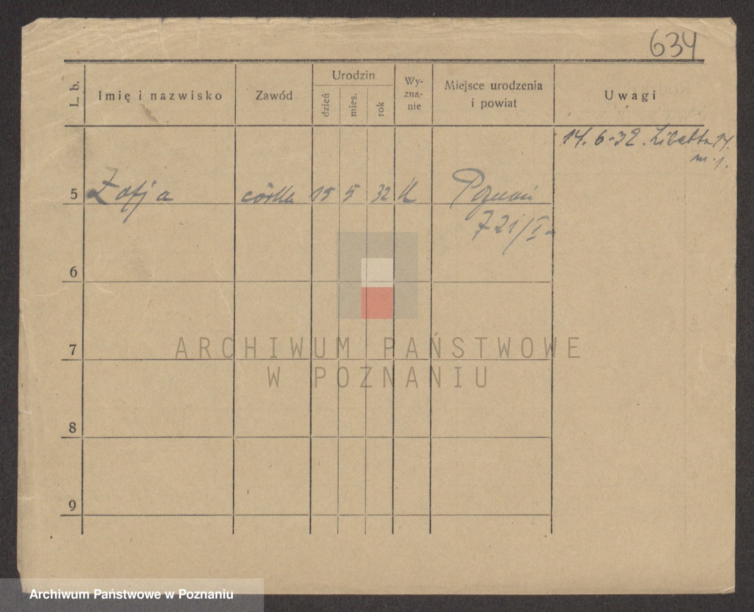 Podgląd karty osobowej dostępny jest po kliknięciu na nazwisko lub ikonkę karty. Można dokonywać powiększenia (ikony na górze) lub przechodzić między kolejnymi skanami (strzałki po bokach).