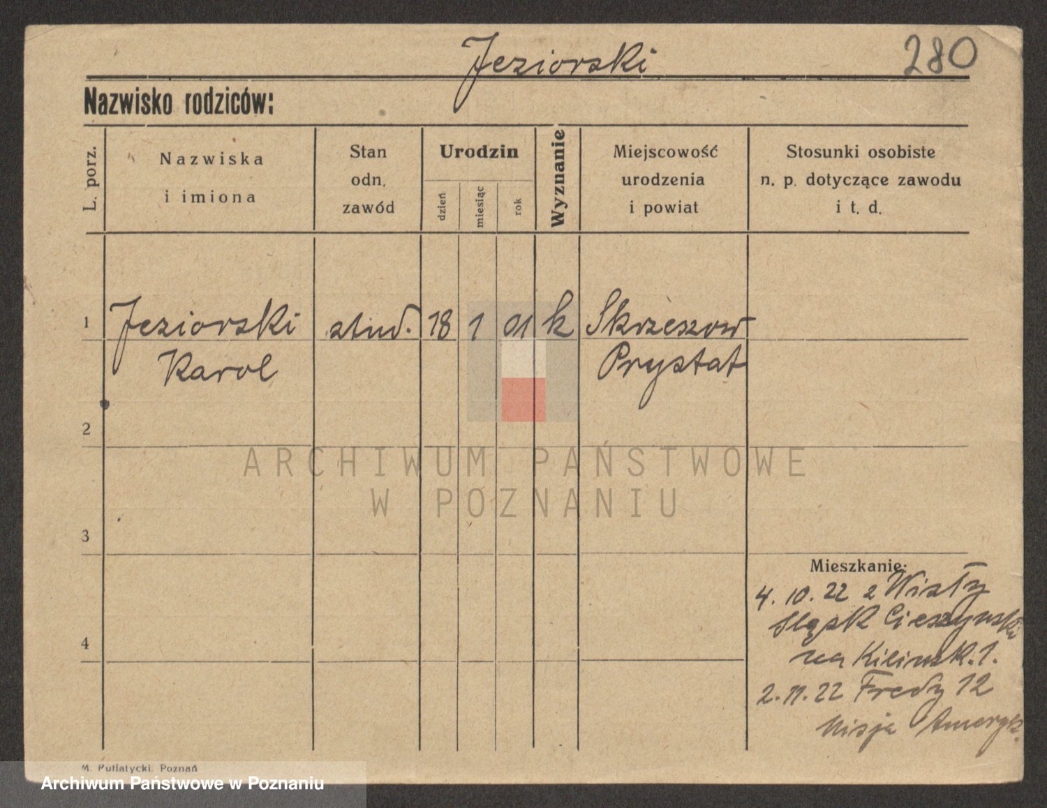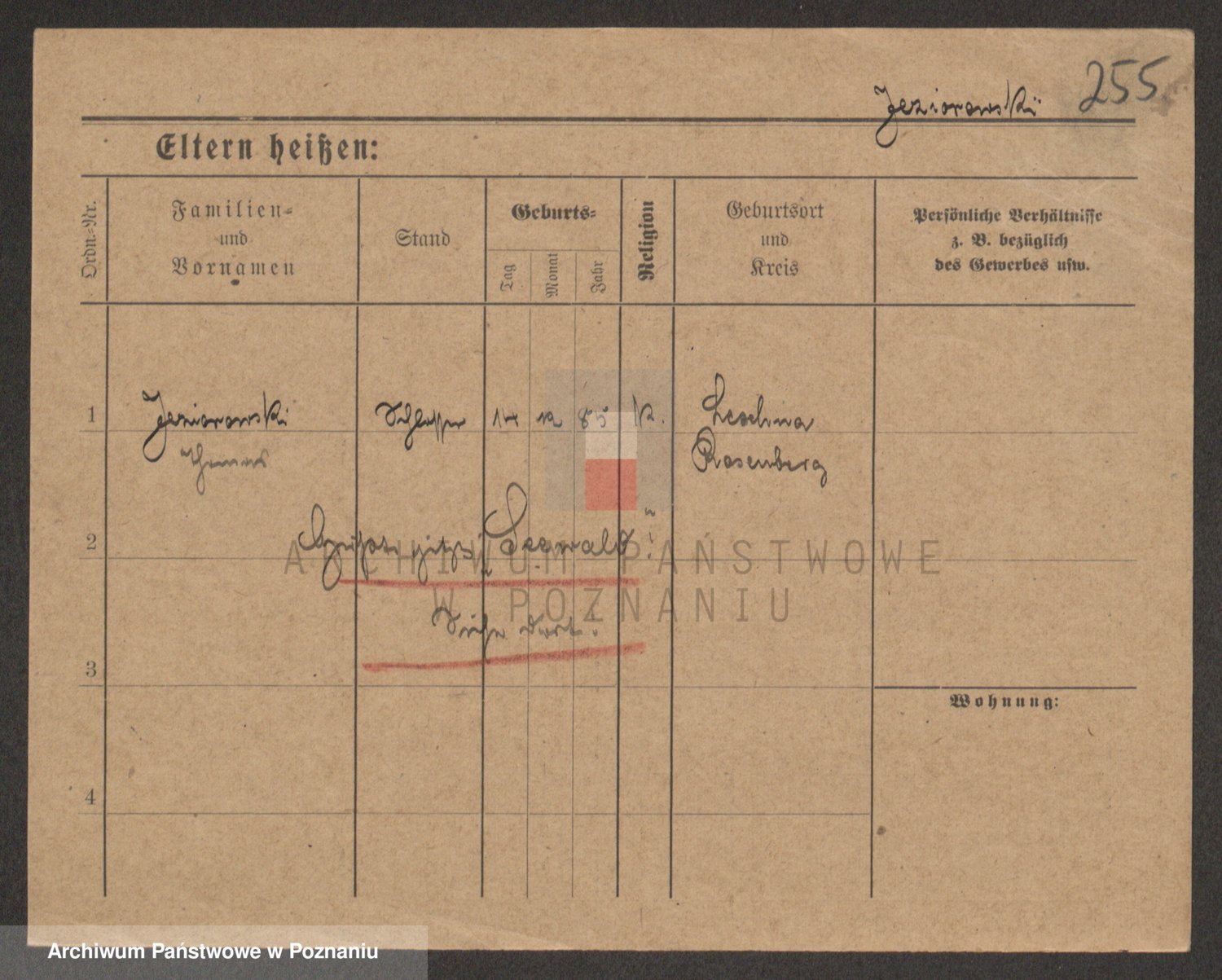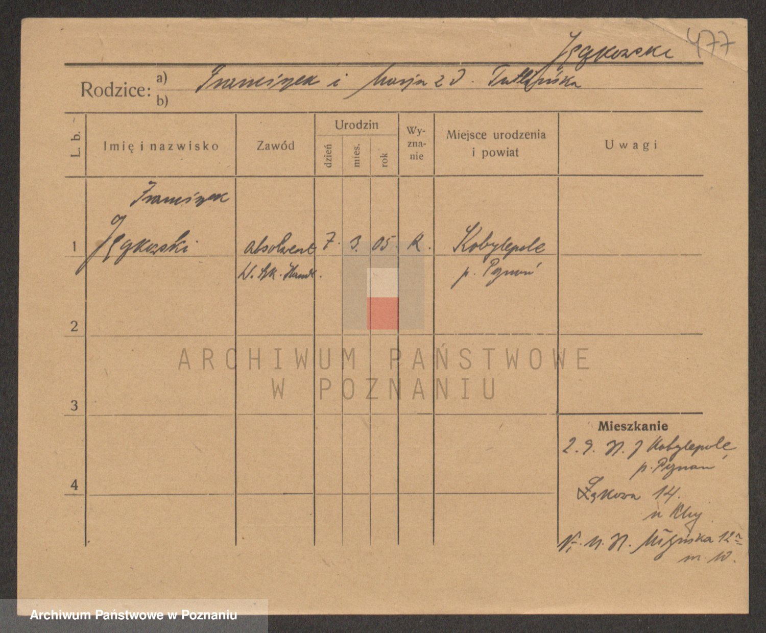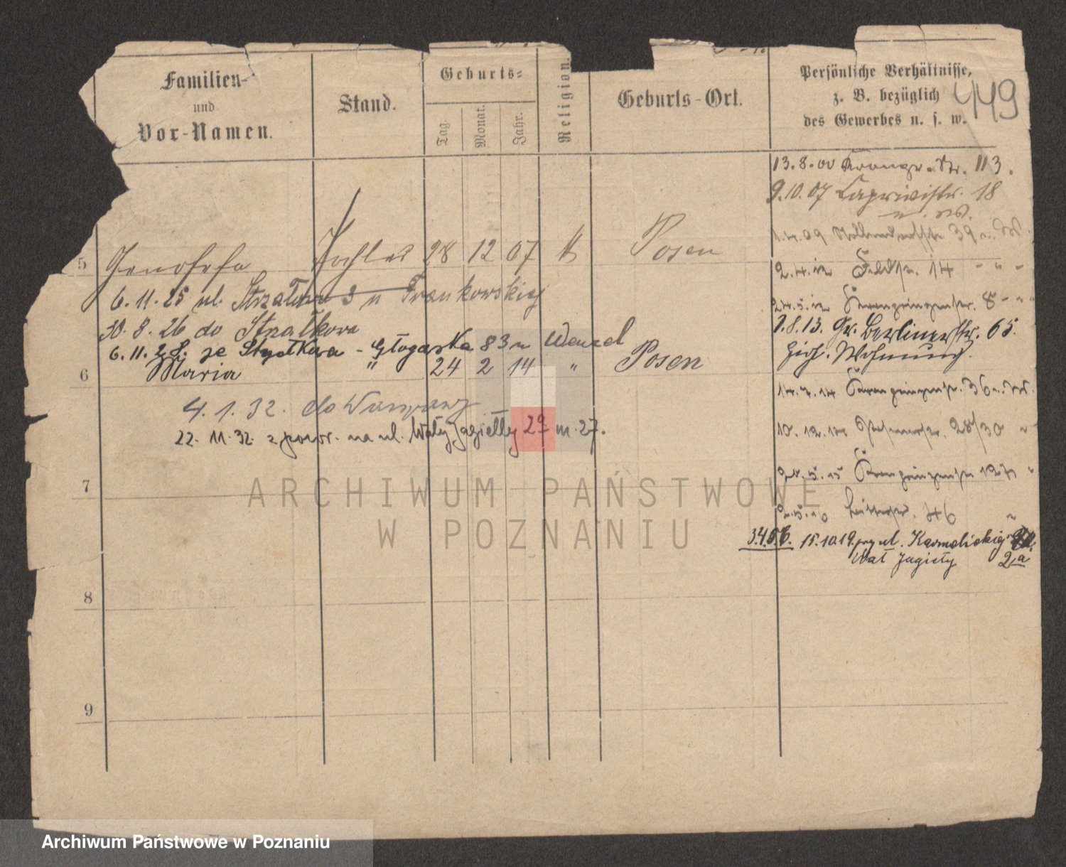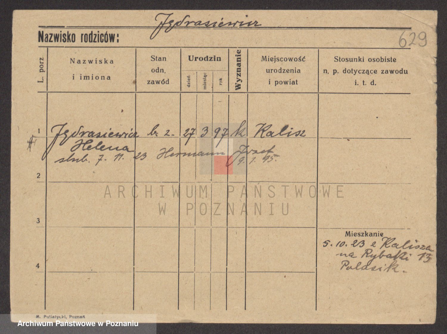 Podgląd karty osobowej dostępny jest po kliknięciu na nazwisko lub ikonkę karty. Można dokonywać powiększenia (ikony na górze) lub przechodzić między kolejnymi skanami (strzałki po bokach).