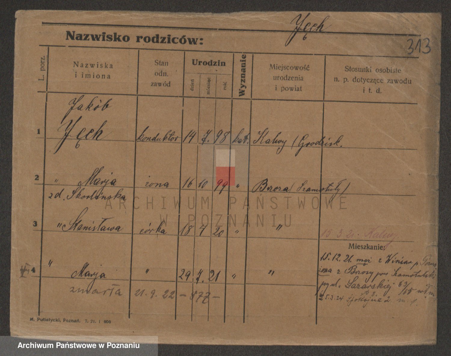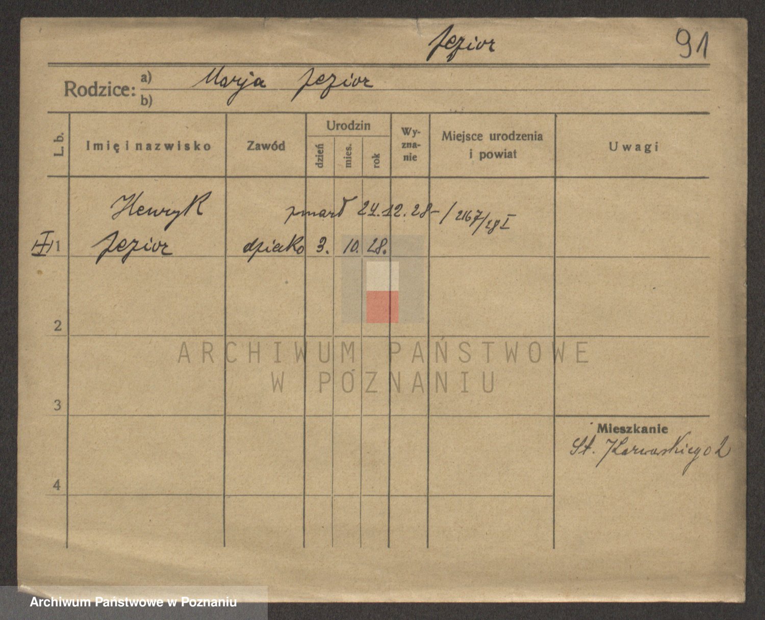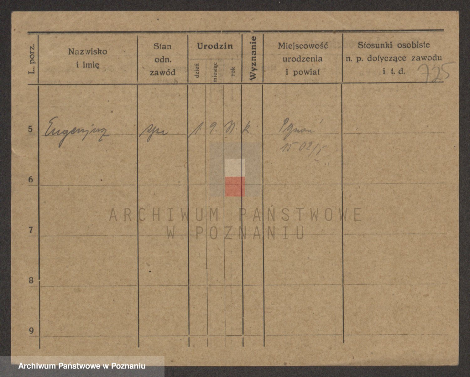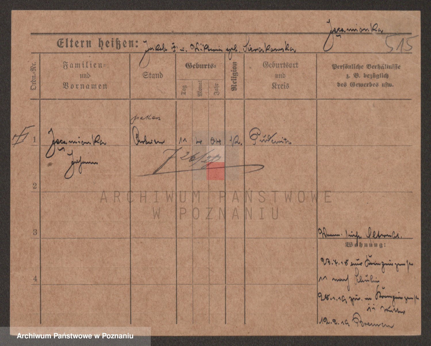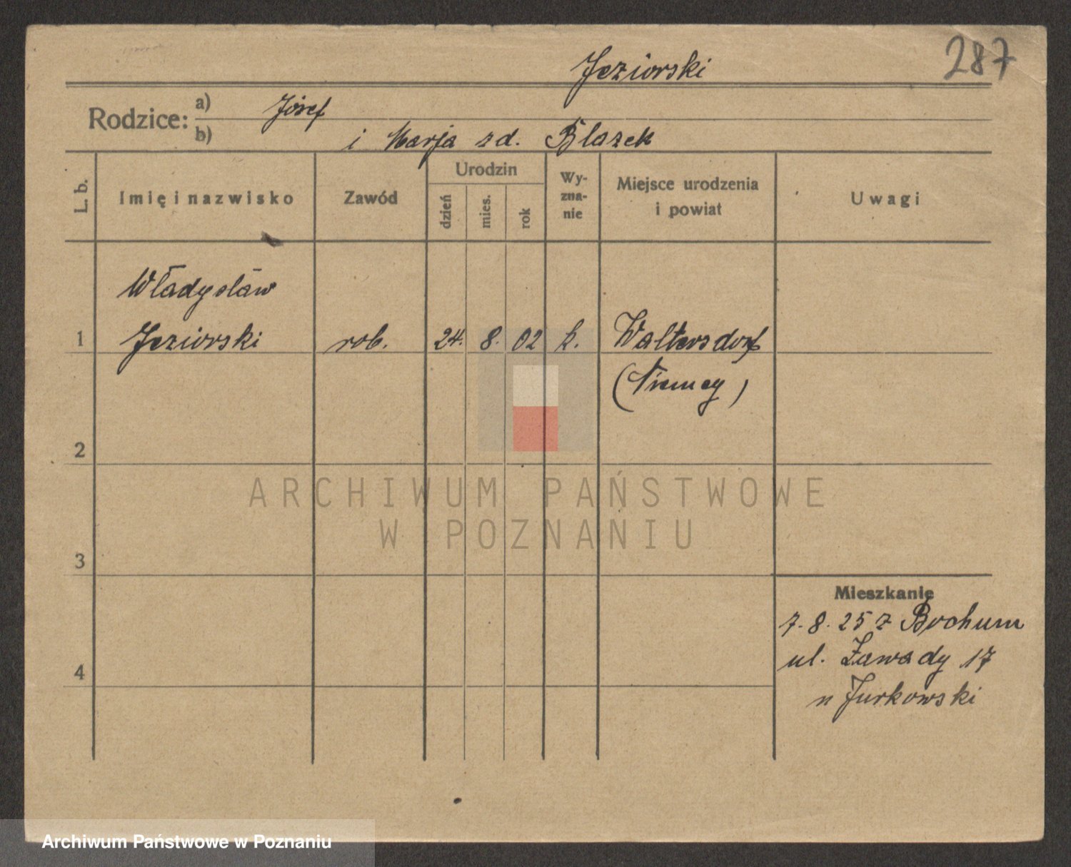 Podgląd karty osobowej dostępny jest po kliknięciu na nazwisko lub ikonkę karty. Można dokonywać powiększenia (ikony na górze) lub przechodzić między kolejnymi skanami (strzałki po bokach).