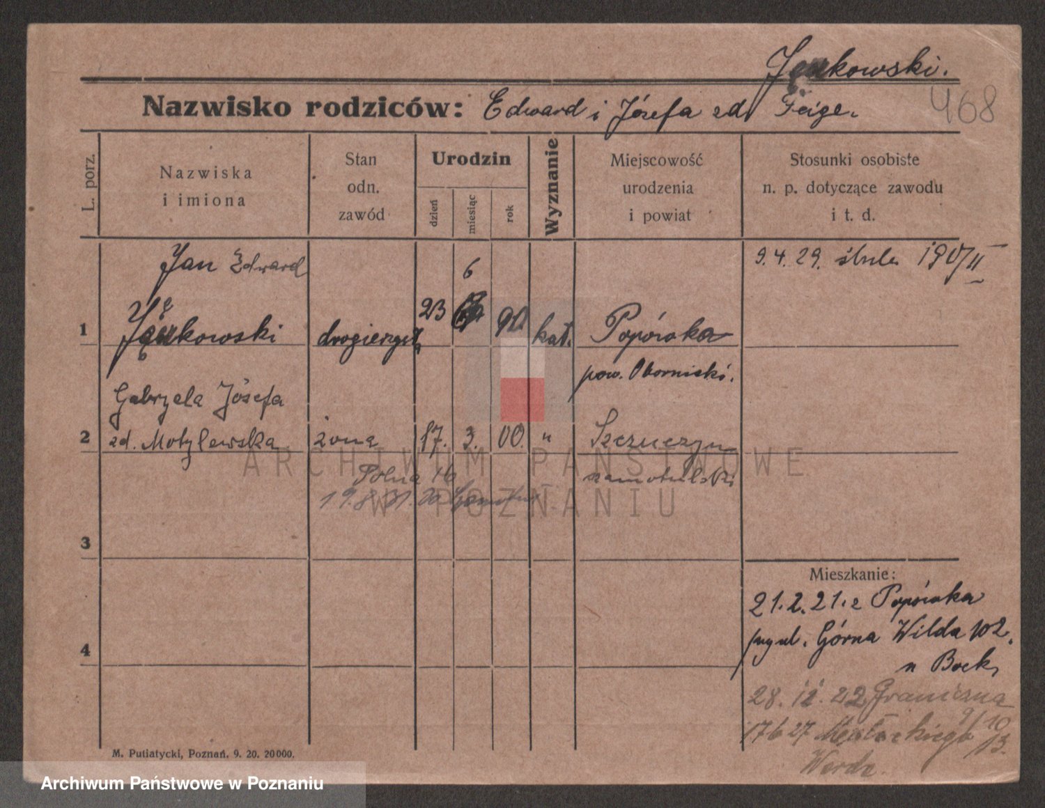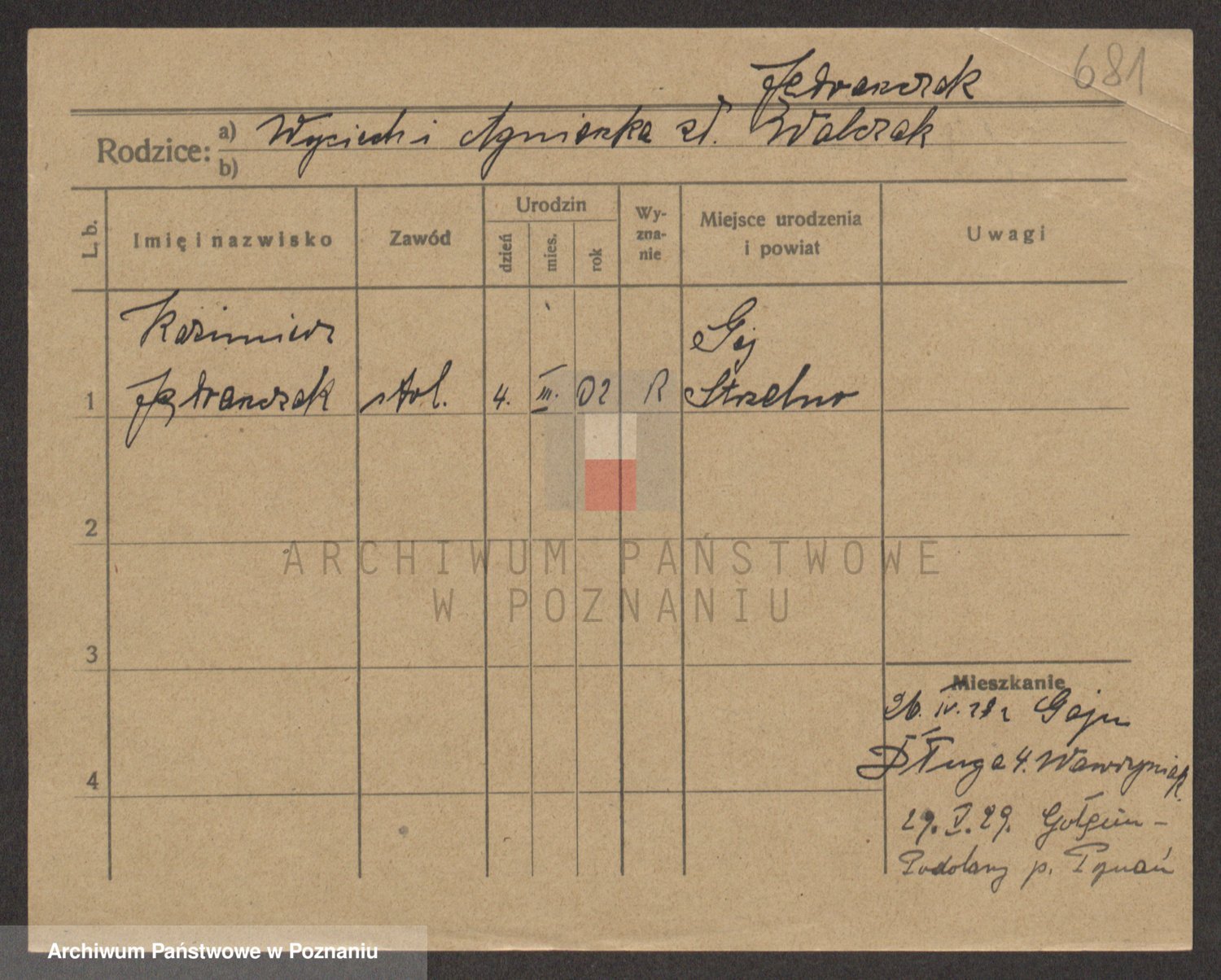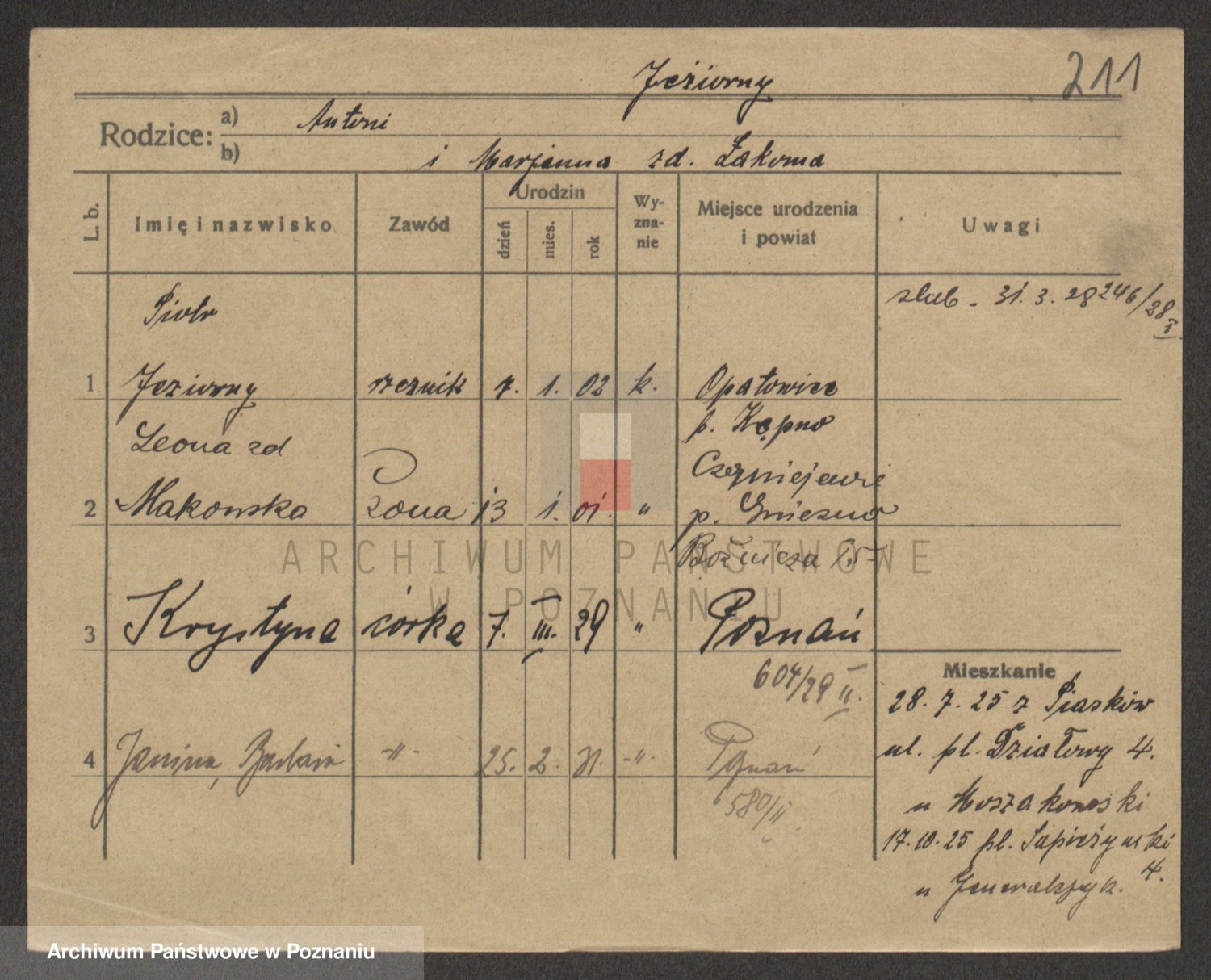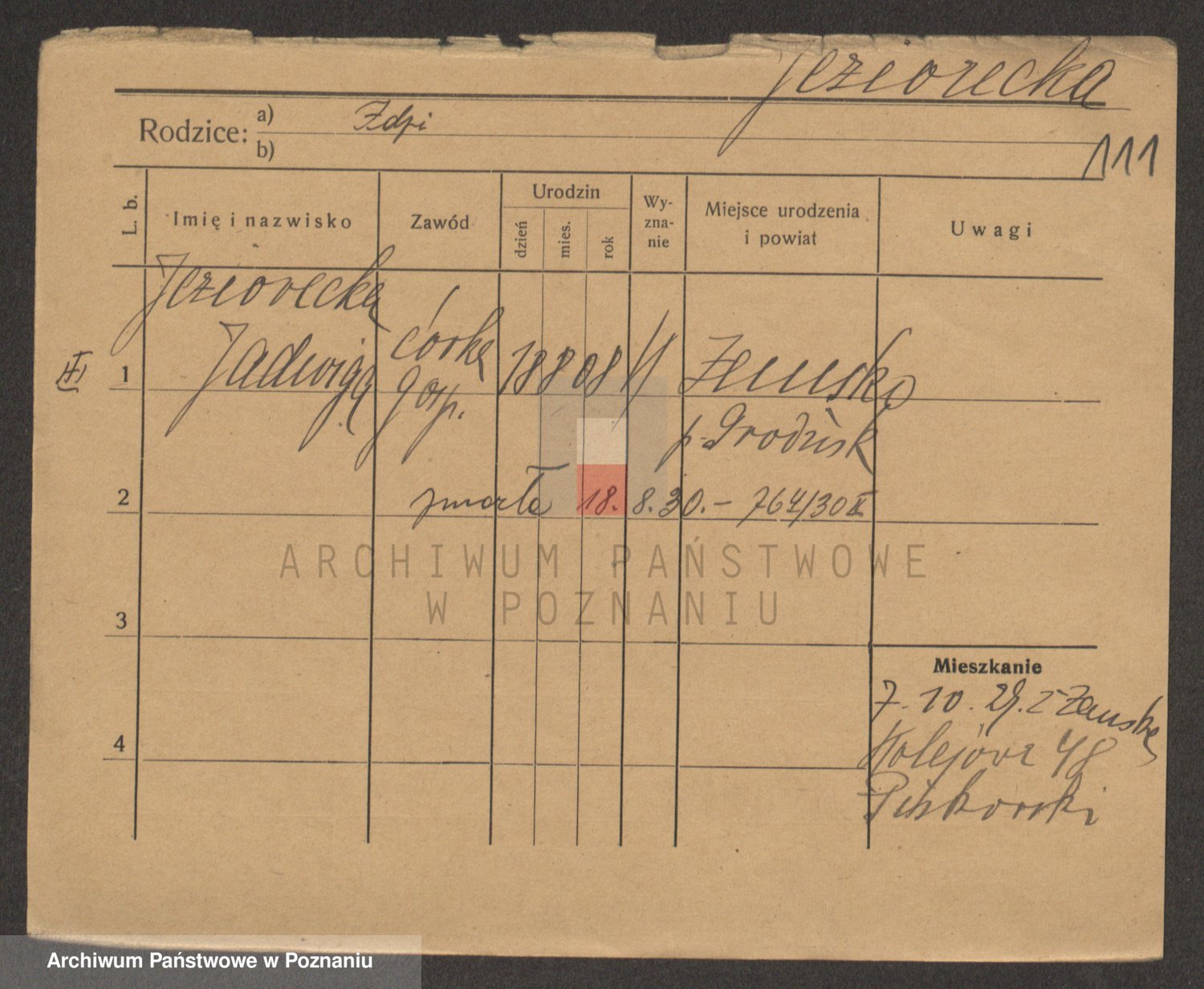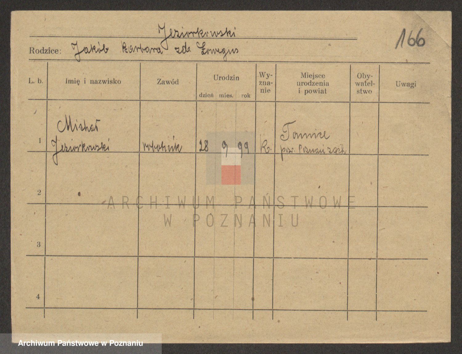 Podgląd karty osobowej dostępny jest po kliknięciu na nazwisko lub ikonkę karty. Można dokonywać powiększenia (ikony na górze) lub przechodzić między kolejnymi skanami (strzałki po bokach).