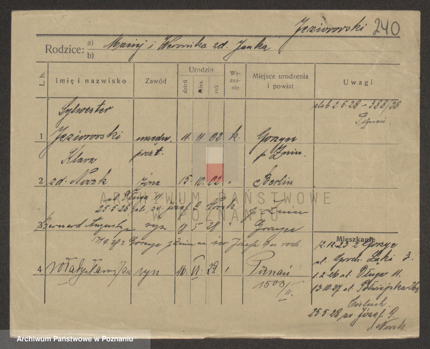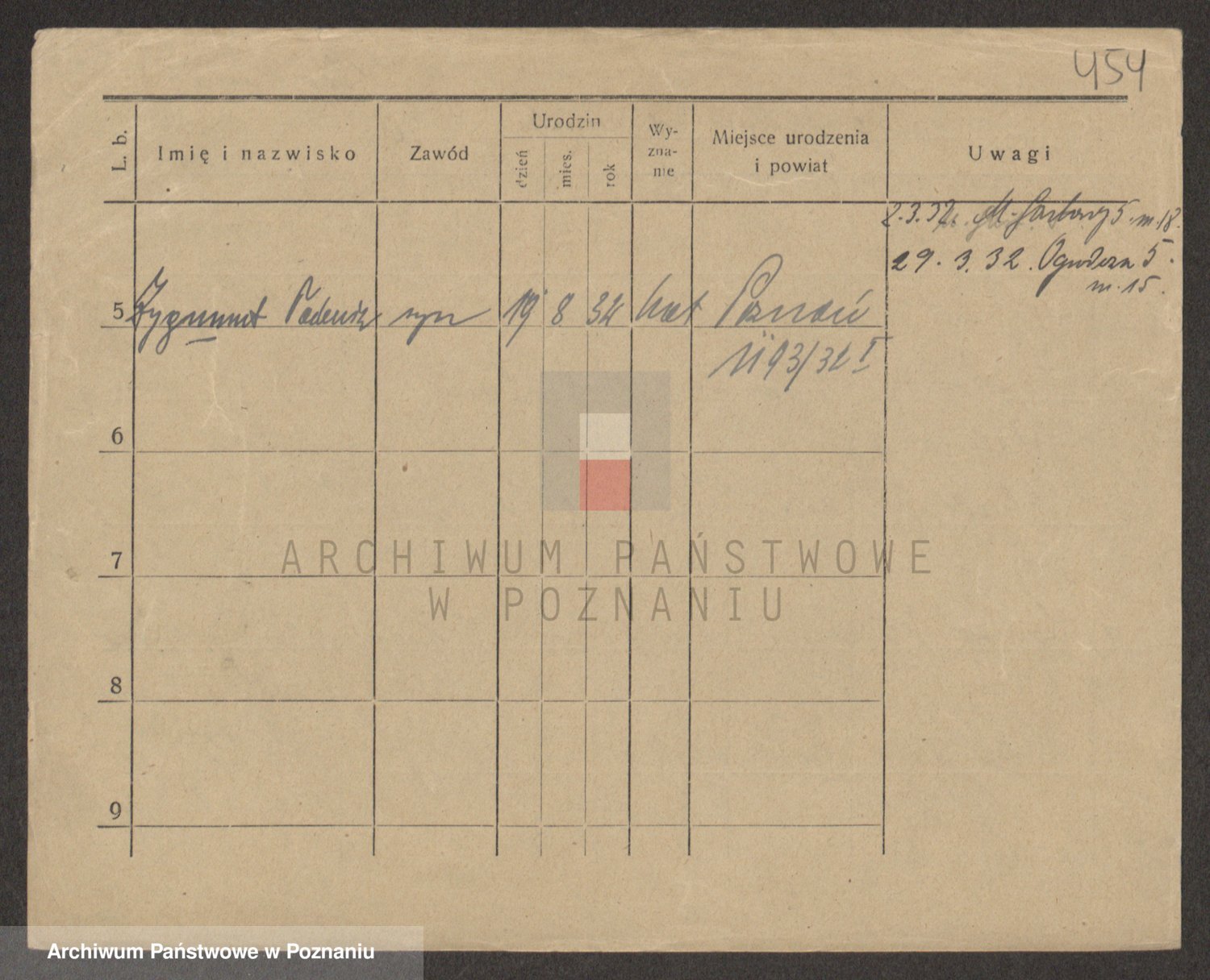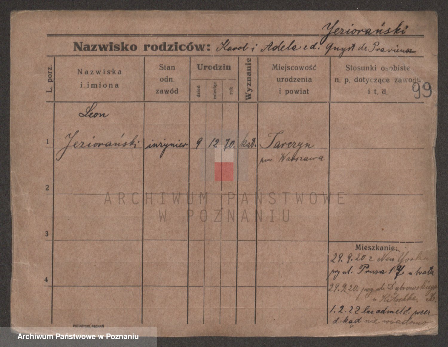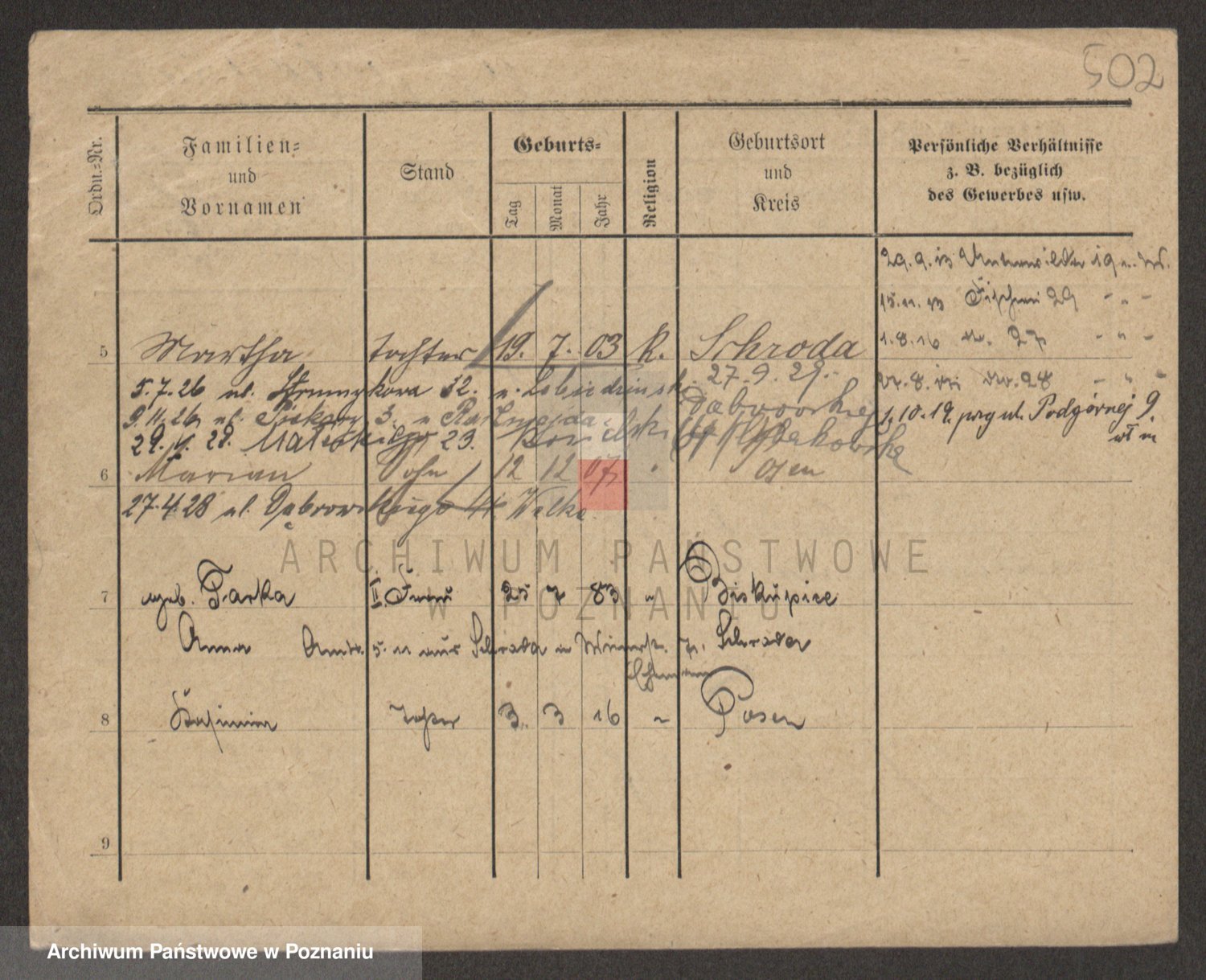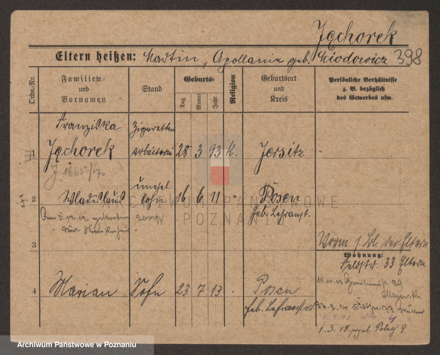 Podgląd karty osobowej dostępny jest po kliknięciu na nazwisko lub ikonkę karty. Można dokonywać powiększenia (ikony na górze) lub przechodzić między kolejnymi skanami (strzałki po bokach).
