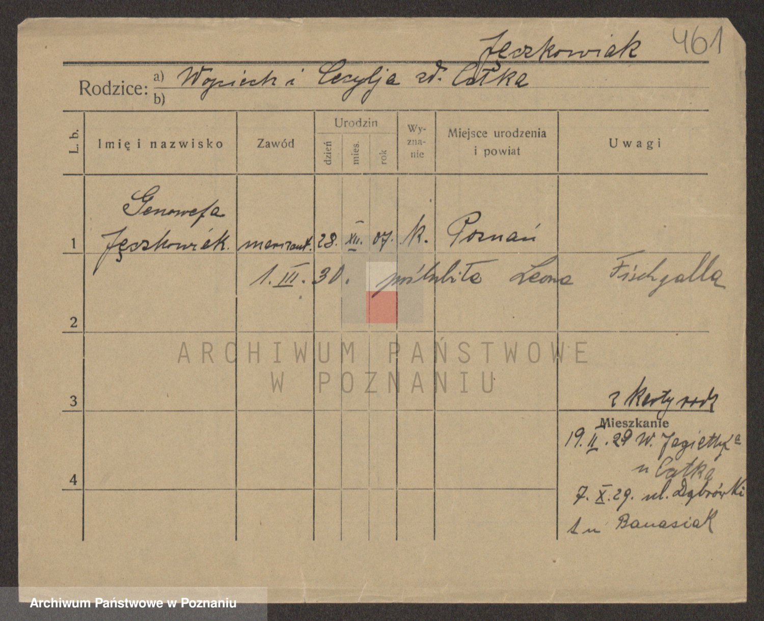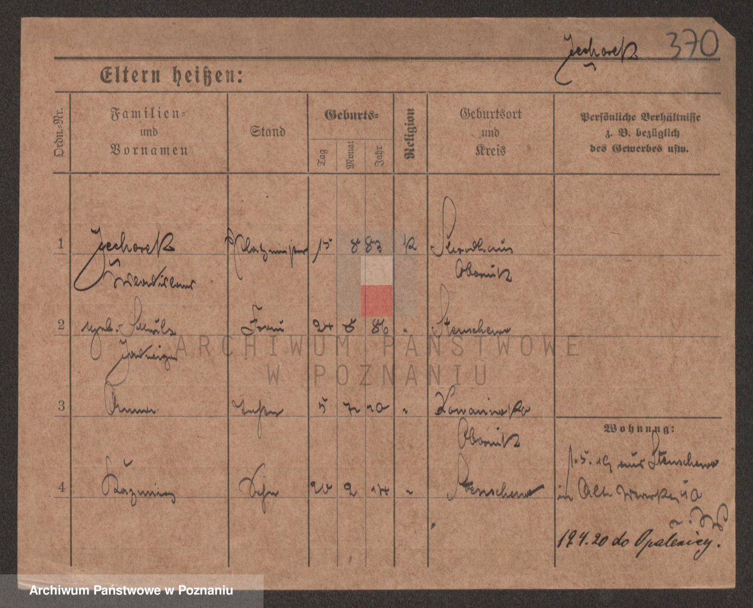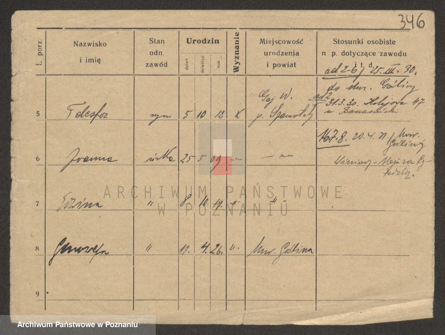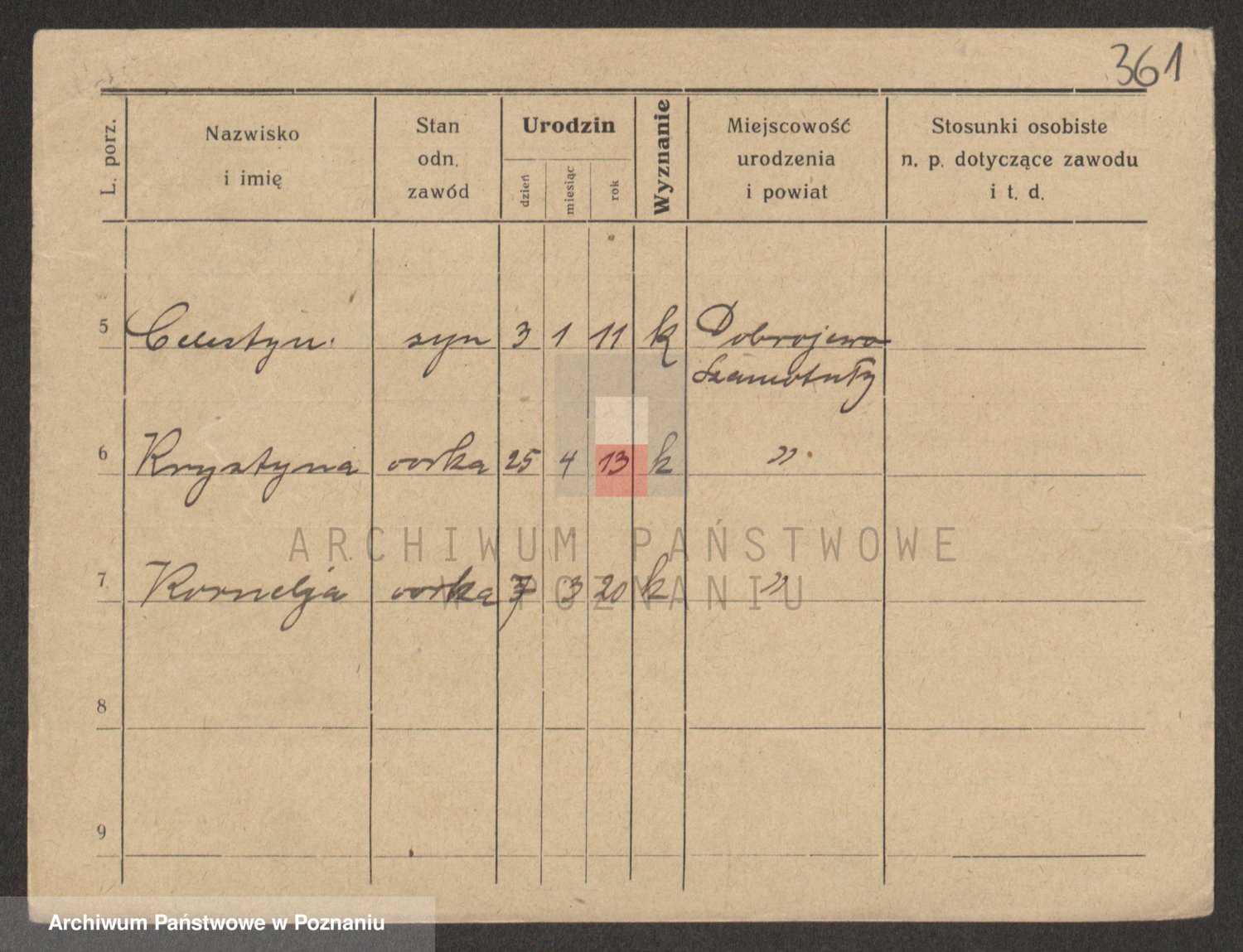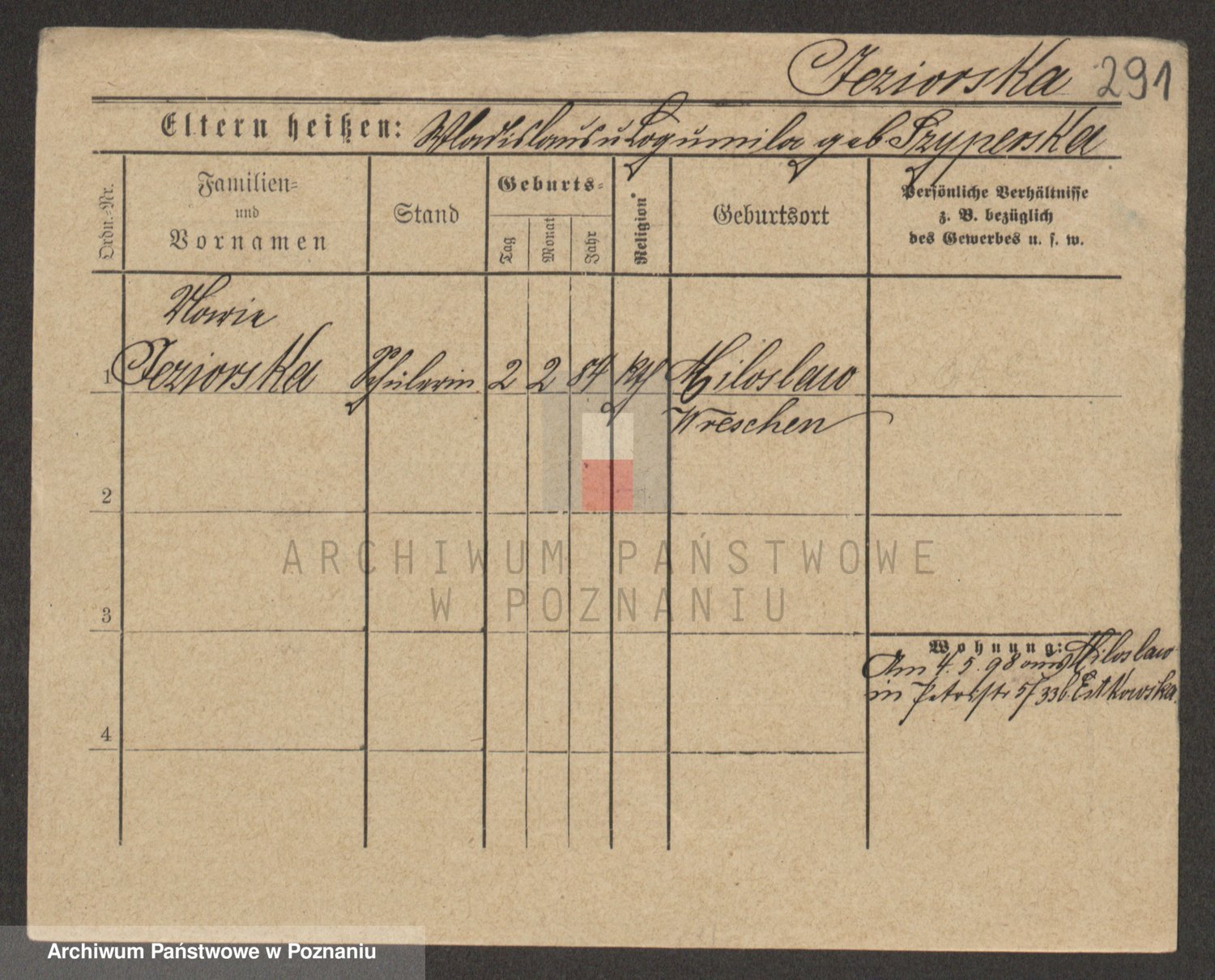 Podgląd karty osobowej dostępny jest po kliknięciu na nazwisko lub ikonkę karty. Można dokonywać powiększenia (ikony na górze) lub przechodzić między kolejnymi skanami (strzałki po bokach).