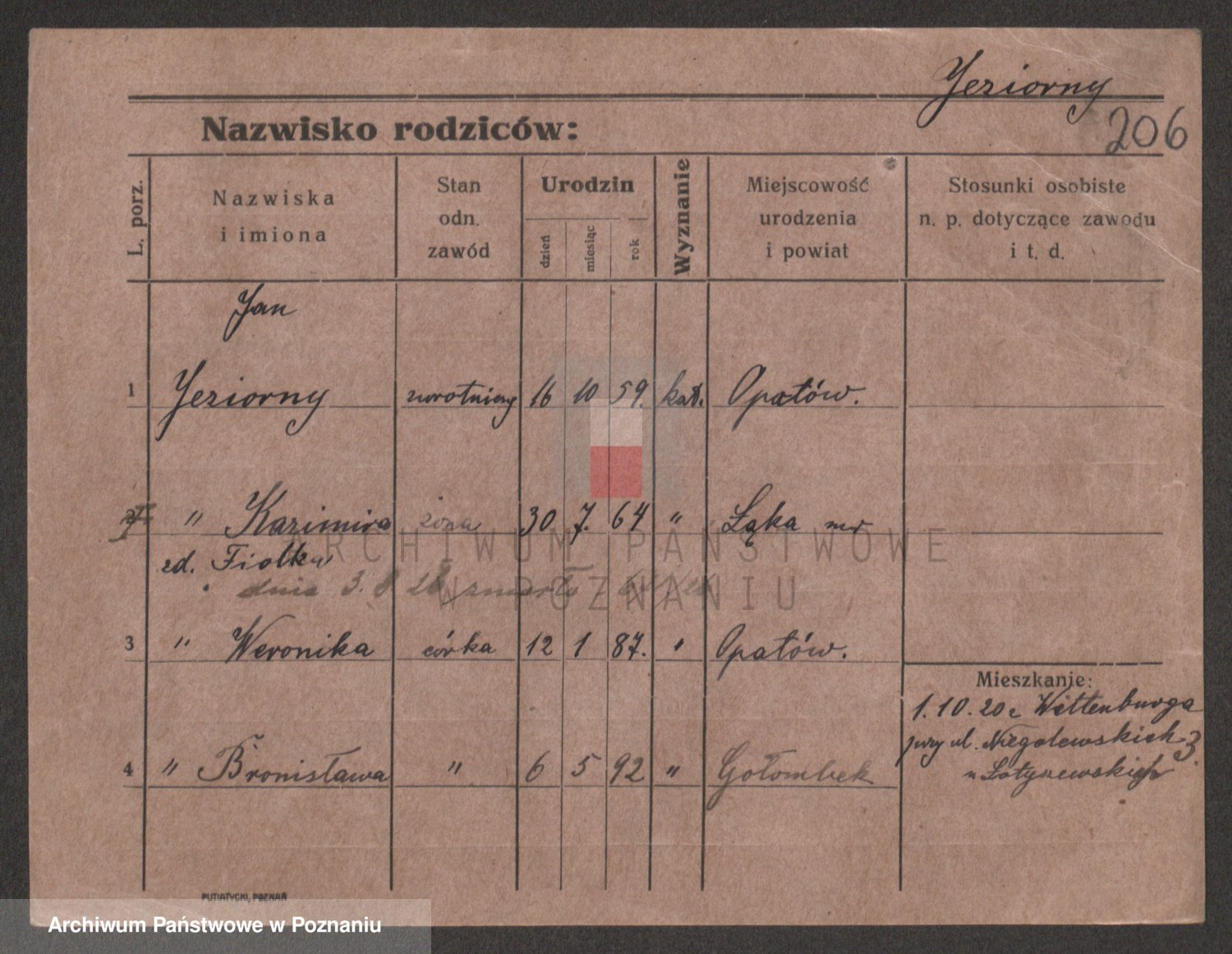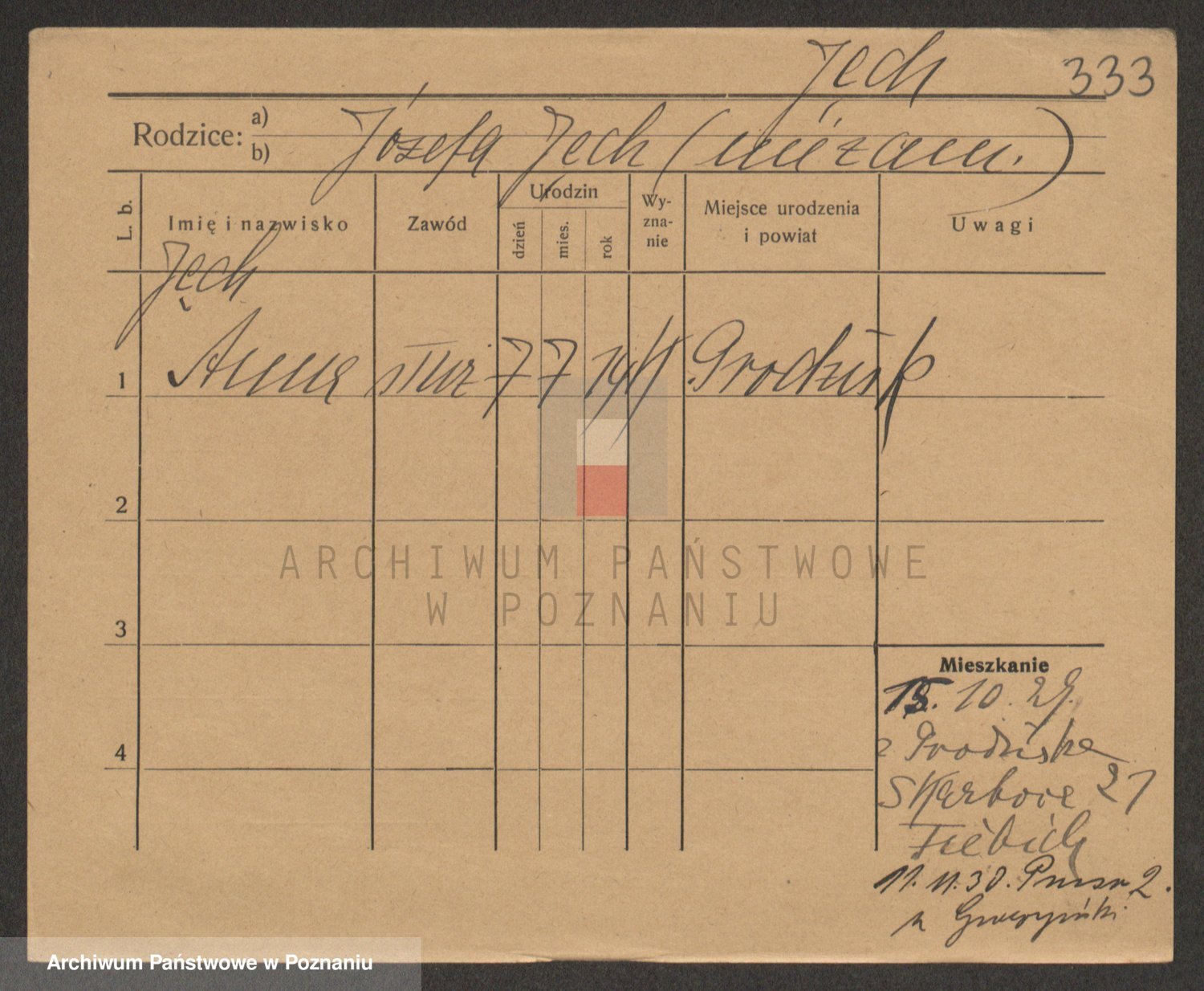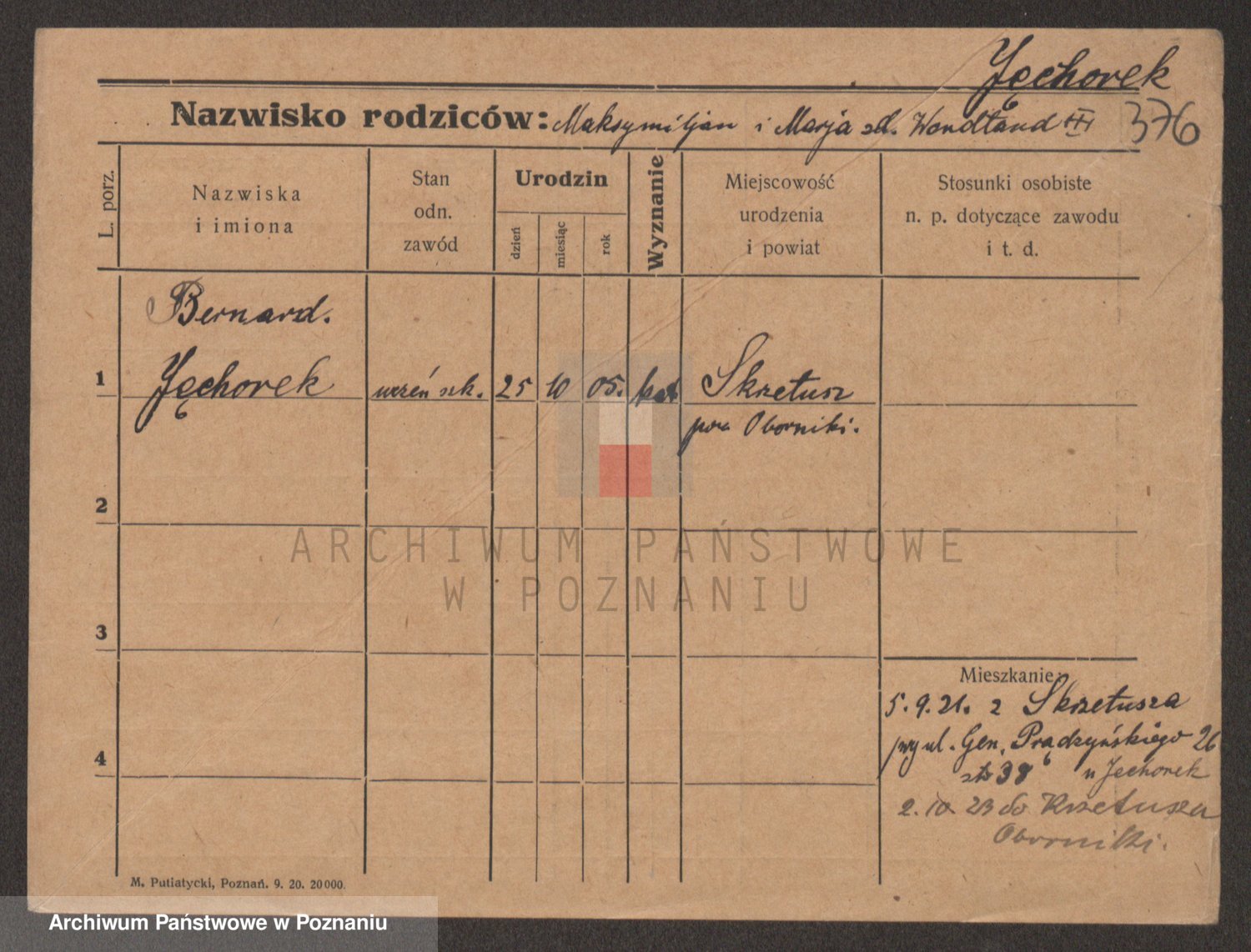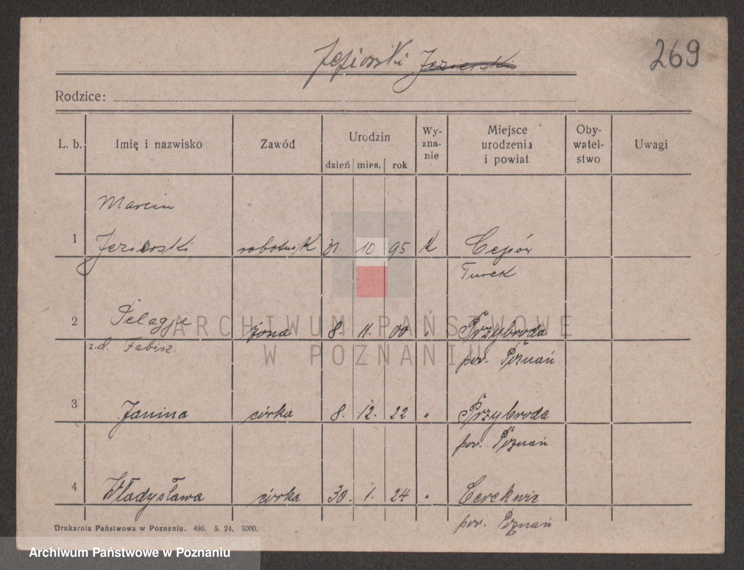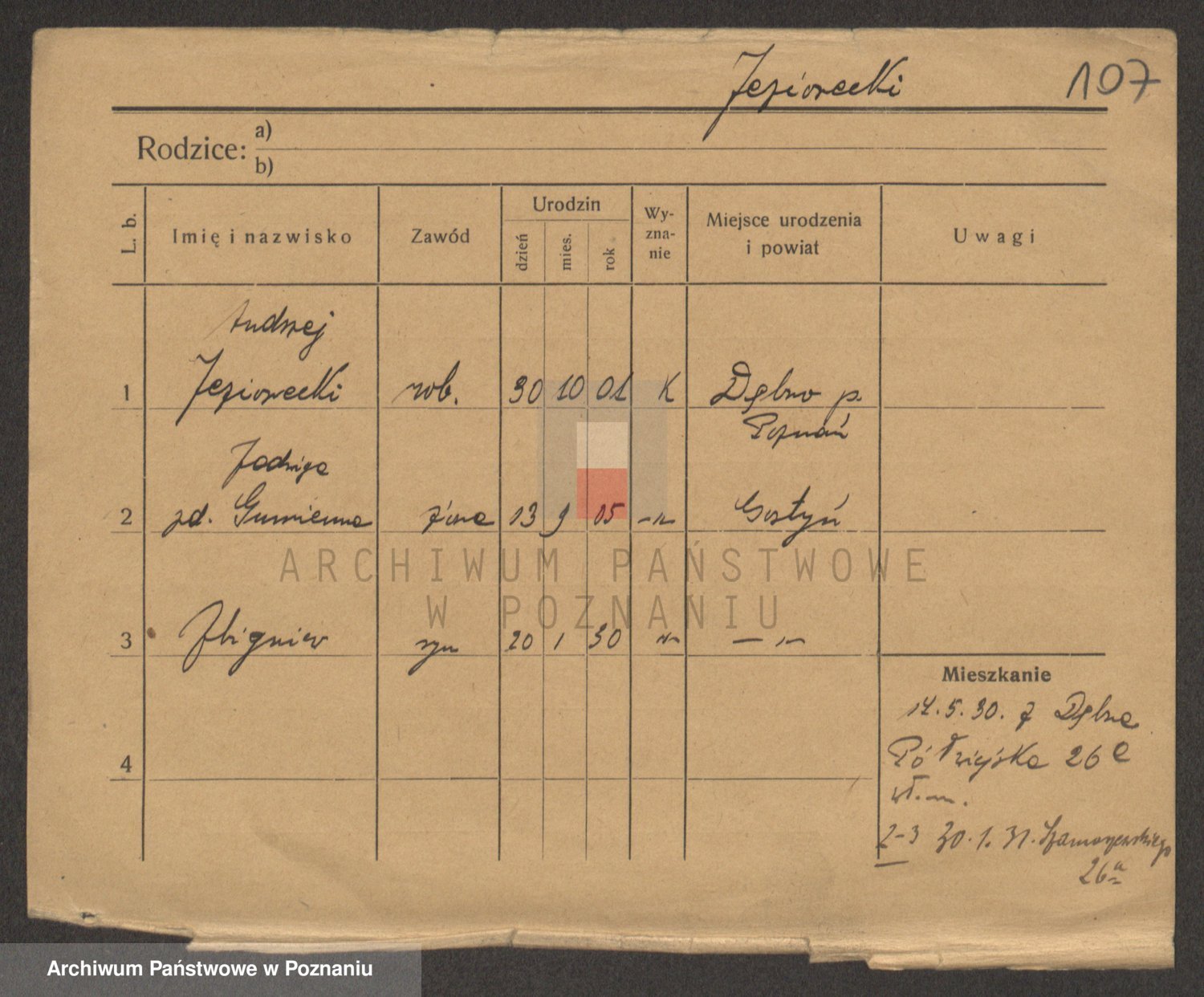 Podgląd karty osobowej dostępny jest po kliknięciu na nazwisko lub ikonkę karty. Można dokonywać powiększenia (ikony na górze) lub przechodzić między kolejnymi skanami (strzałki po bokach).