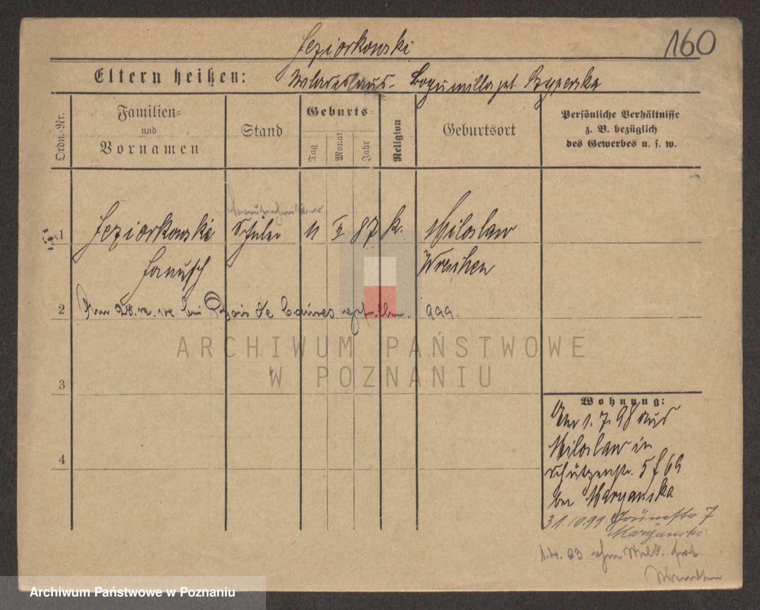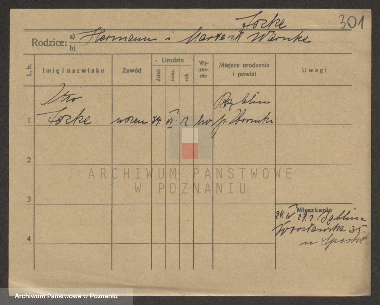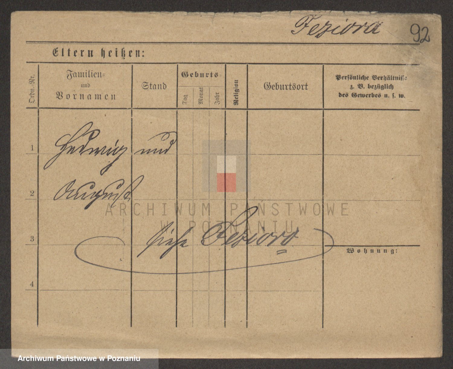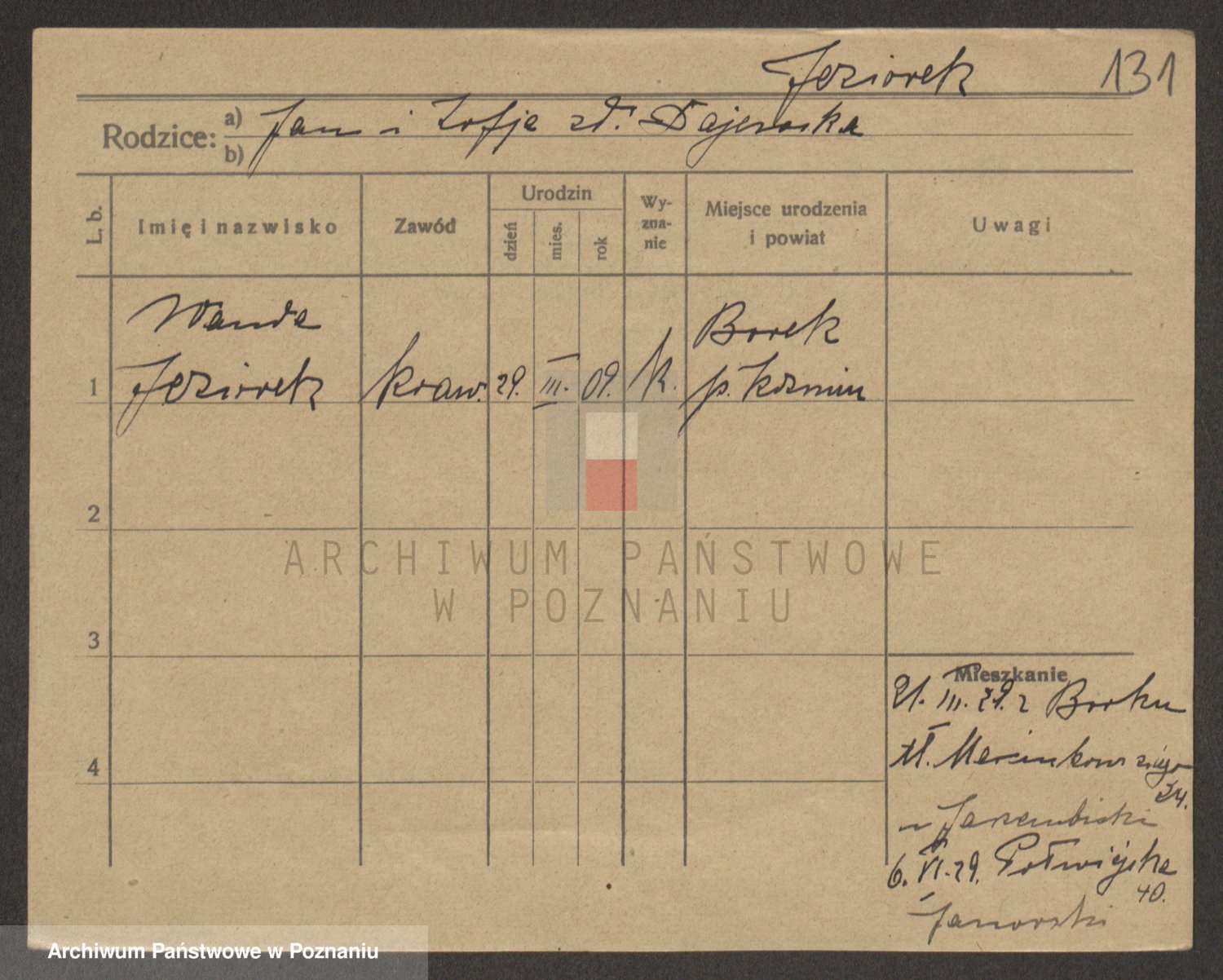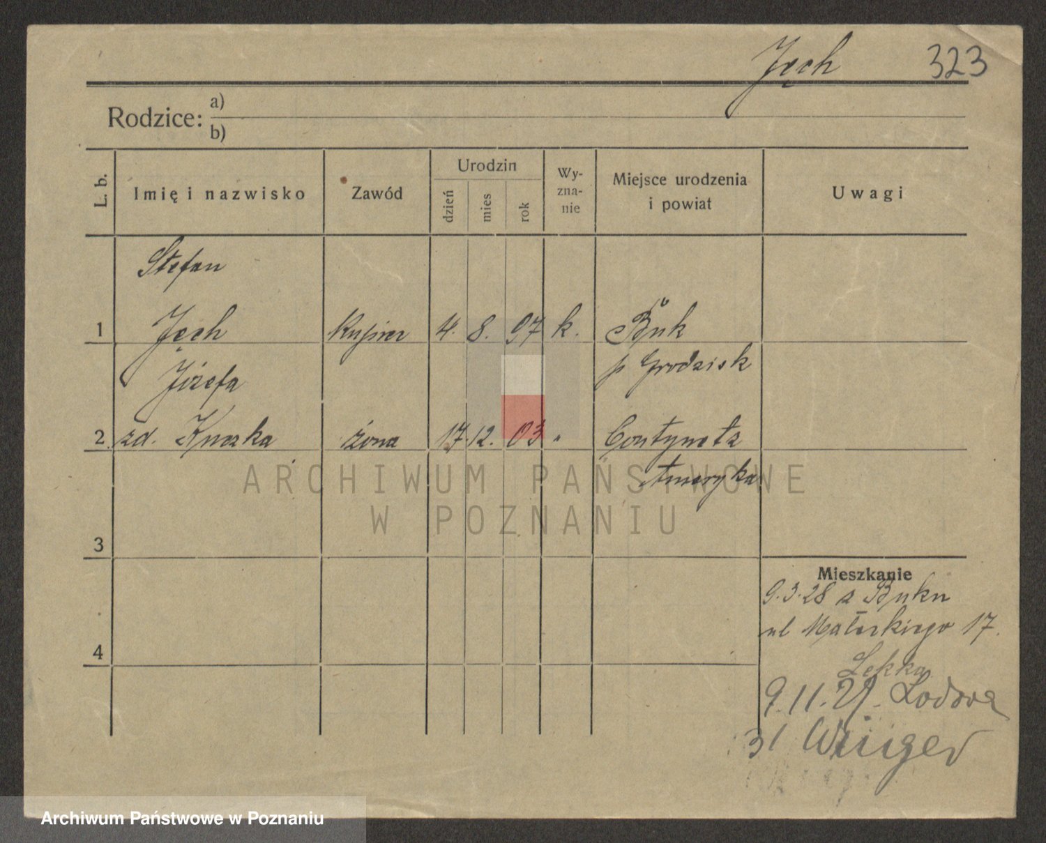 Podgląd karty osobowej dostępny jest po kliknięciu na nazwisko lub ikonkę karty. Można dokonywać powiększenia (ikony na górze) lub przechodzić między kolejnymi skanami (strzałki po bokach).