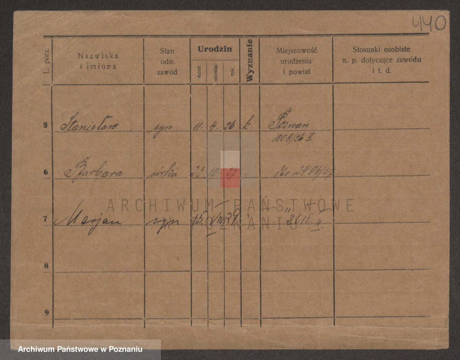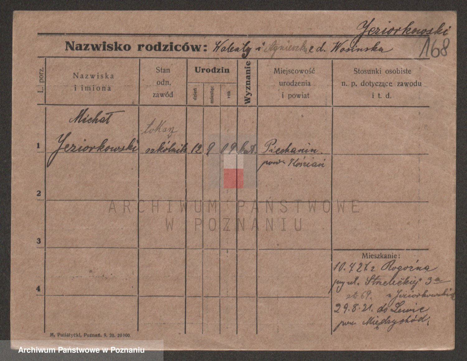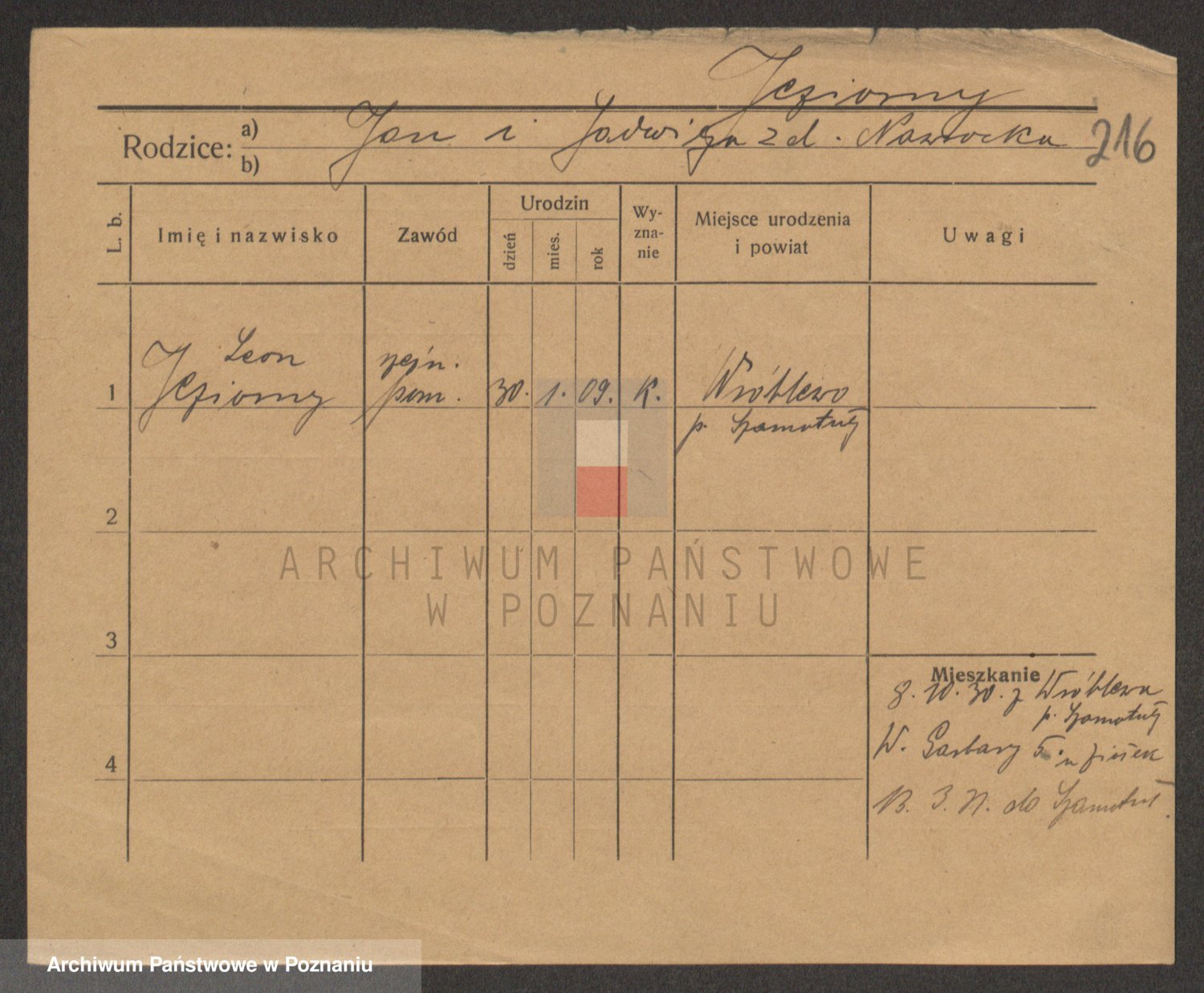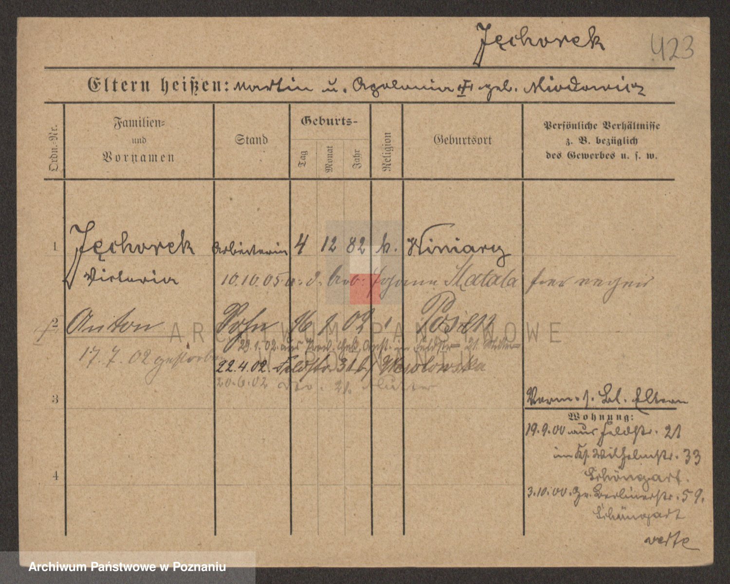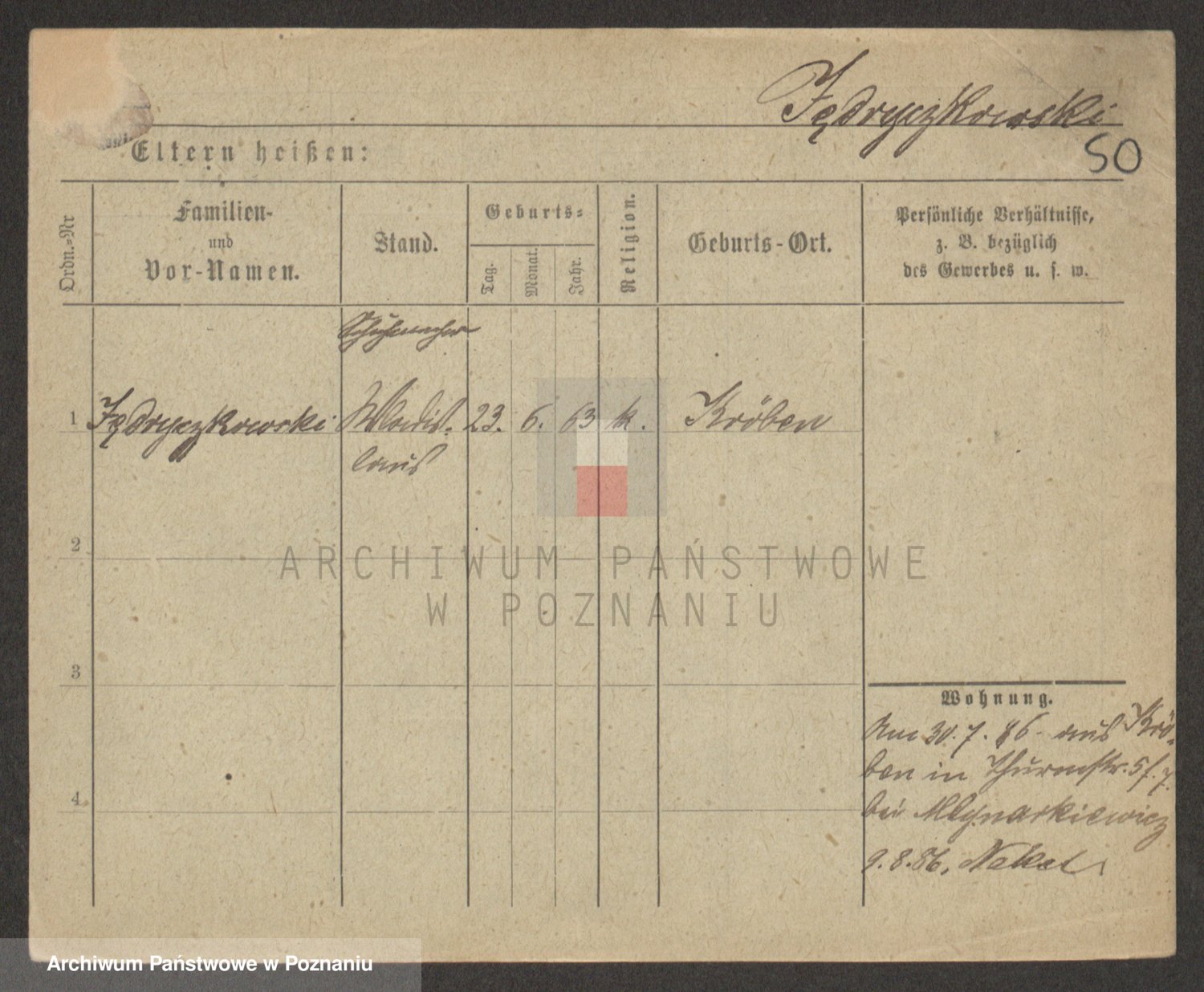 Podgląd karty osobowej dostępny jest po kliknięciu na nazwisko lub ikonkę karty. Można dokonywać powiększenia (ikony na górze) lub przechodzić między kolejnymi skanami (strzałki po bokach).