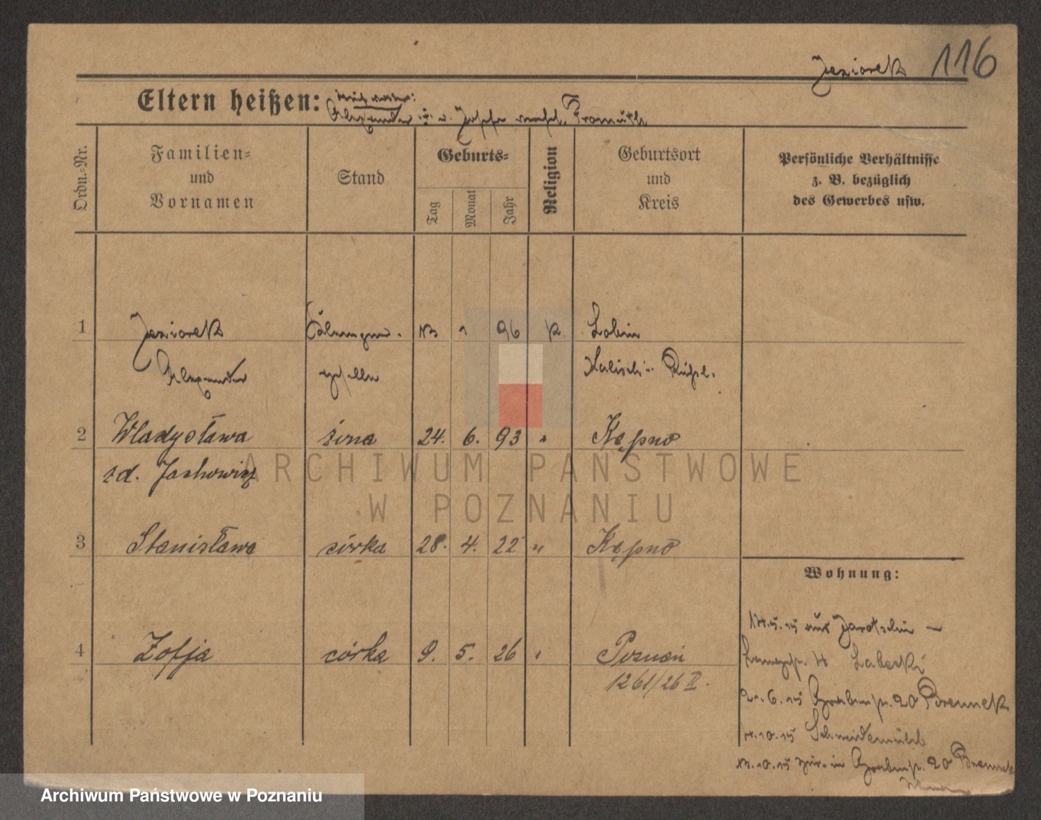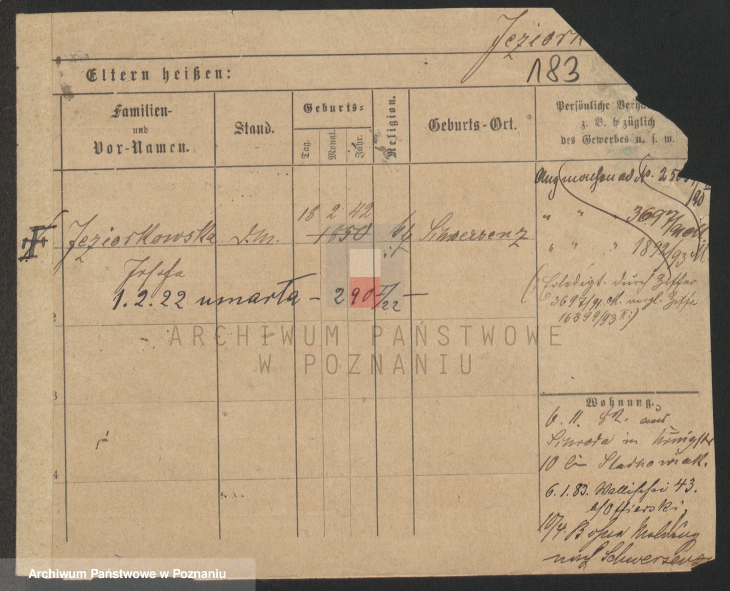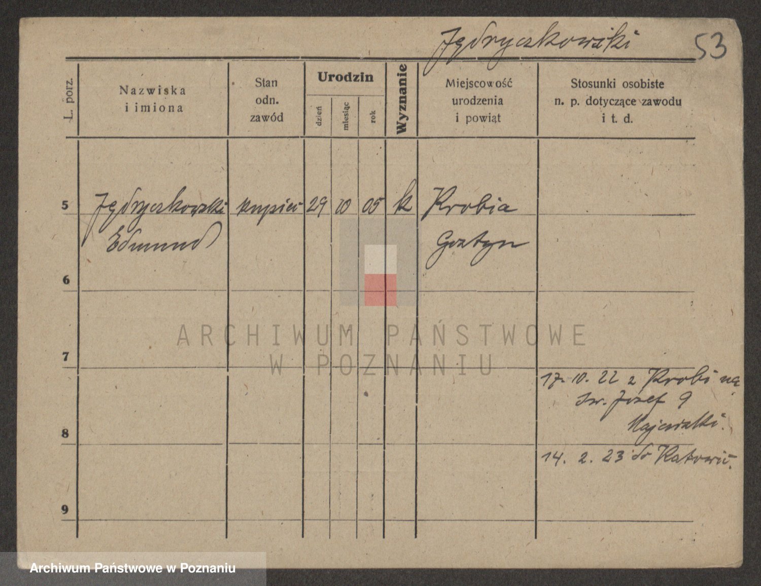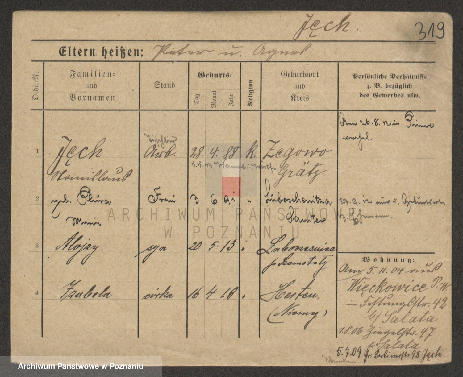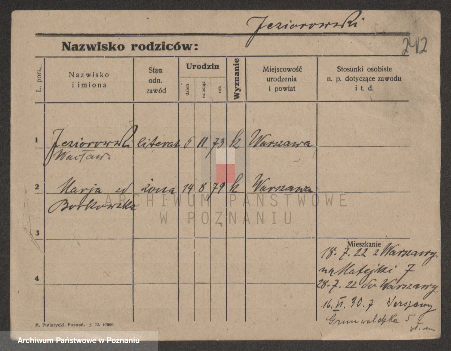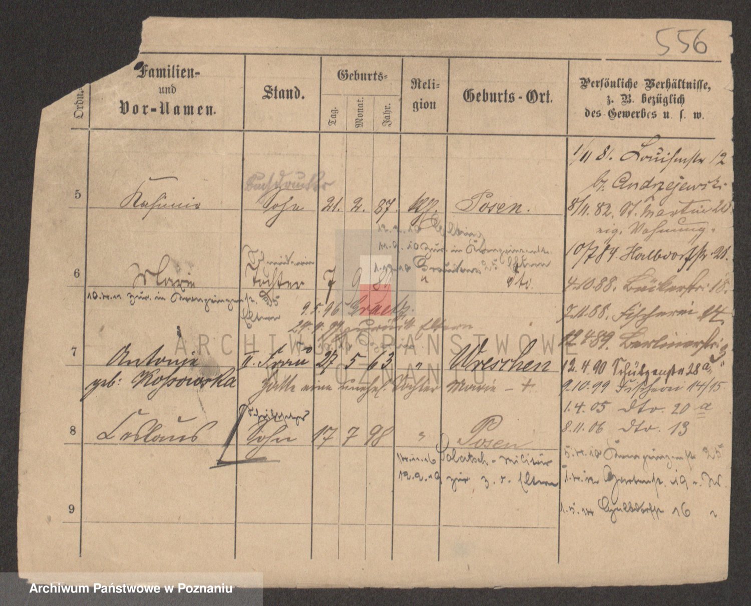 Podgląd karty osobowej dostępny jest po kliknięciu na nazwisko lub ikonkę karty. Można dokonywać powiększenia (ikony na górze) lub przechodzić między kolejnymi skanami (strzałki po bokach).