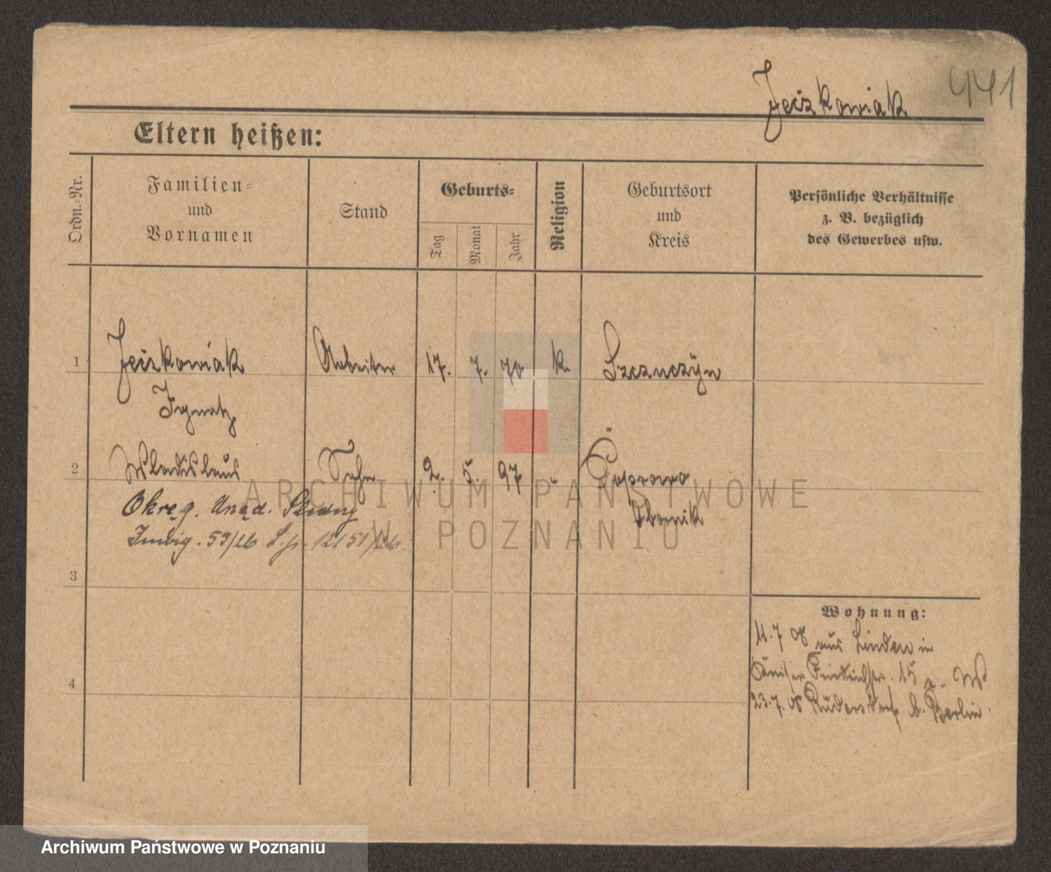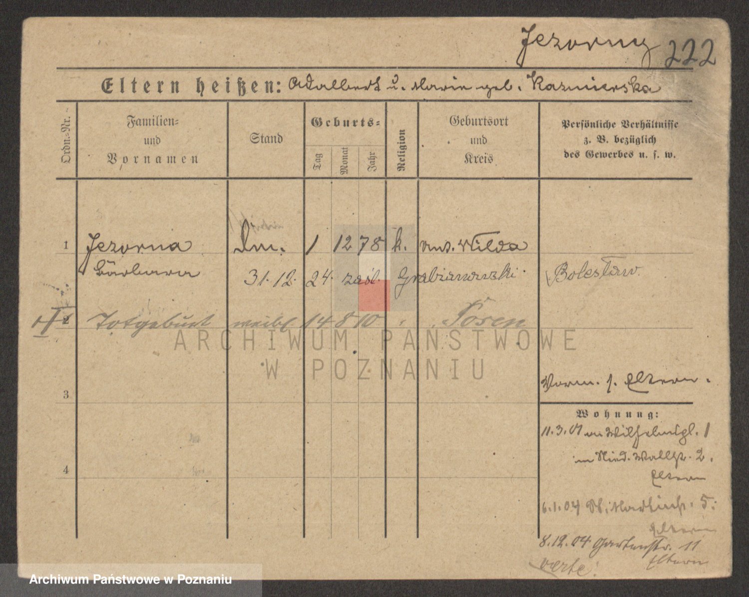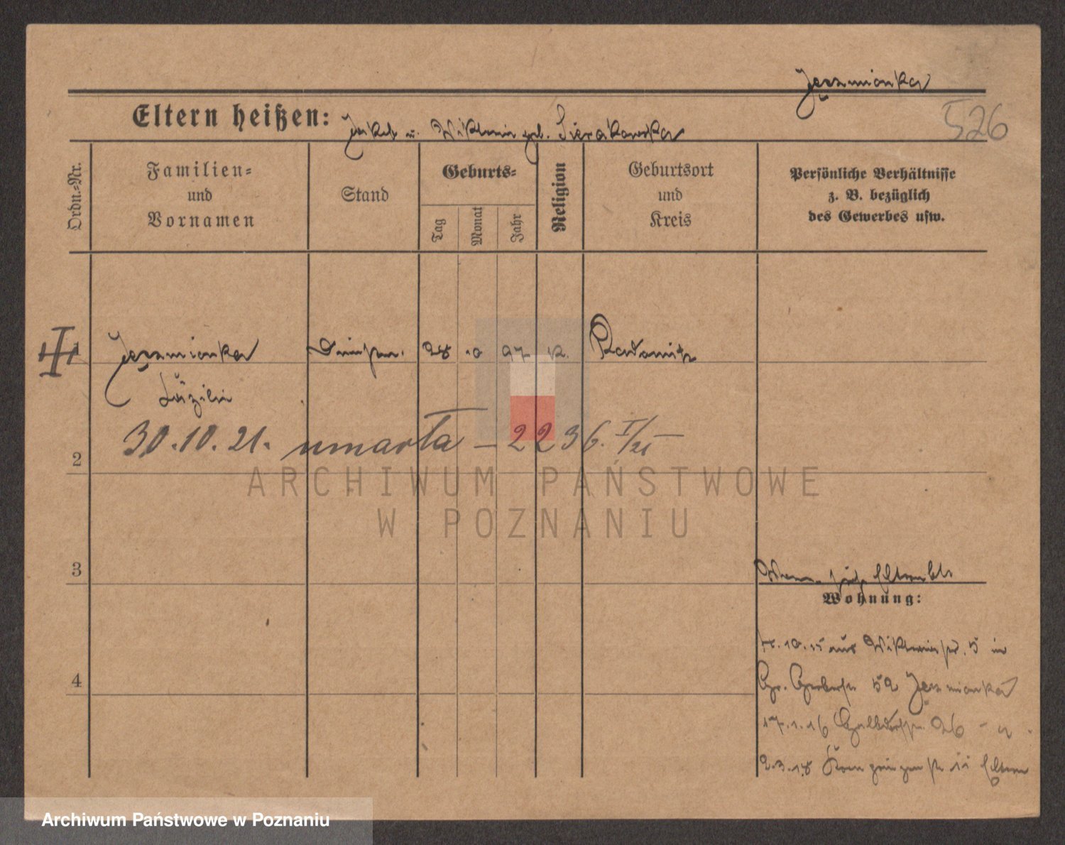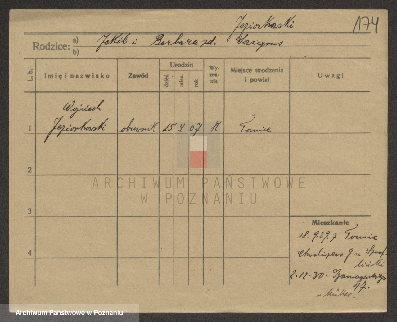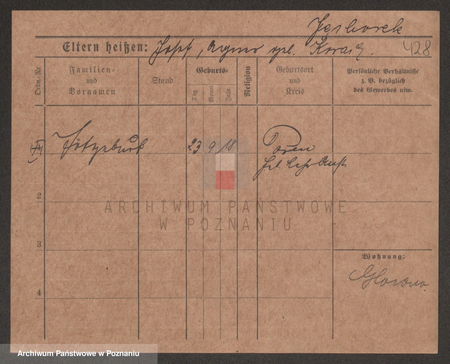 Podgląd karty osobowej dostępny jest po kliknięciu na nazwisko lub ikonkę karty. Można dokonywać powiększenia (ikony na górze) lub przechodzić między kolejnymi skanami (strzałki po bokach).