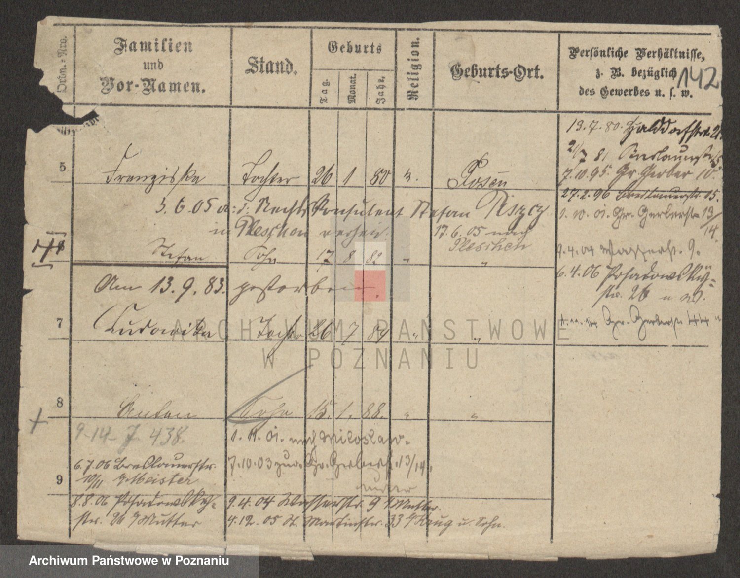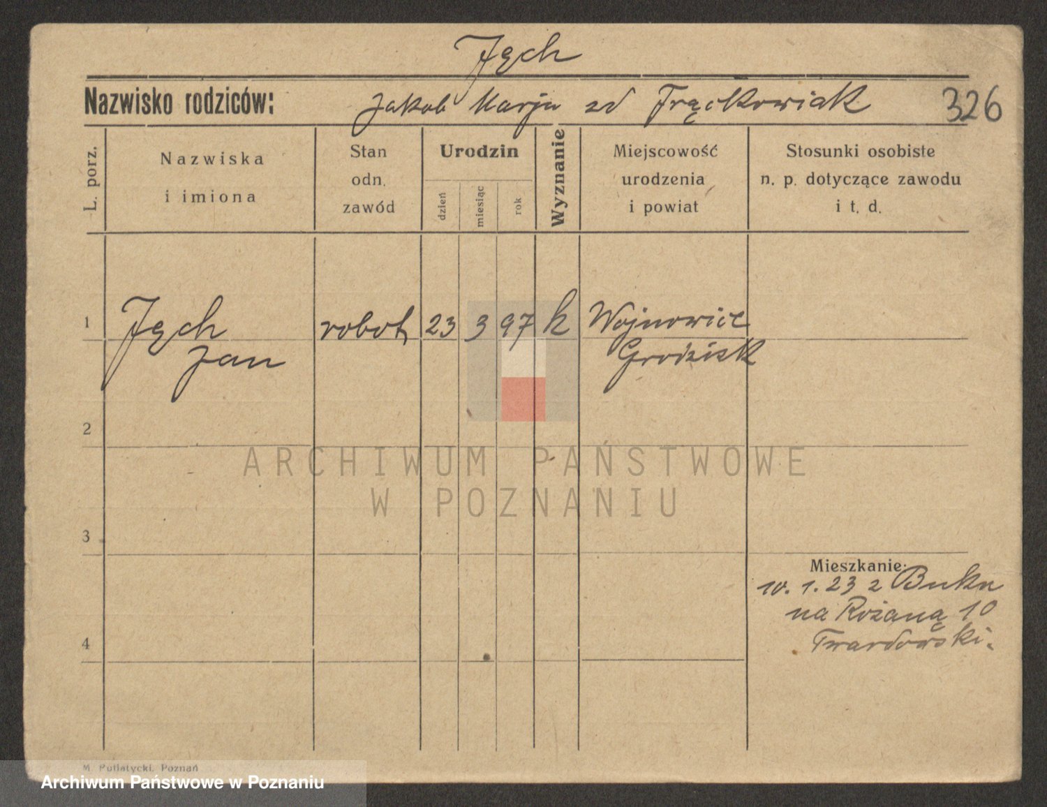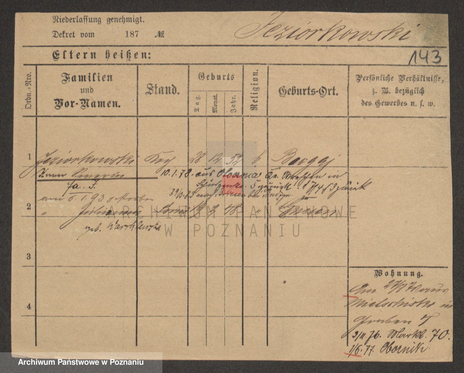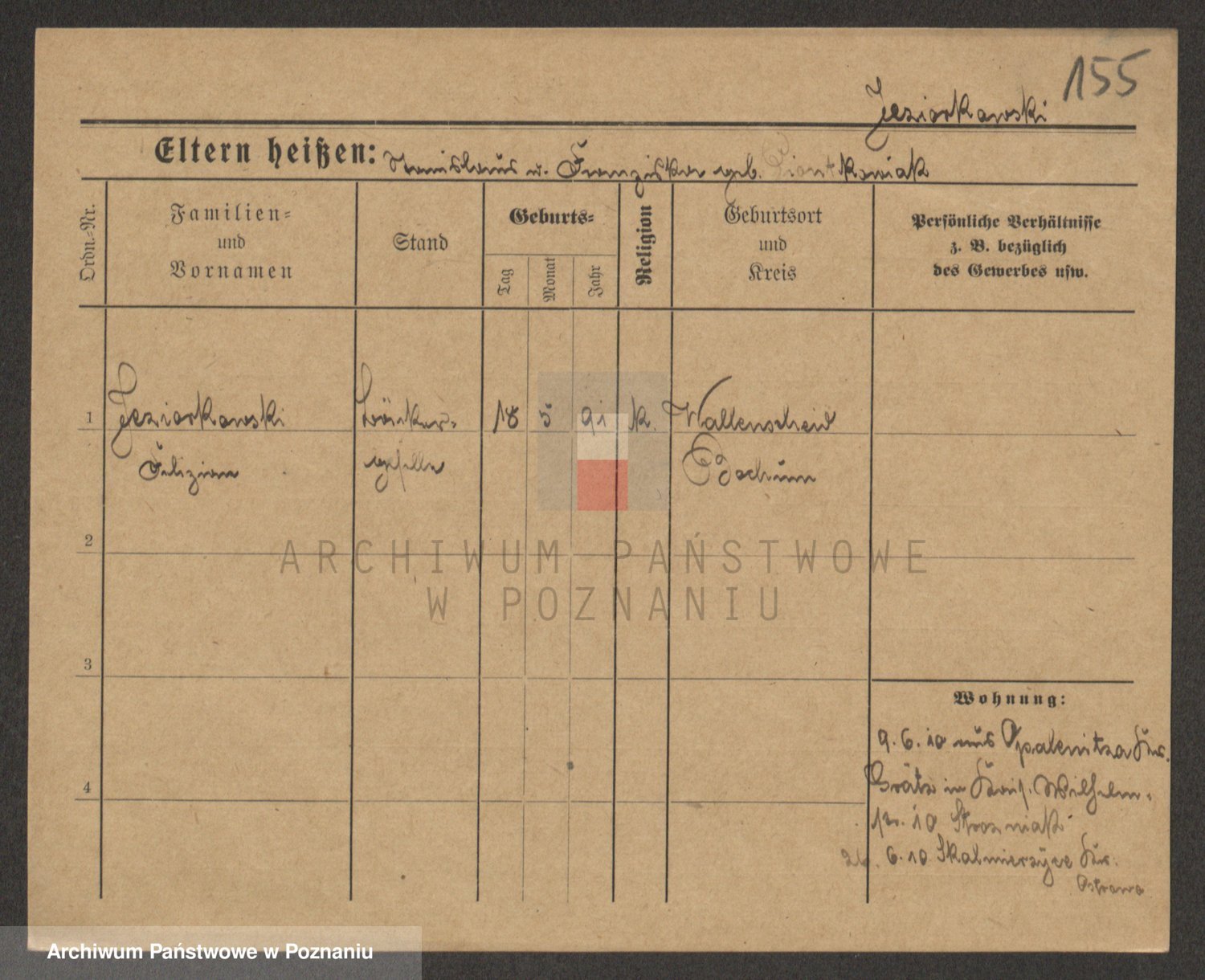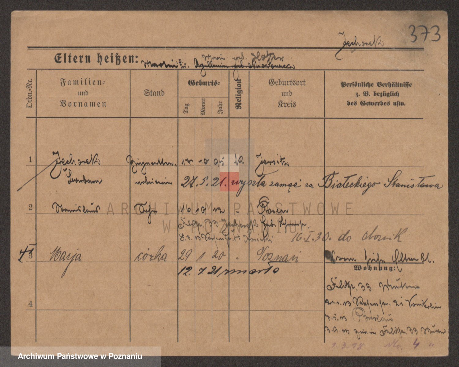 Podgląd karty osobowej dostępny jest po kliknięciu na nazwisko lub ikonkę karty. Można dokonywać powiększenia (ikony na górze) lub przechodzić między kolejnymi skanami (strzałki po bokach).