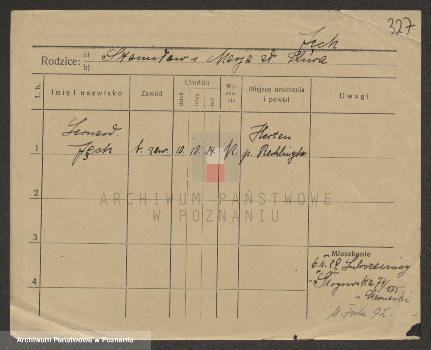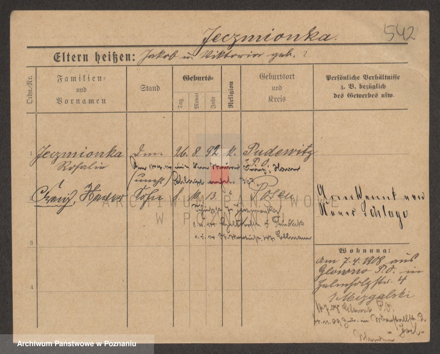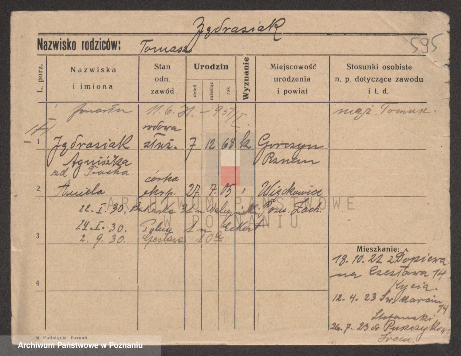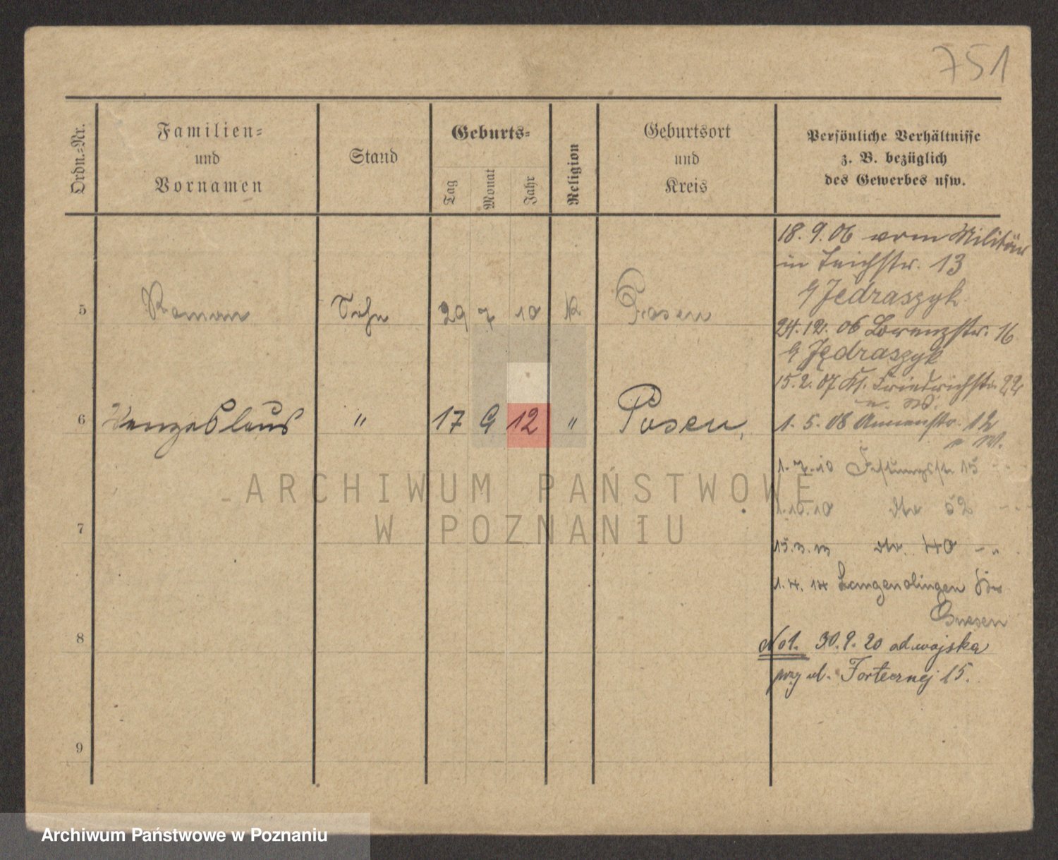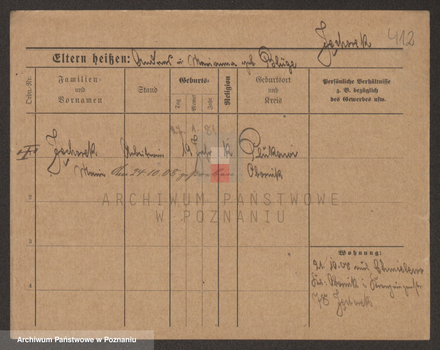 Podgląd karty osobowej dostępny jest po kliknięciu na nazwisko lub ikonkę karty. Można dokonywać powiększenia (ikony na górze) lub przechodzić między kolejnymi skanami (strzałki po bokach).