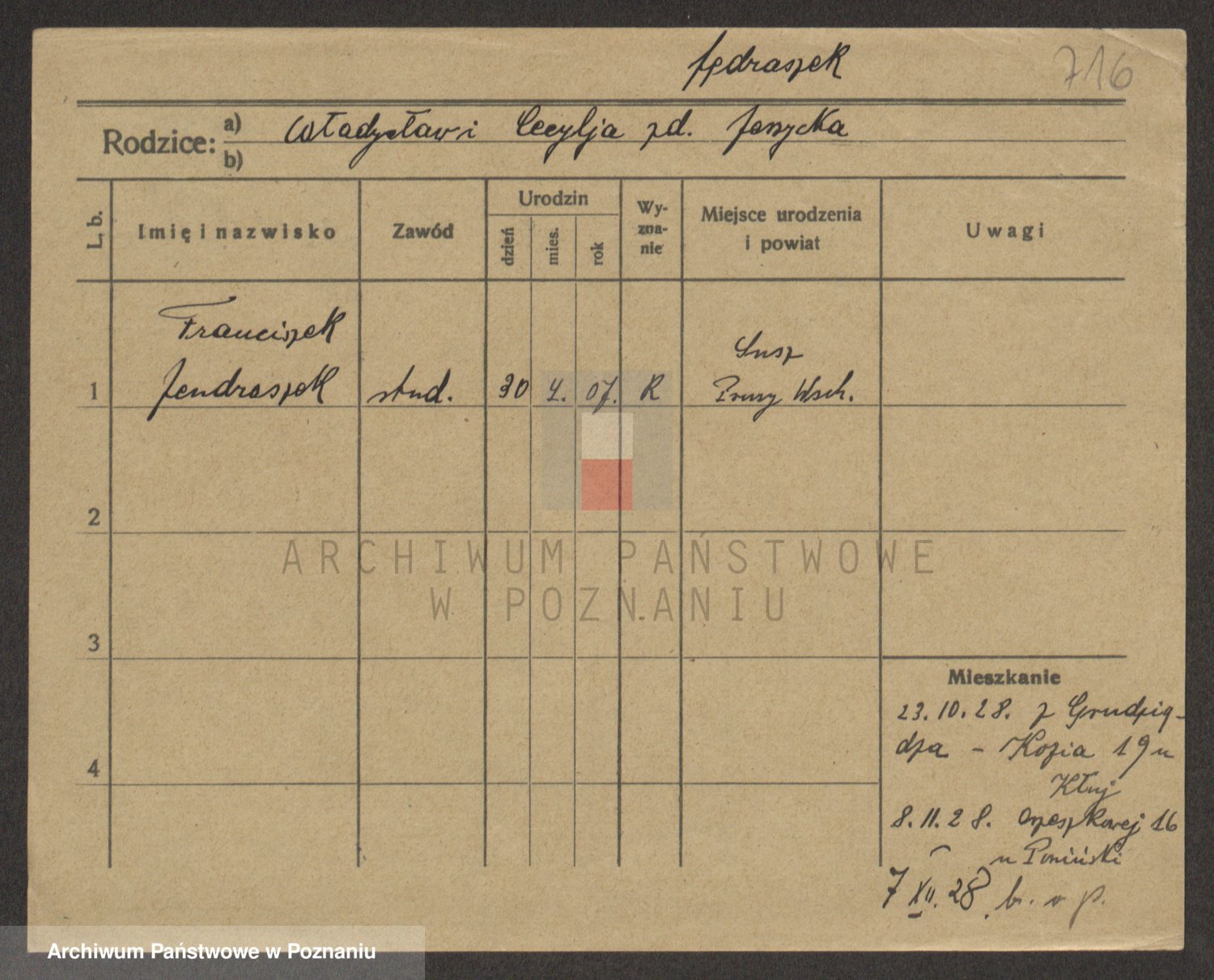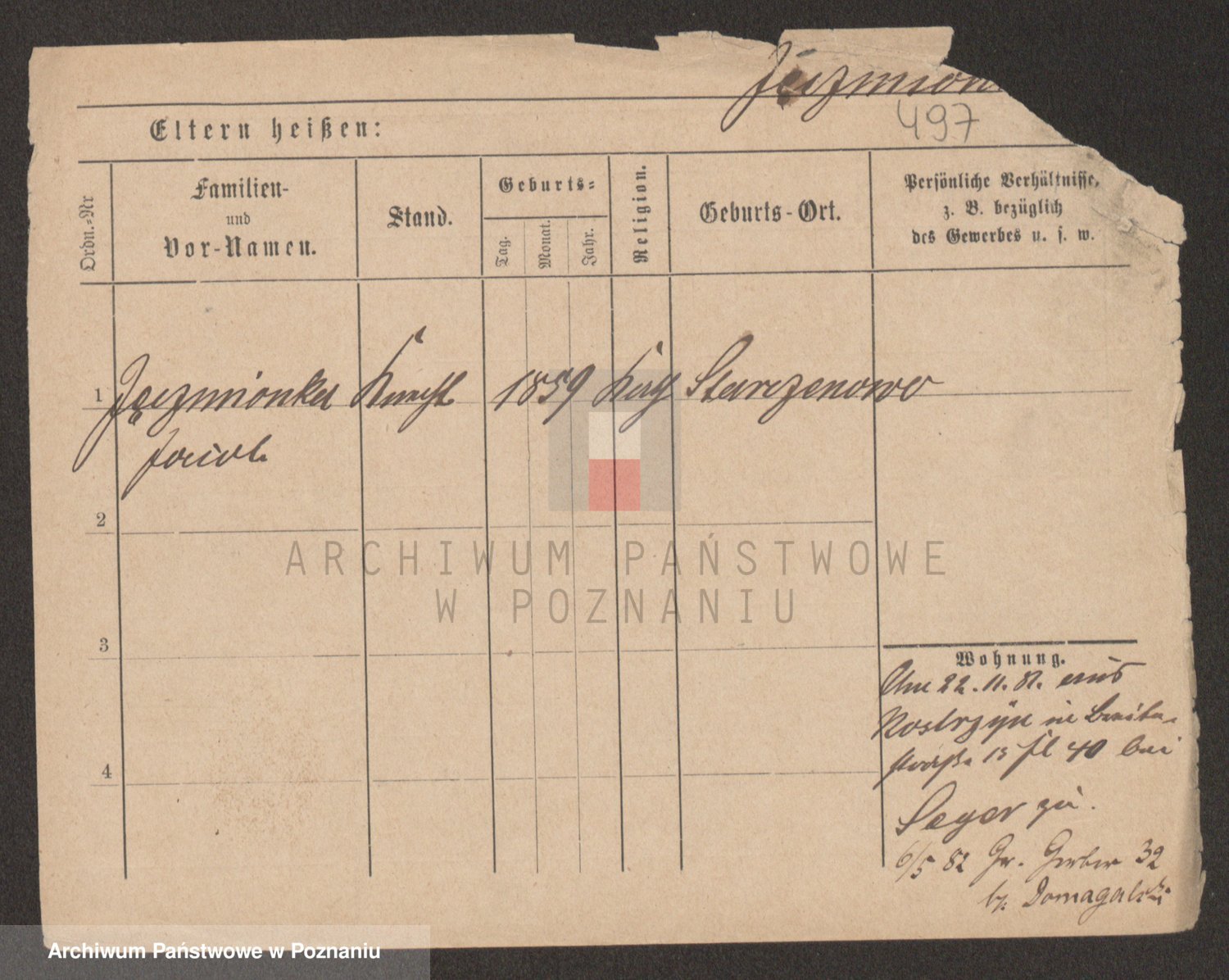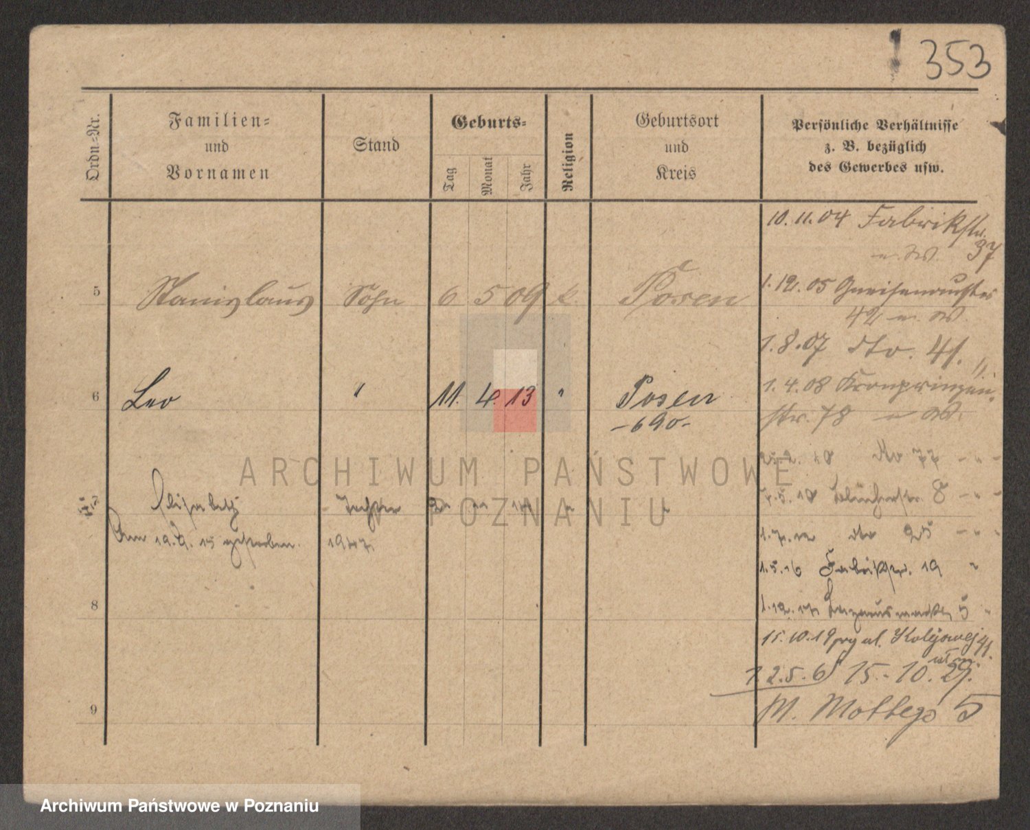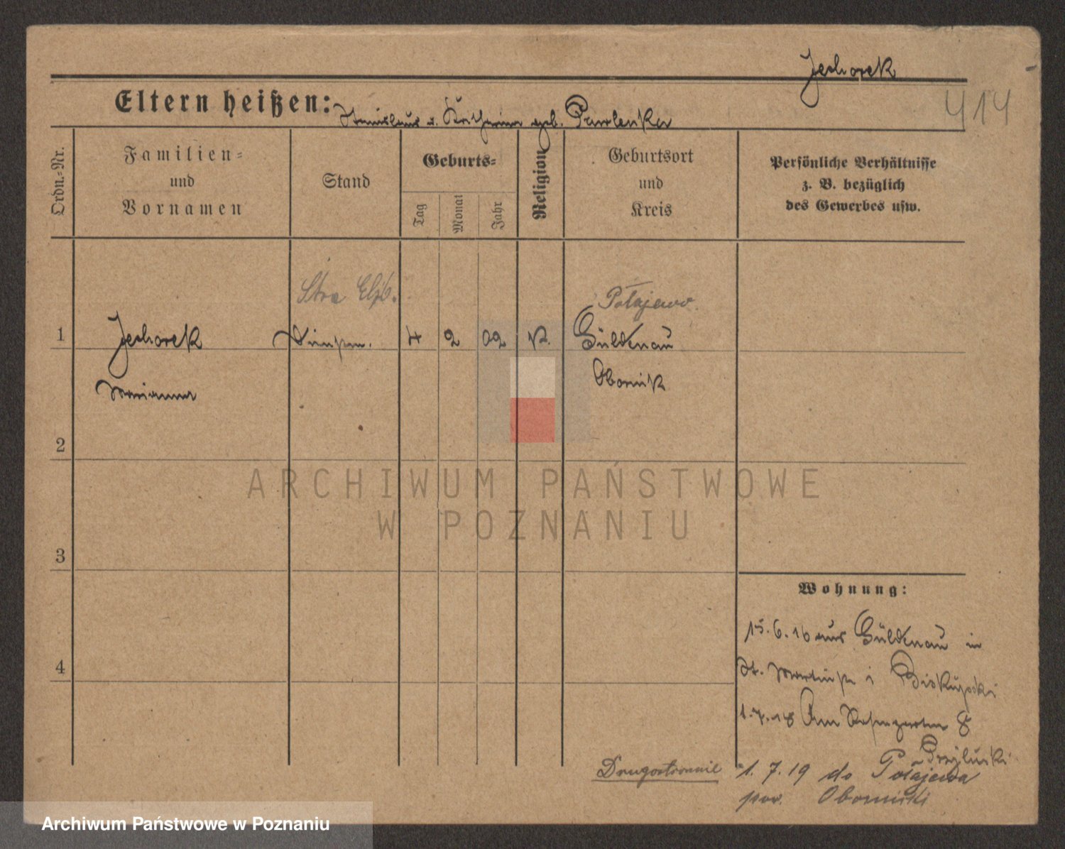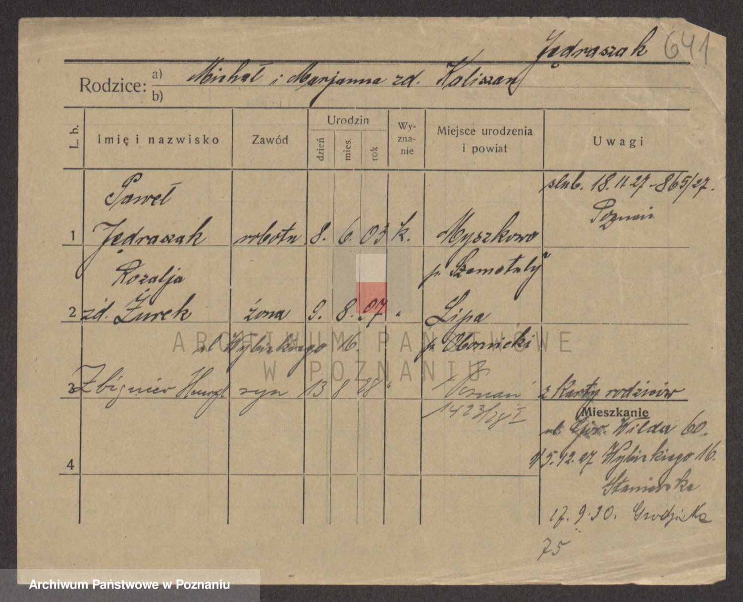 Podgląd karty osobowej dostępny jest po kliknięciu na nazwisko lub ikonkę karty. Można dokonywać powiększenia (ikony na górze) lub przechodzić między kolejnymi skanami (strzałki po bokach).
