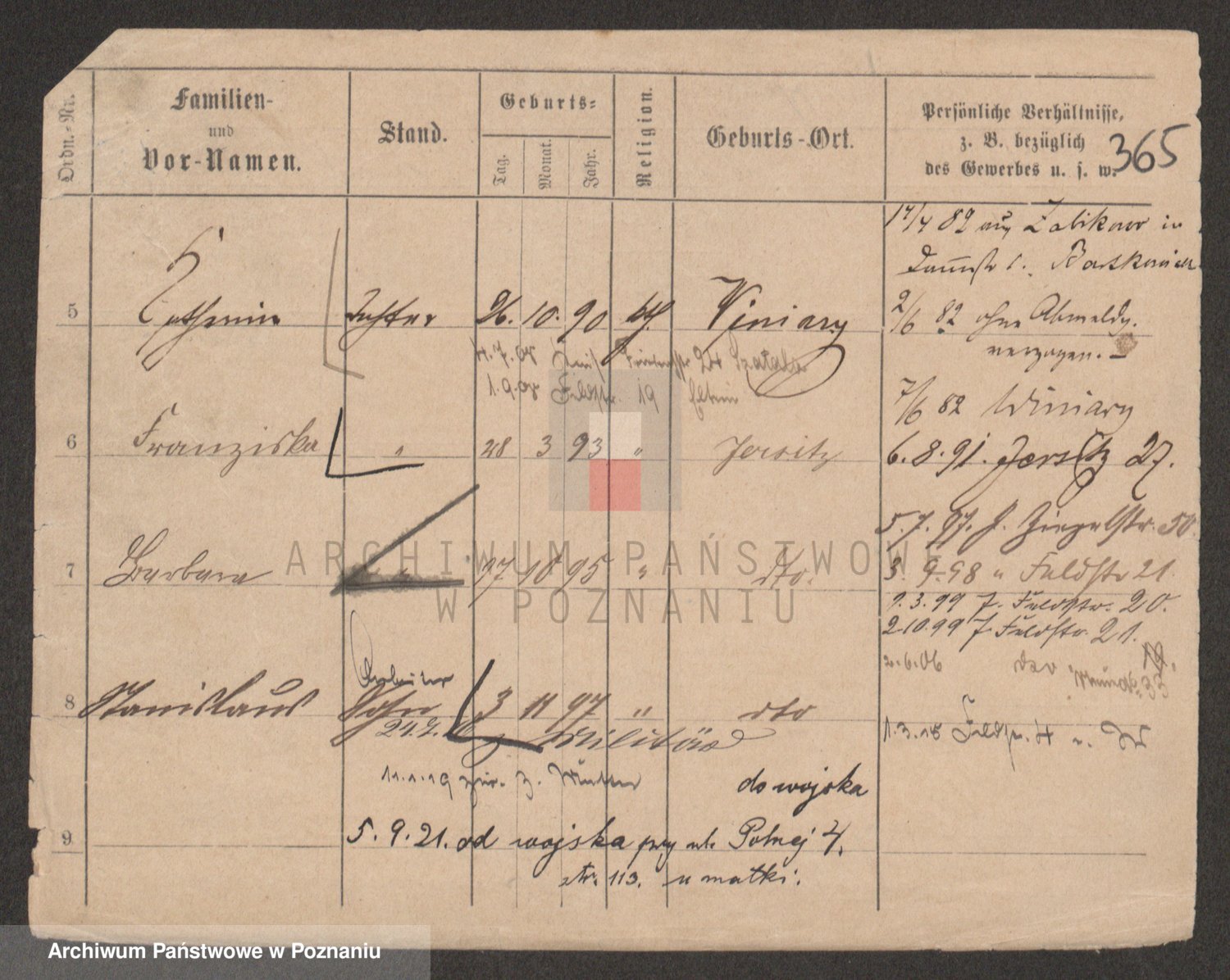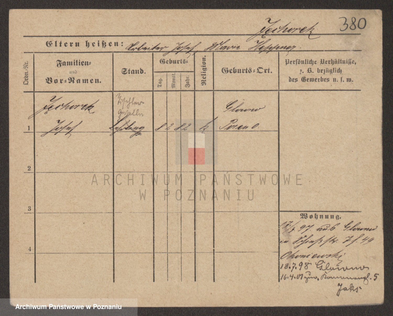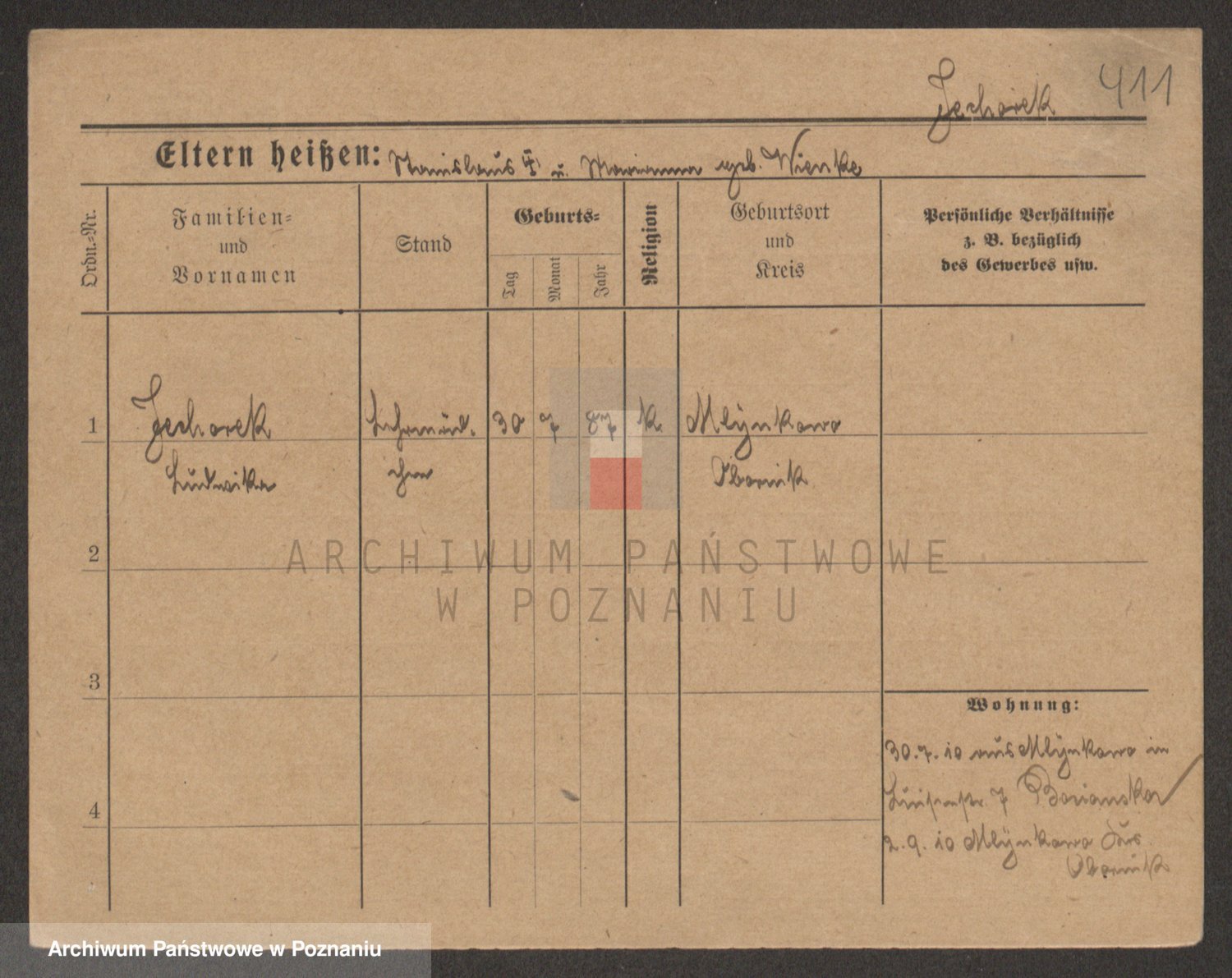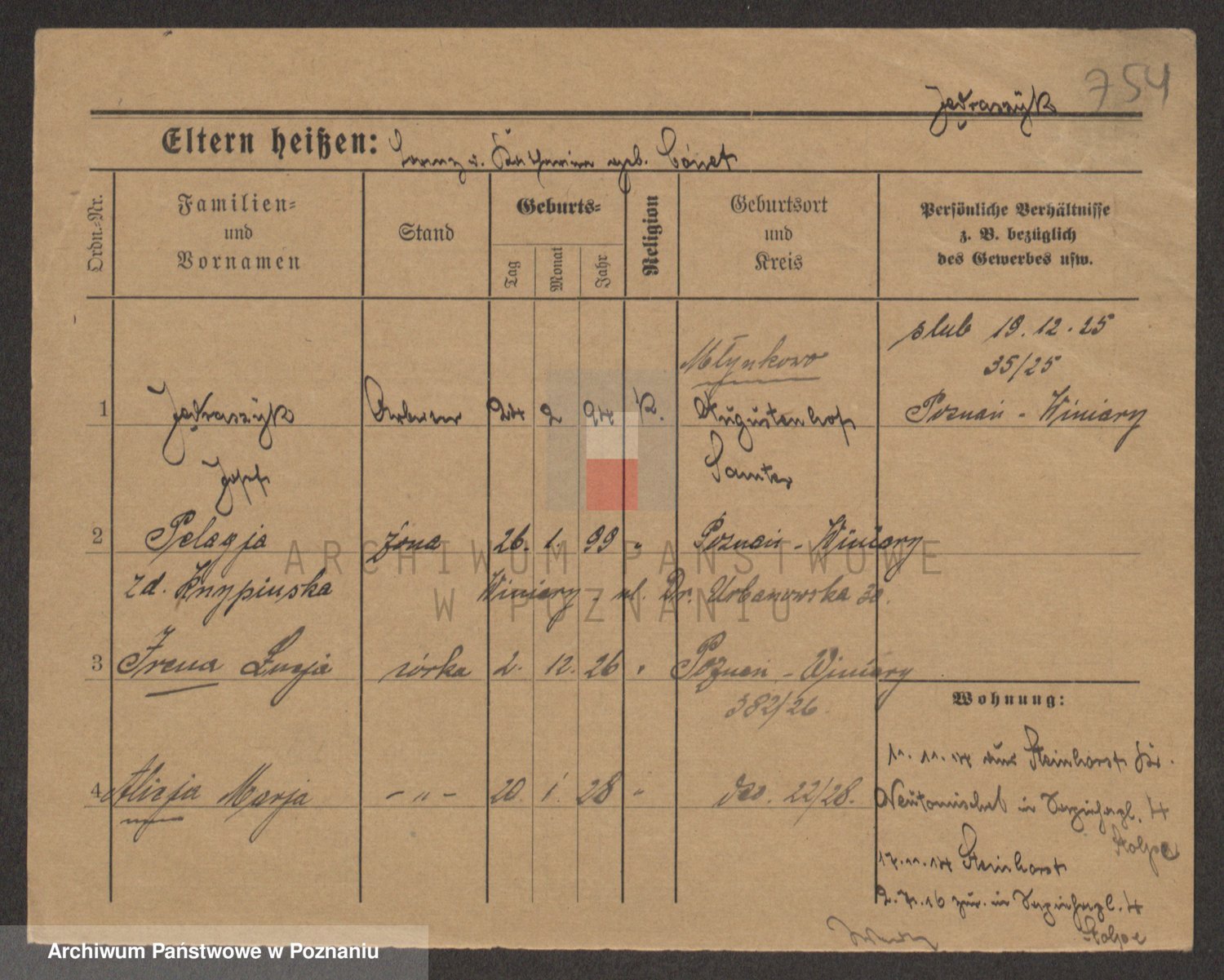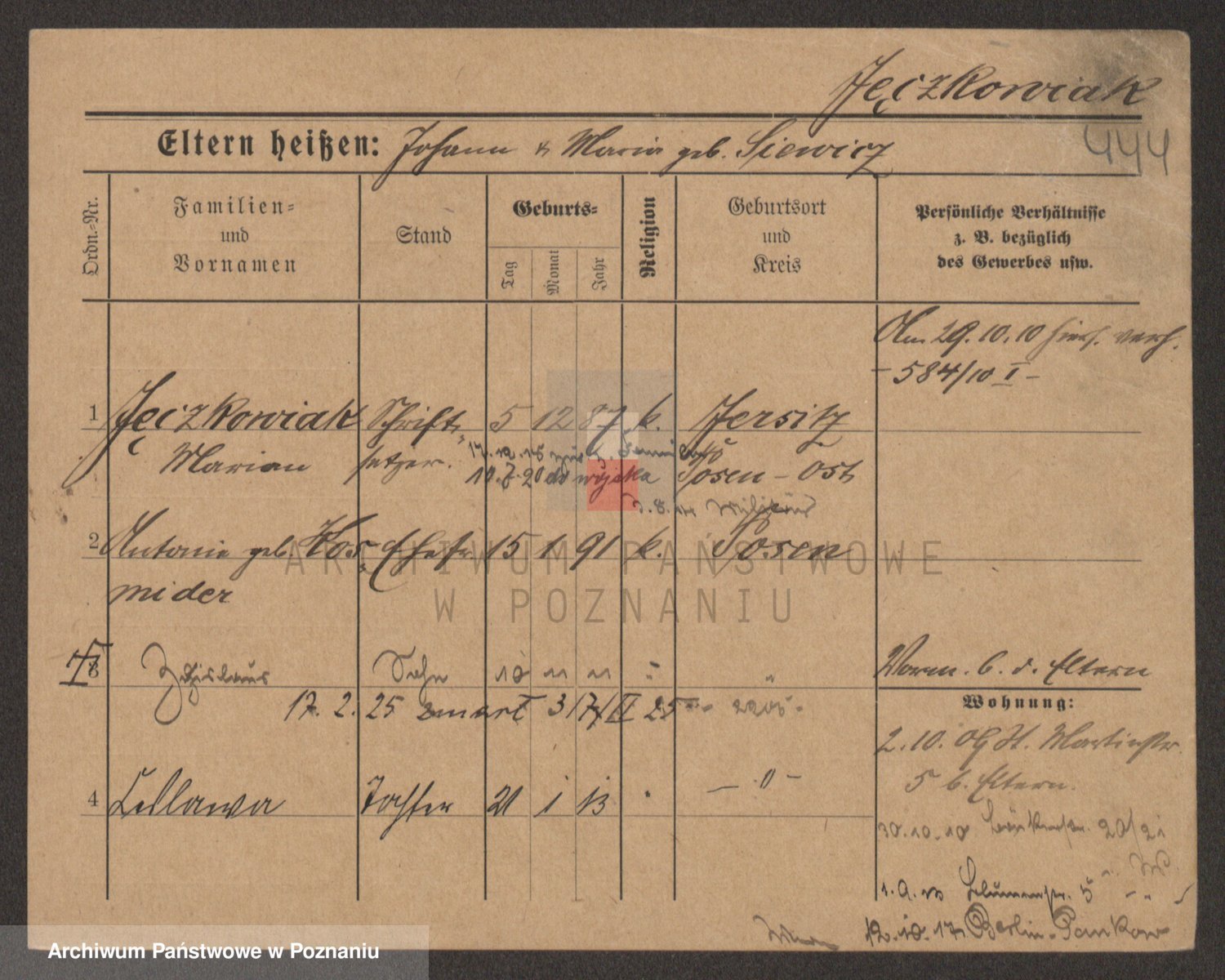 Podgląd karty osobowej dostępny jest po kliknięciu na nazwisko lub ikonkę karty. Można dokonywać powiększenia (ikony na górze) lub przechodzić między kolejnymi skanami (strzałki po bokach).