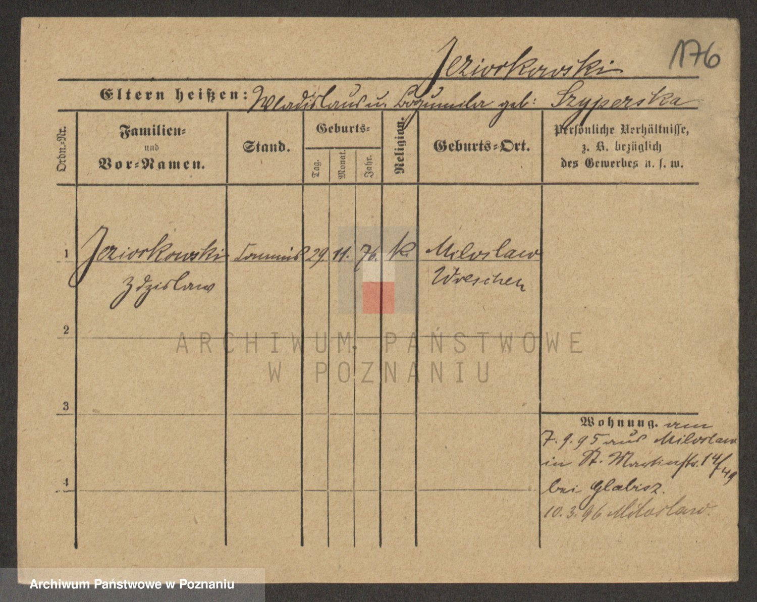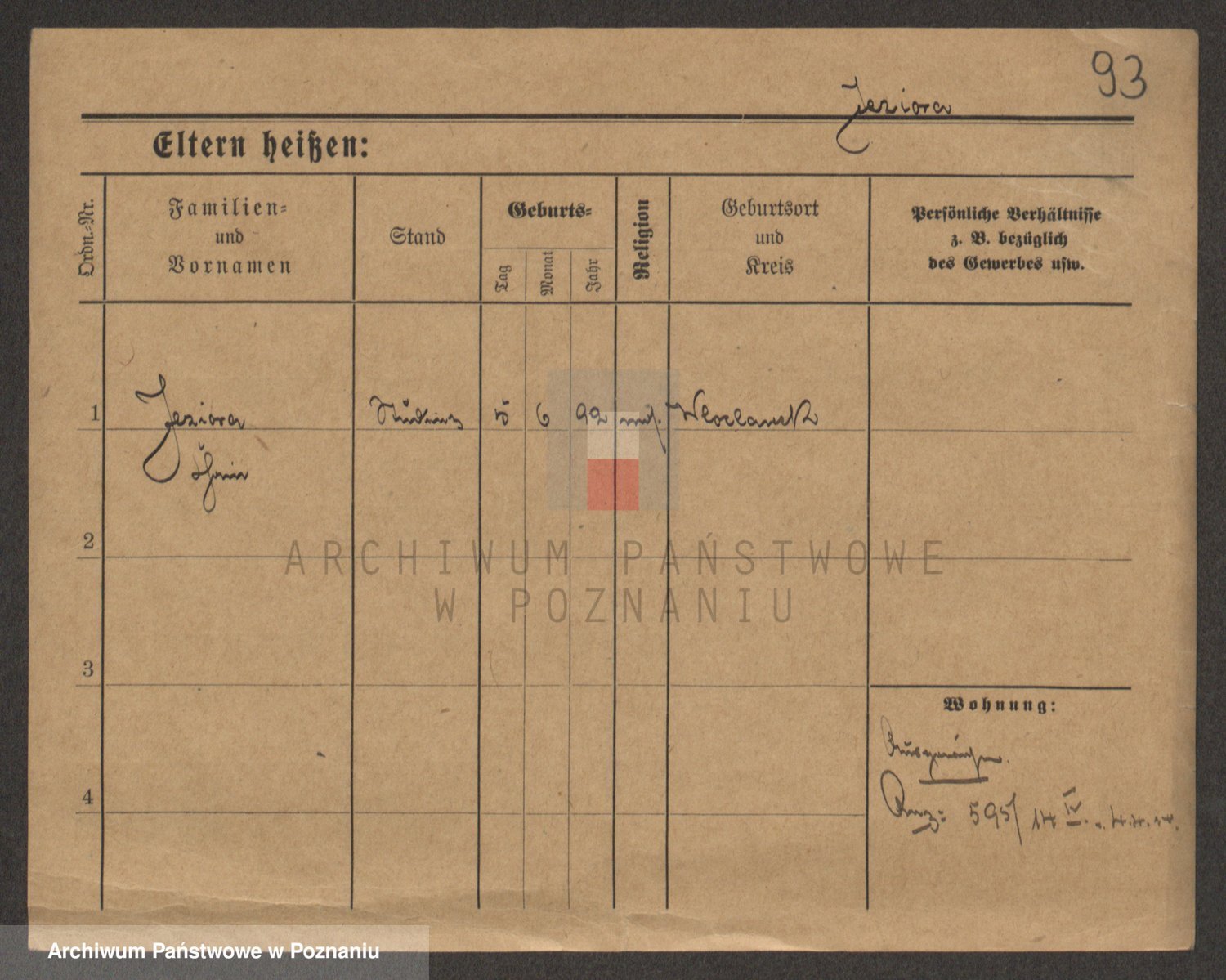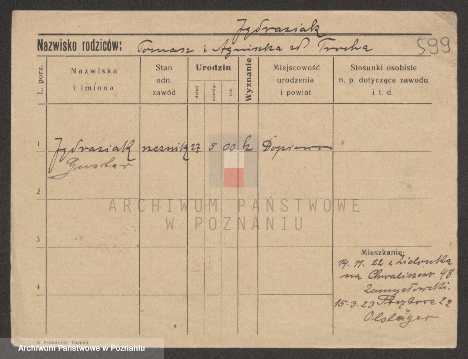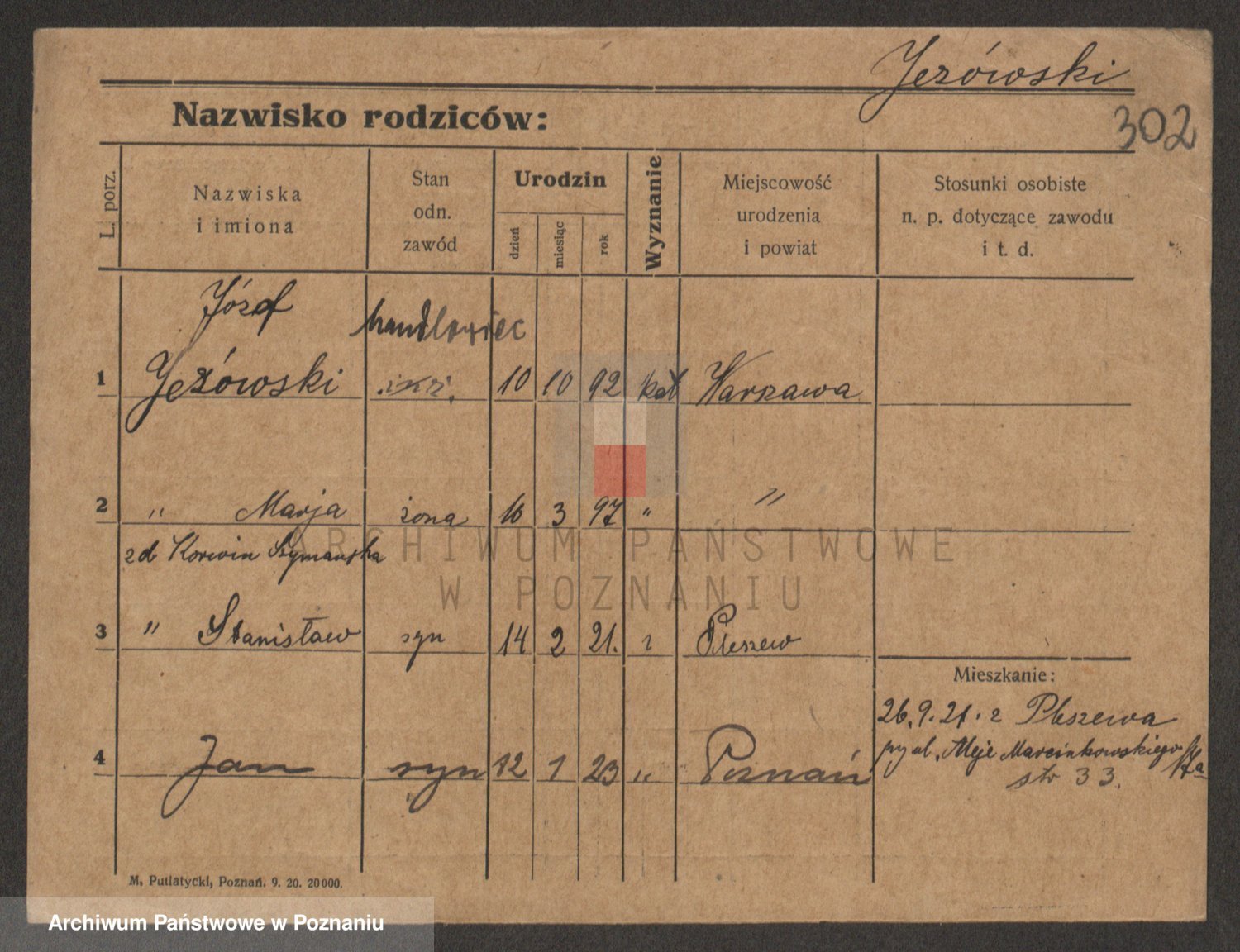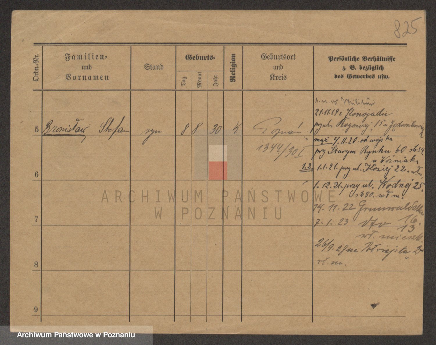 Podgląd karty osobowej dostępny jest po kliknięciu na nazwisko lub ikonkę karty. Można dokonywać powiększenia (ikony na górze) lub przechodzić między kolejnymi skanami (strzałki po bokach).