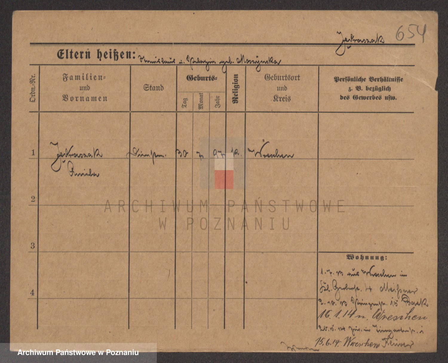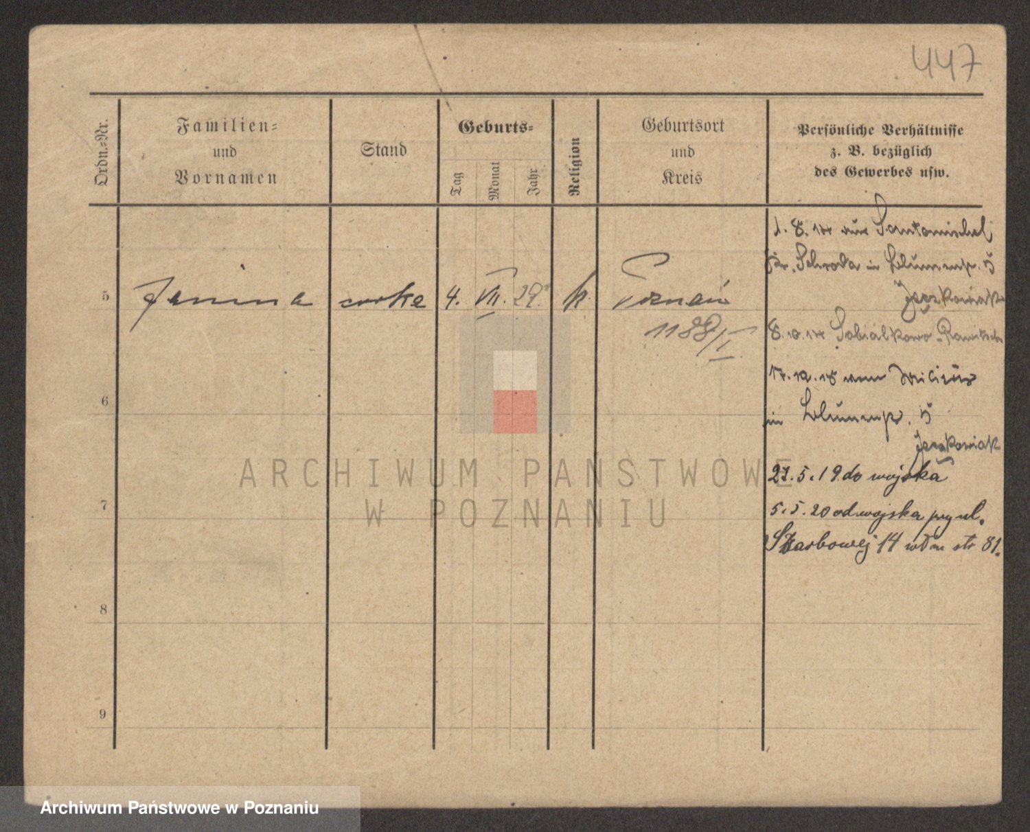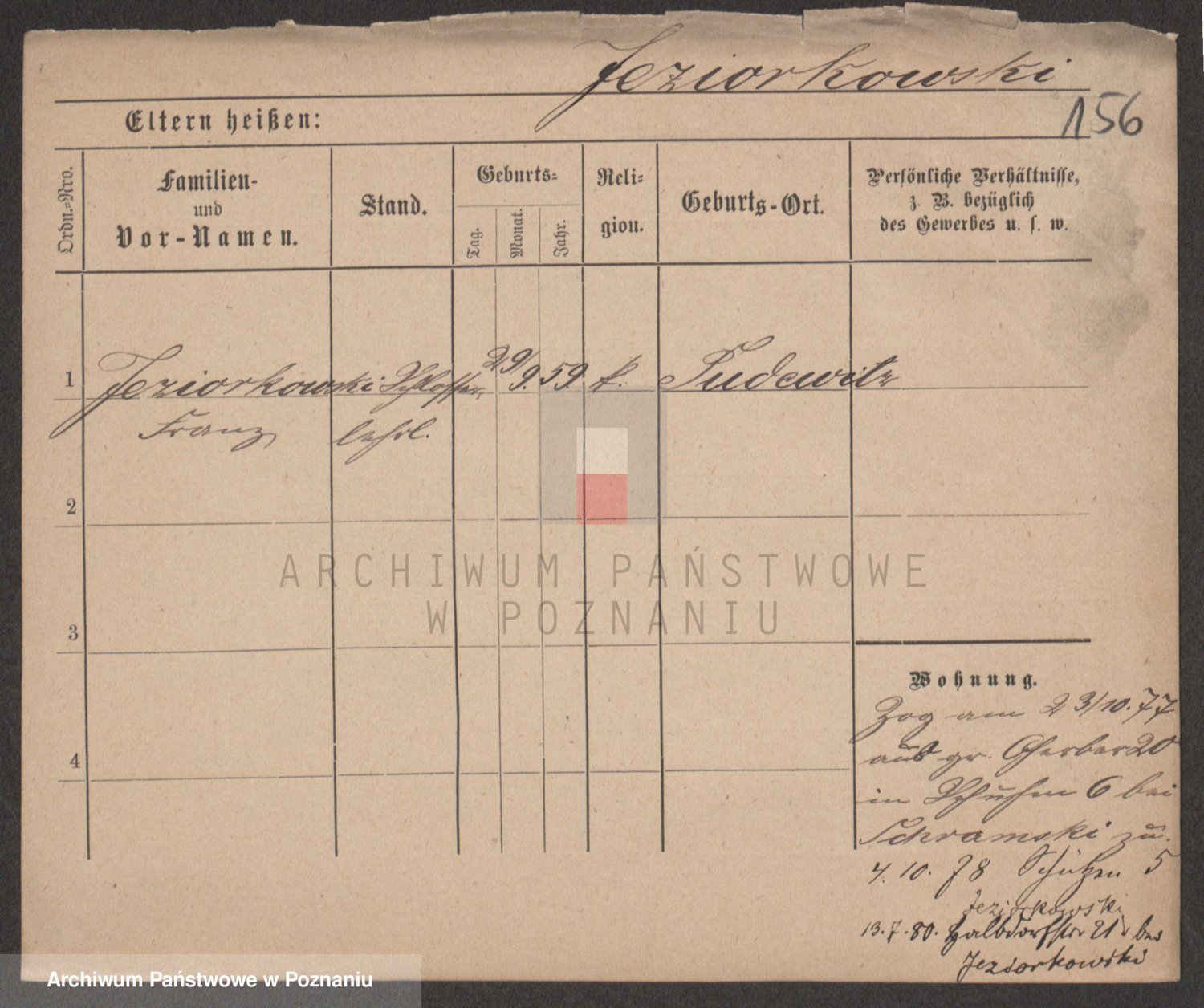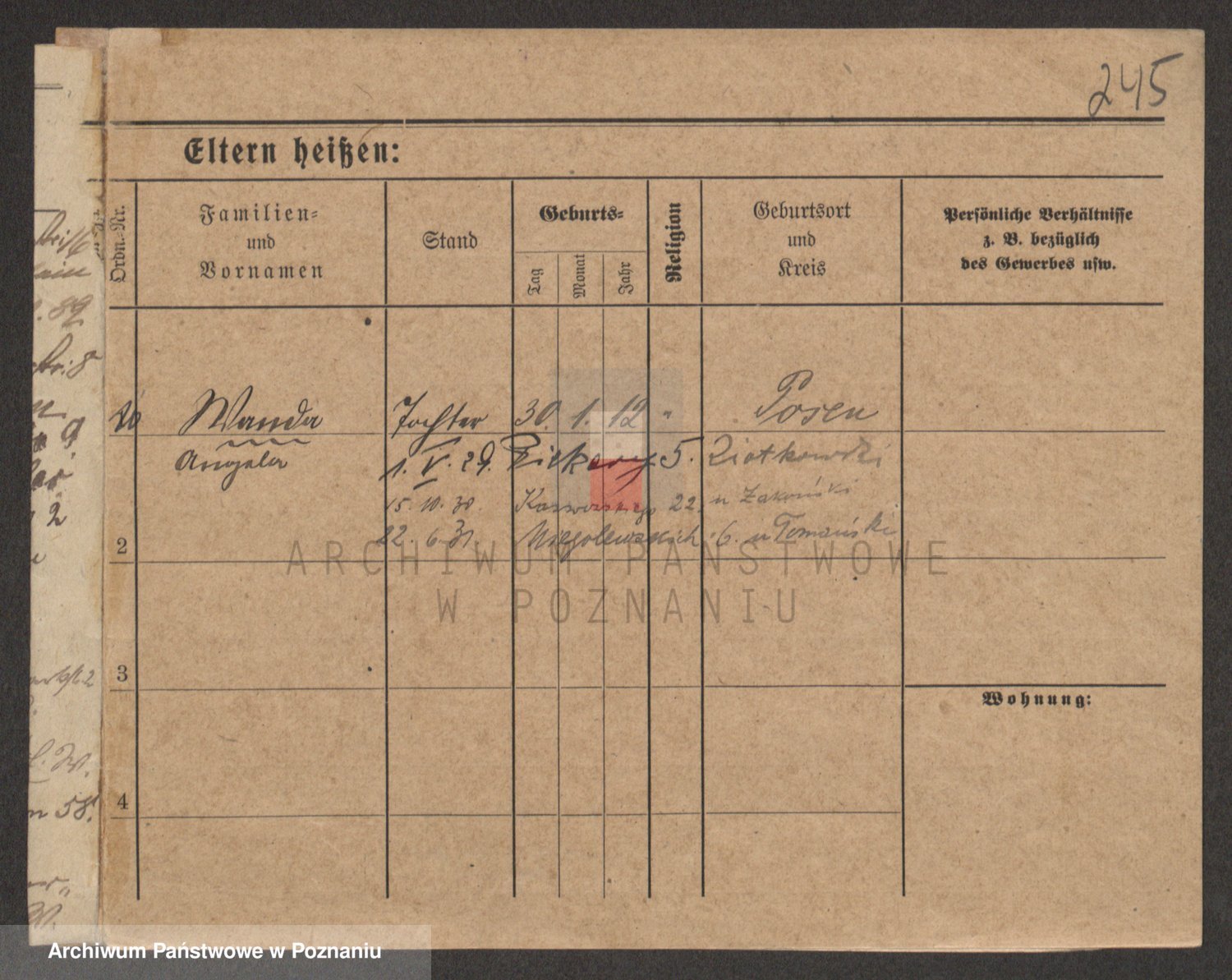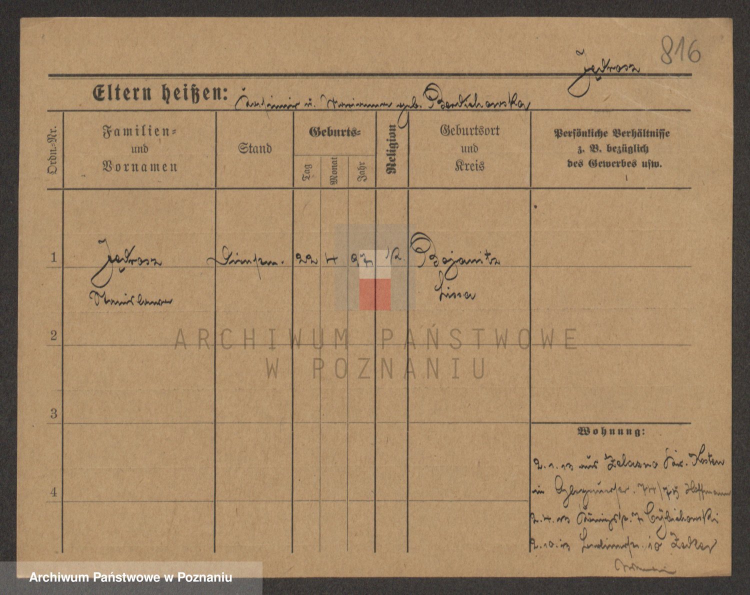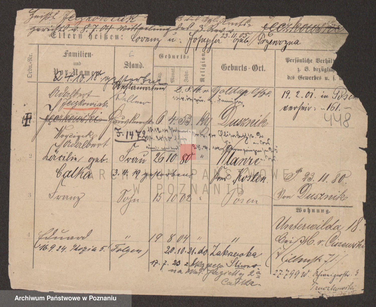Podgląd karty osobowej dostępny jest po kliknięciu na nazwisko lub ikonkę karty. Można dokonywać powiększenia (ikony na górze) lub przechodzić między kolejnymi skanami (strzałki po bokach).
