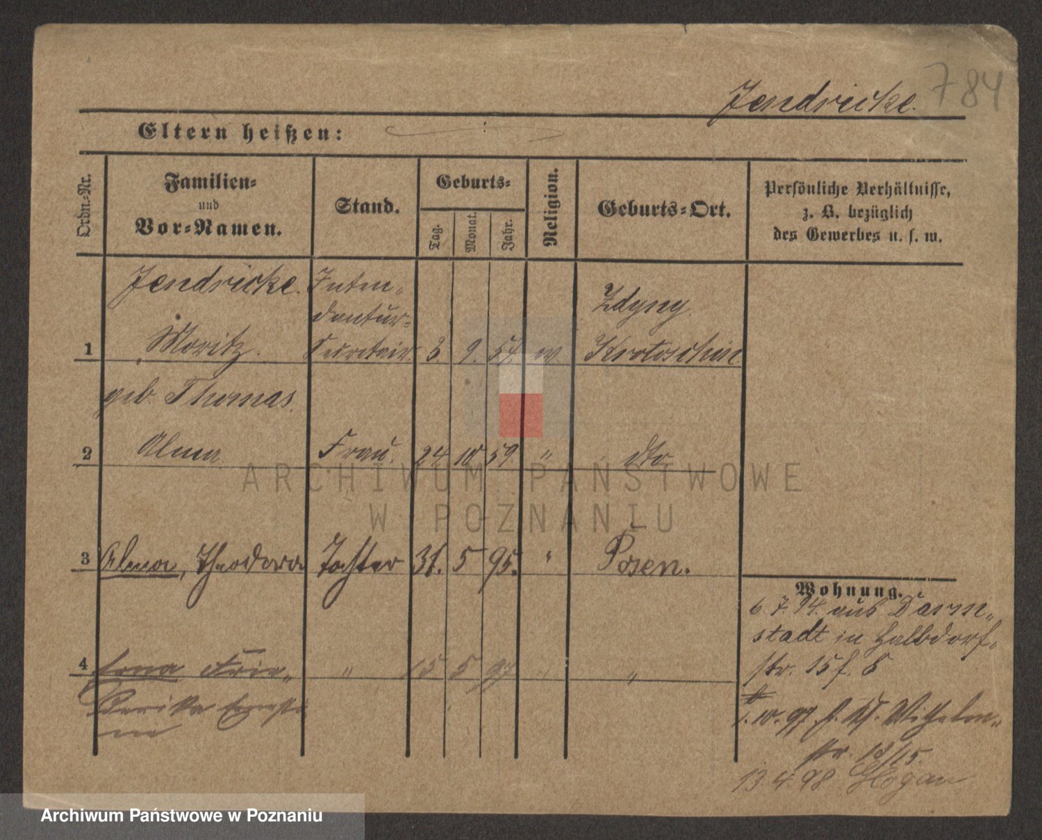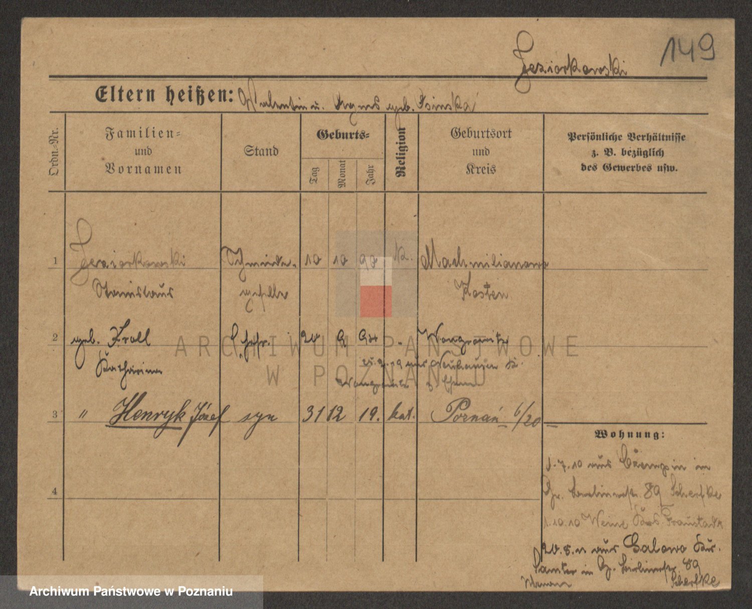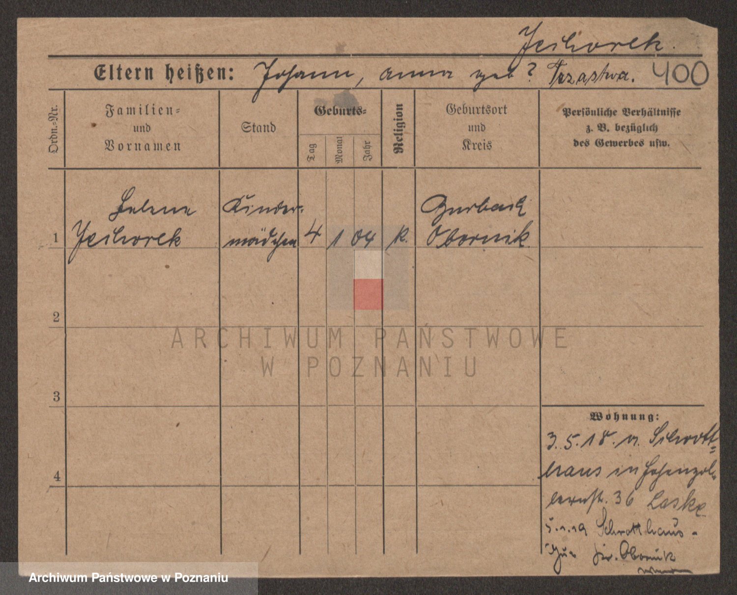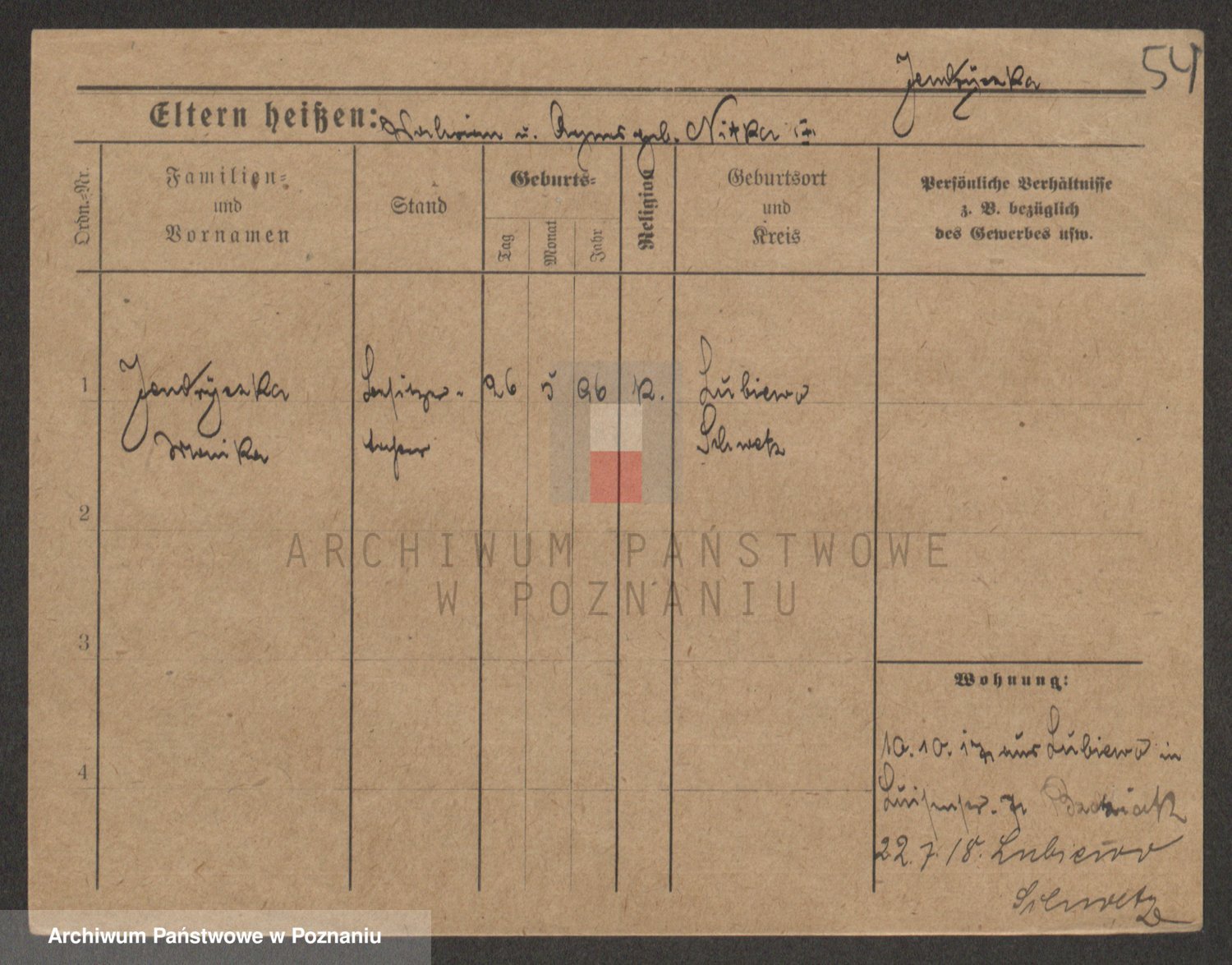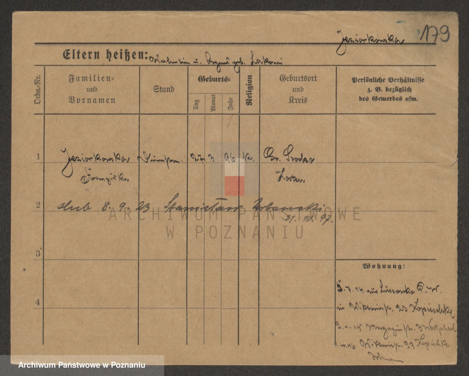 Podgląd karty osobowej dostępny jest po kliknięciu na nazwisko lub ikonkę karty. Można dokonywać powiększenia (ikony na górze) lub przechodzić między kolejnymi skanami (strzałki po bokach).