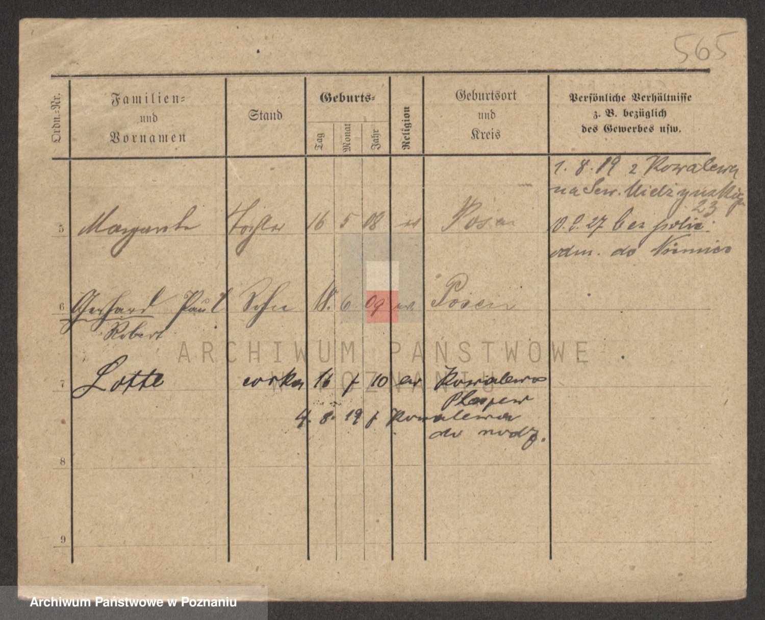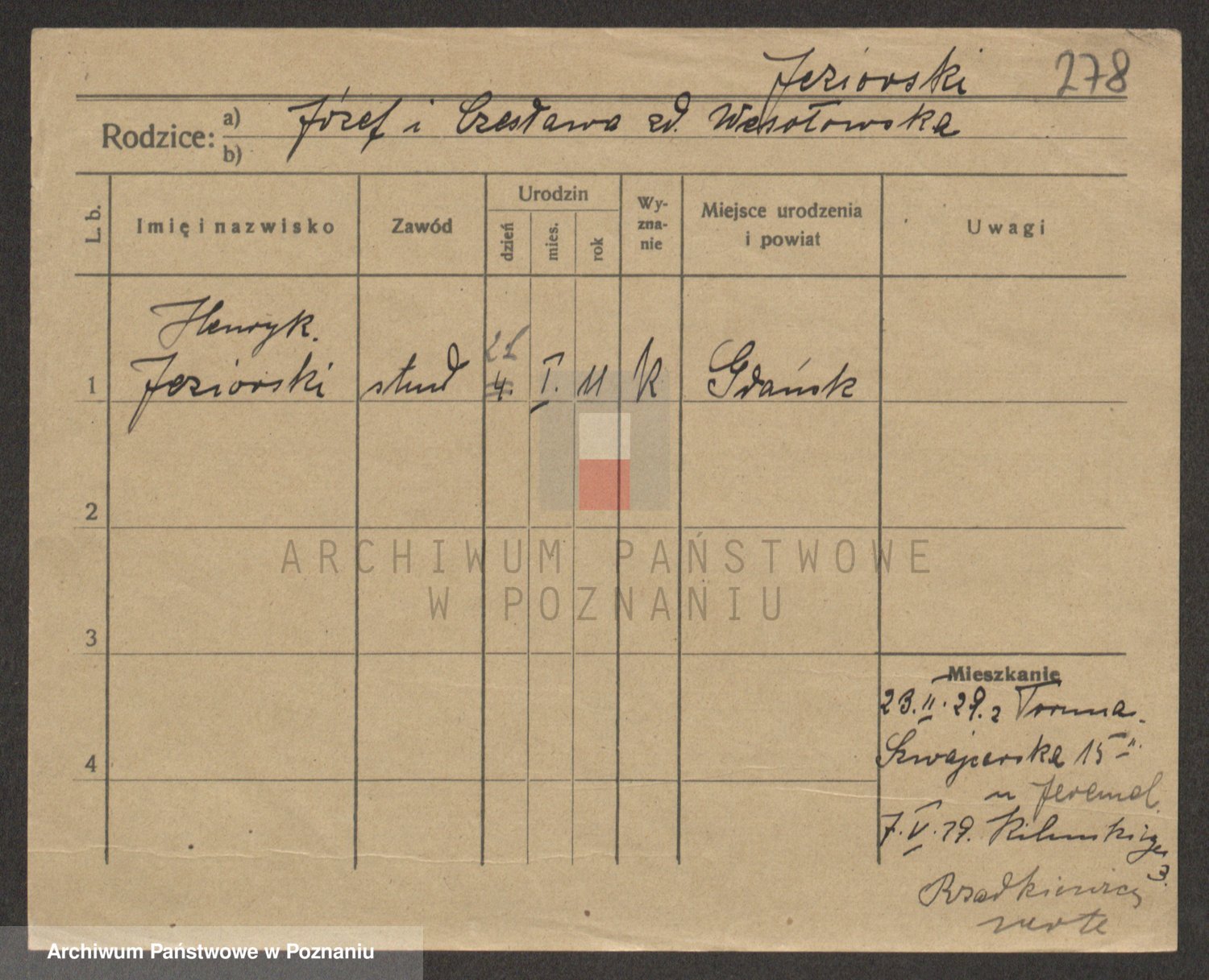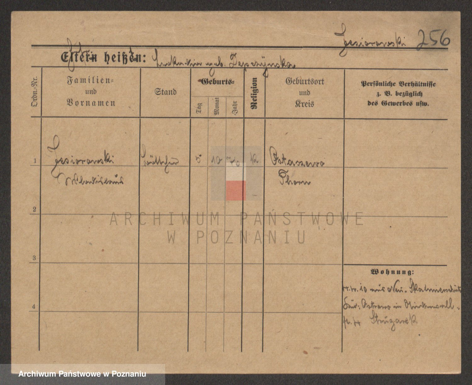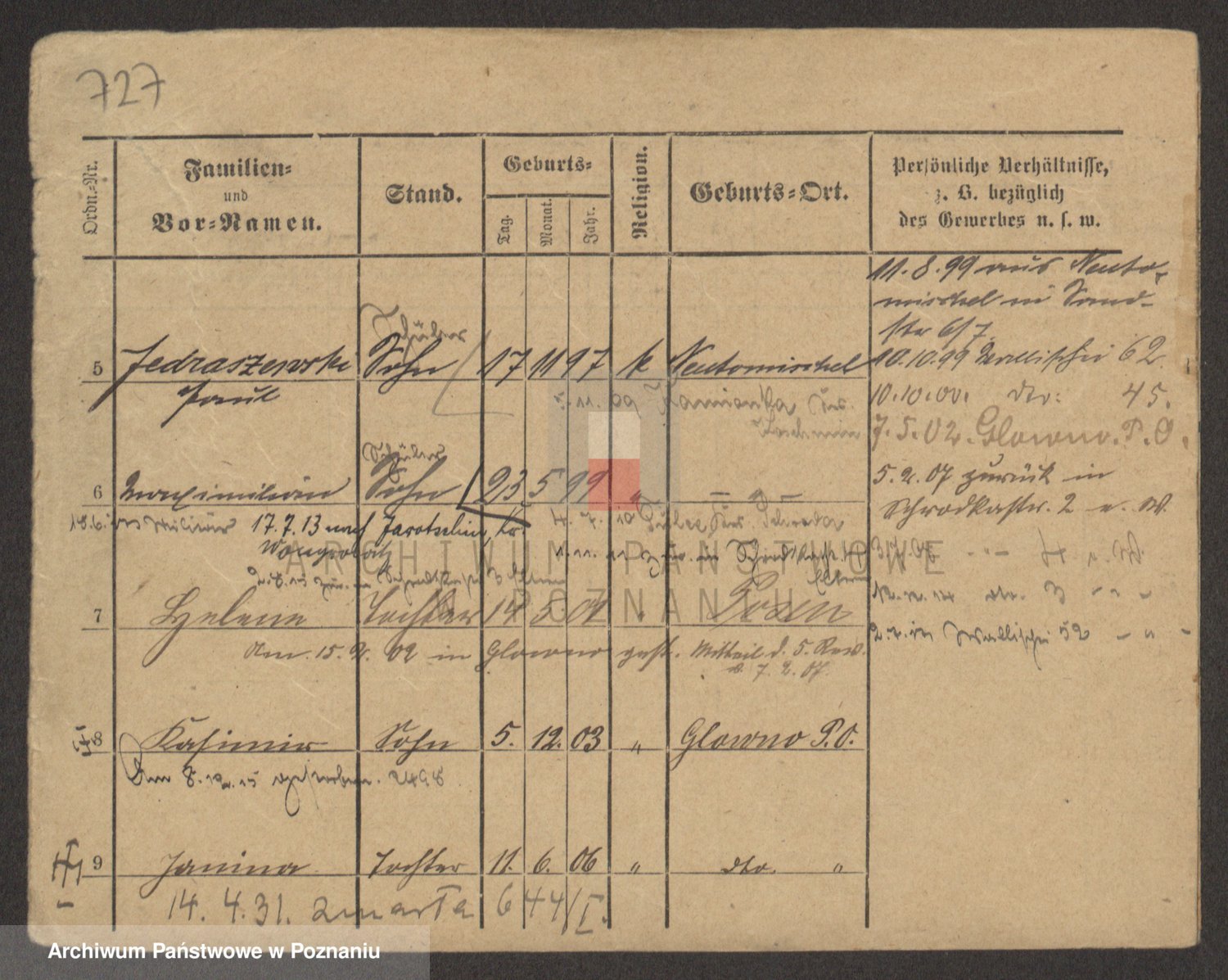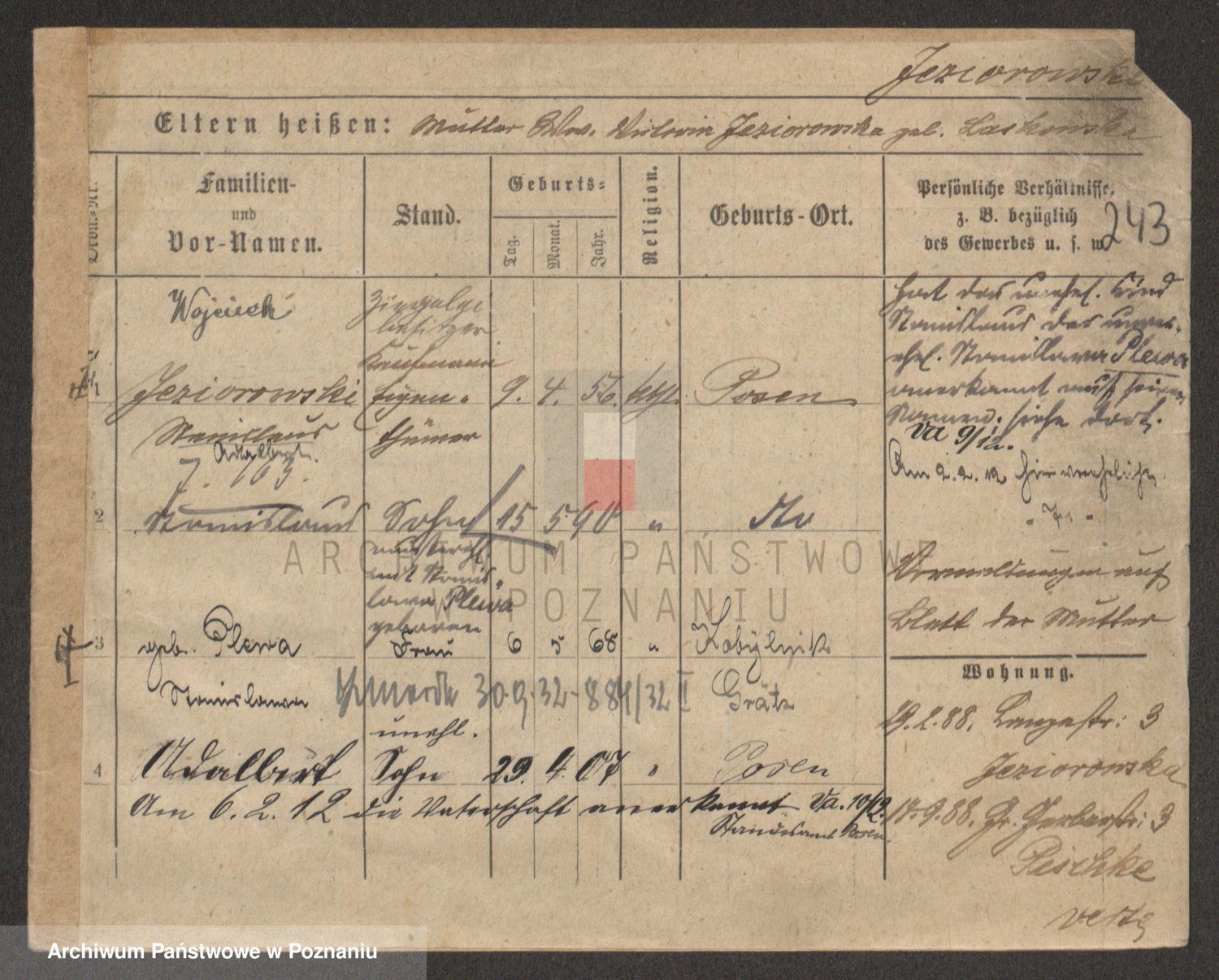 Podgląd karty osobowej dostępny jest po kliknięciu na nazwisko lub ikonkę karty. Można dokonywać powiększenia (ikony na górze) lub przechodzić między kolejnymi skanami (strzałki po bokach).