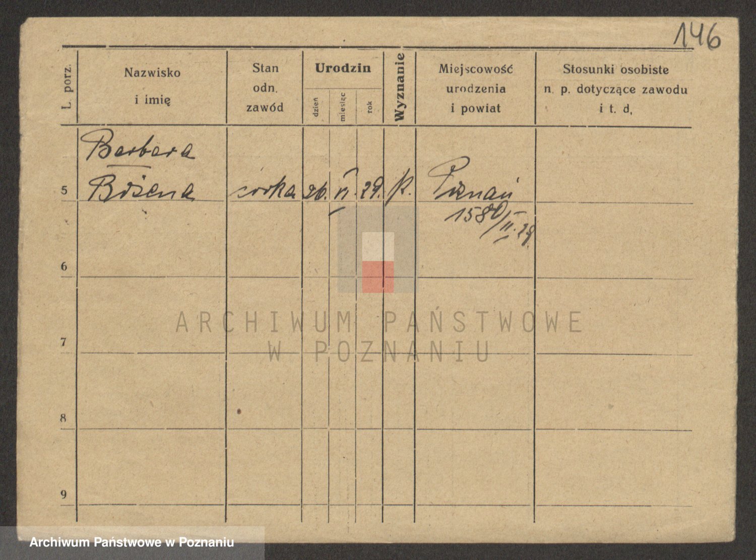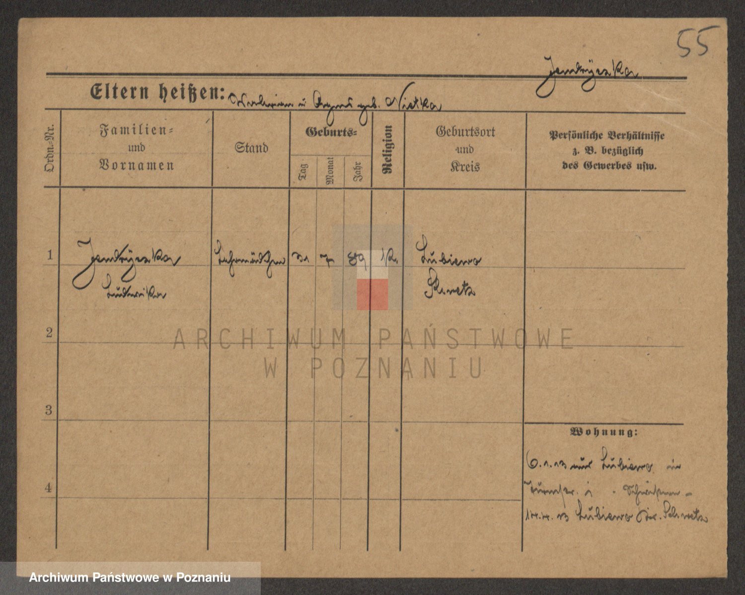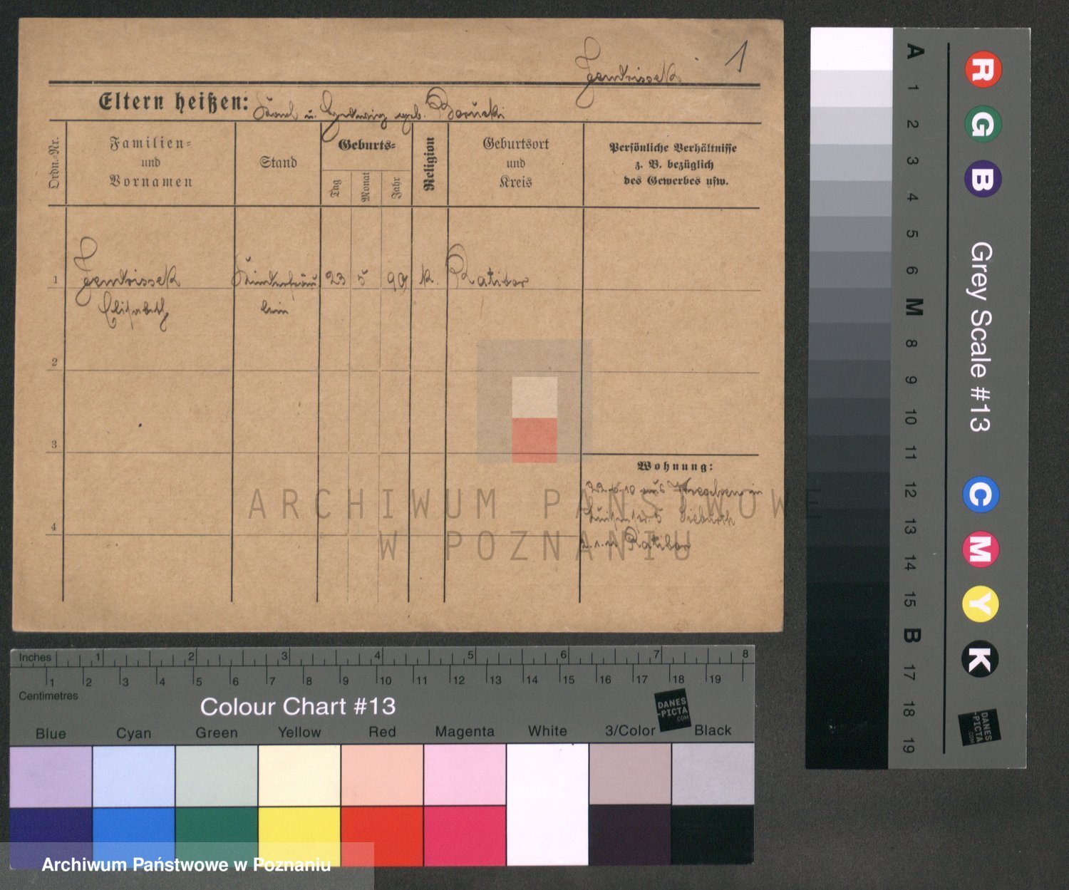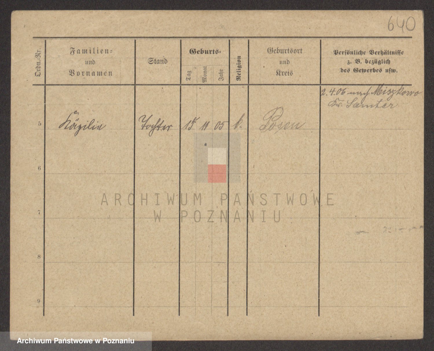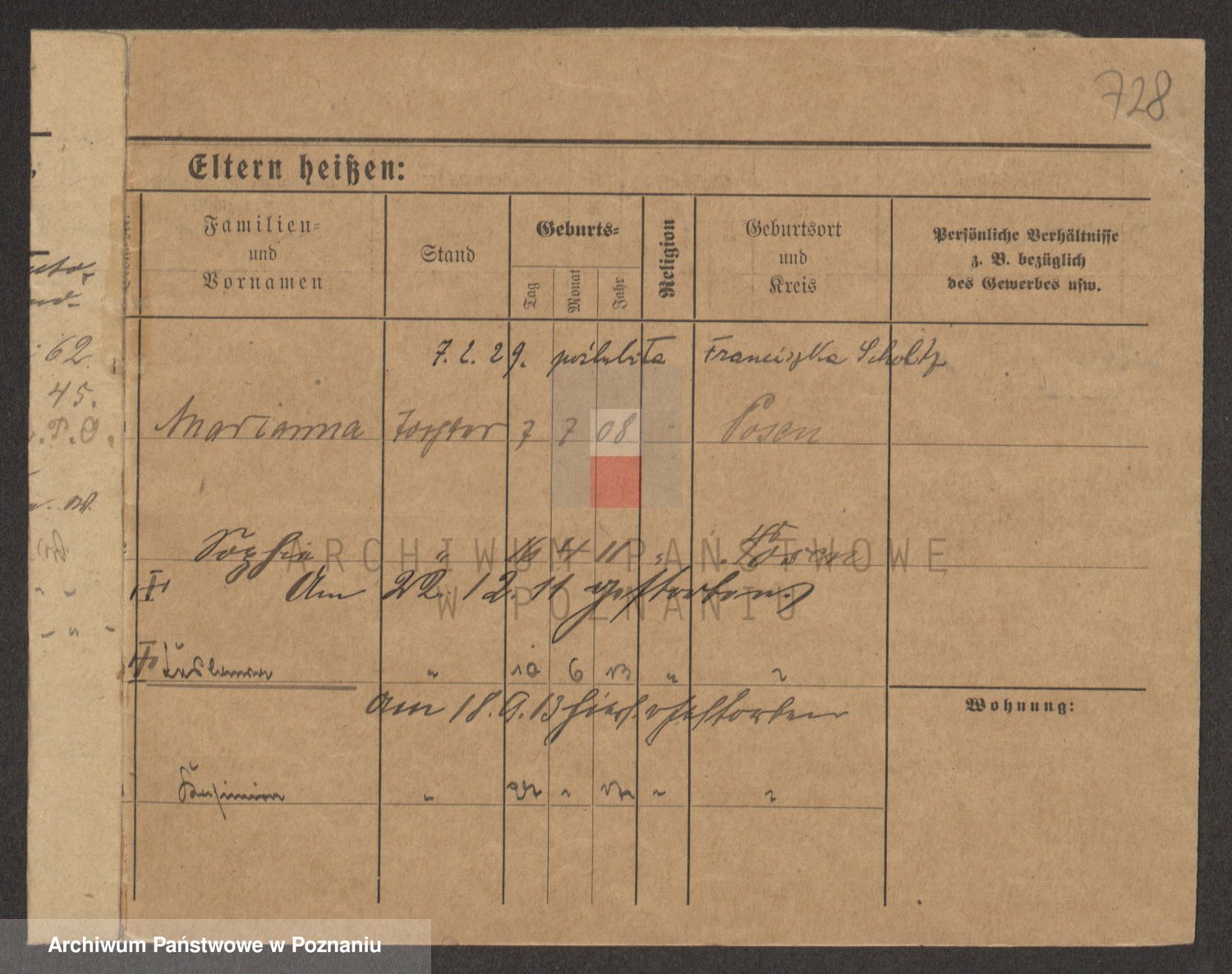 Podgląd karty osobowej dostępny jest po kliknięciu na nazwisko lub ikonkę karty. Można dokonywać powiększenia (ikony na górze) lub przechodzić między kolejnymi skanami (strzałki po bokach).