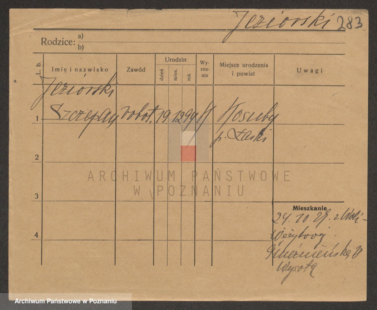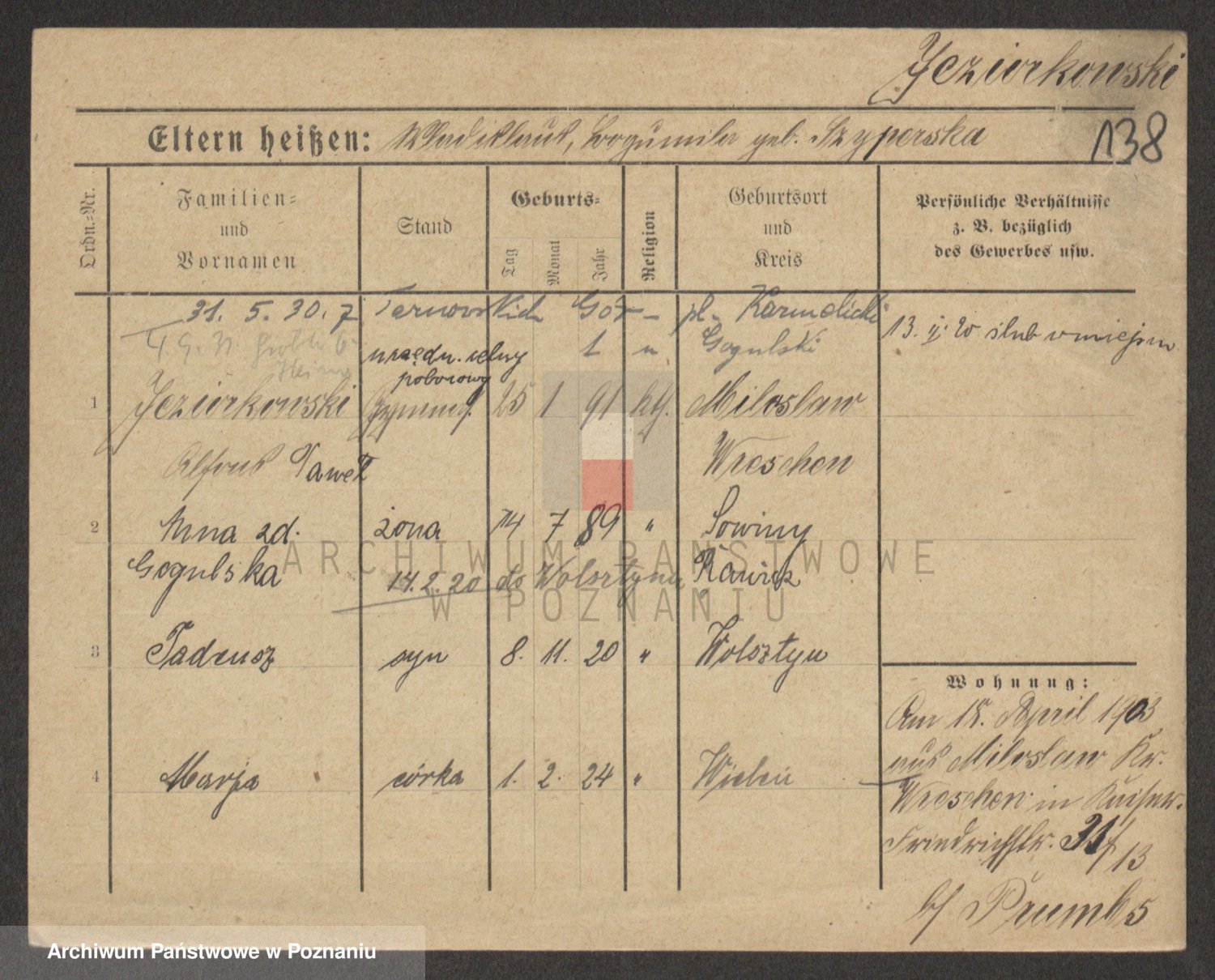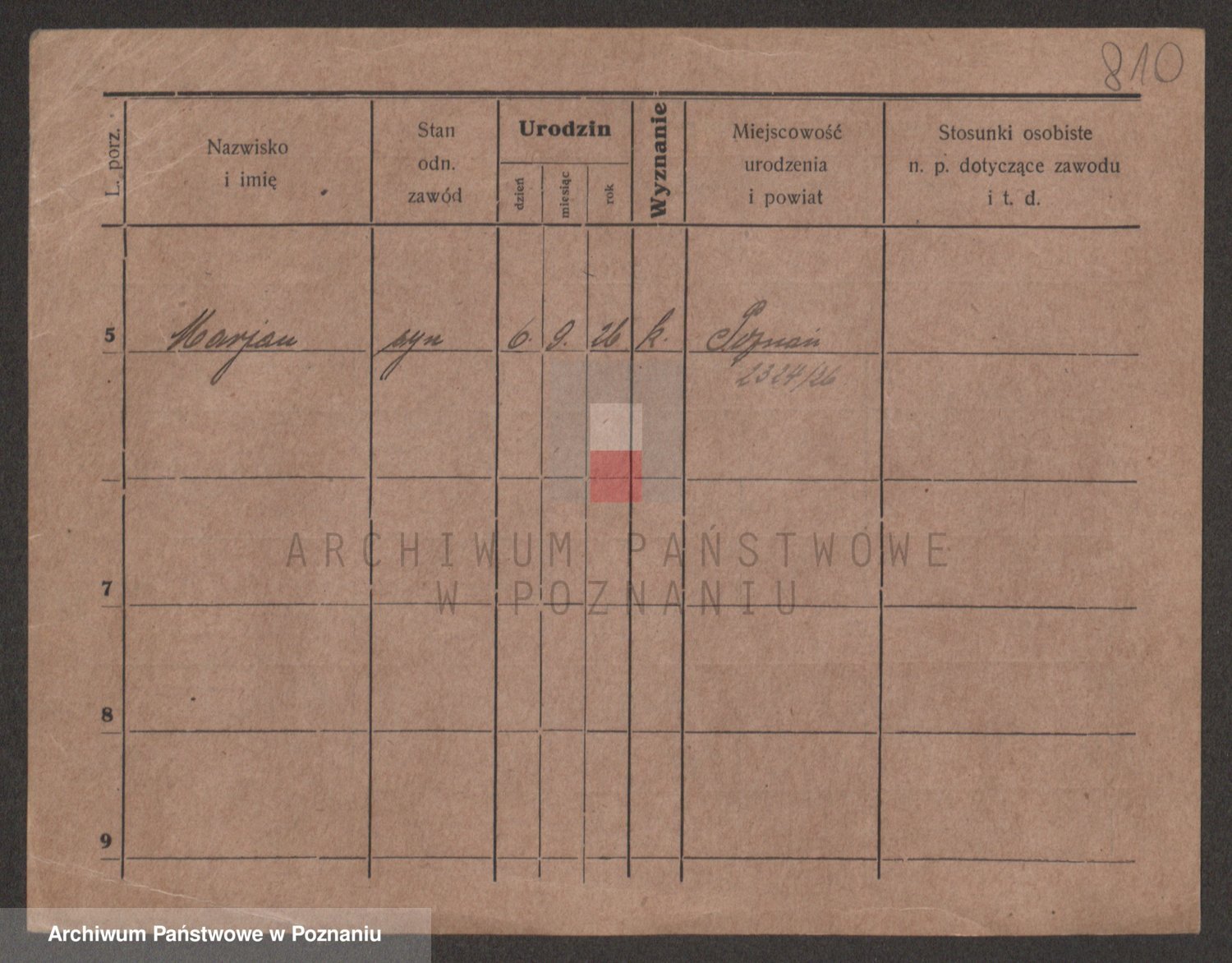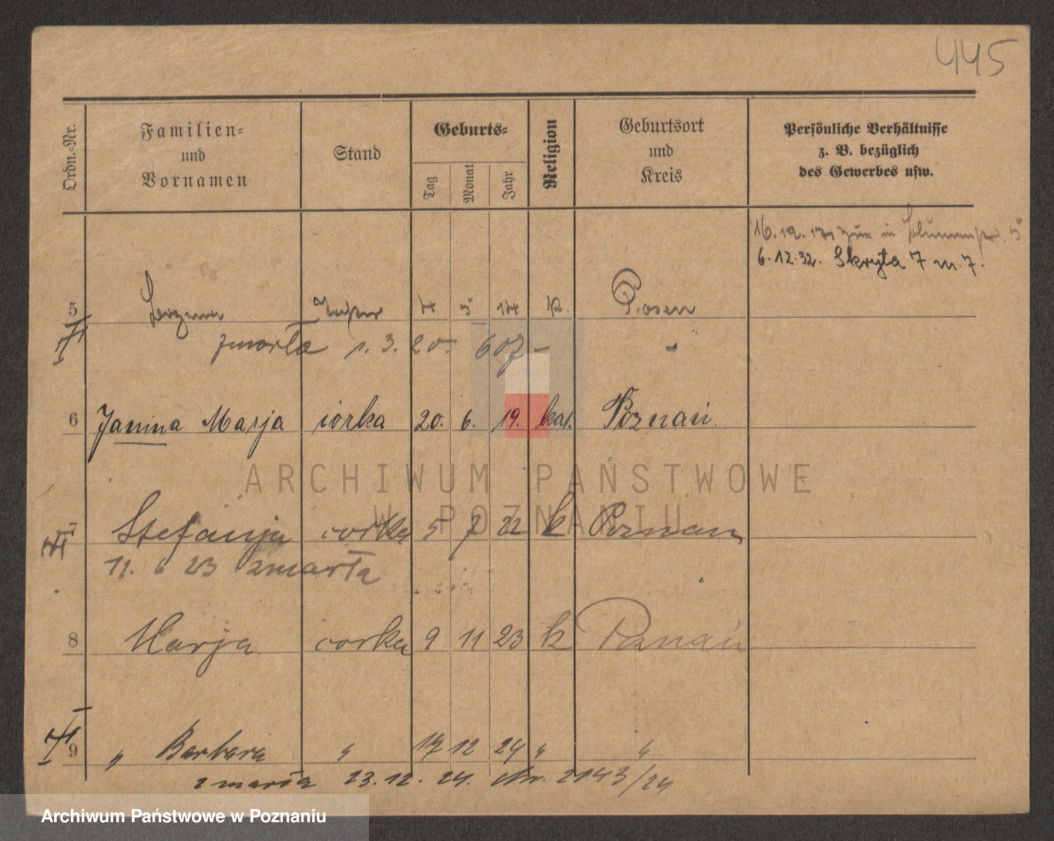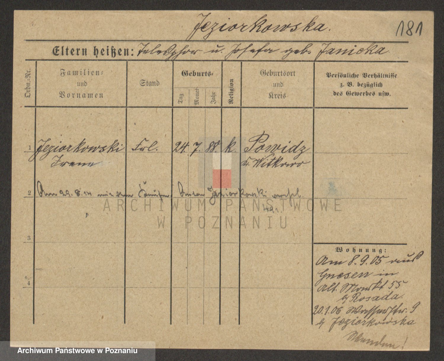 Podgląd karty osobowej dostępny jest po kliknięciu na nazwisko lub ikonkę karty. Można dokonywać powiększenia (ikony na górze) lub przechodzić między kolejnymi skanami (strzałki po bokach).