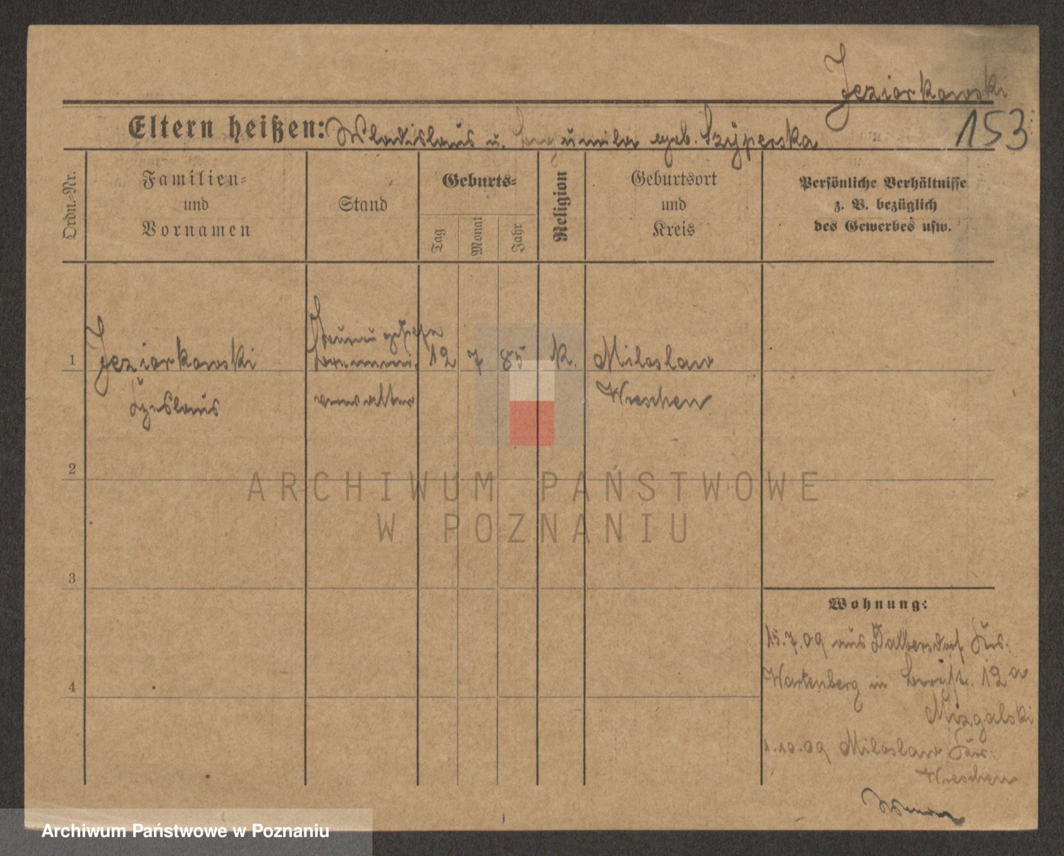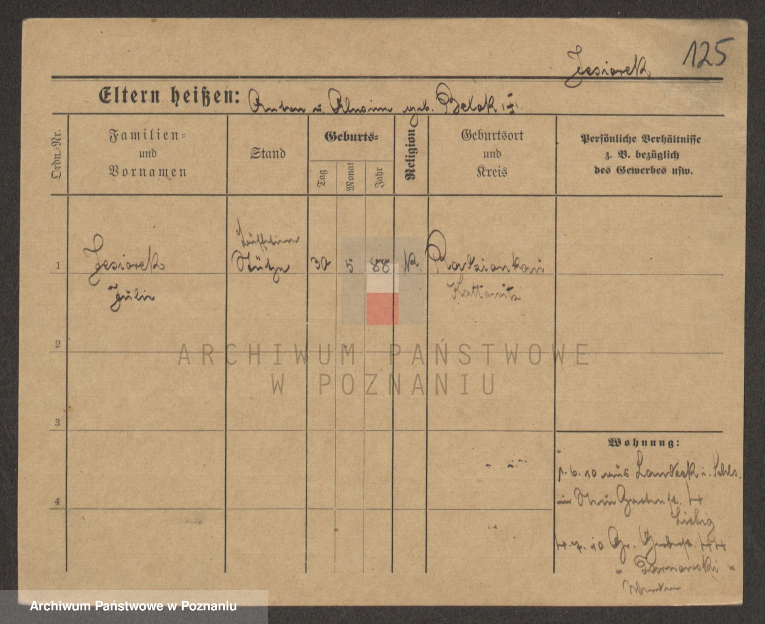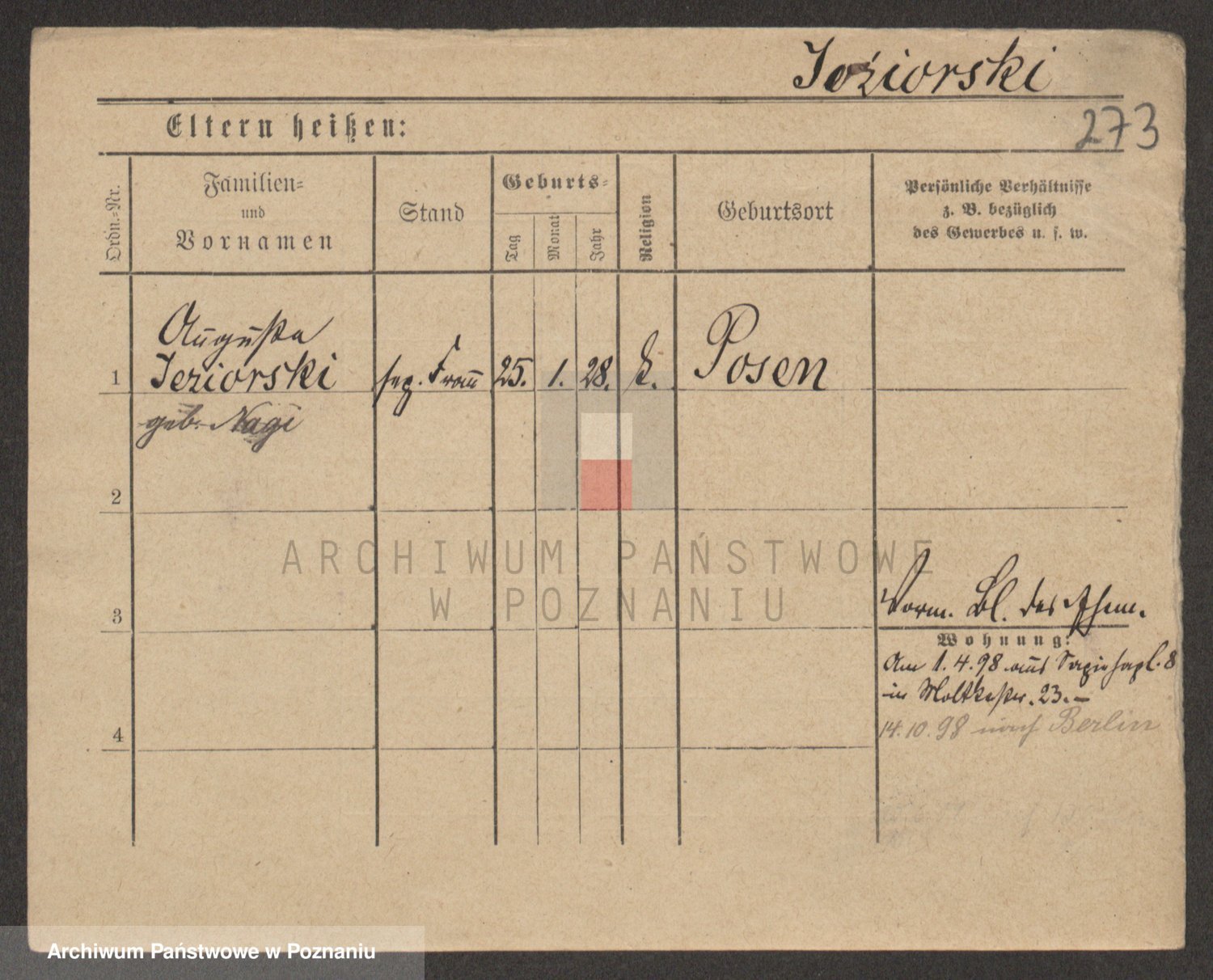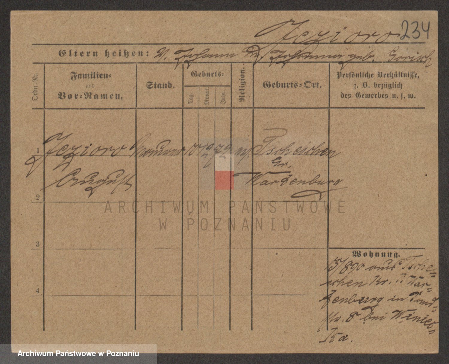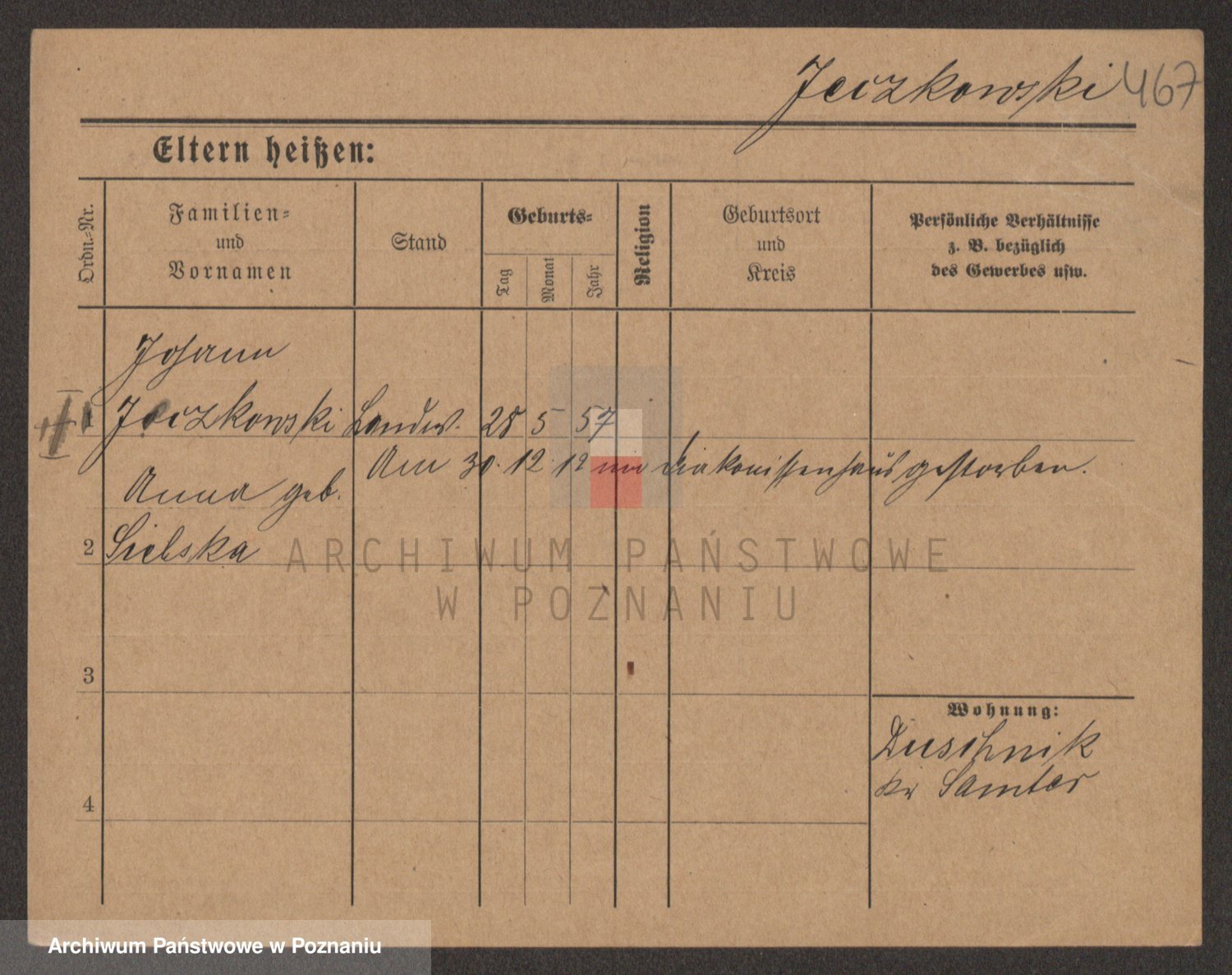 Podgląd karty osobowej dostępny jest po kliknięciu na nazwisko lub ikonkę karty. Można dokonywać powiększenia (ikony na górze) lub przechodzić między kolejnymi skanami (strzałki po bokach).