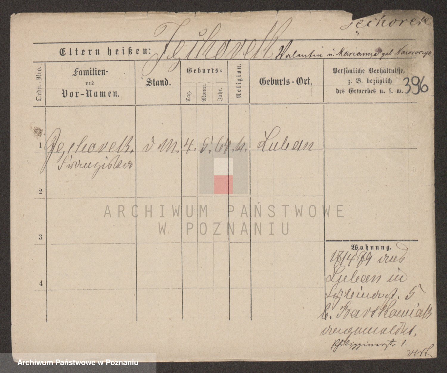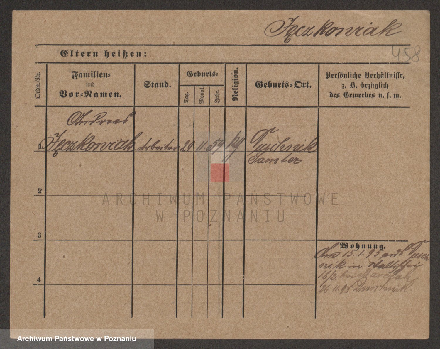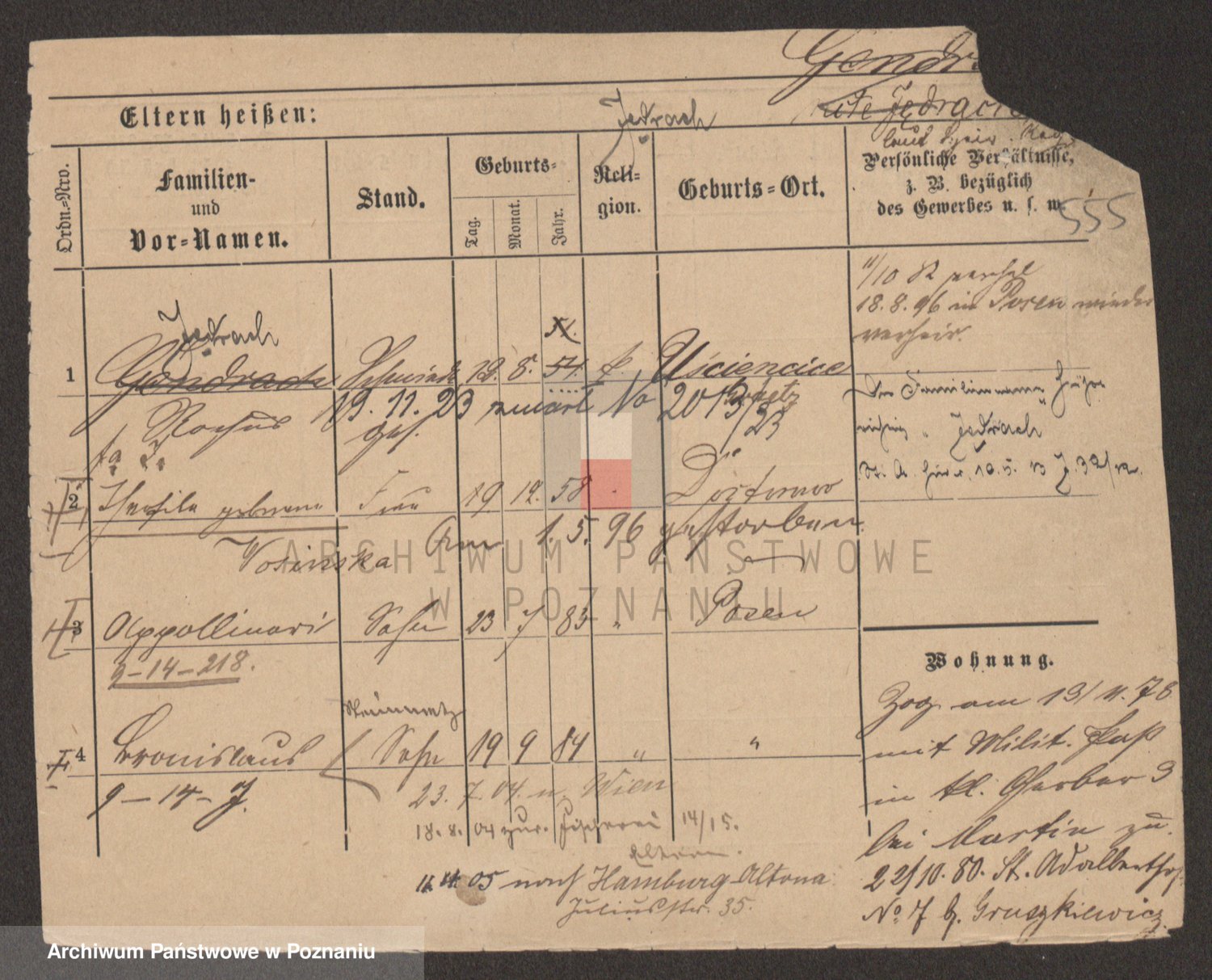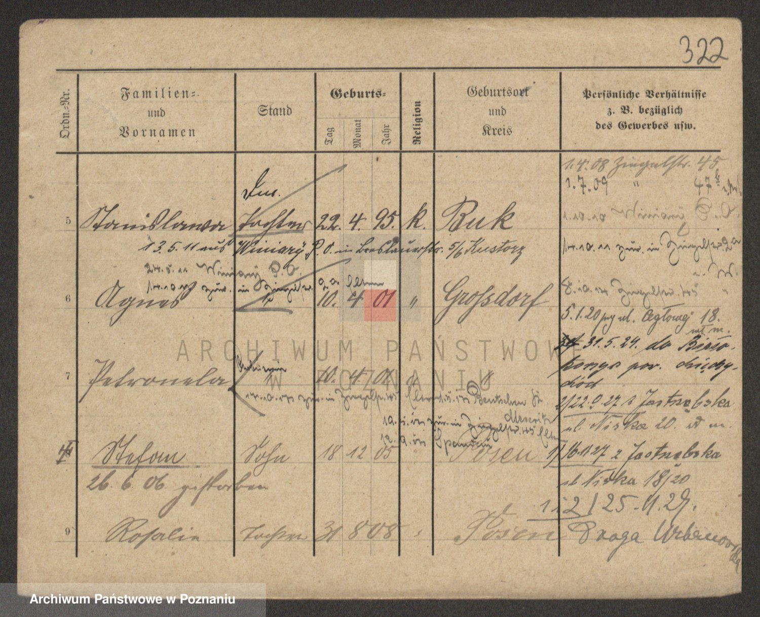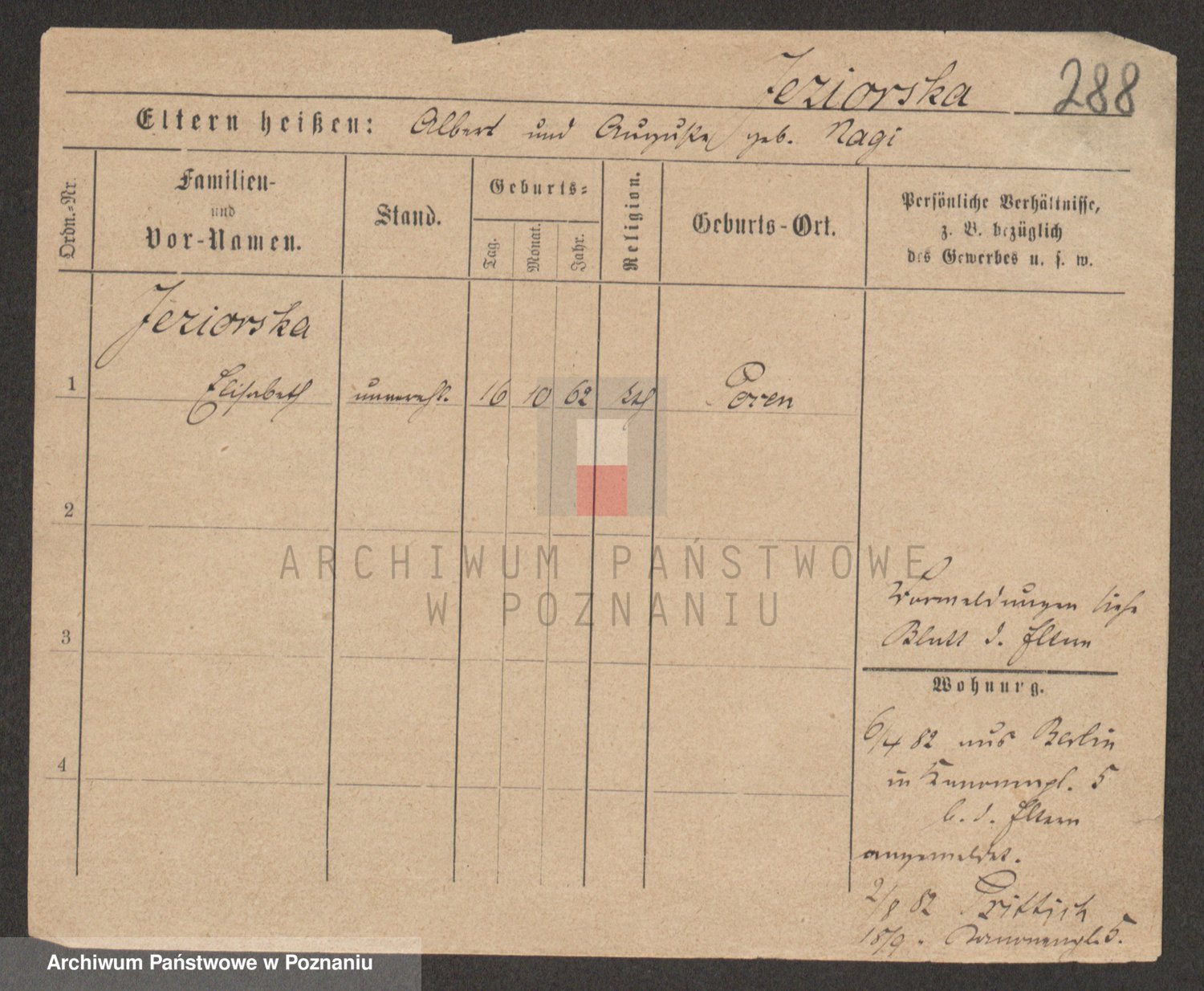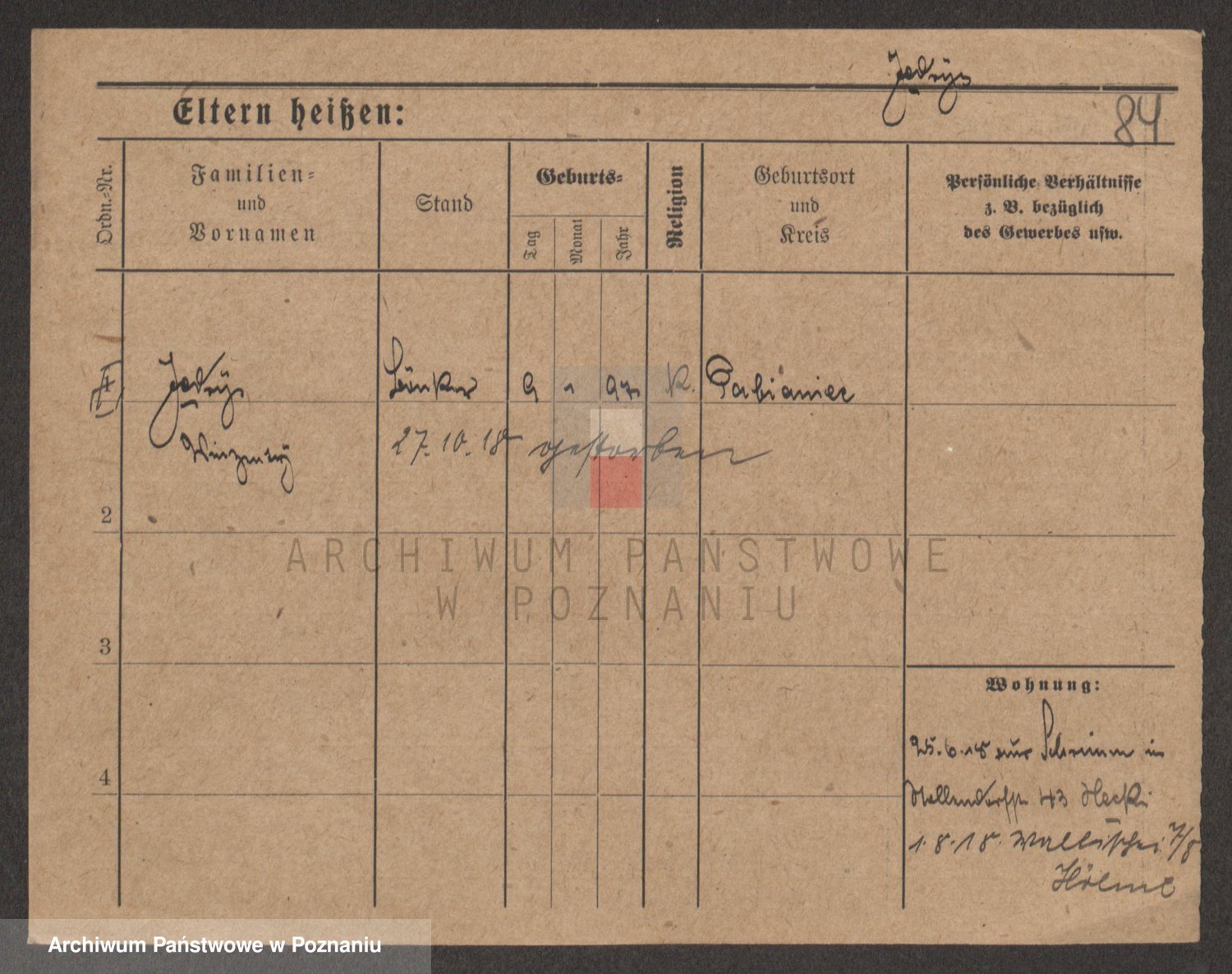 Podgląd karty osobowej dostępny jest po kliknięciu na nazwisko lub ikonkę karty. Można dokonywać powiększenia (ikony na górze) lub przechodzić między kolejnymi skanami (strzałki po bokach).