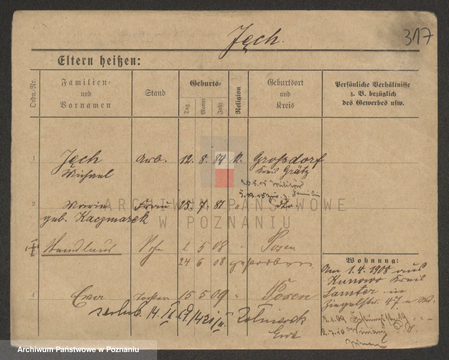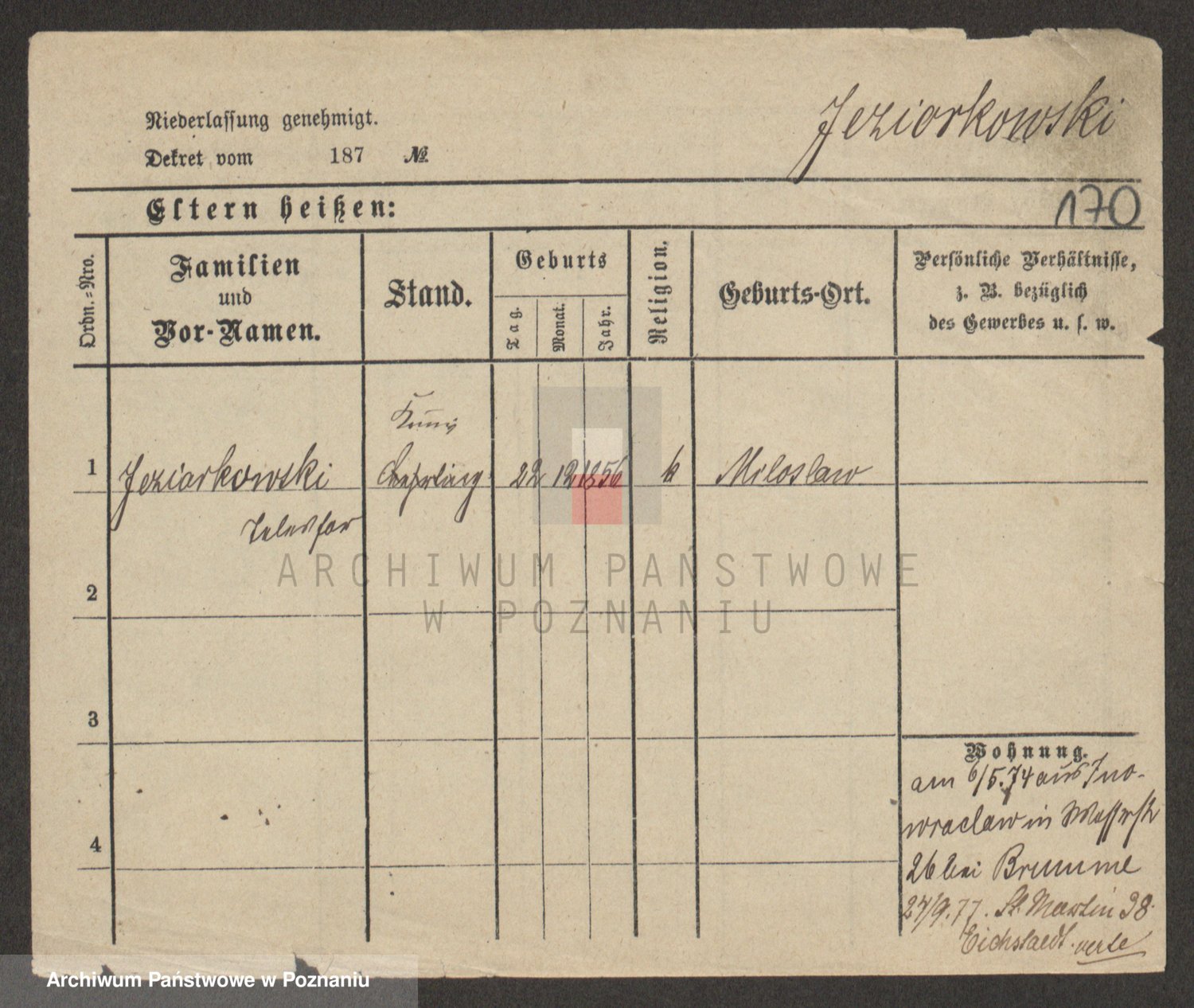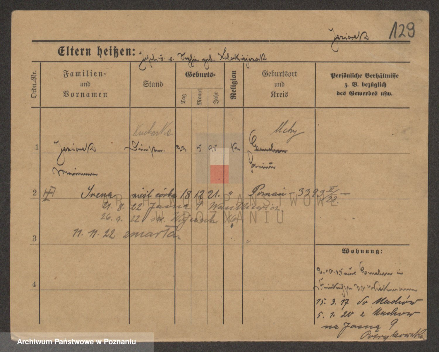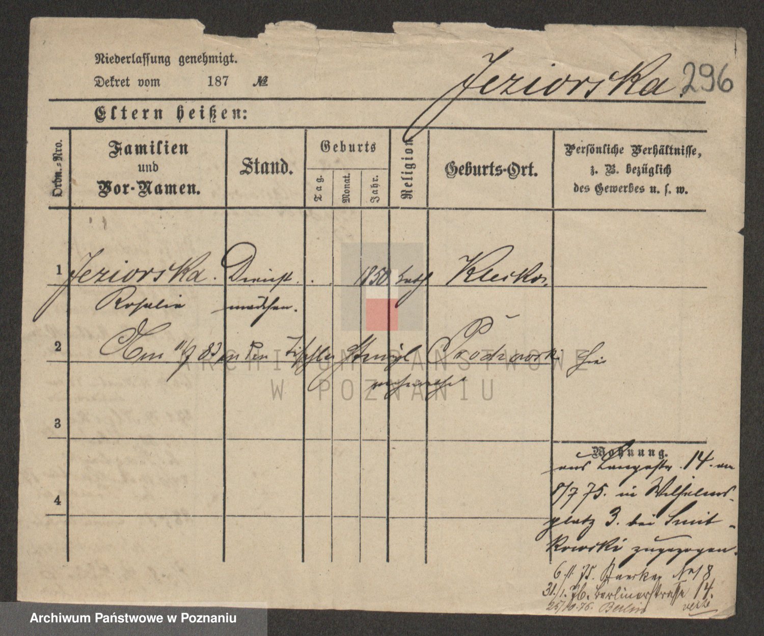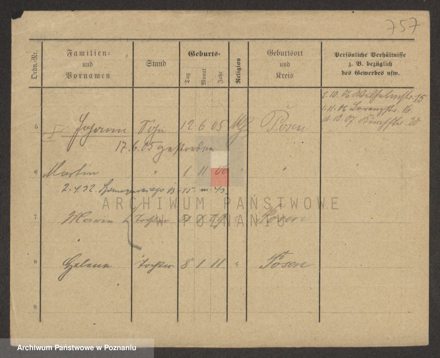 Podgląd karty osobowej dostępny jest po kliknięciu na nazwisko lub ikonkę karty. Można dokonywać powiększenia (ikony na górze) lub przechodzić między kolejnymi skanami (strzałki po bokach).