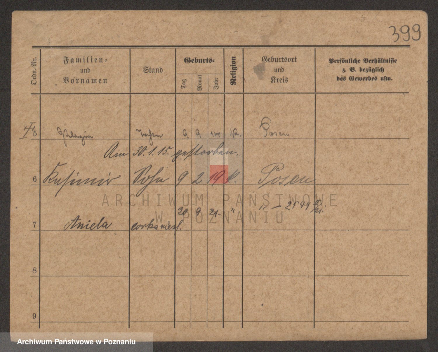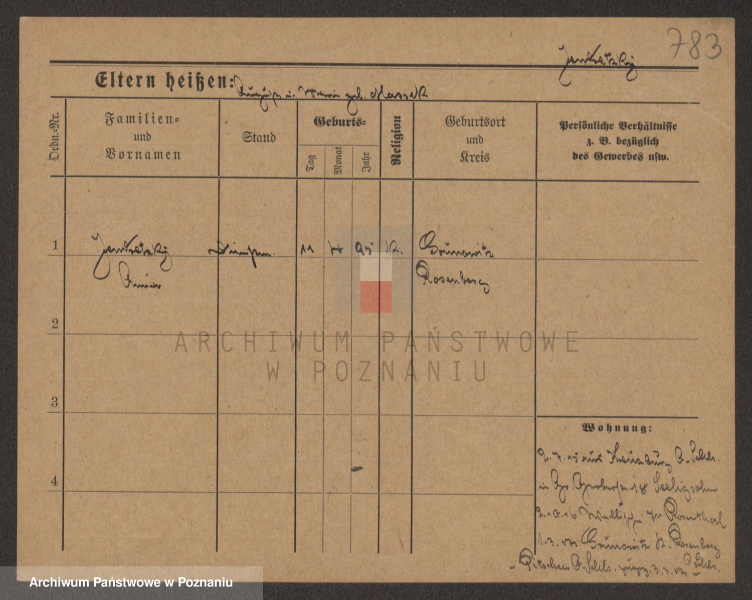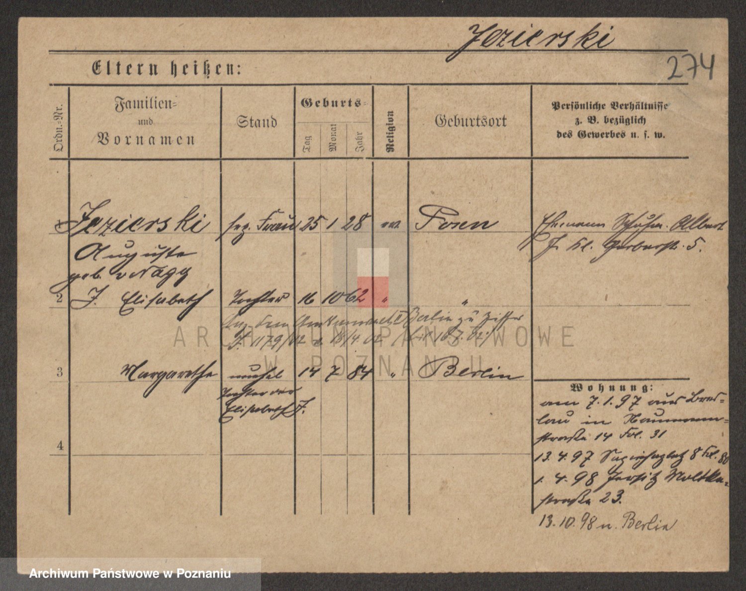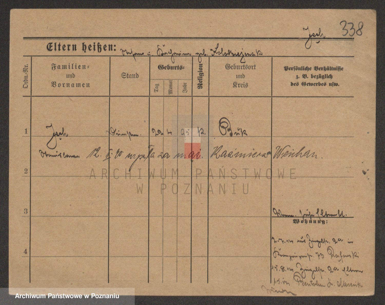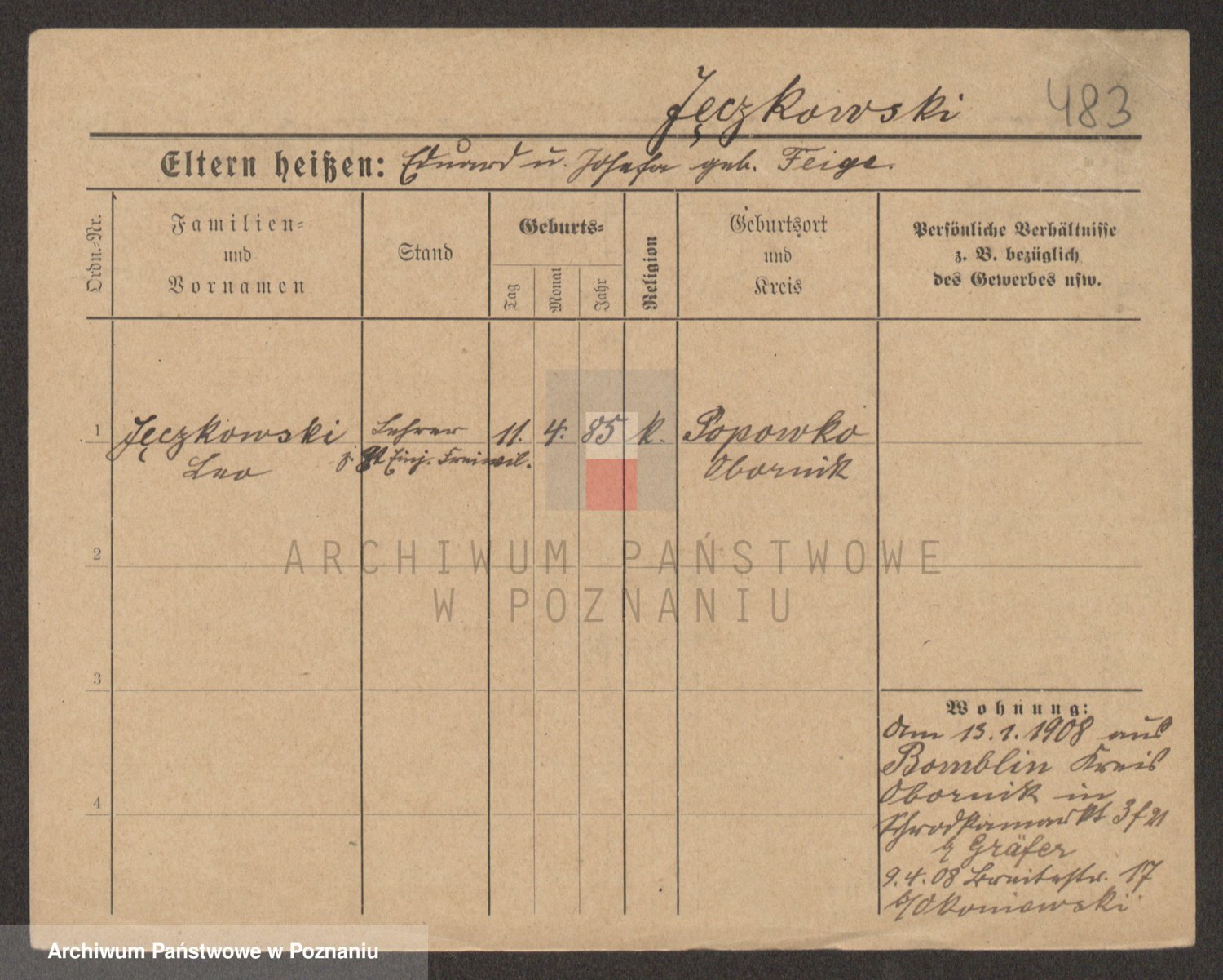 Podgląd karty osobowej dostępny jest po kliknięciu na nazwisko lub ikonkę karty. Można dokonywać powiększenia (ikony na górze) lub przechodzić między kolejnymi skanami (strzałki po bokach).