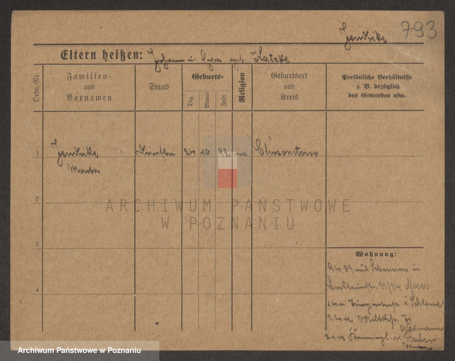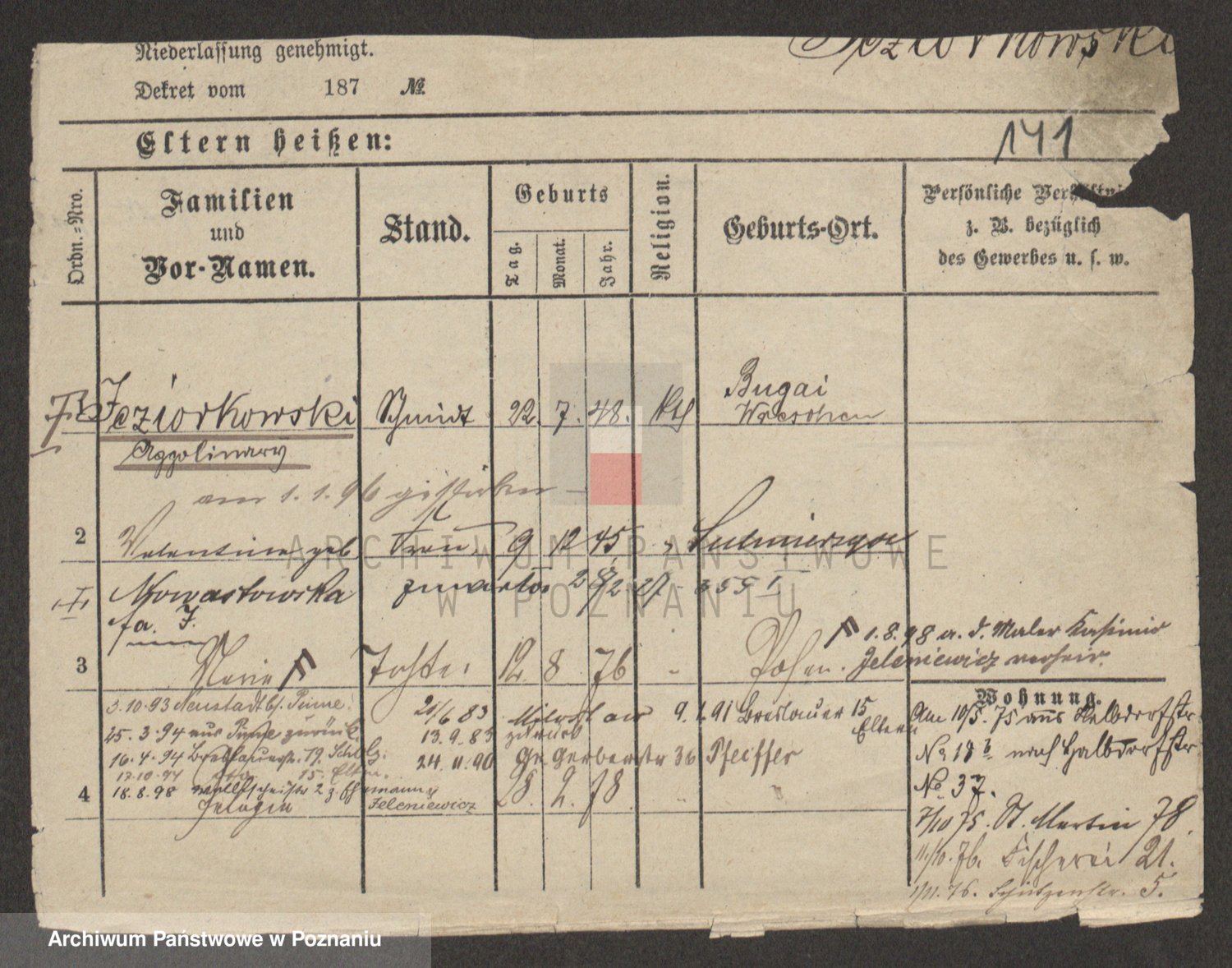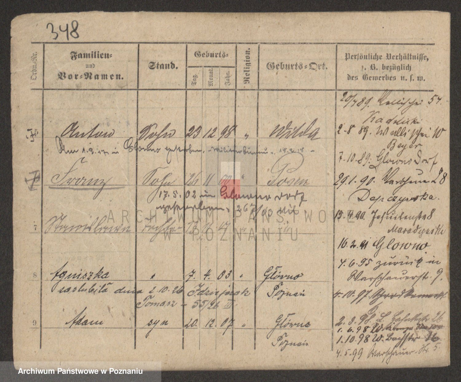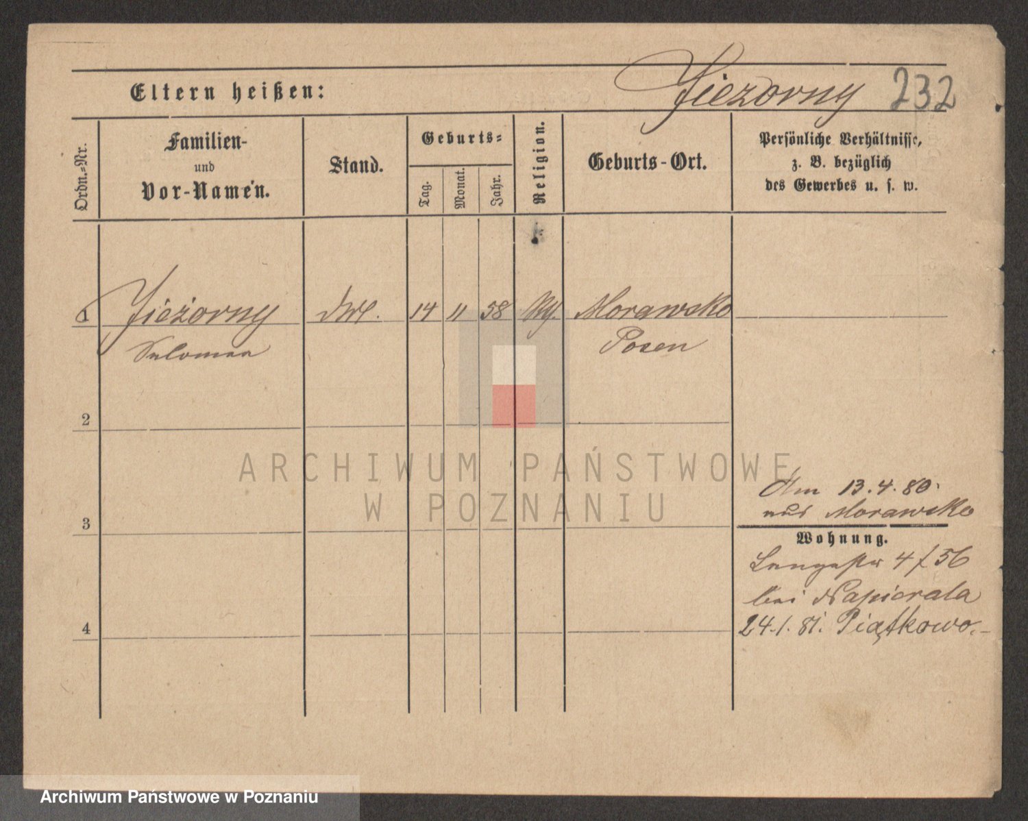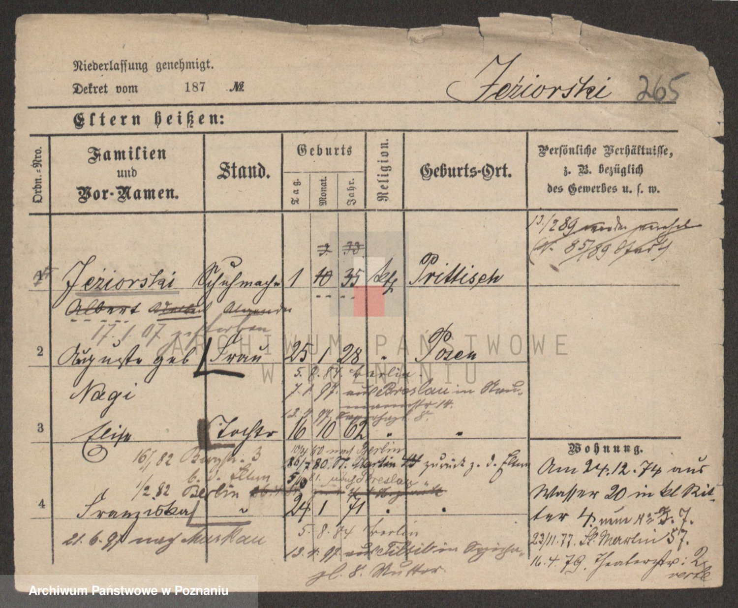 Podgląd karty osobowej dostępny jest po kliknięciu na nazwisko lub ikonkę karty. Można dokonywać powiększenia (ikony na górze) lub przechodzić między kolejnymi skanami (strzałki po bokach).