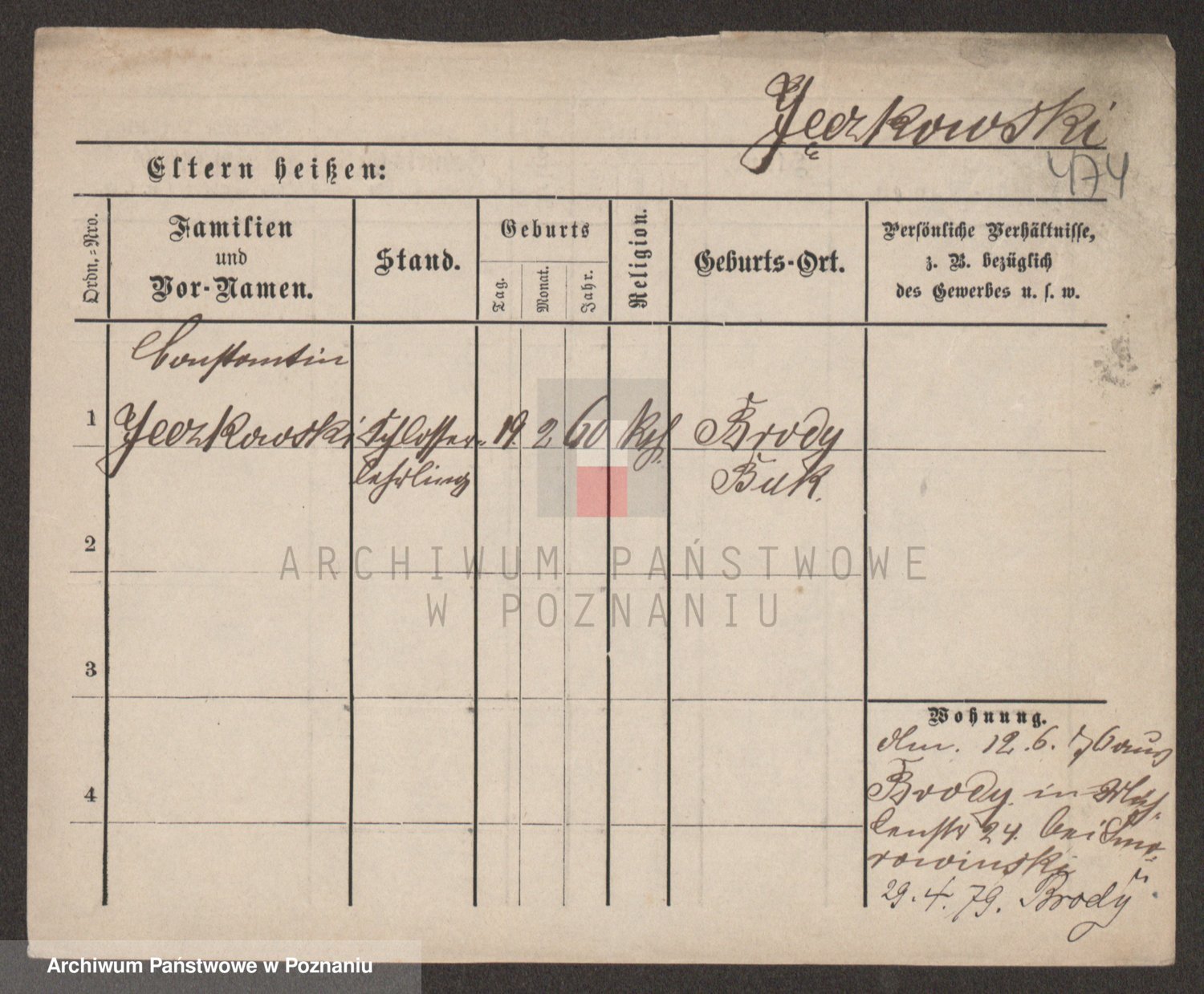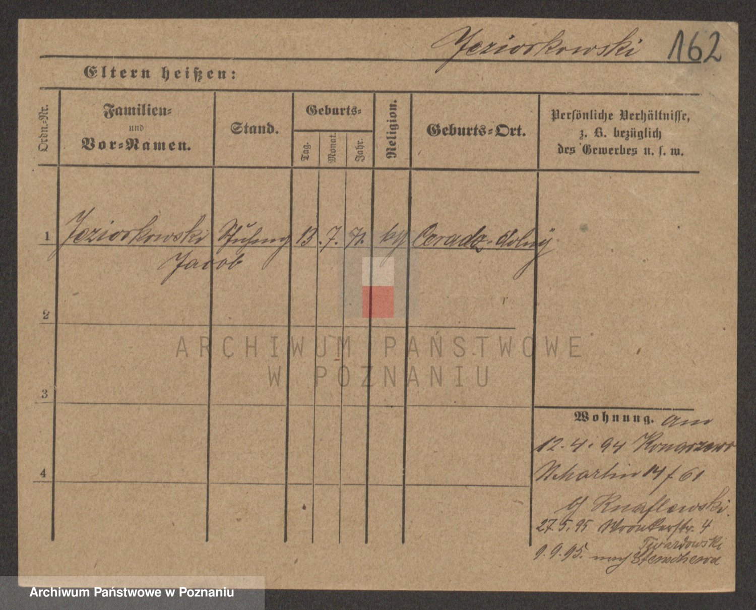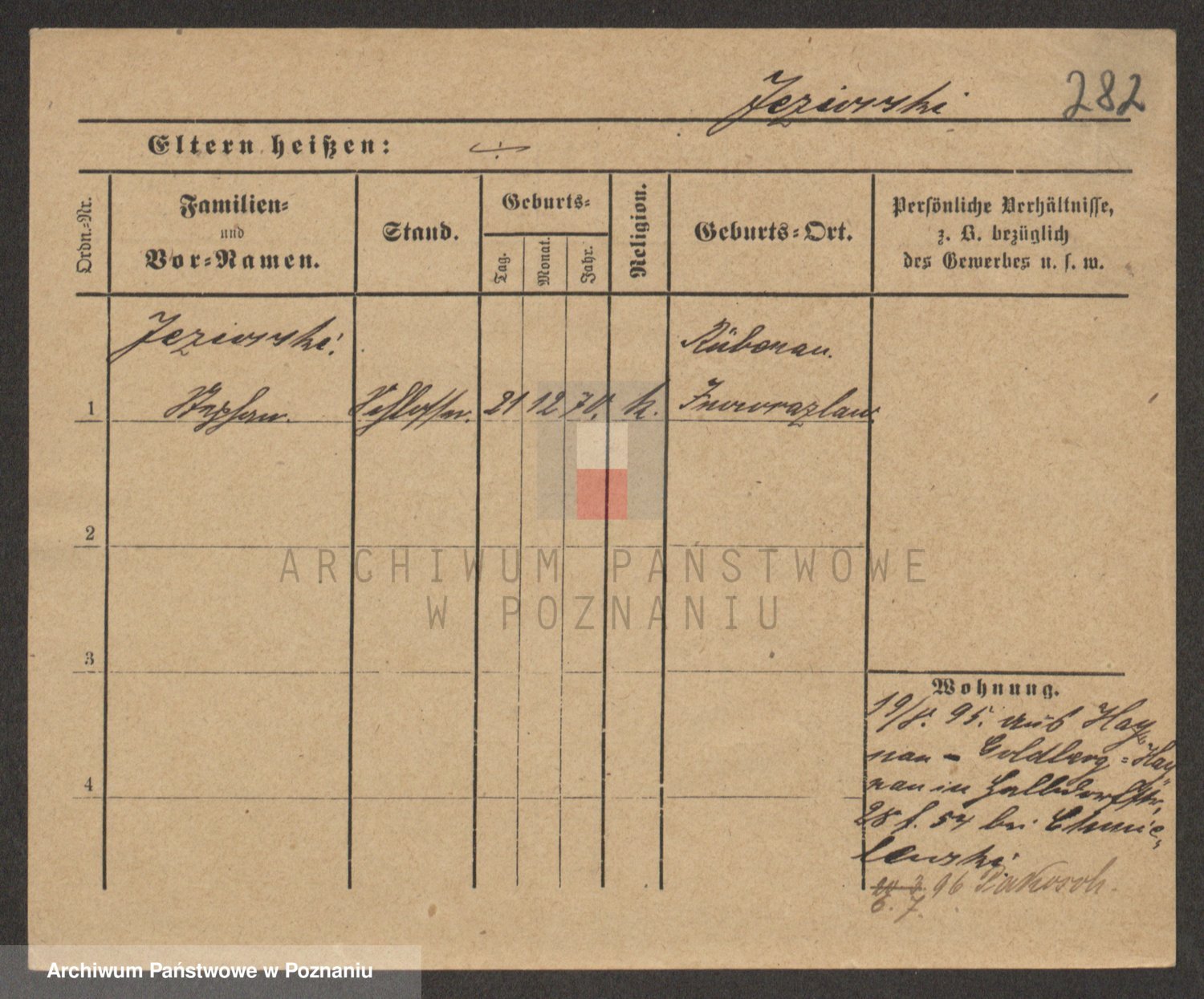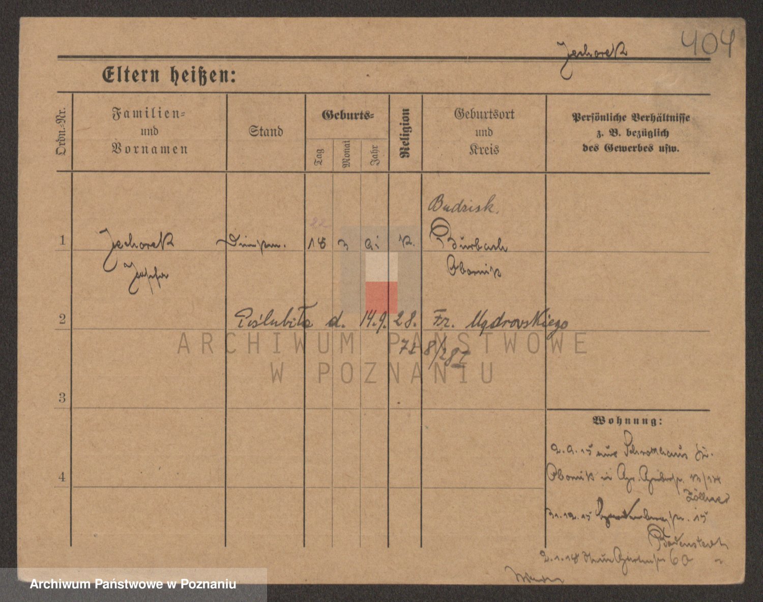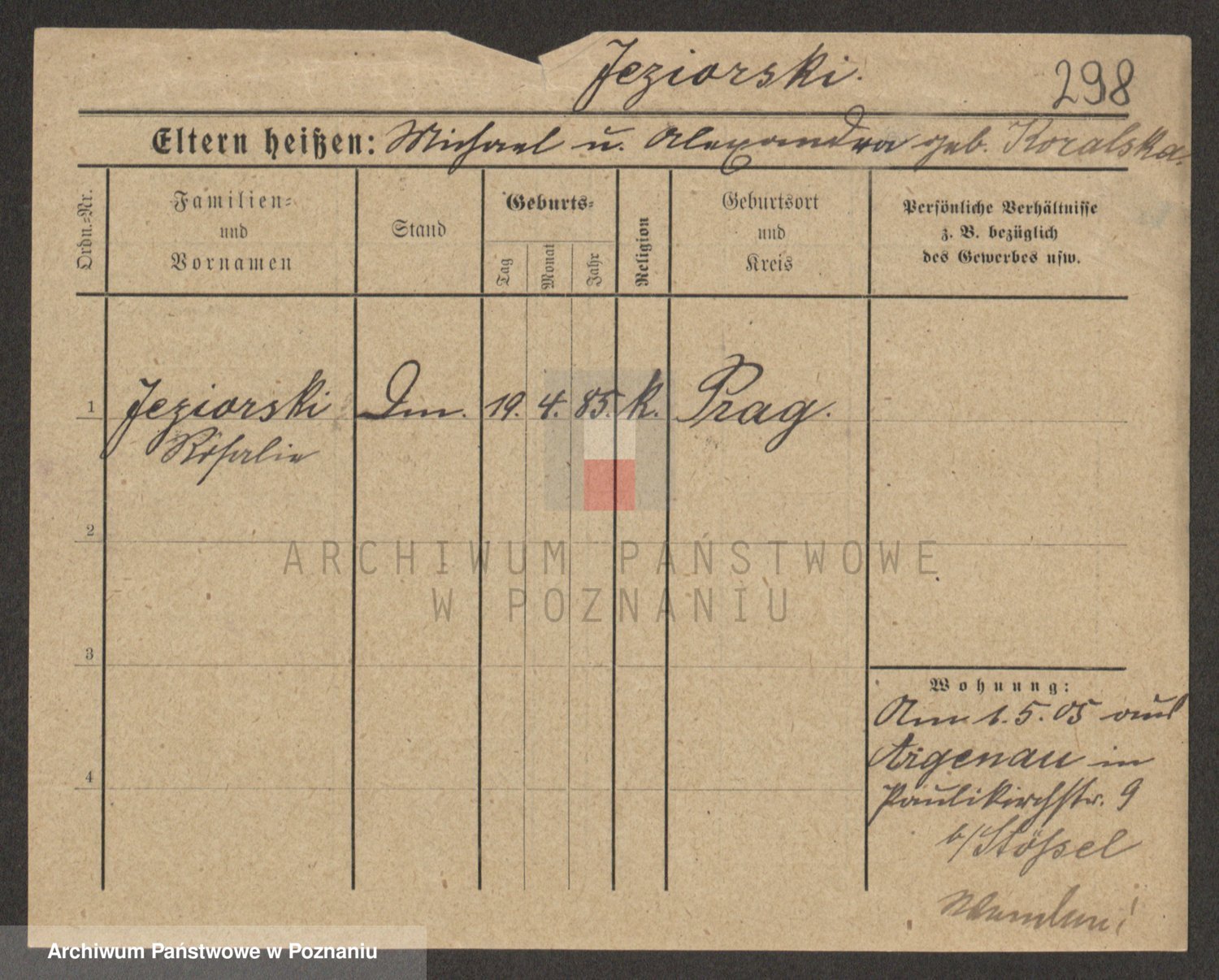 Podgląd karty osobowej dostępny jest po kliknięciu na nazwisko lub ikonkę karty. Można dokonywać powiększenia (ikony na górze) lub przechodzić między kolejnymi skanami (strzałki po bokach).