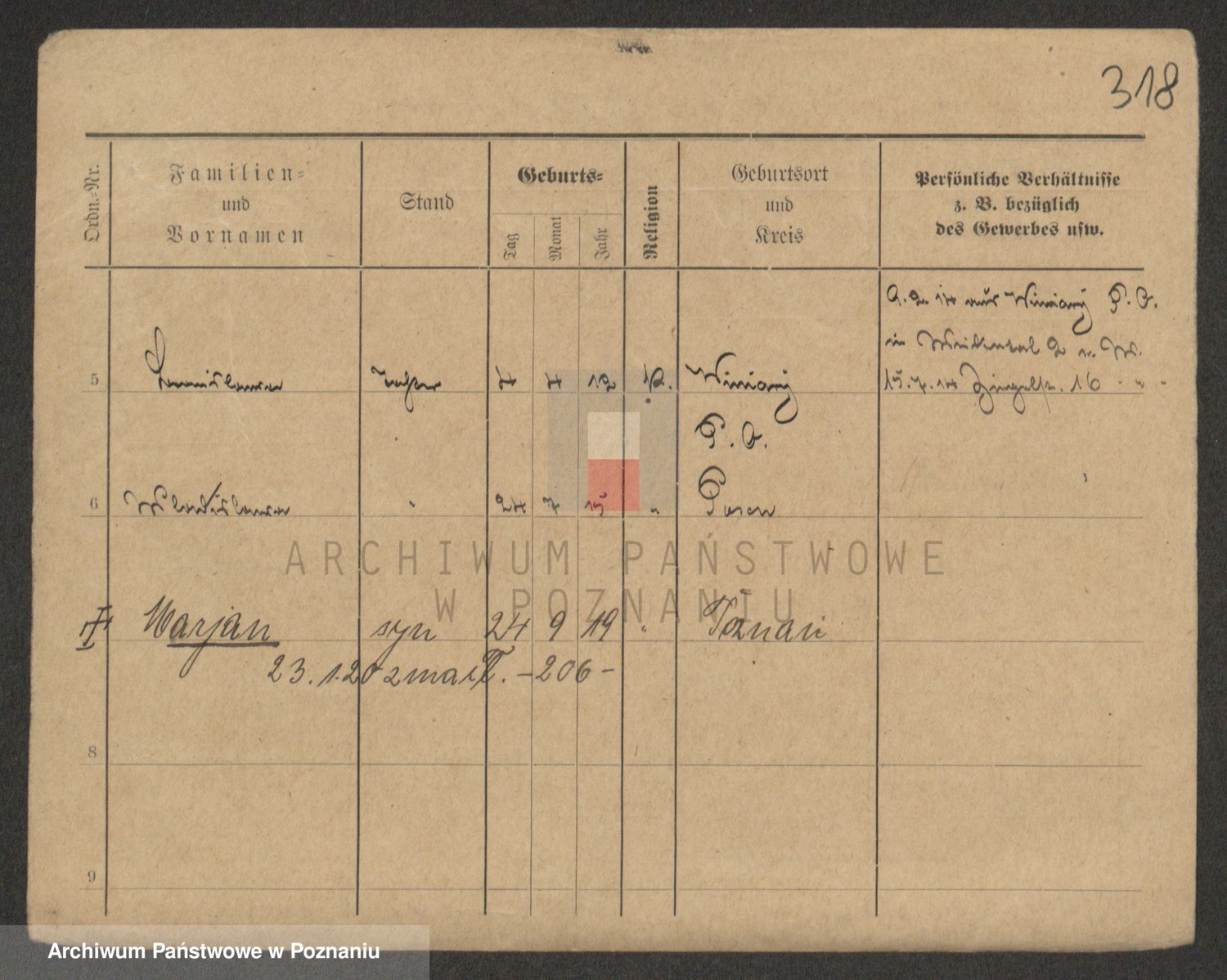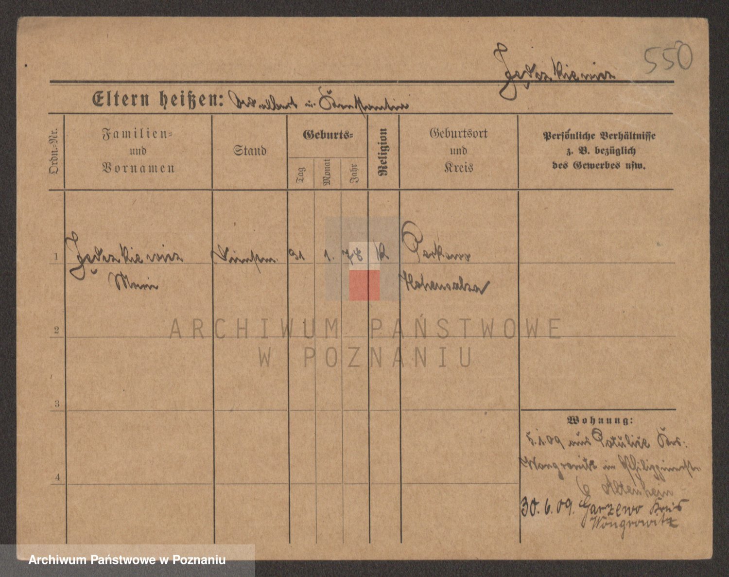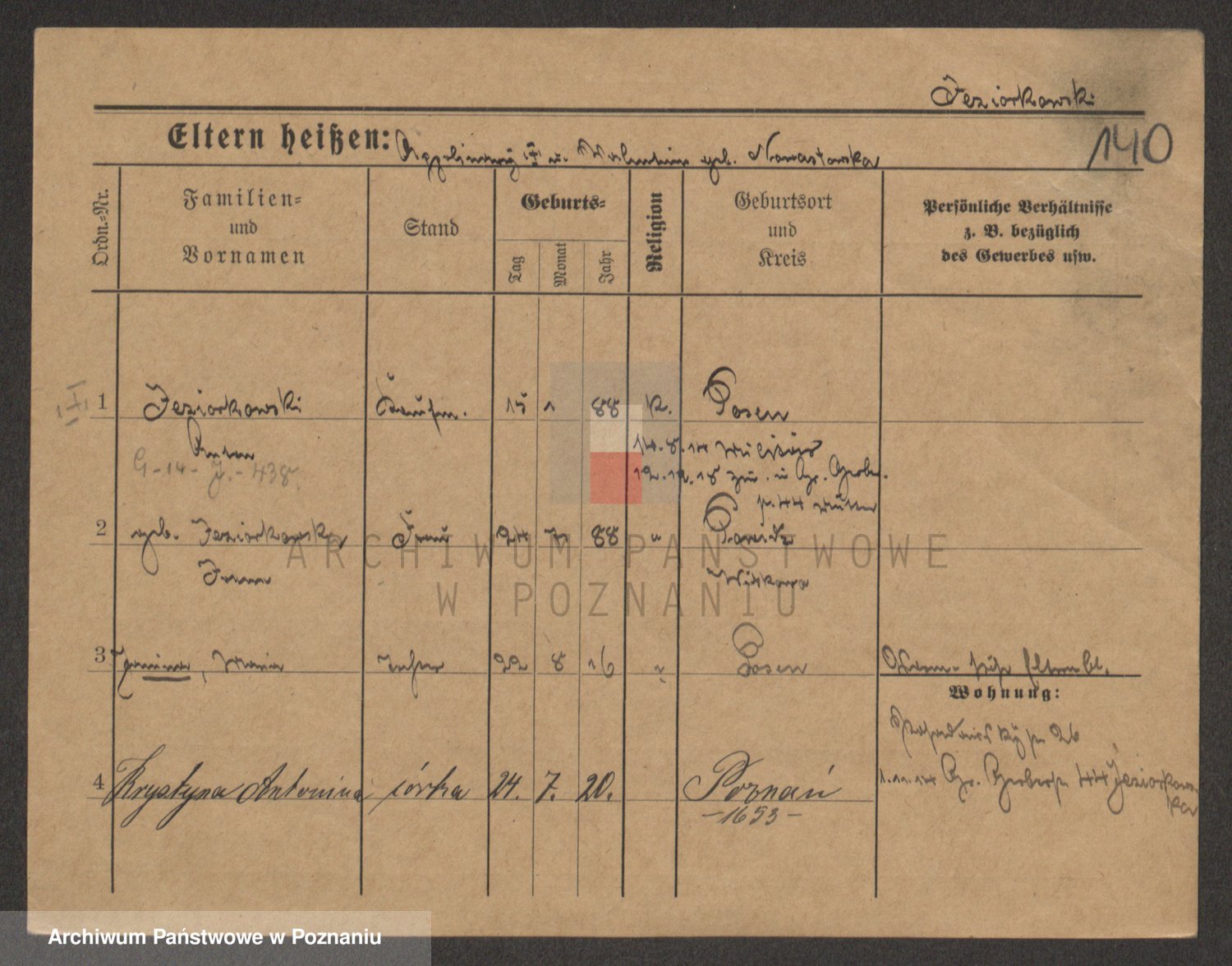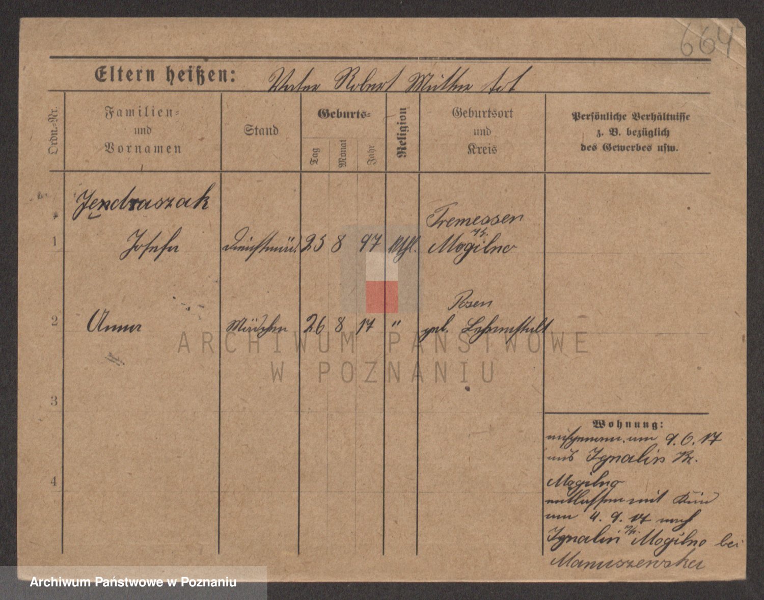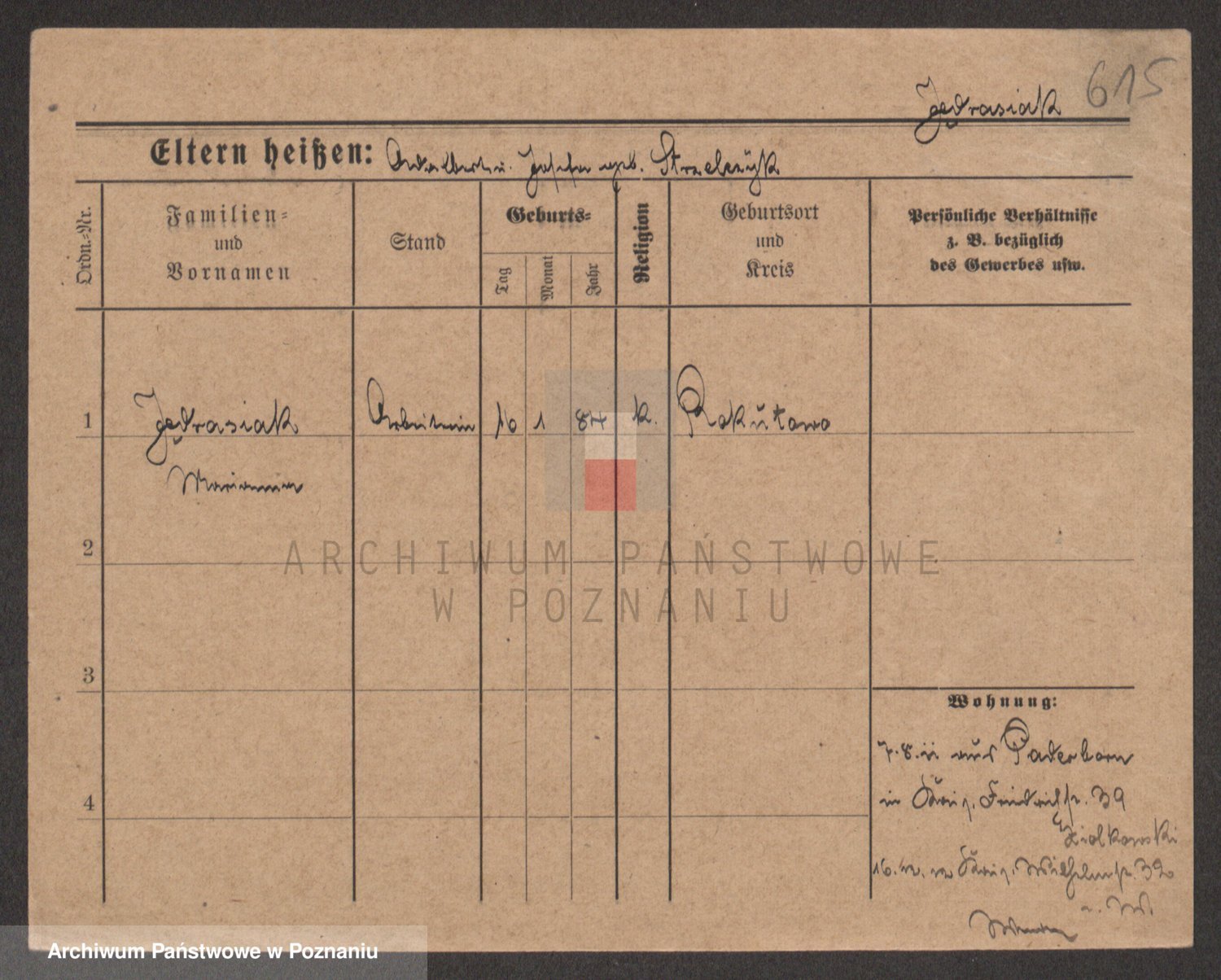 Podgląd karty osobowej dostępny jest po kliknięciu na nazwisko lub ikonkę karty. Można dokonywać powiększenia (ikony na górze) lub przechodzić między kolejnymi skanami (strzałki po bokach).