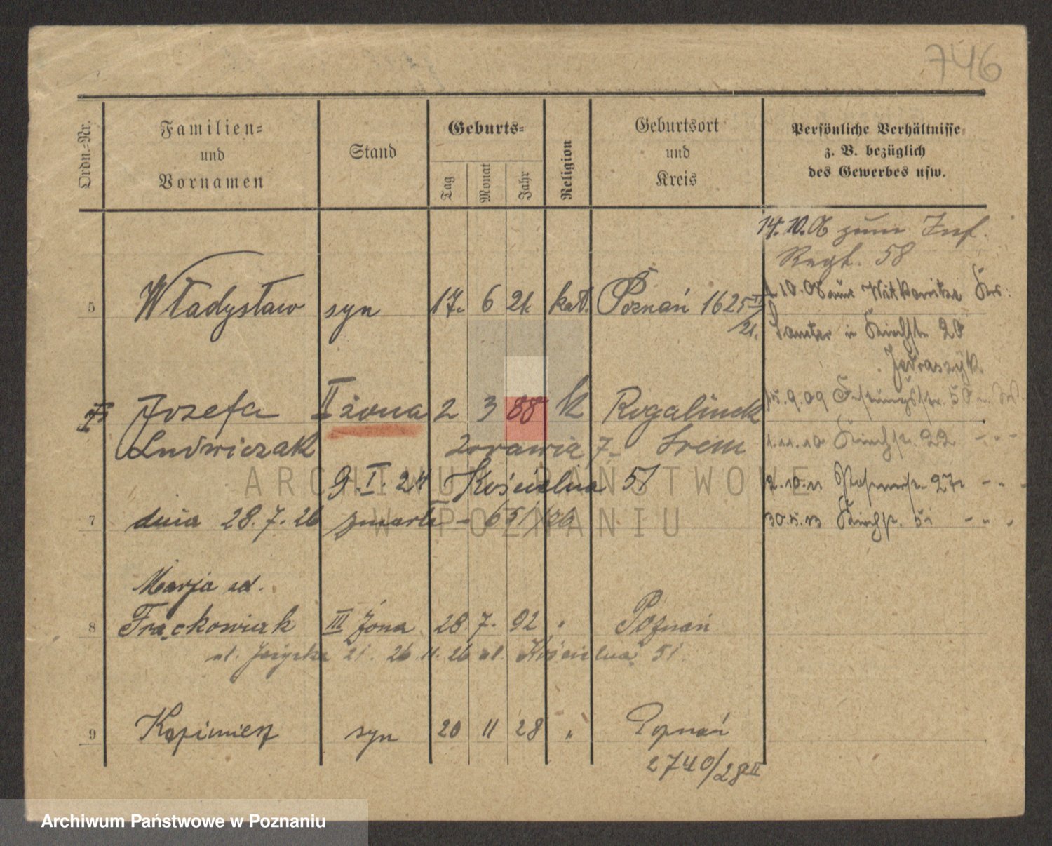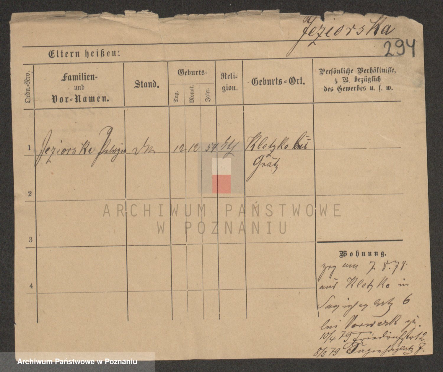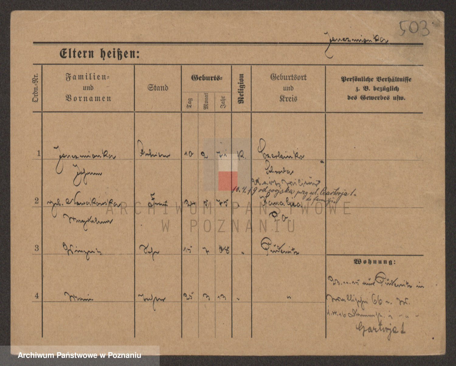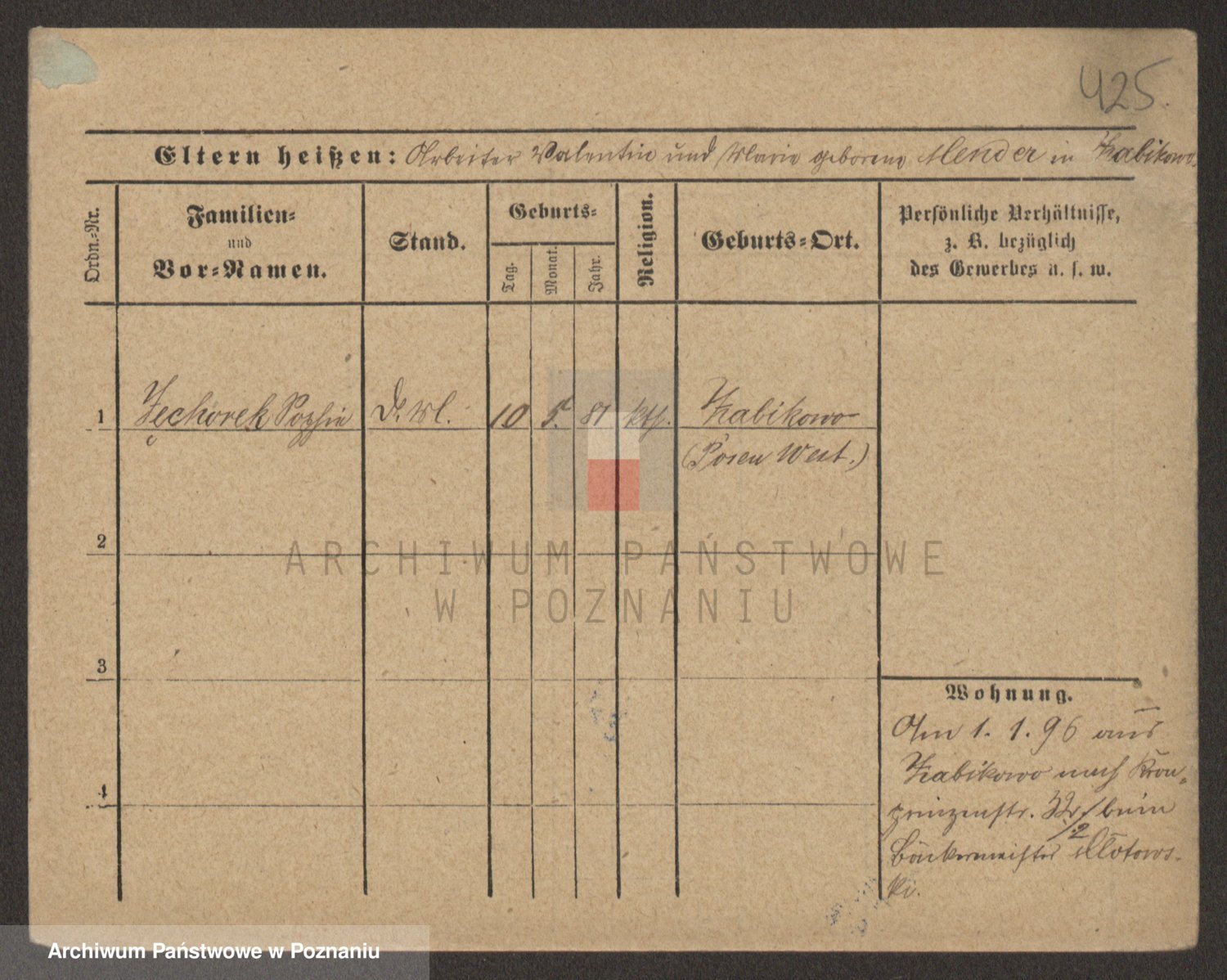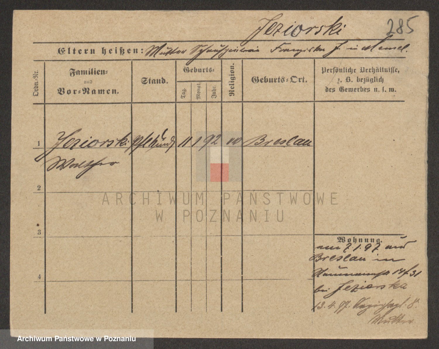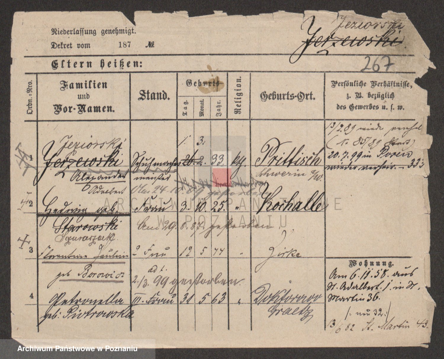 Podgląd karty osobowej dostępny jest po kliknięciu na nazwisko lub ikonkę karty. Można dokonywać powiększenia (ikony na górze) lub przechodzić między kolejnymi skanami (strzałki po bokach).