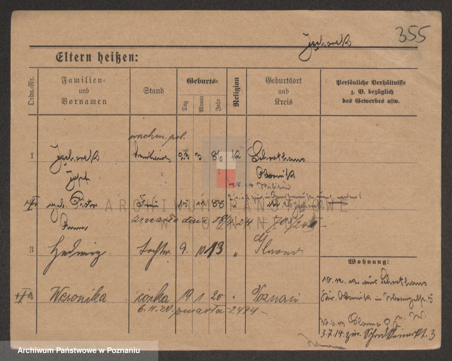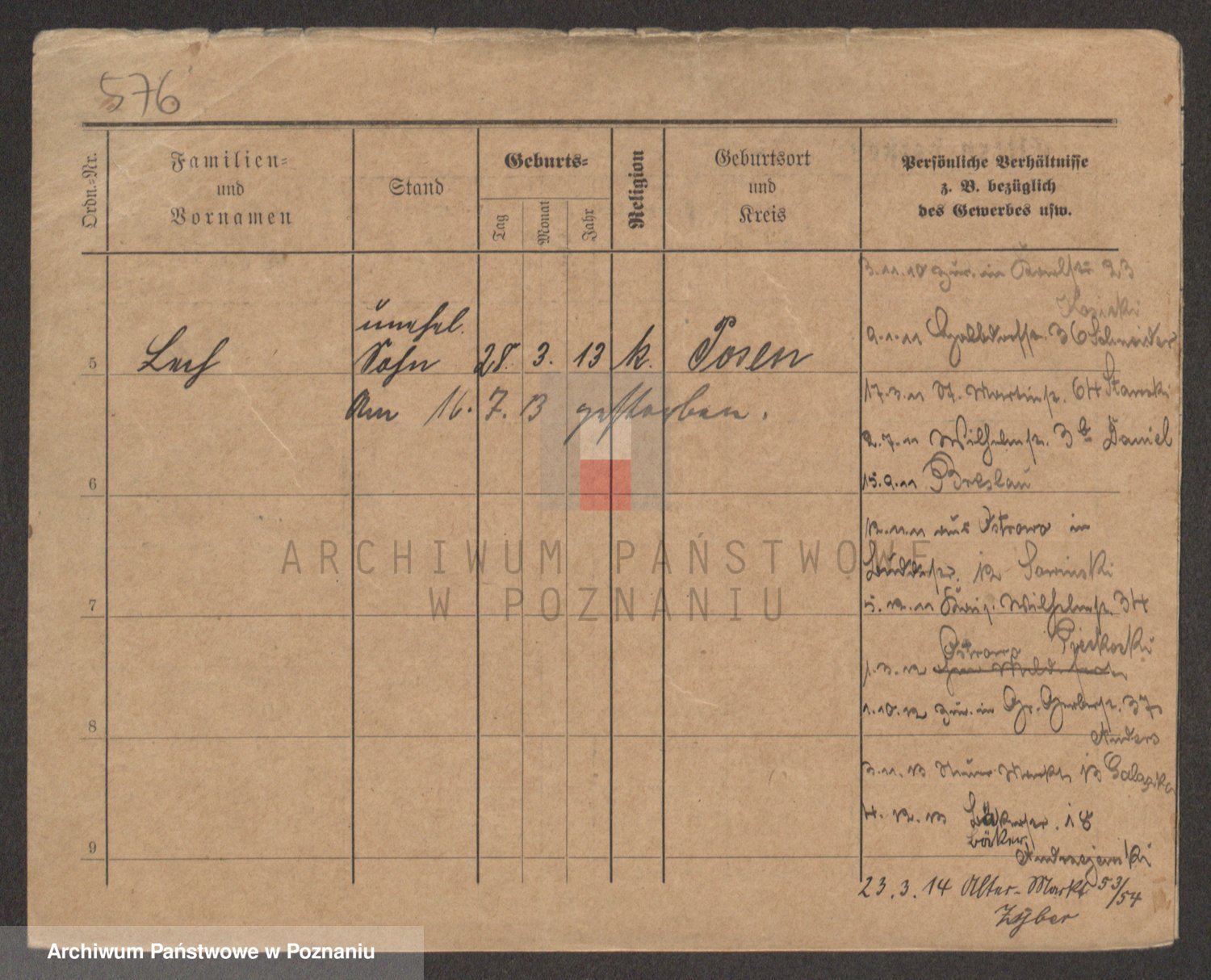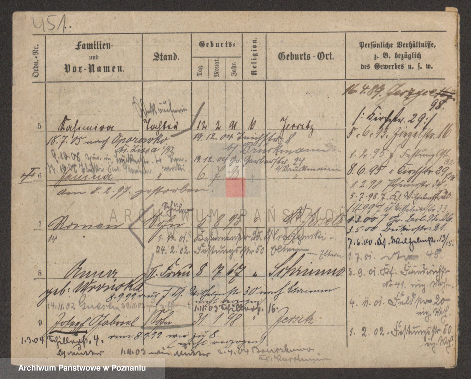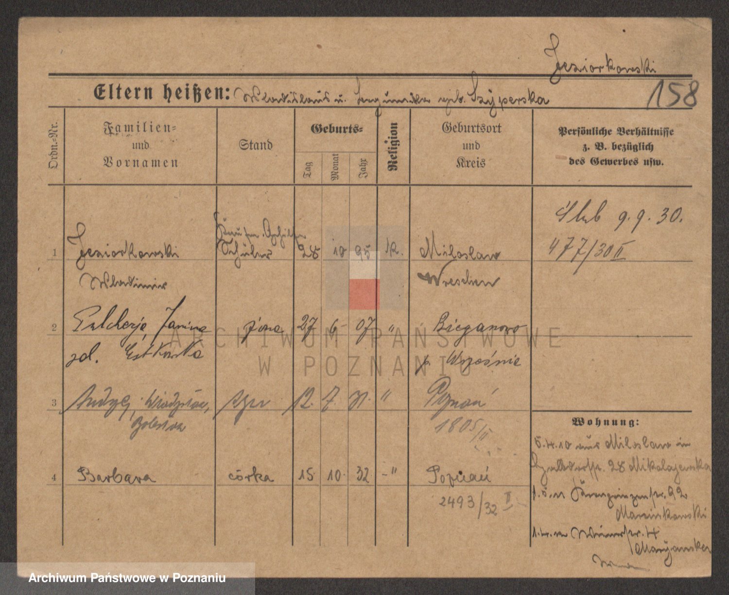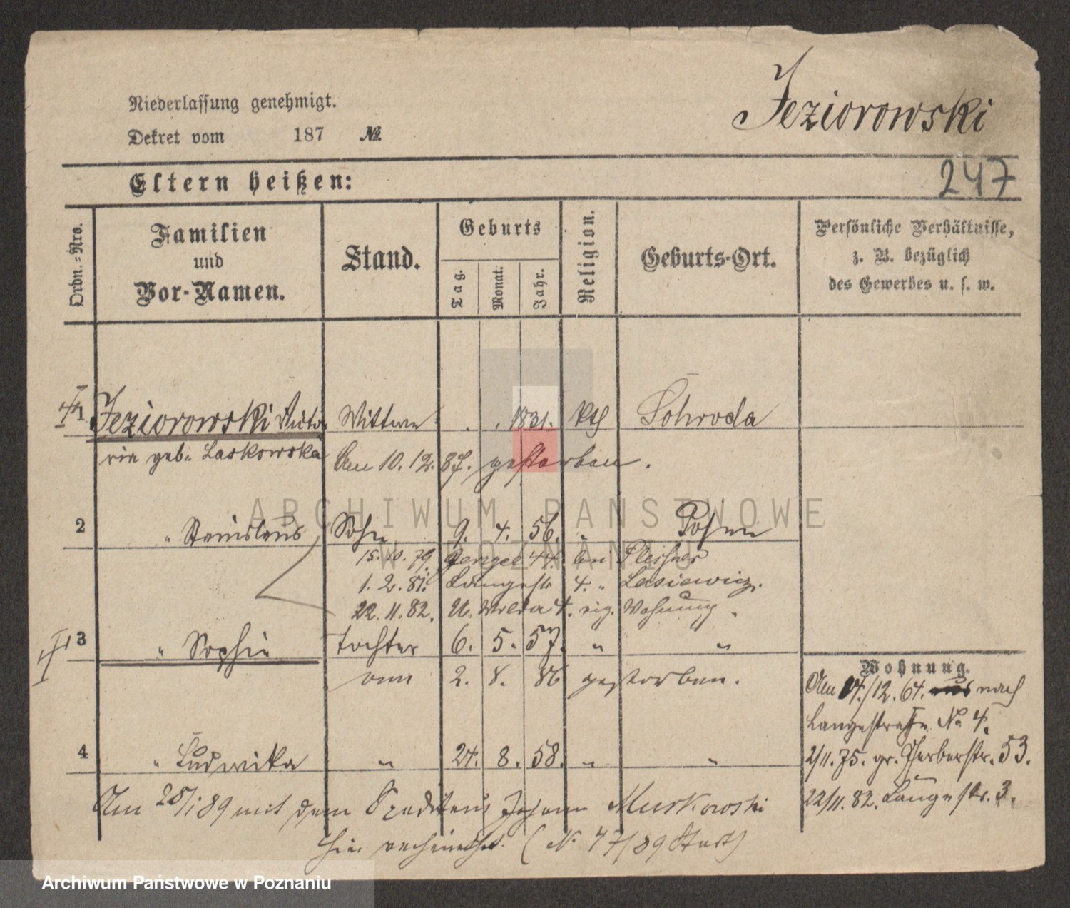Podgląd karty osobowej dostępny jest po kliknięciu na nazwisko lub ikonkę karty. Można dokonywać powiększenia (ikony na górze) lub przechodzić między kolejnymi skanami (strzałki po bokach).