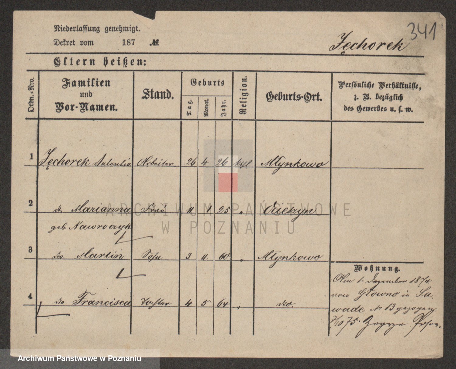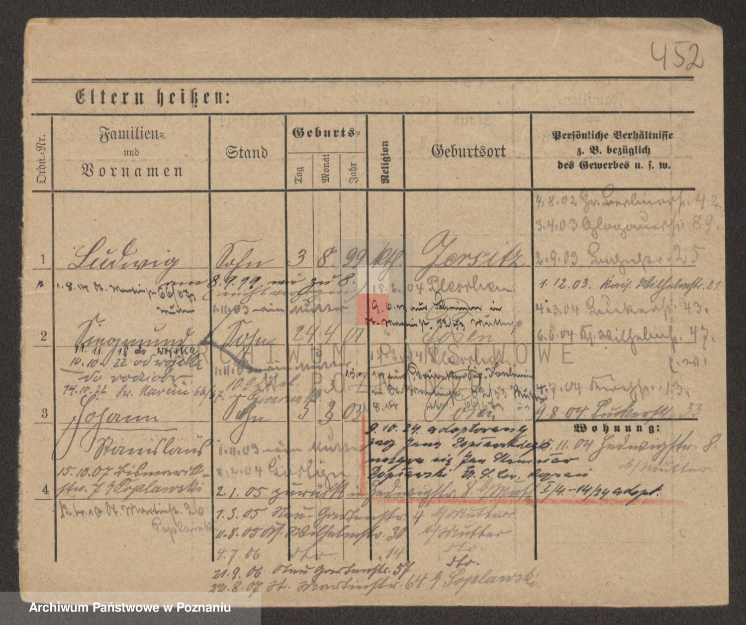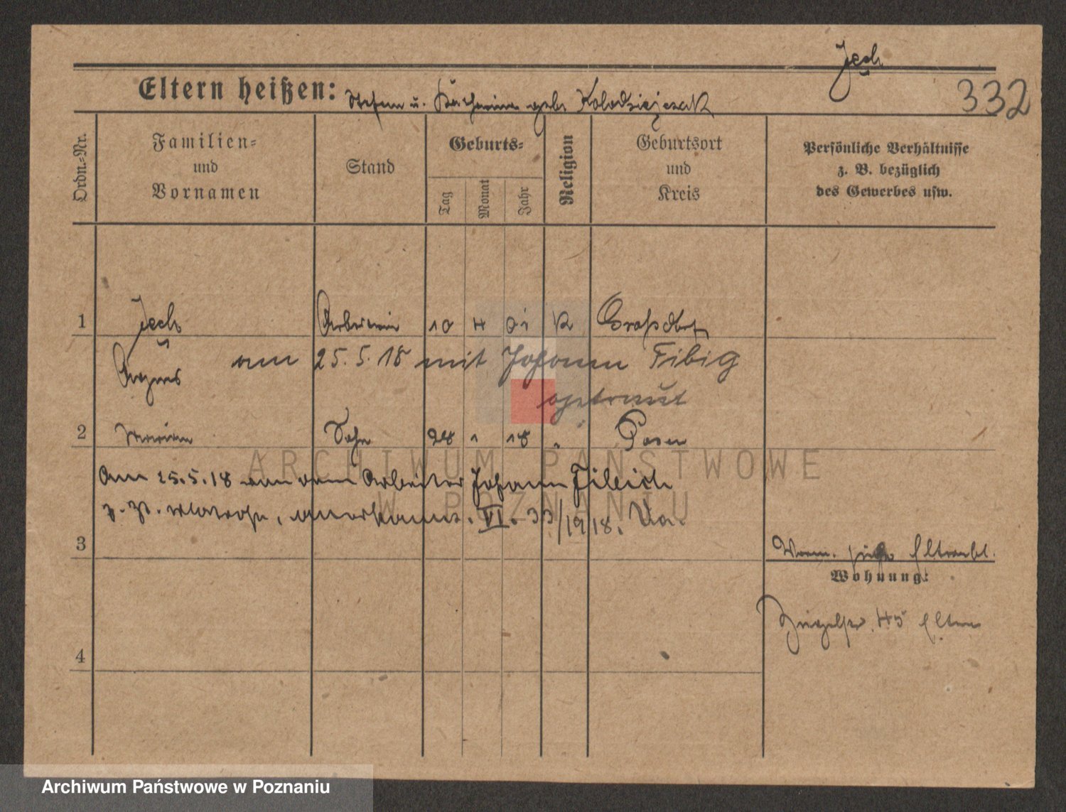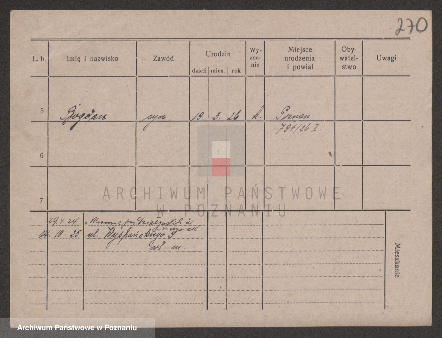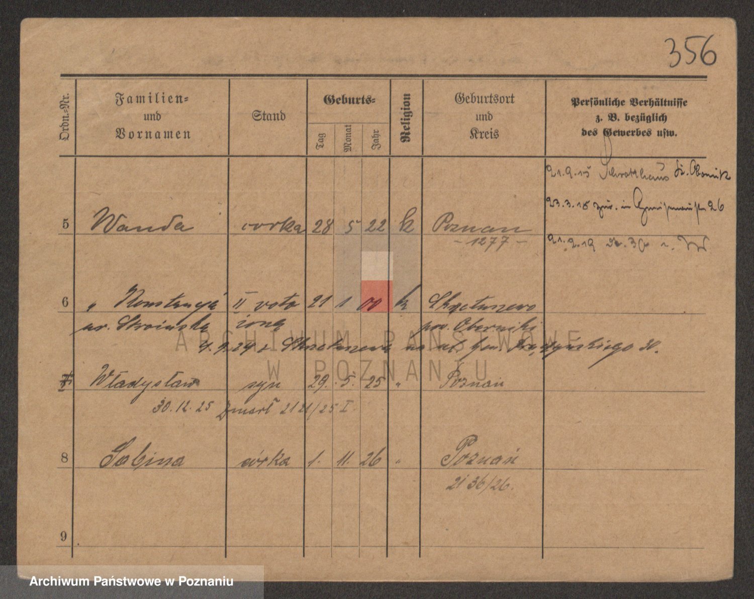 Podgląd karty osobowej dostępny jest po kliknięciu na nazwisko lub ikonkę karty. Można dokonywać powiększenia (ikony na górze) lub przechodzić między kolejnymi skanami (strzałki po bokach).