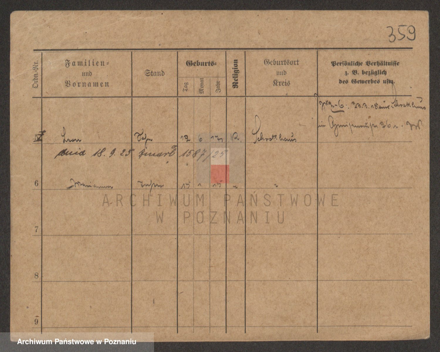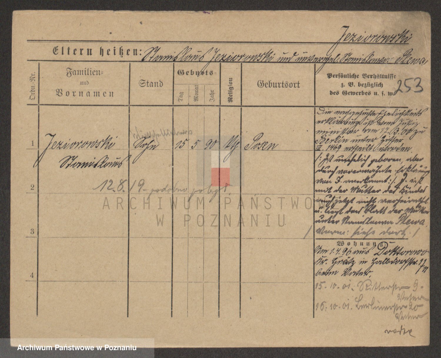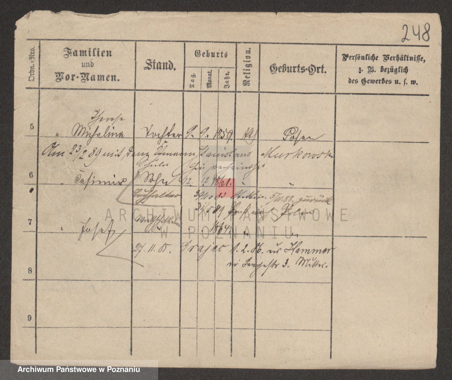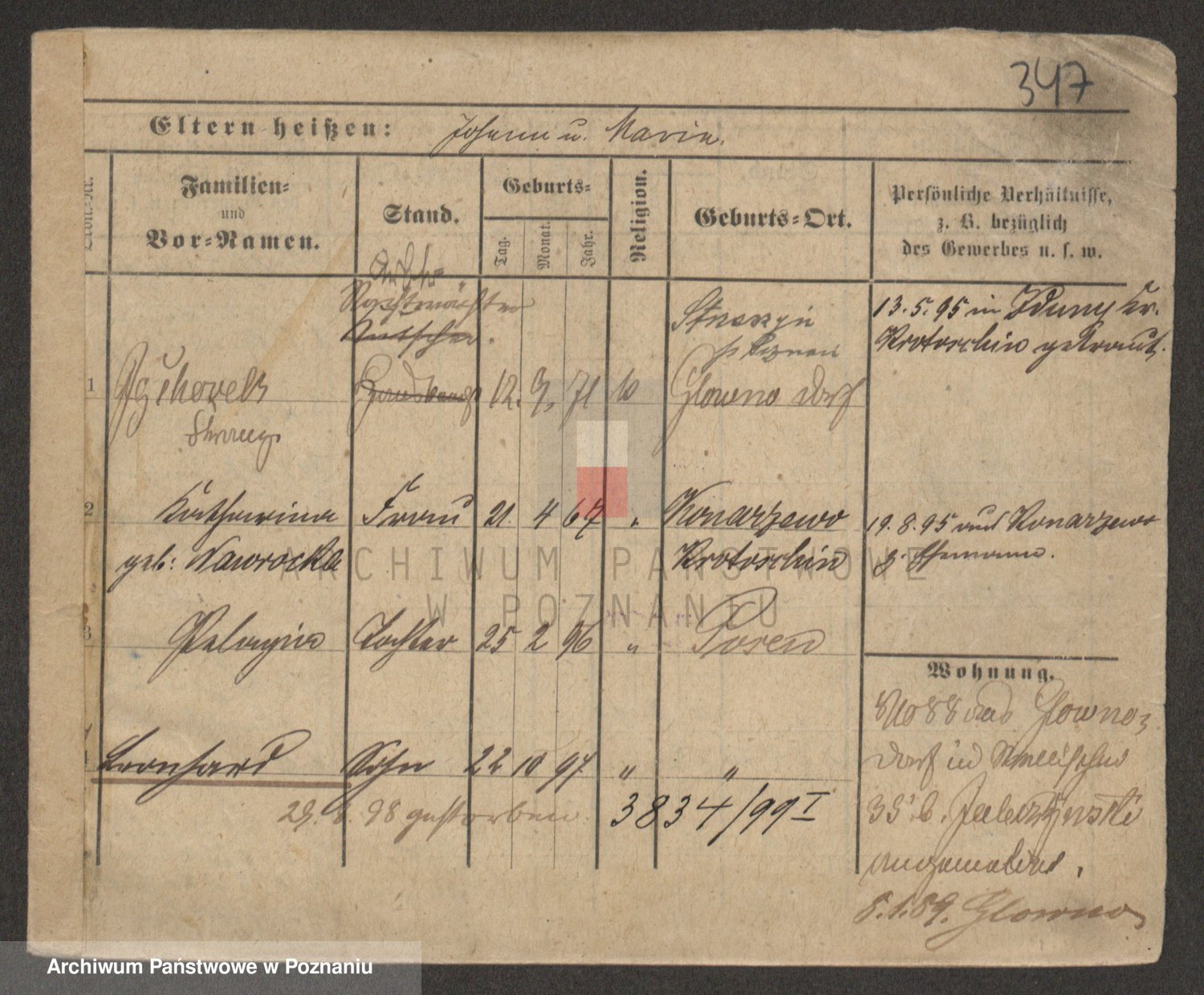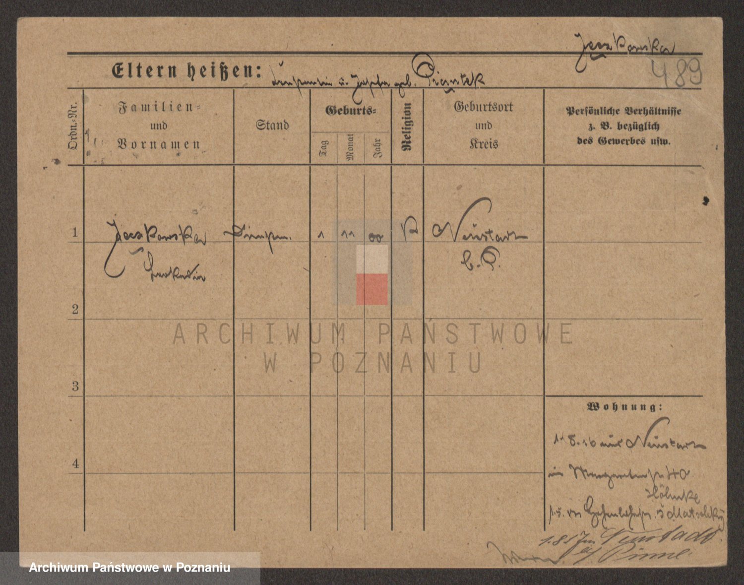 Podgląd karty osobowej dostępny jest po kliknięciu na nazwisko lub ikonkę karty. Można dokonywać powiększenia (ikony na górze) lub przechodzić między kolejnymi skanami (strzałki po bokach).