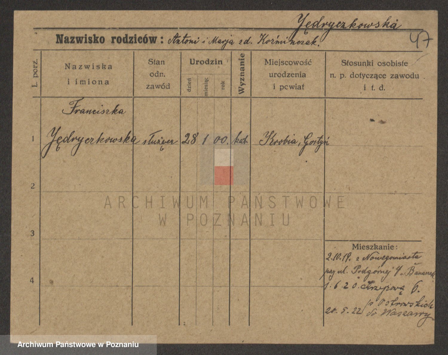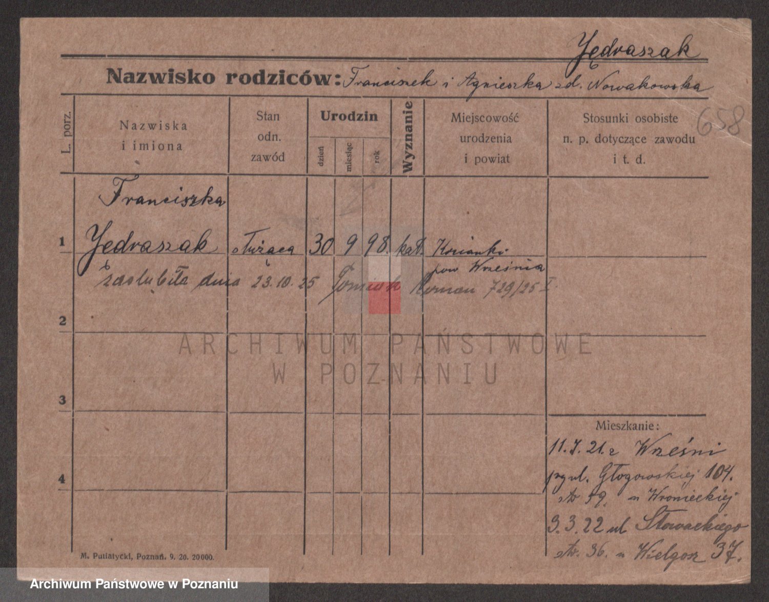 Jędryka, Franciszka