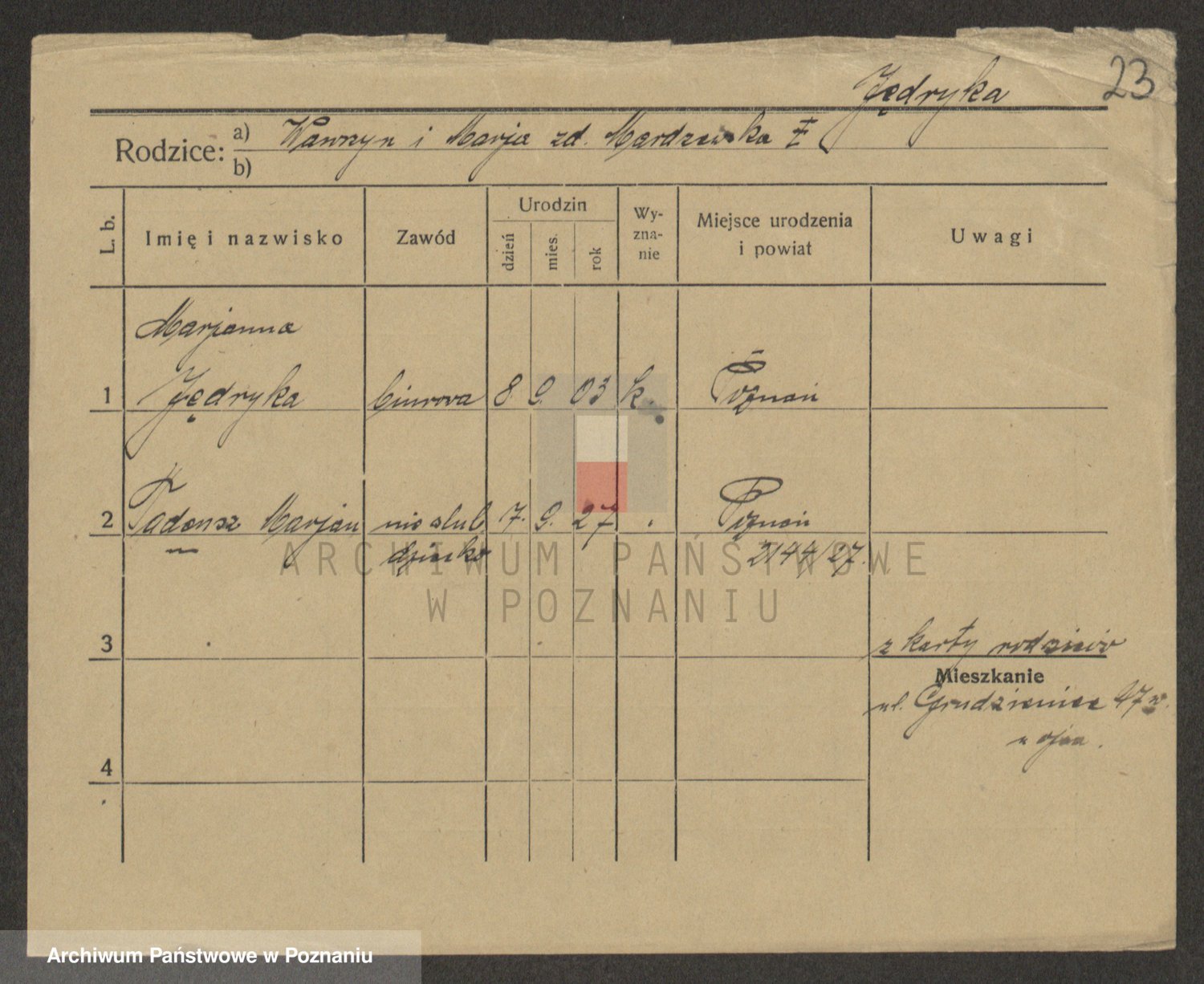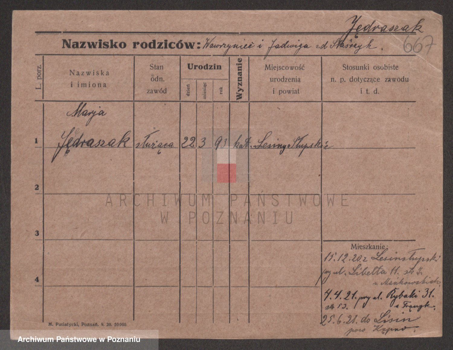 Jędryka z d. Mardzowska, Marie
