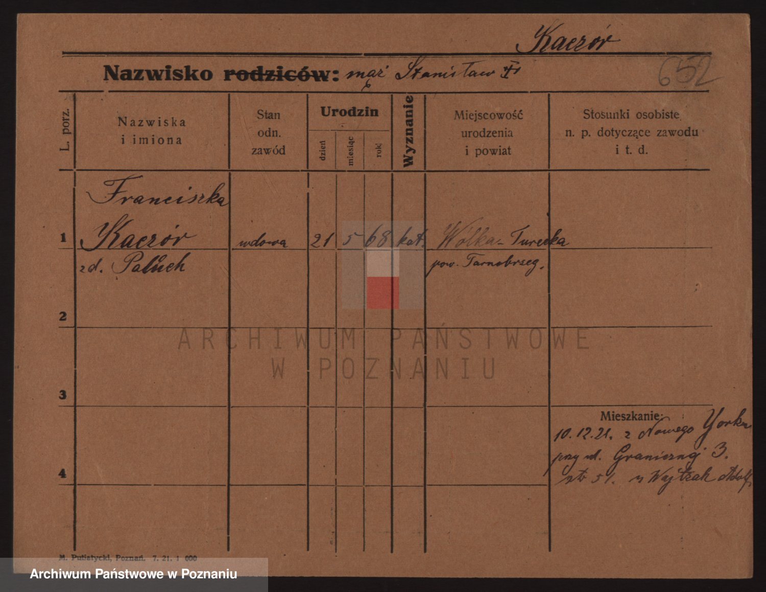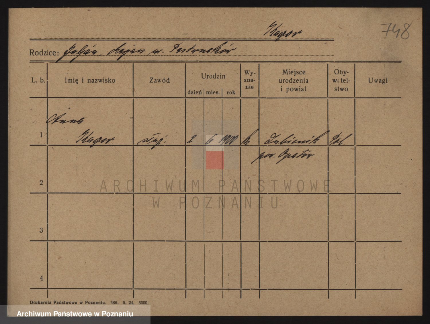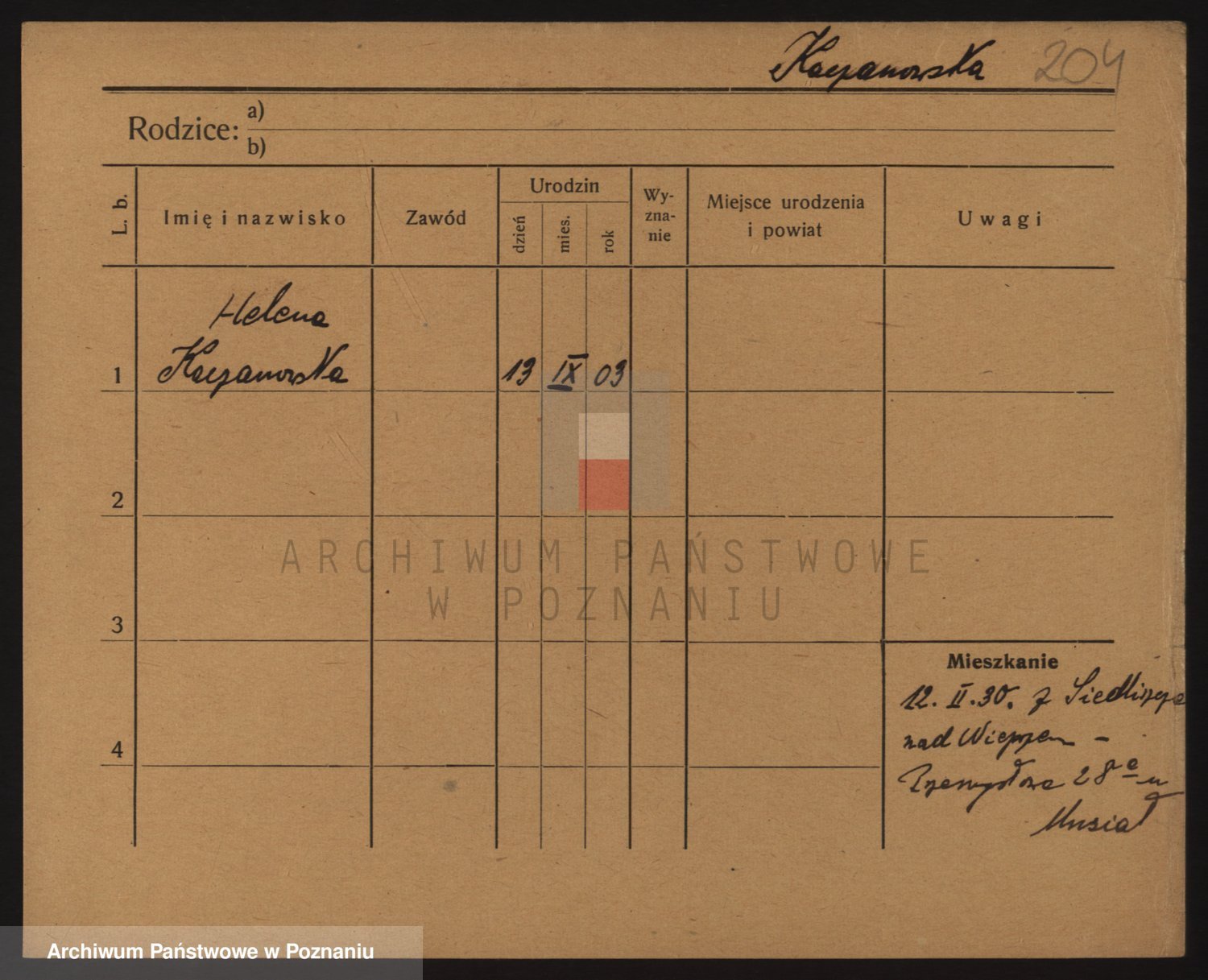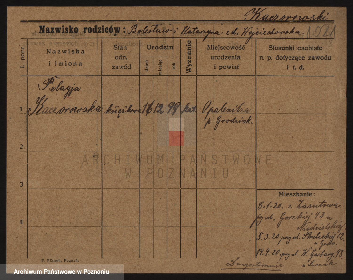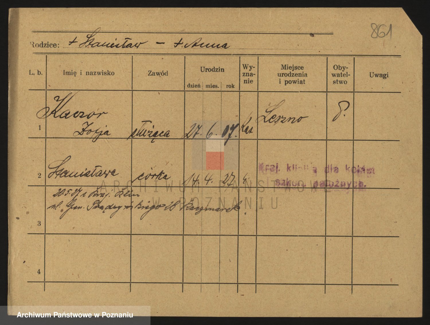 Podgląd karty osobowej dostępny jest po kliknięciu na nazwisko lub ikonkę karty. Można dokonywać powiększenia (ikony na górze) lub przechodzić między kolejnymi skanami (strzałki po bokach).
