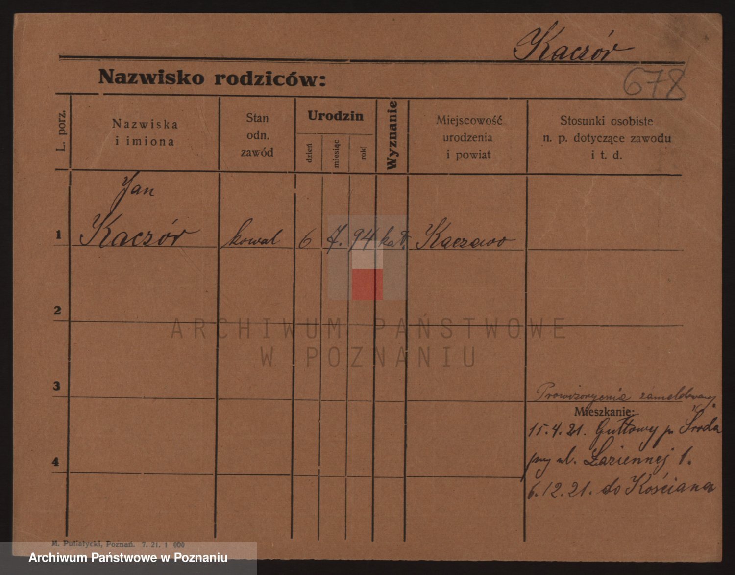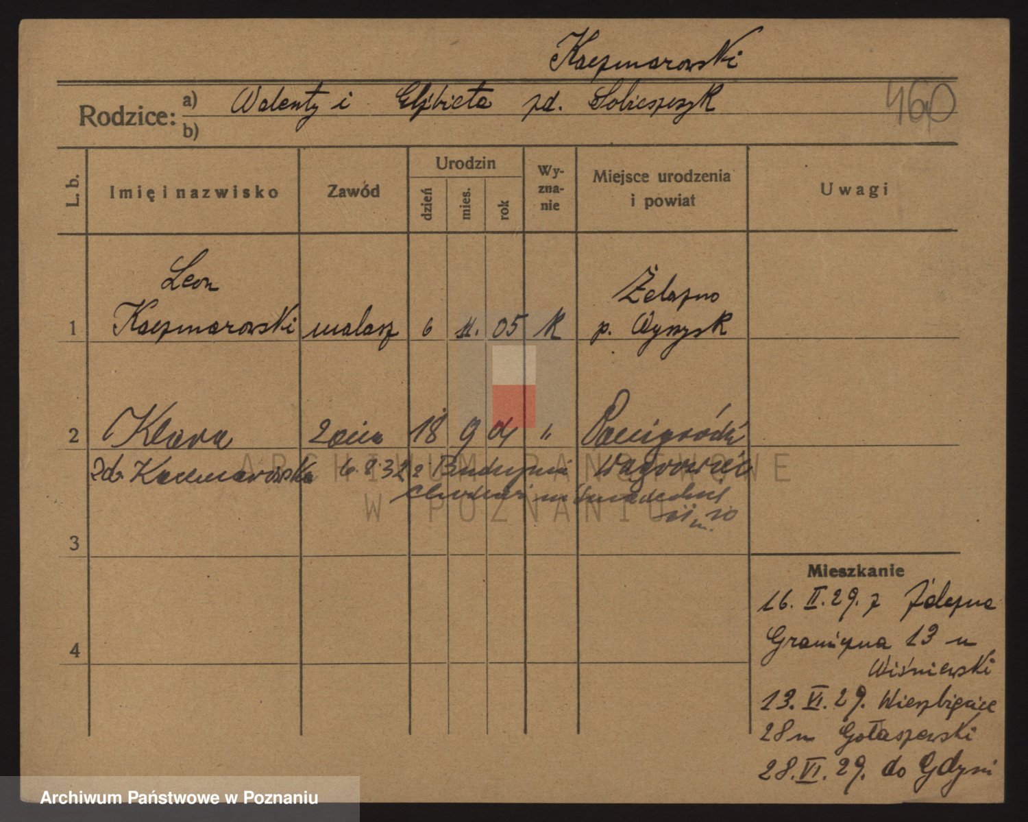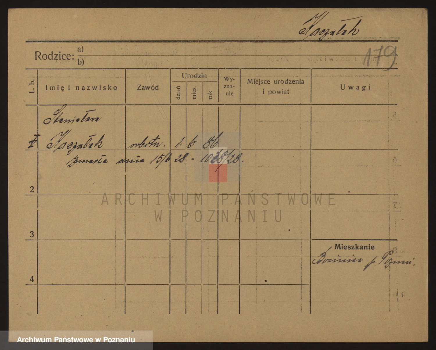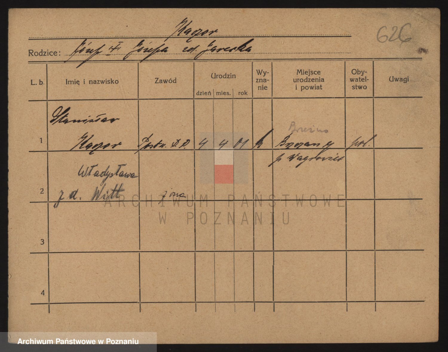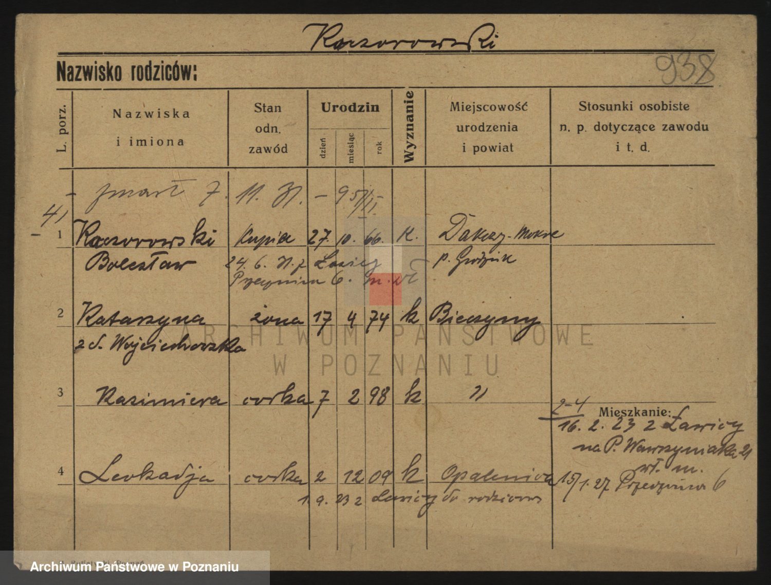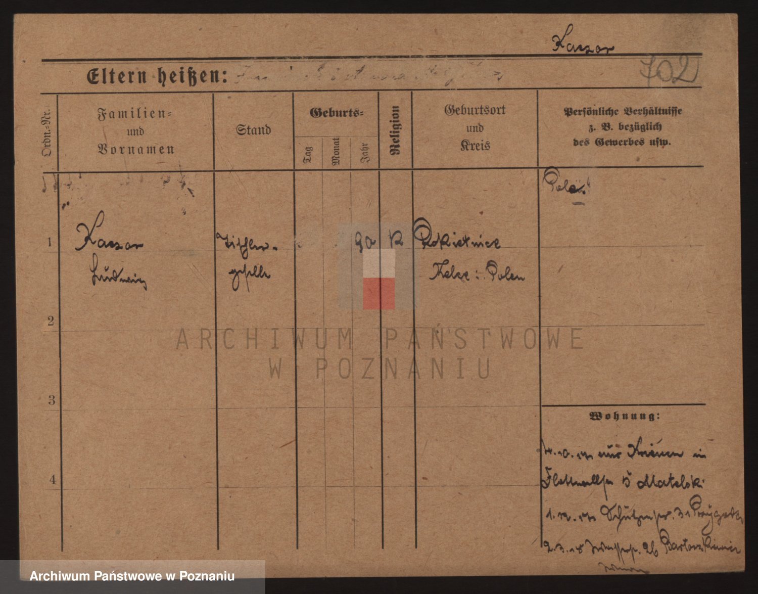 Podgląd karty osobowej dostępny jest po kliknięciu na nazwisko lub ikonkę karty. Można dokonywać powiększenia (ikony na górze) lub przechodzić między kolejnymi skanami (strzałki po bokach).