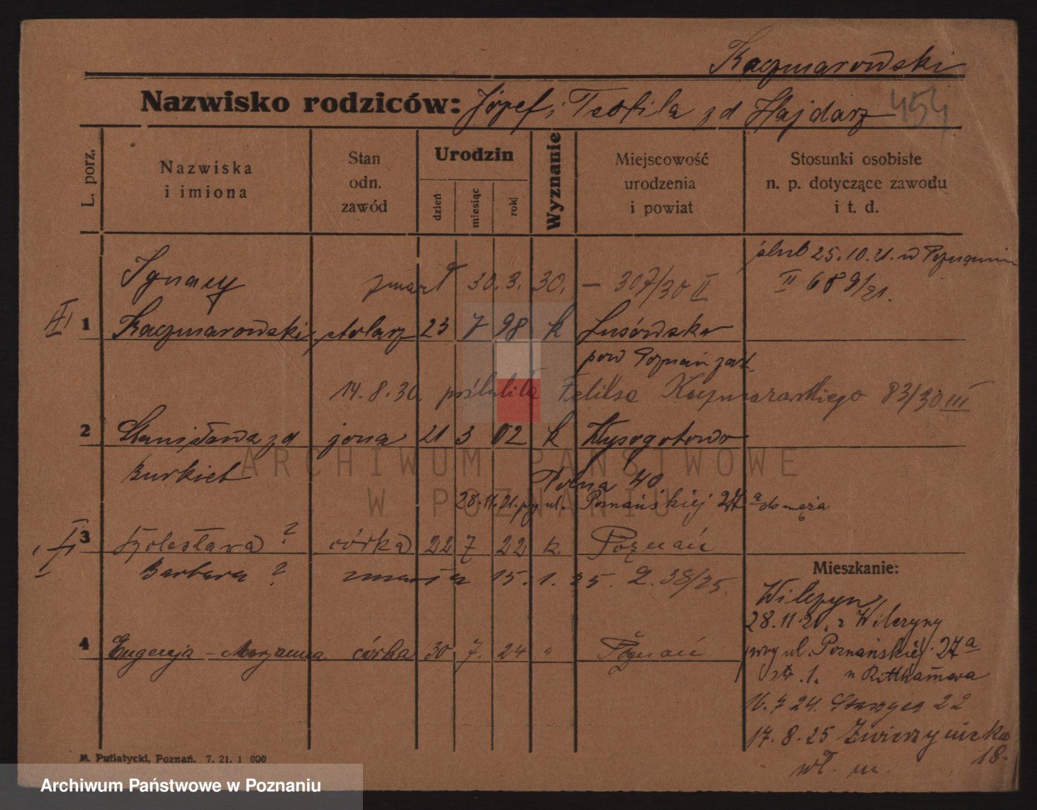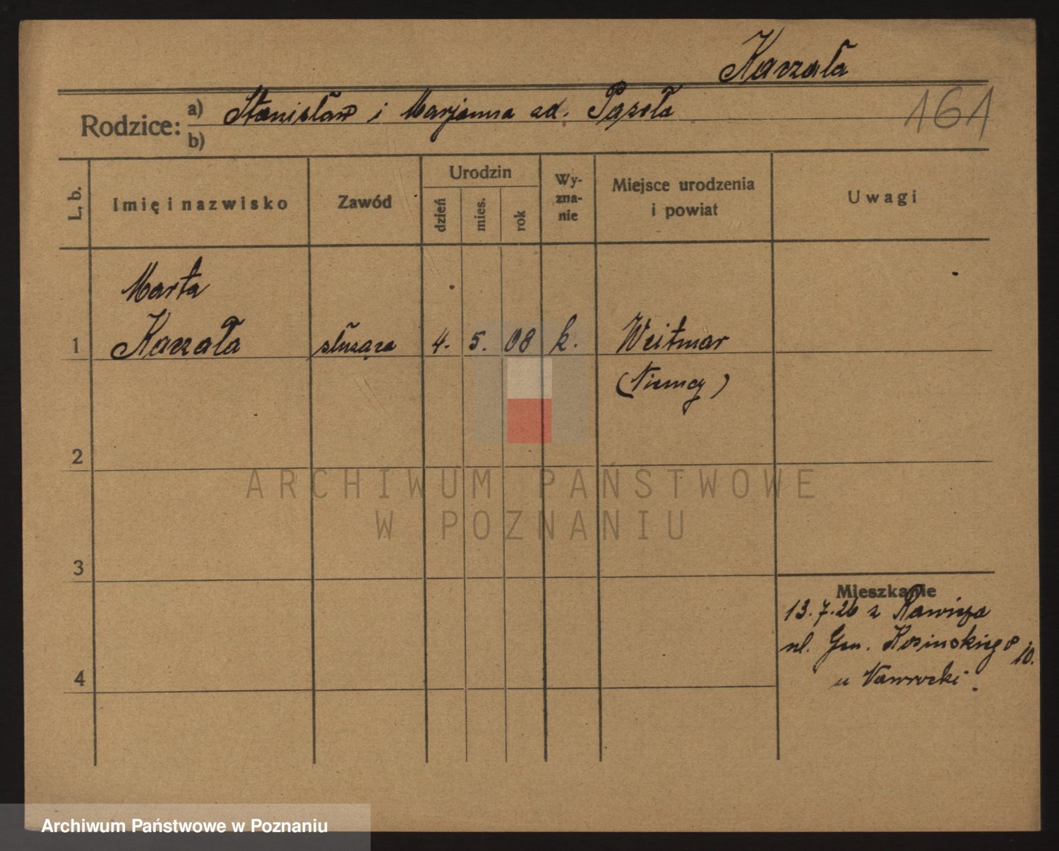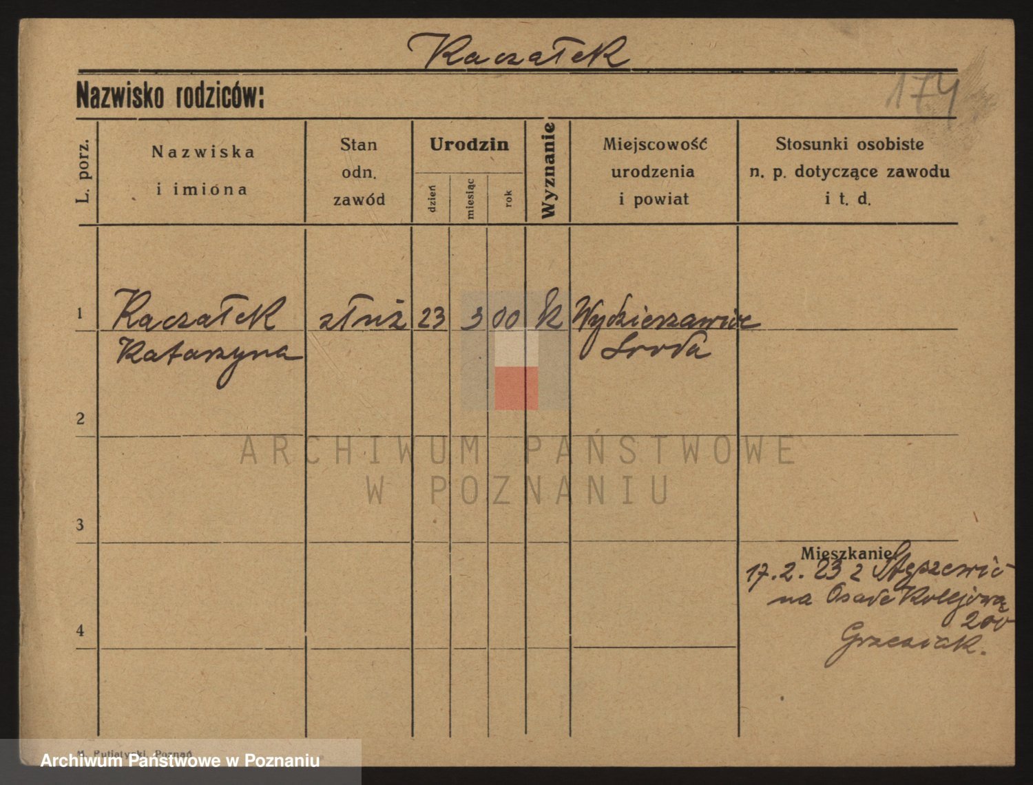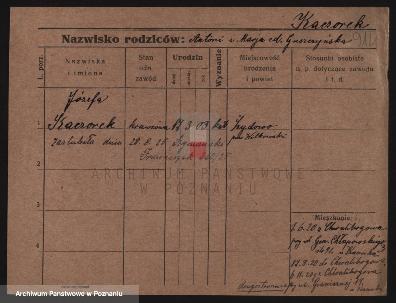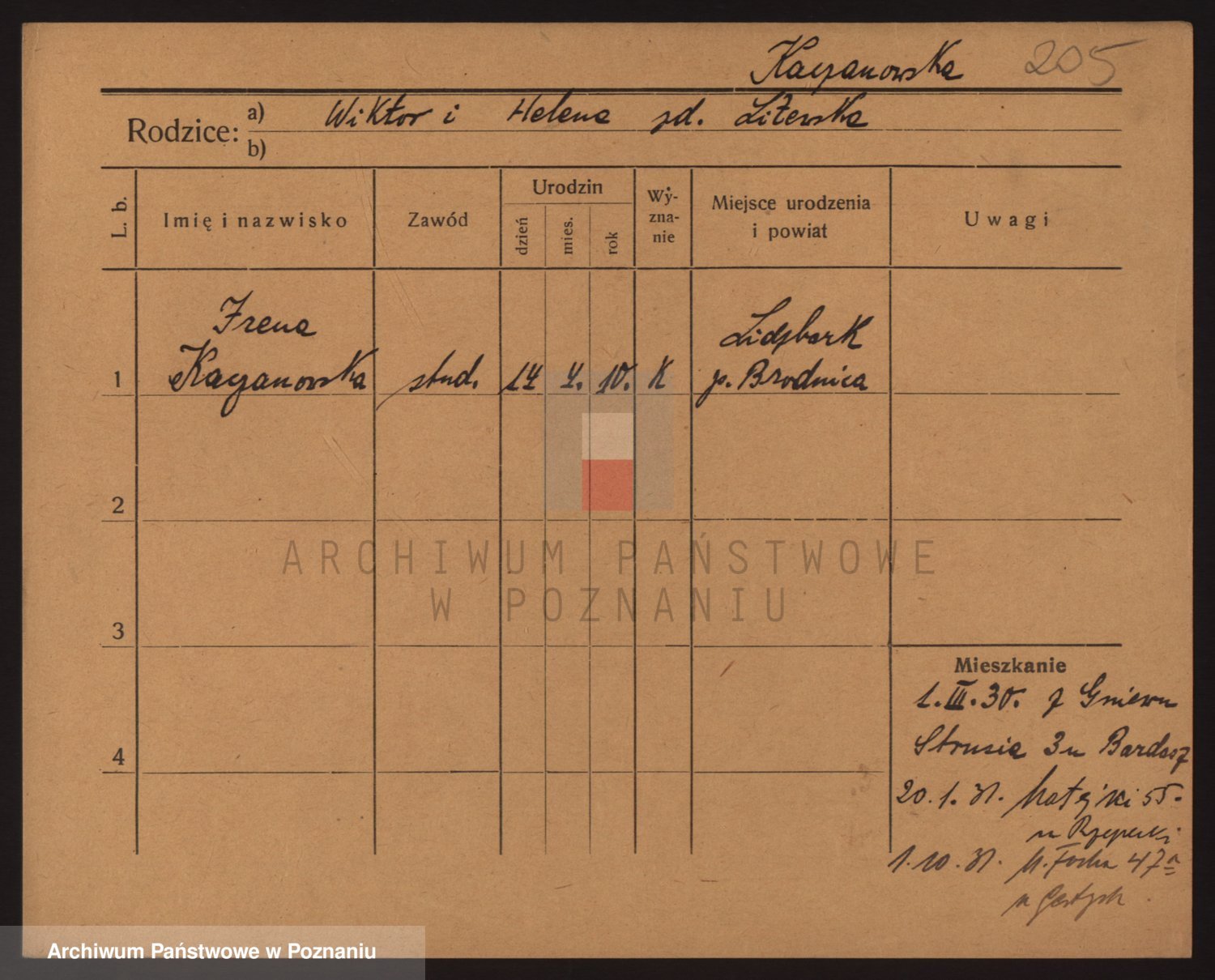 Podgląd karty osobowej dostępny jest po kliknięciu na nazwisko lub ikonkę karty. Można dokonywać powiększenia (ikony na górze) lub przechodzić między kolejnymi skanami (strzałki po bokach).