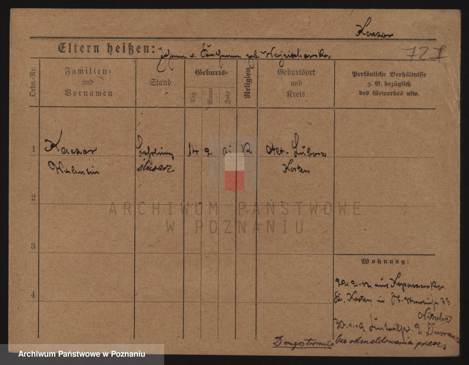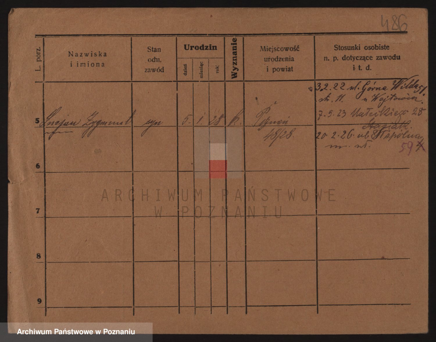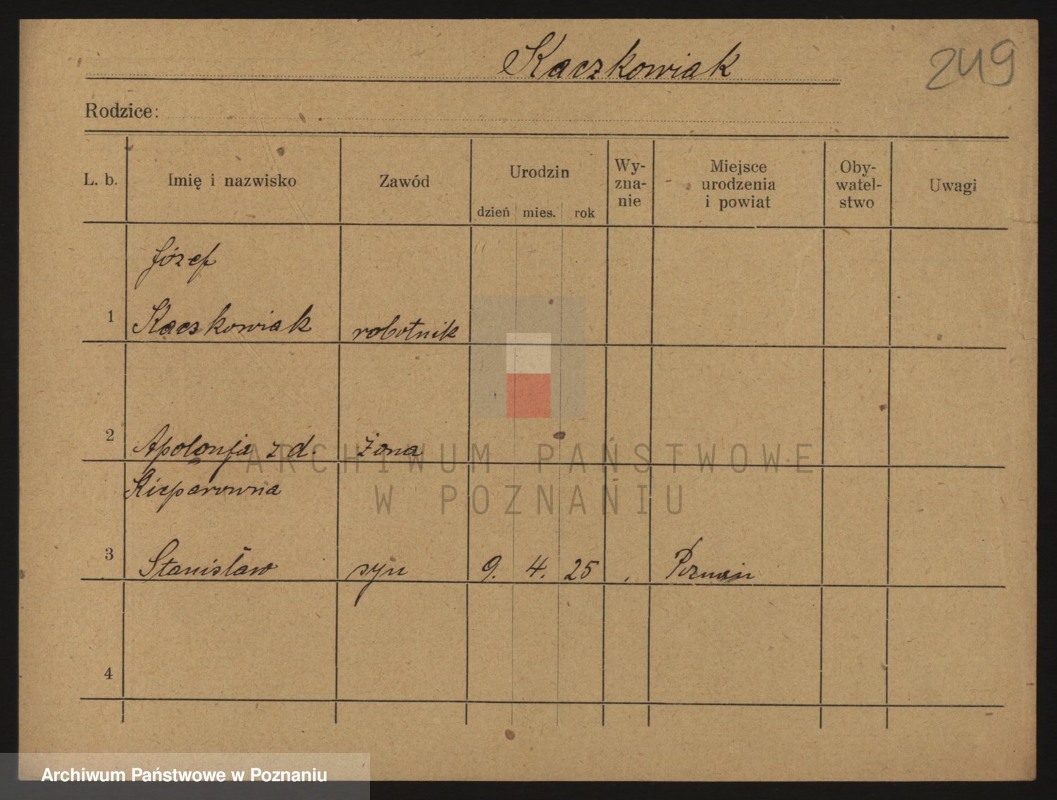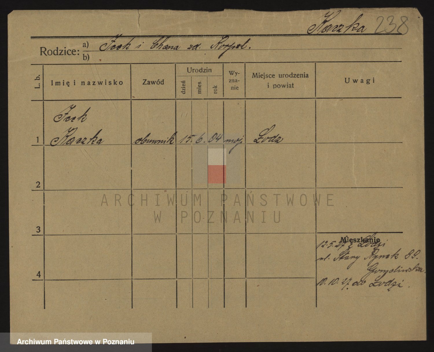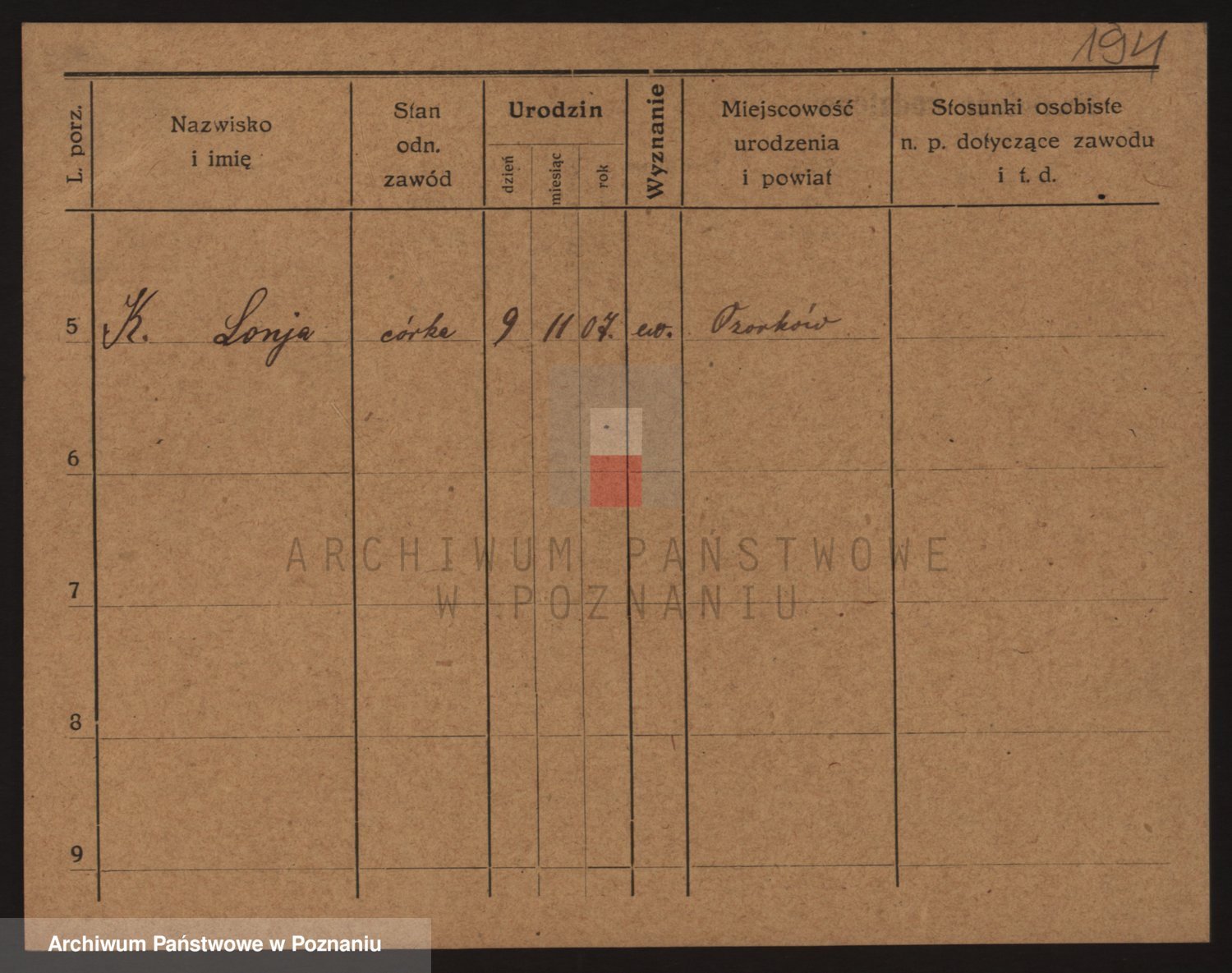 Podgląd karty osobowej dostępny jest po kliknięciu na nazwisko lub ikonkę karty. Można dokonywać powiększenia (ikony na górze) lub przechodzić między kolejnymi skanami (strzałki po bokach).