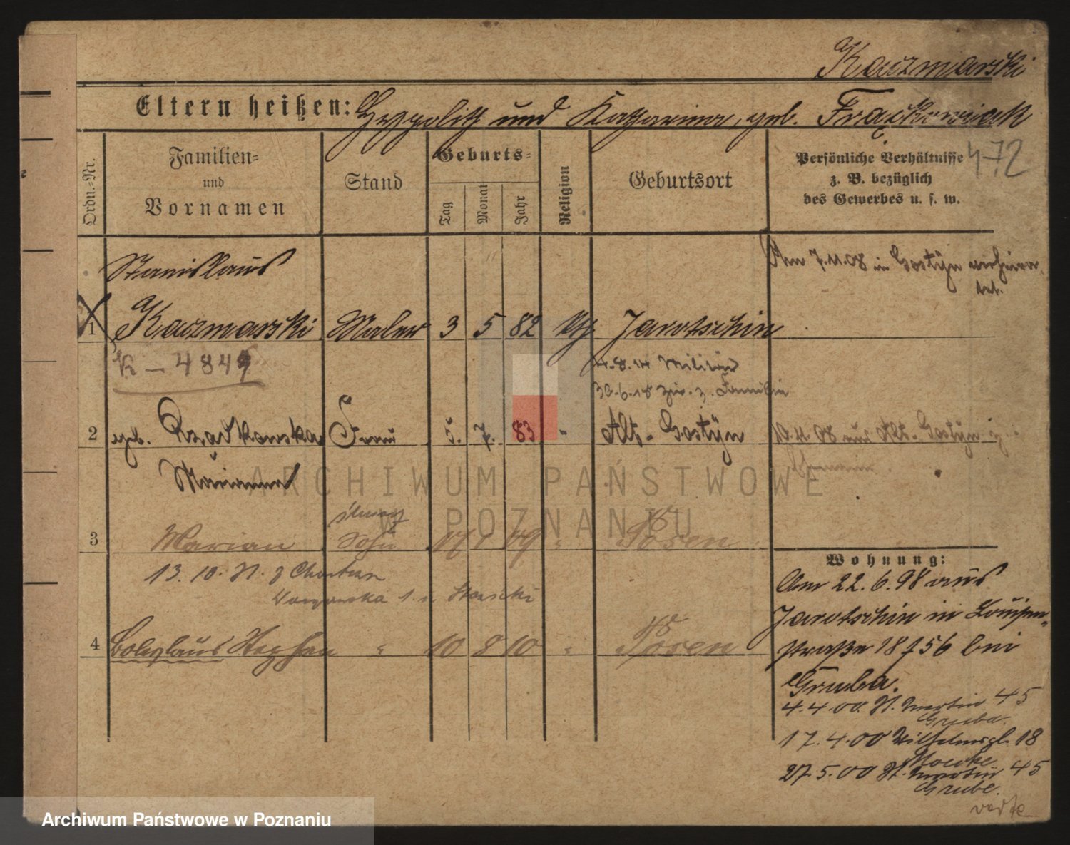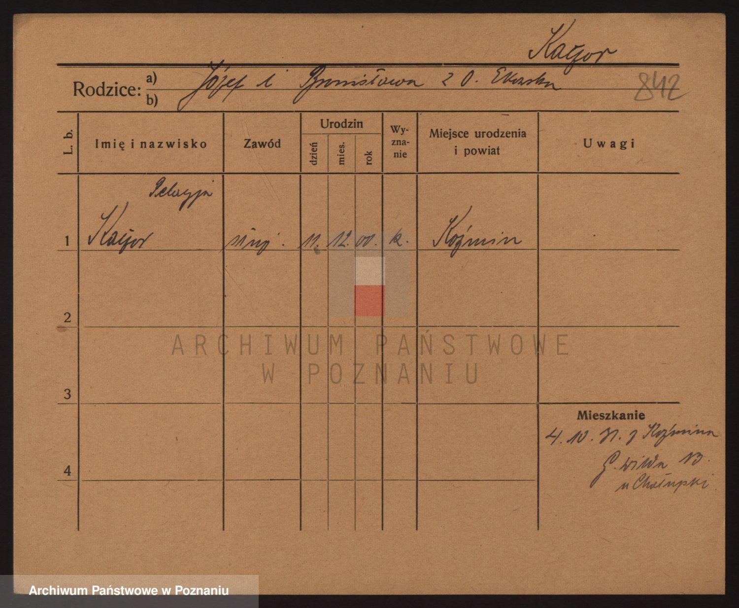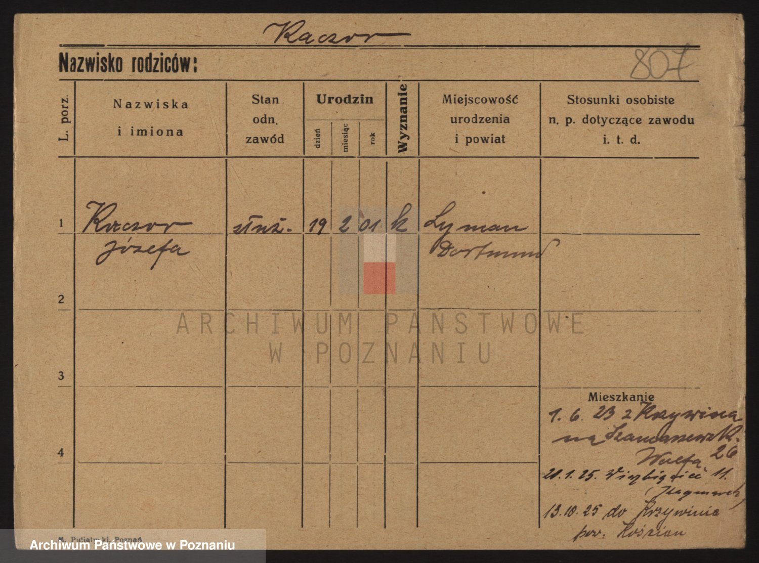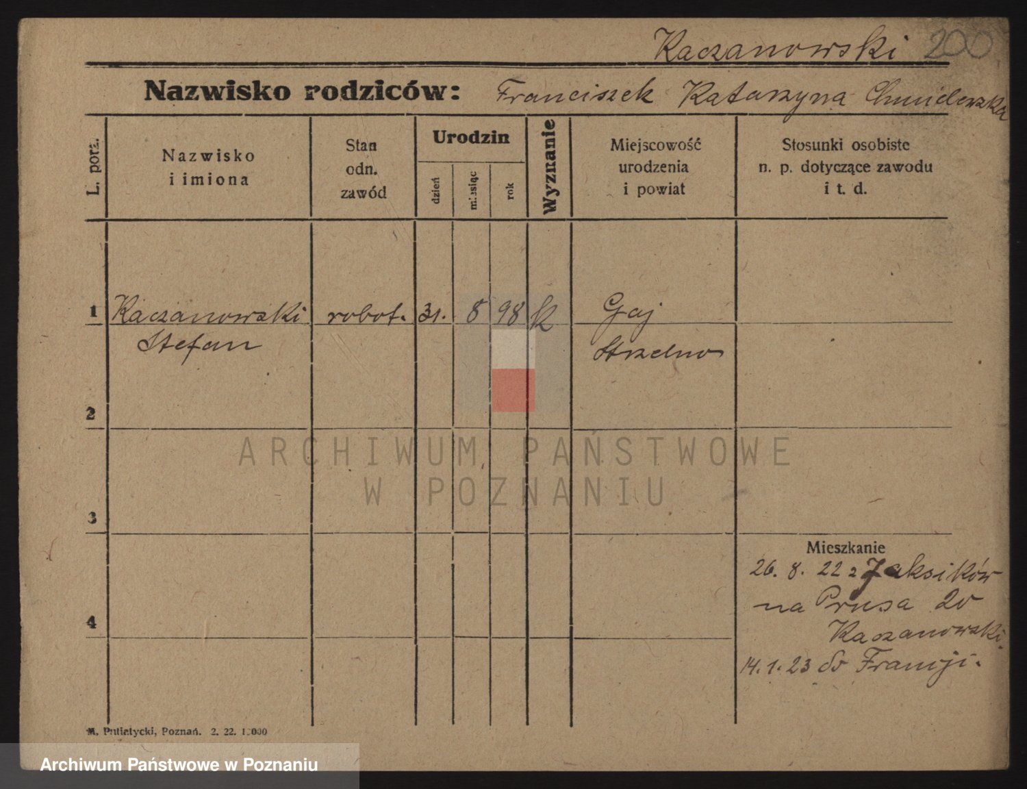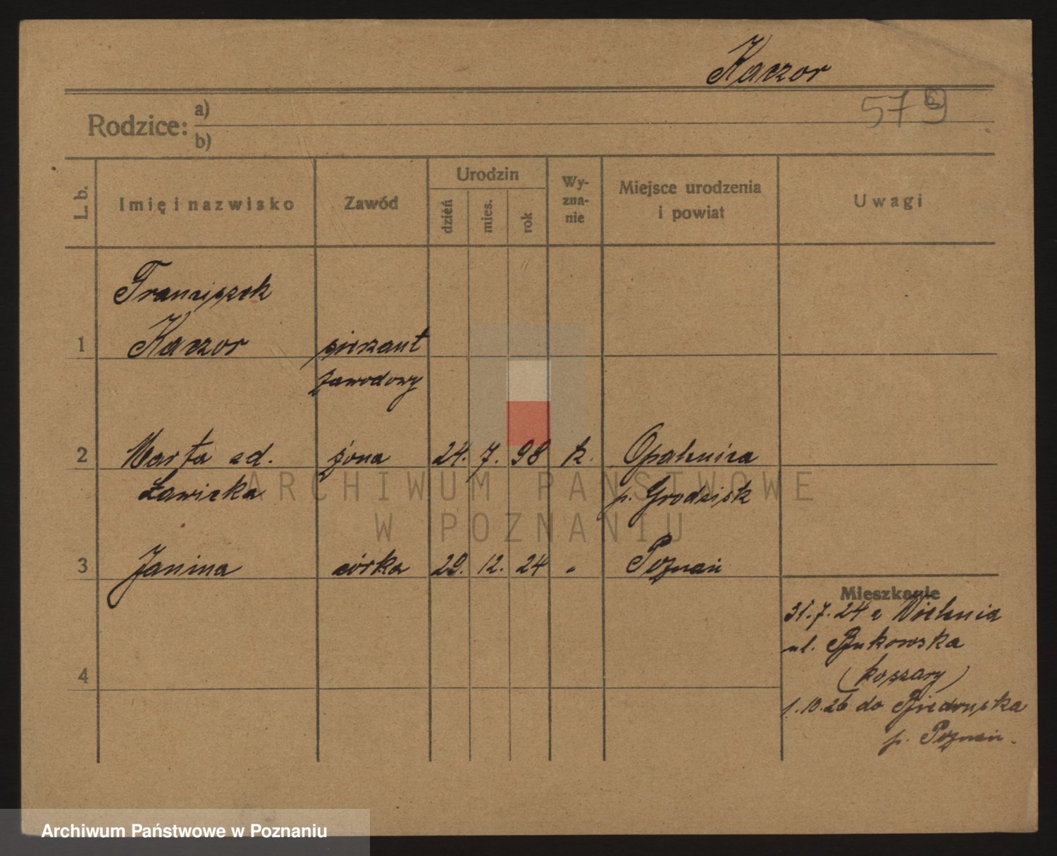 Podgląd karty osobowej dostępny jest po kliknięciu na nazwisko lub ikonkę karty. Można dokonywać powiększenia (ikony na górze) lub przechodzić między kolejnymi skanami (strzałki po bokach).