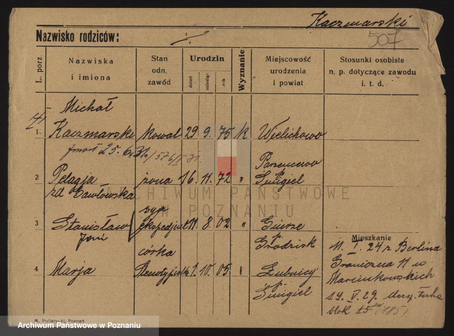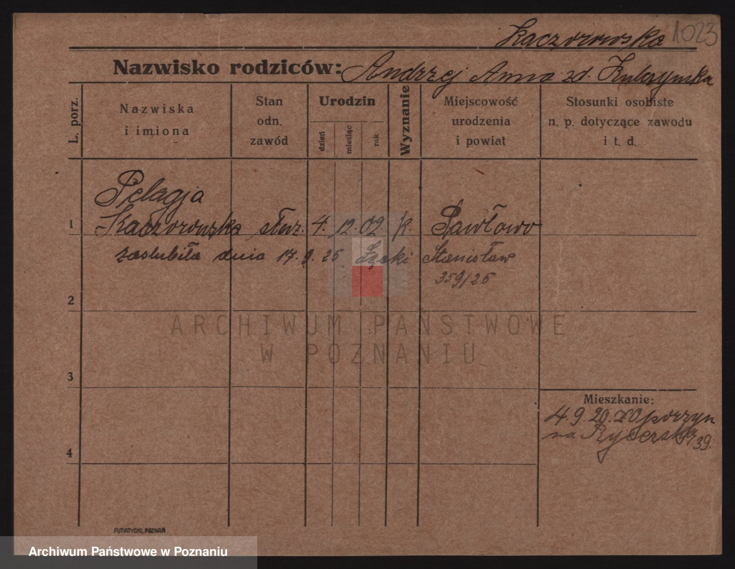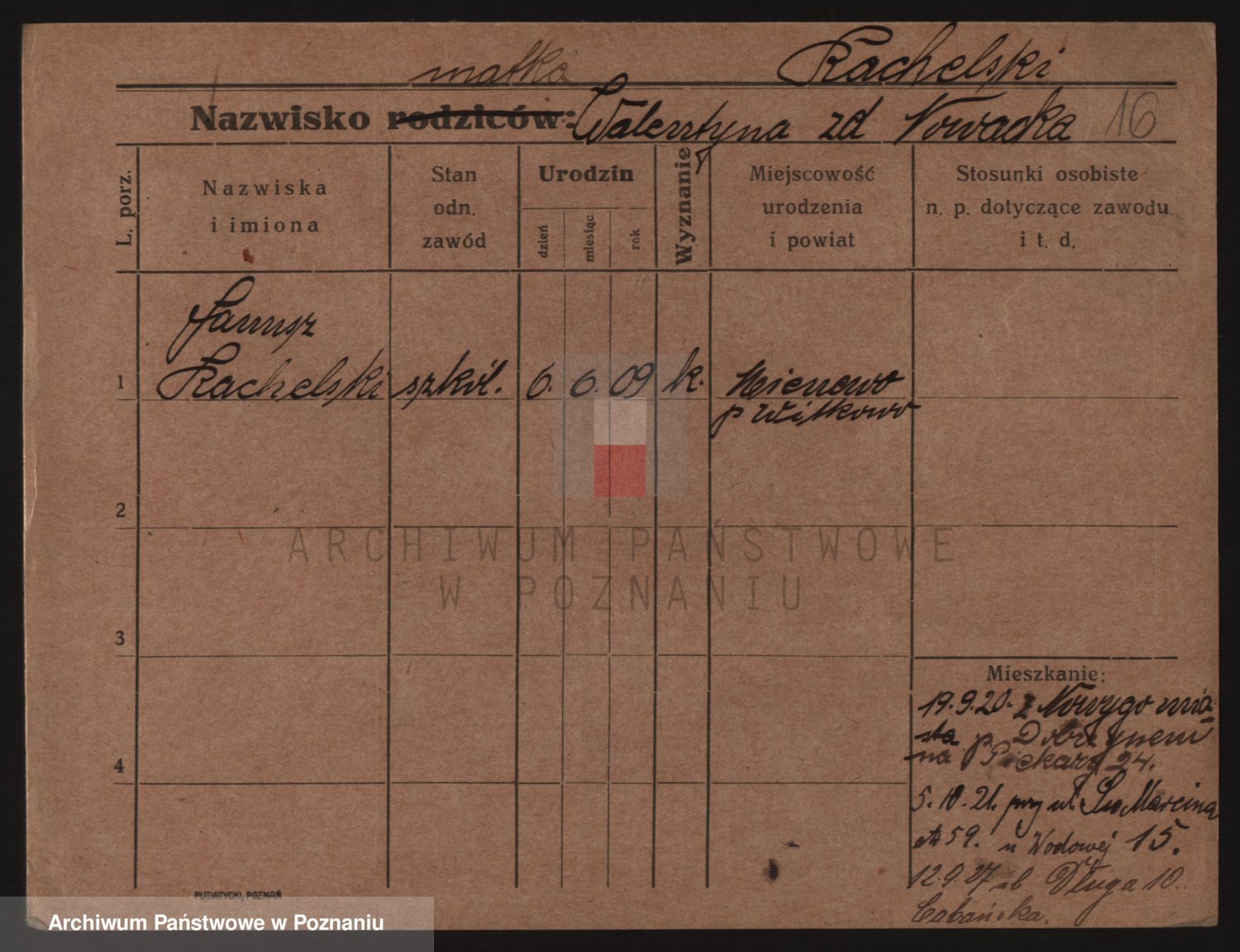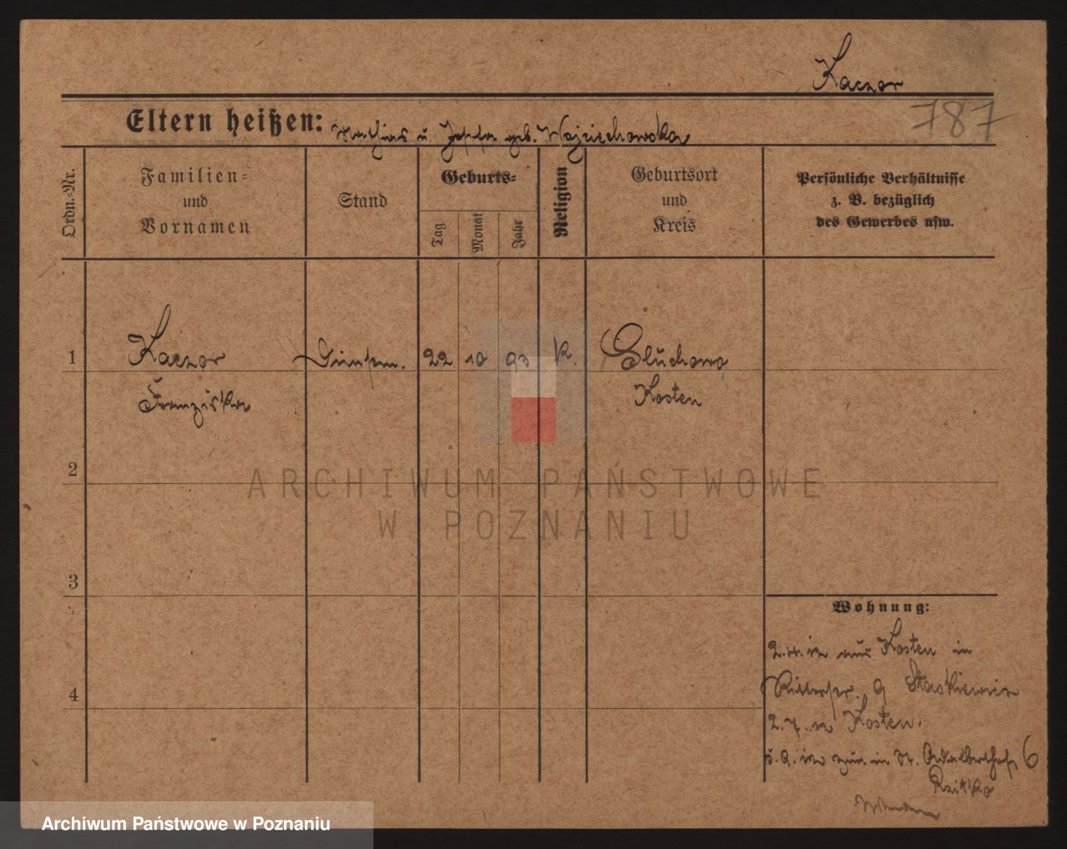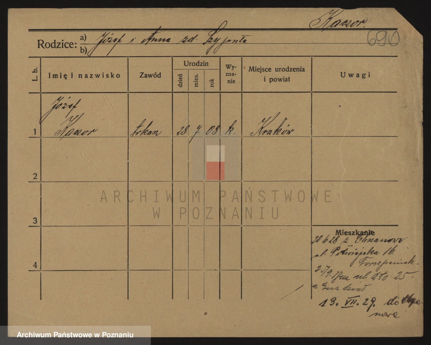 Podgląd karty osobowej dostępny jest po kliknięciu na nazwisko lub ikonkę karty. Można dokonywać powiększenia (ikony na górze) lub przechodzić między kolejnymi skanami (strzałki po bokach).