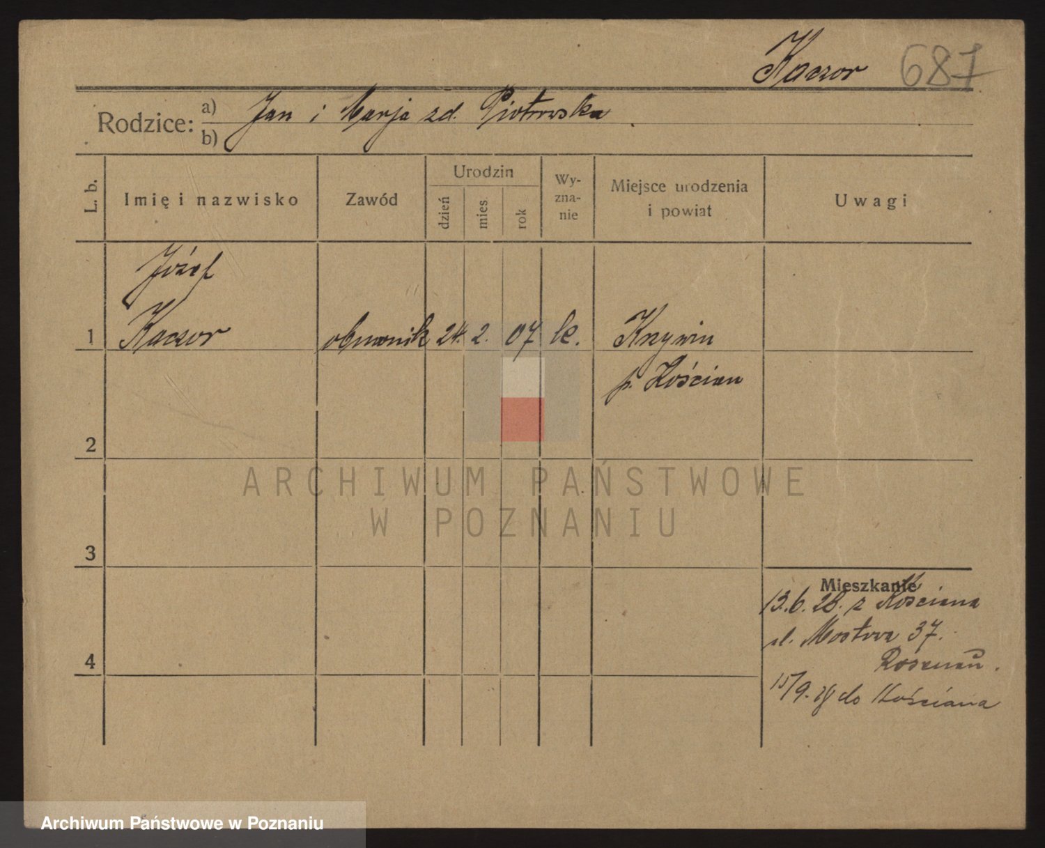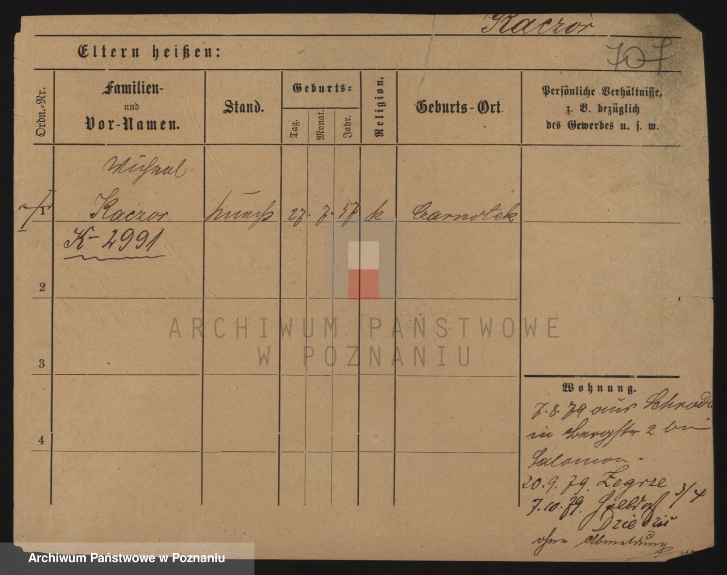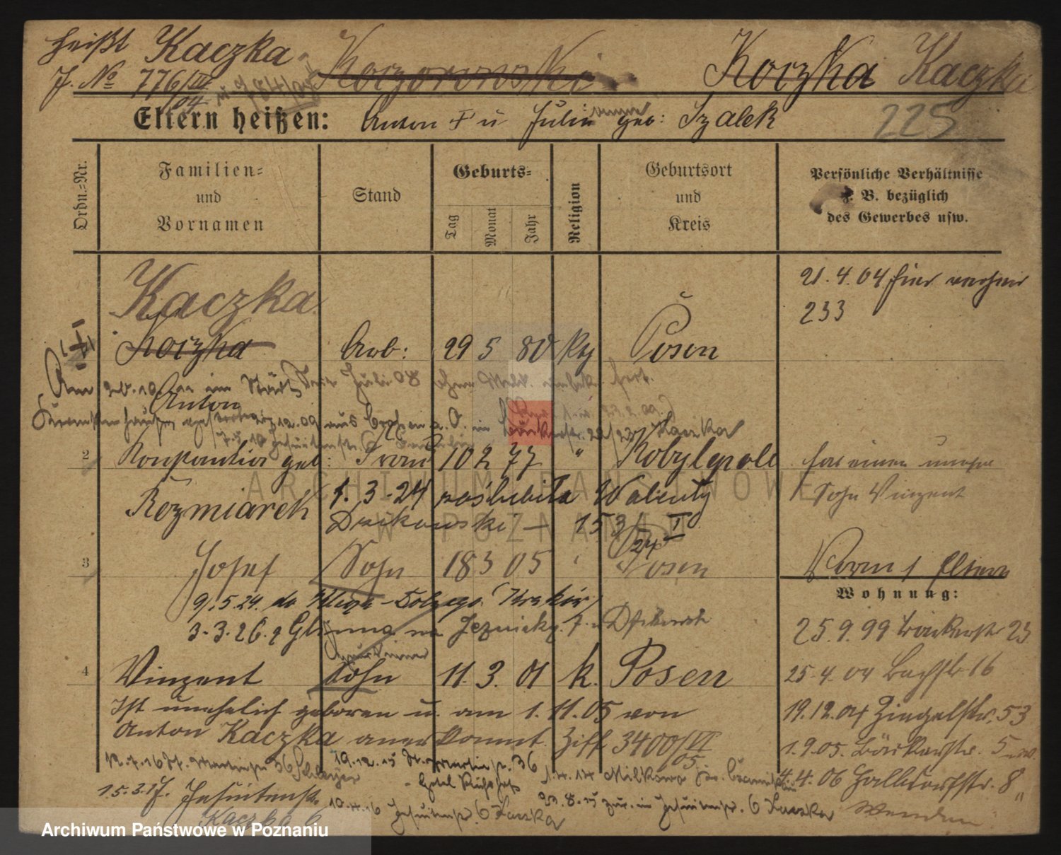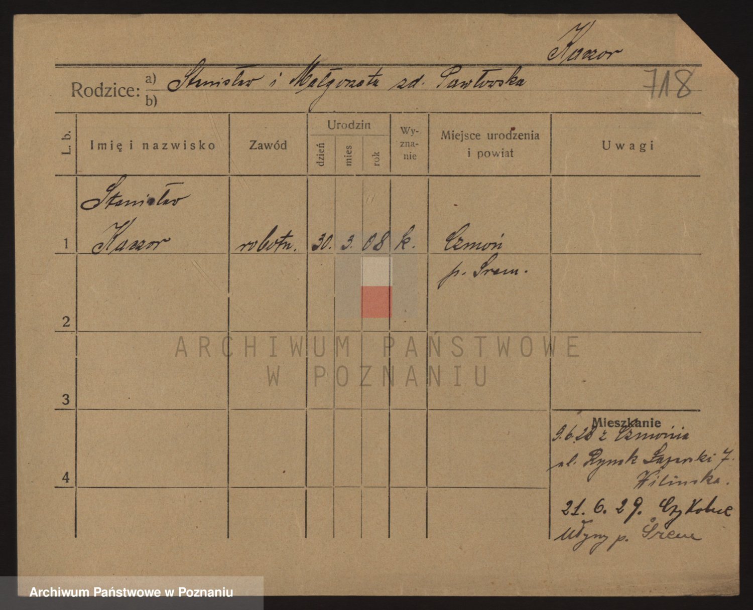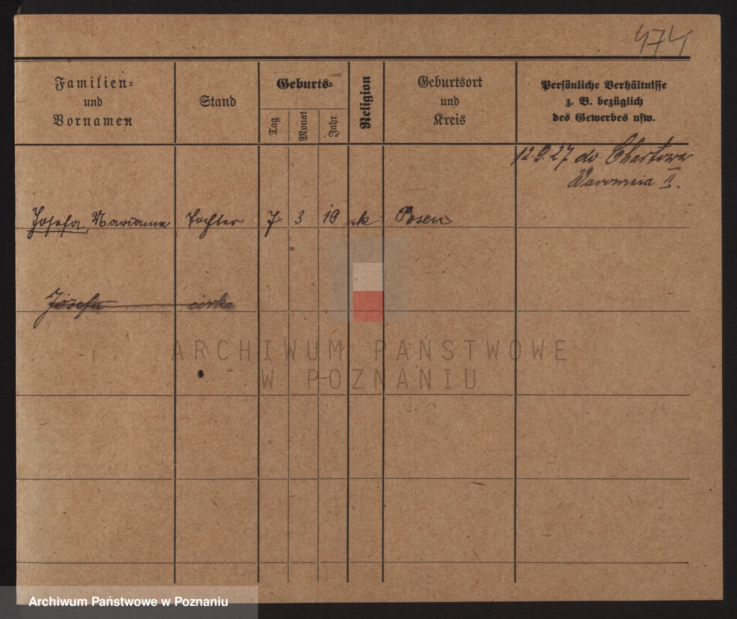 Podgląd karty osobowej dostępny jest po kliknięciu na nazwisko lub ikonkę karty. Można dokonywać powiększenia (ikony na górze) lub przechodzić między kolejnymi skanami (strzałki po bokach).