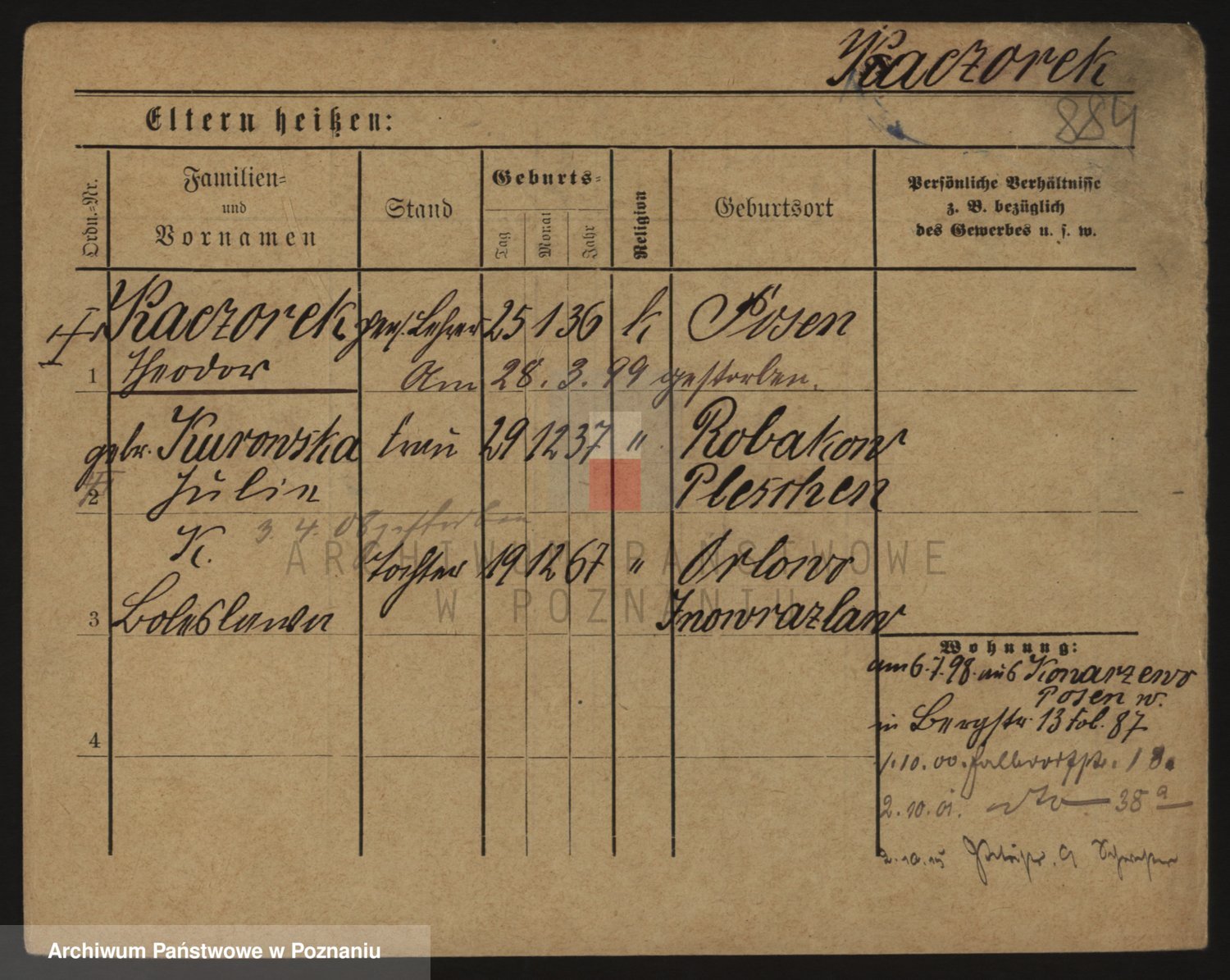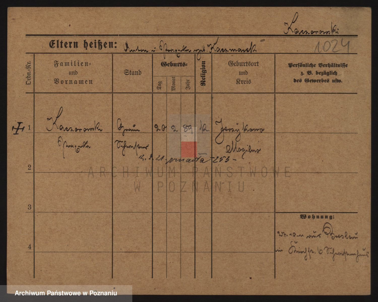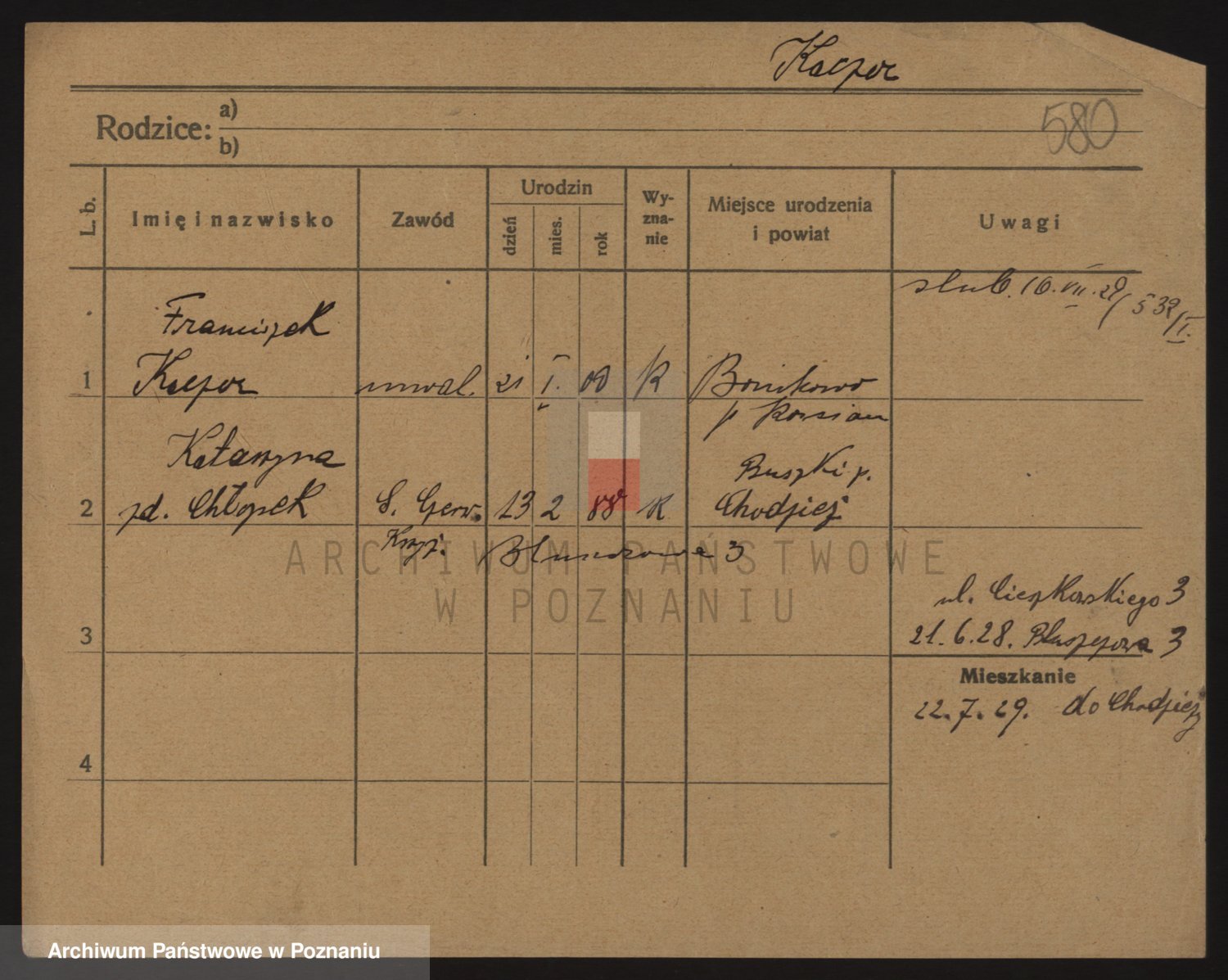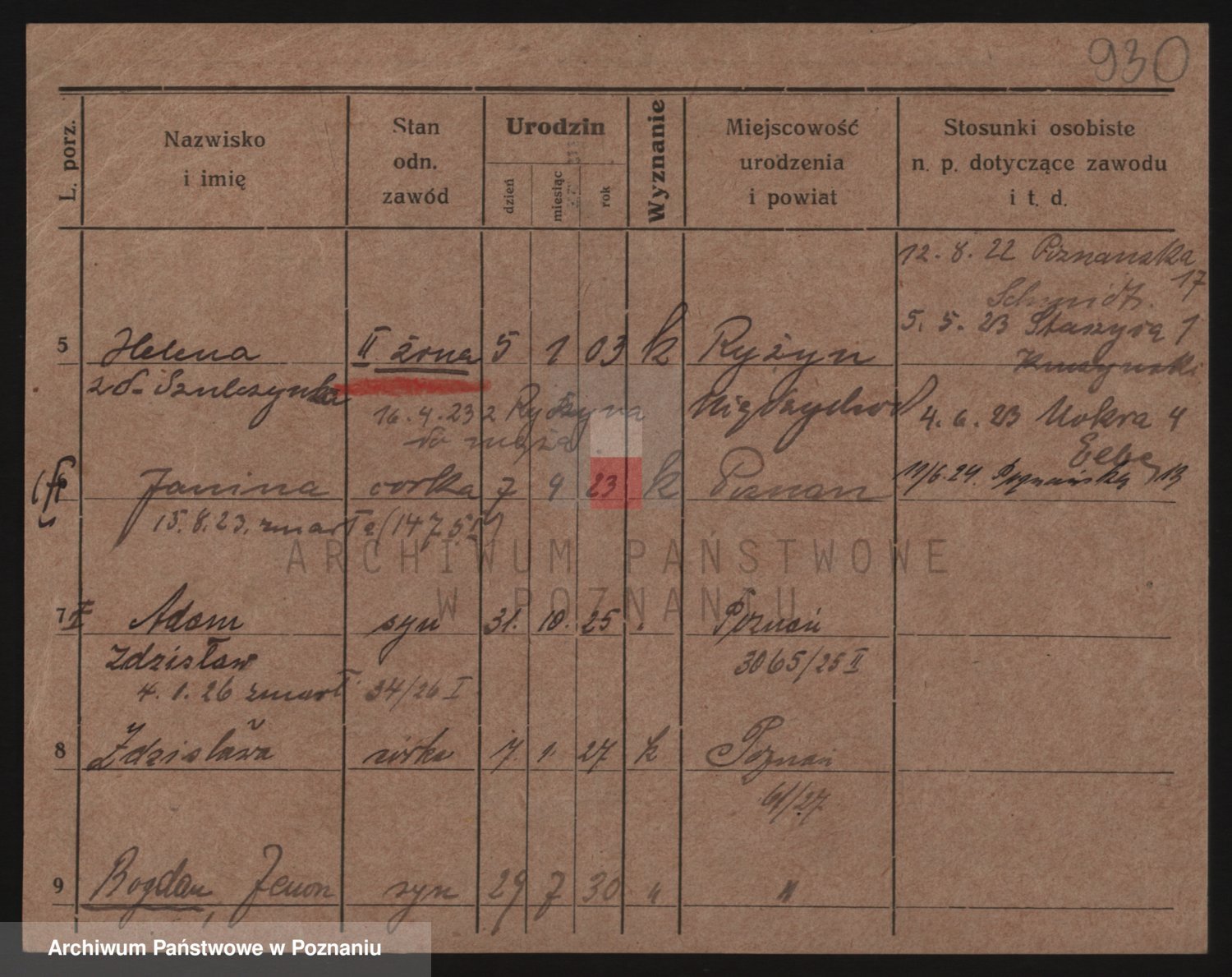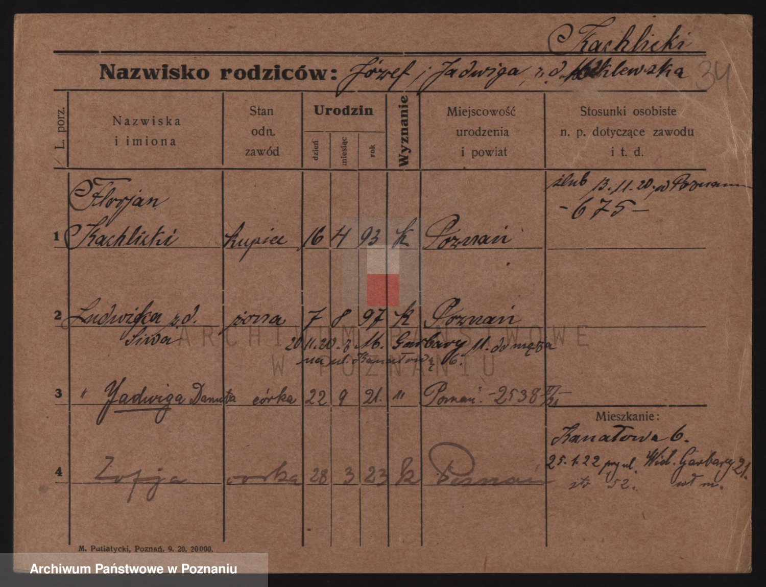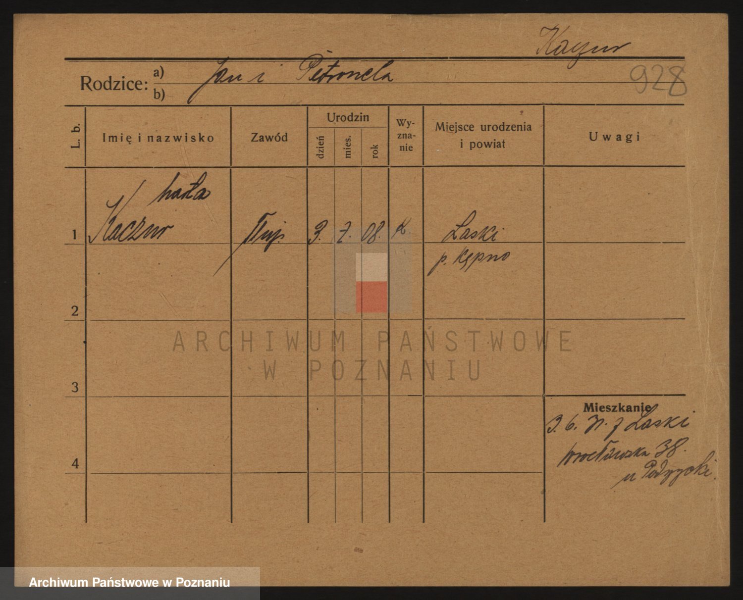 Podgląd karty osobowej dostępny jest po kliknięciu na nazwisko lub ikonkę karty. Można dokonywać powiększenia (ikony na górze) lub przechodzić między kolejnymi skanami (strzałki po bokach).