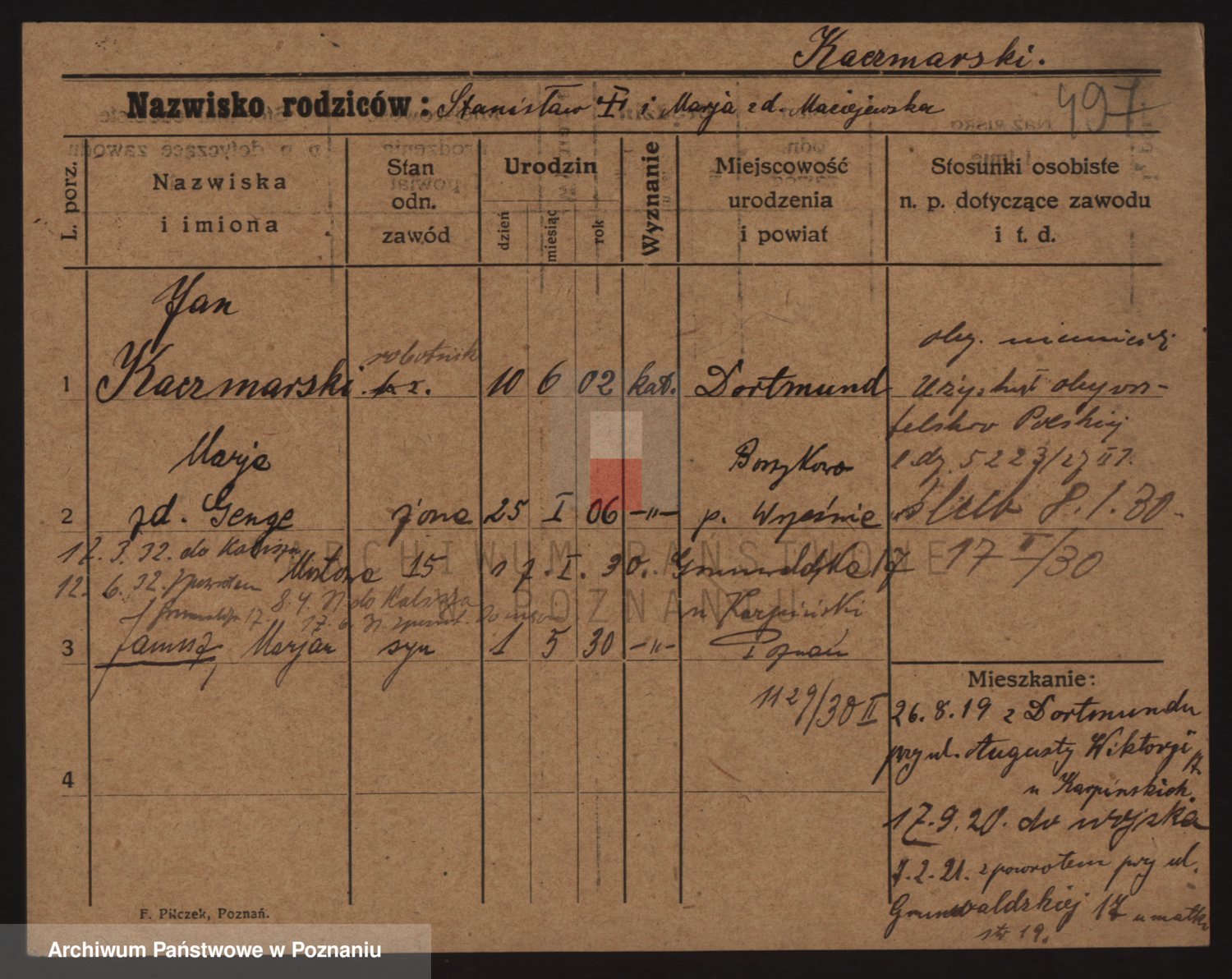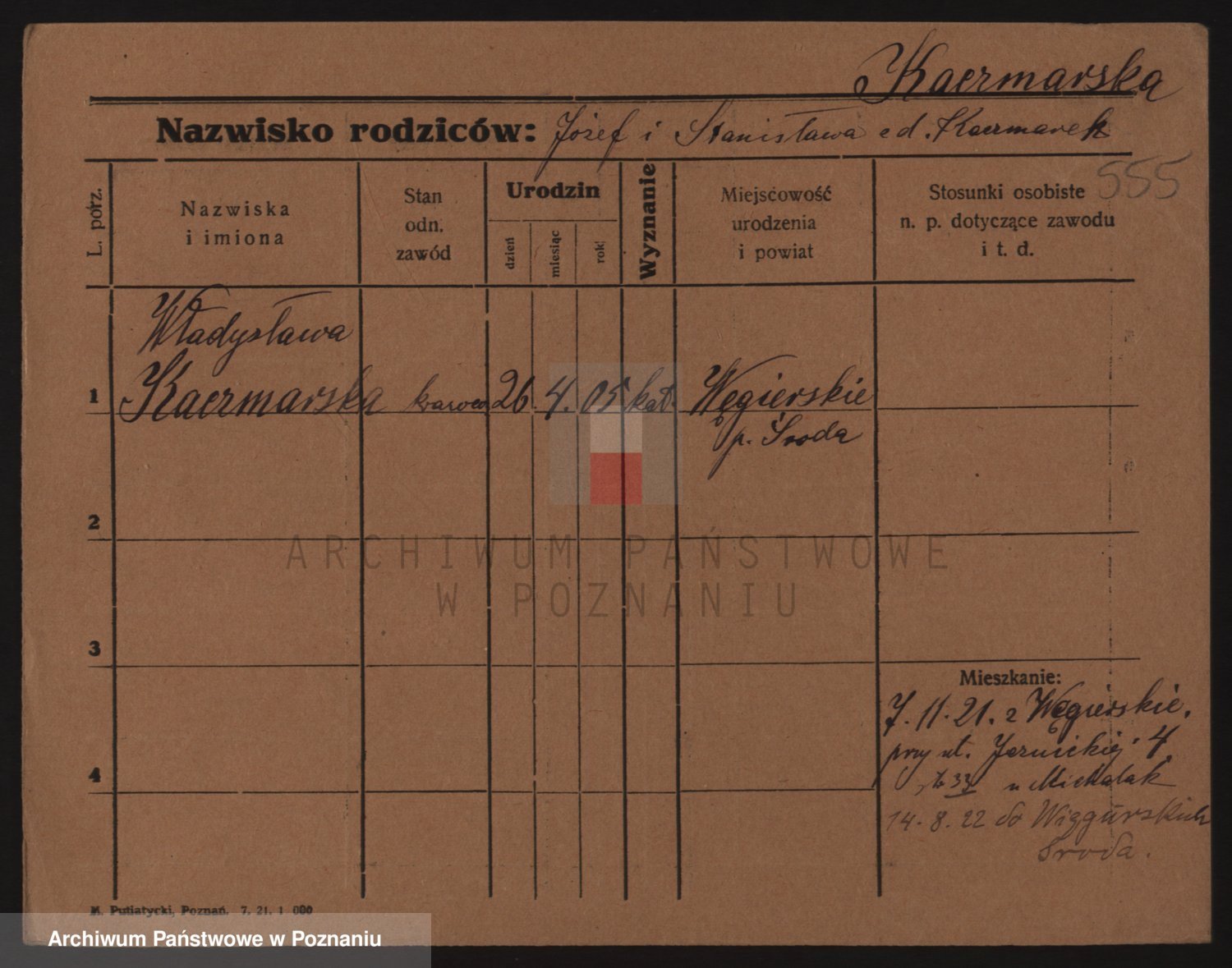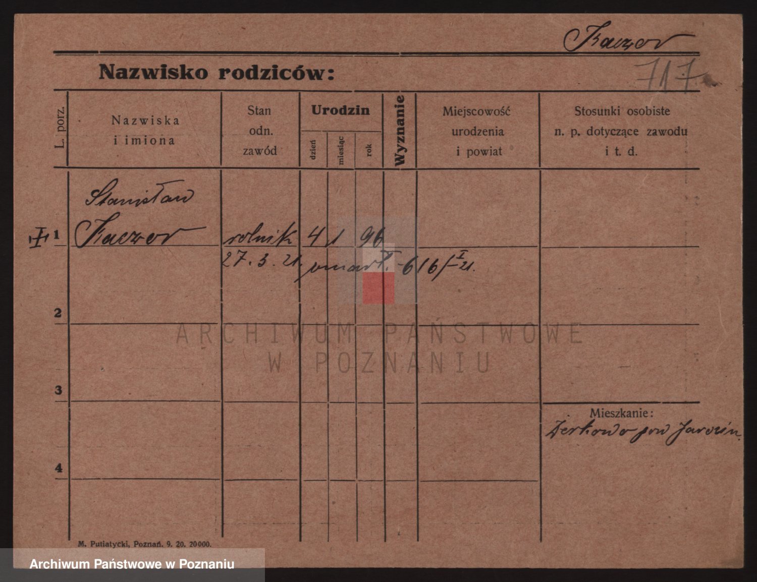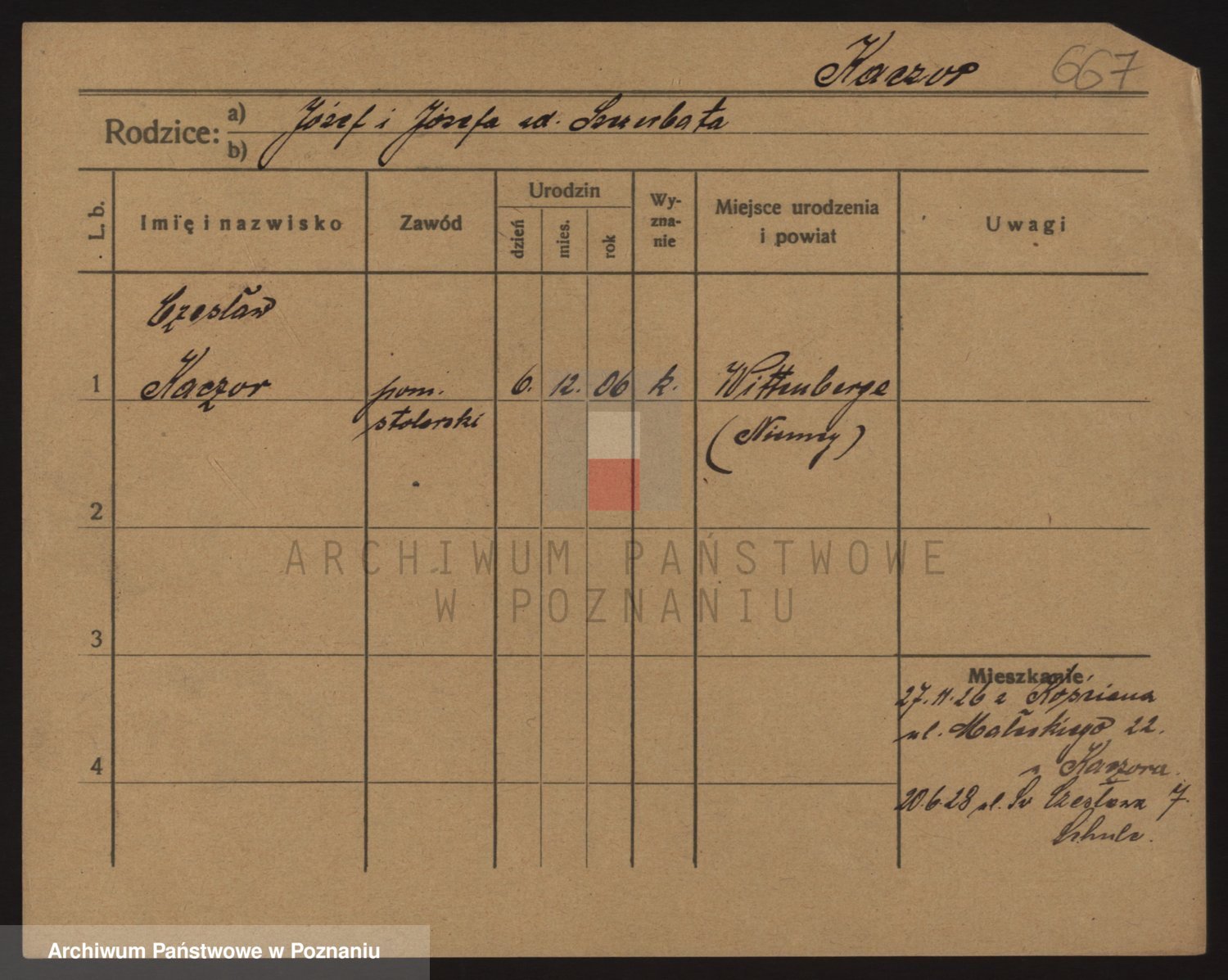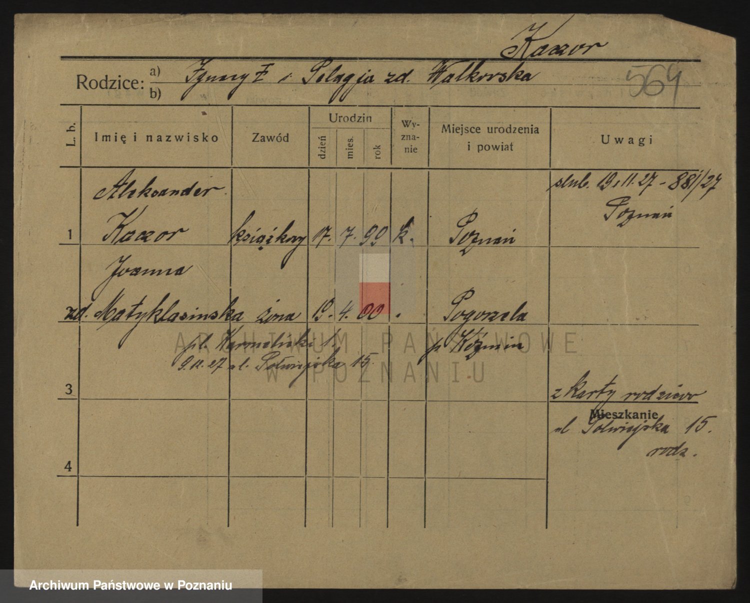 Podgląd karty osobowej dostępny jest po kliknięciu na nazwisko lub ikonkę karty. Można dokonywać powiększenia (ikony na górze) lub przechodzić między kolejnymi skanami (strzałki po bokach).