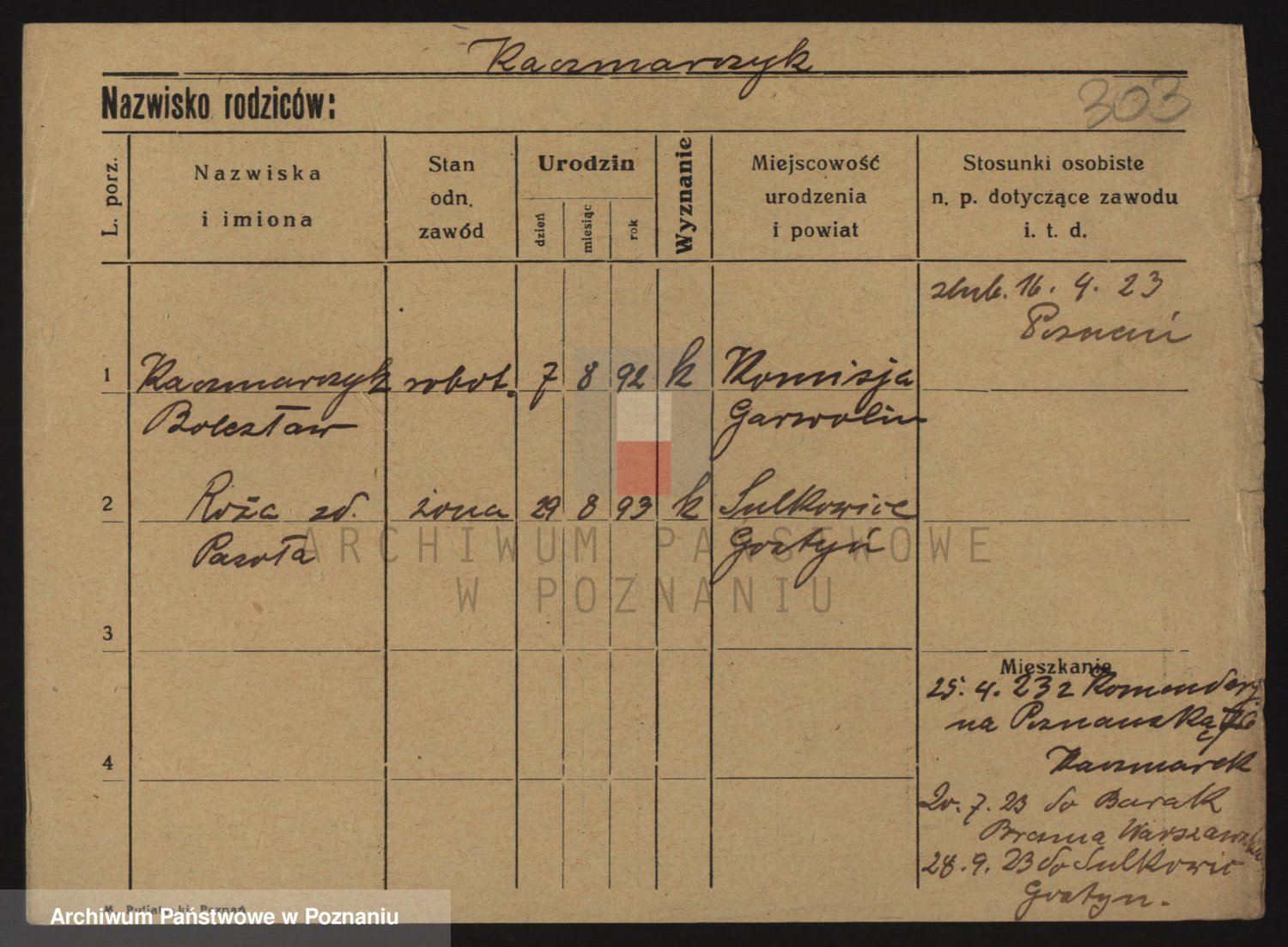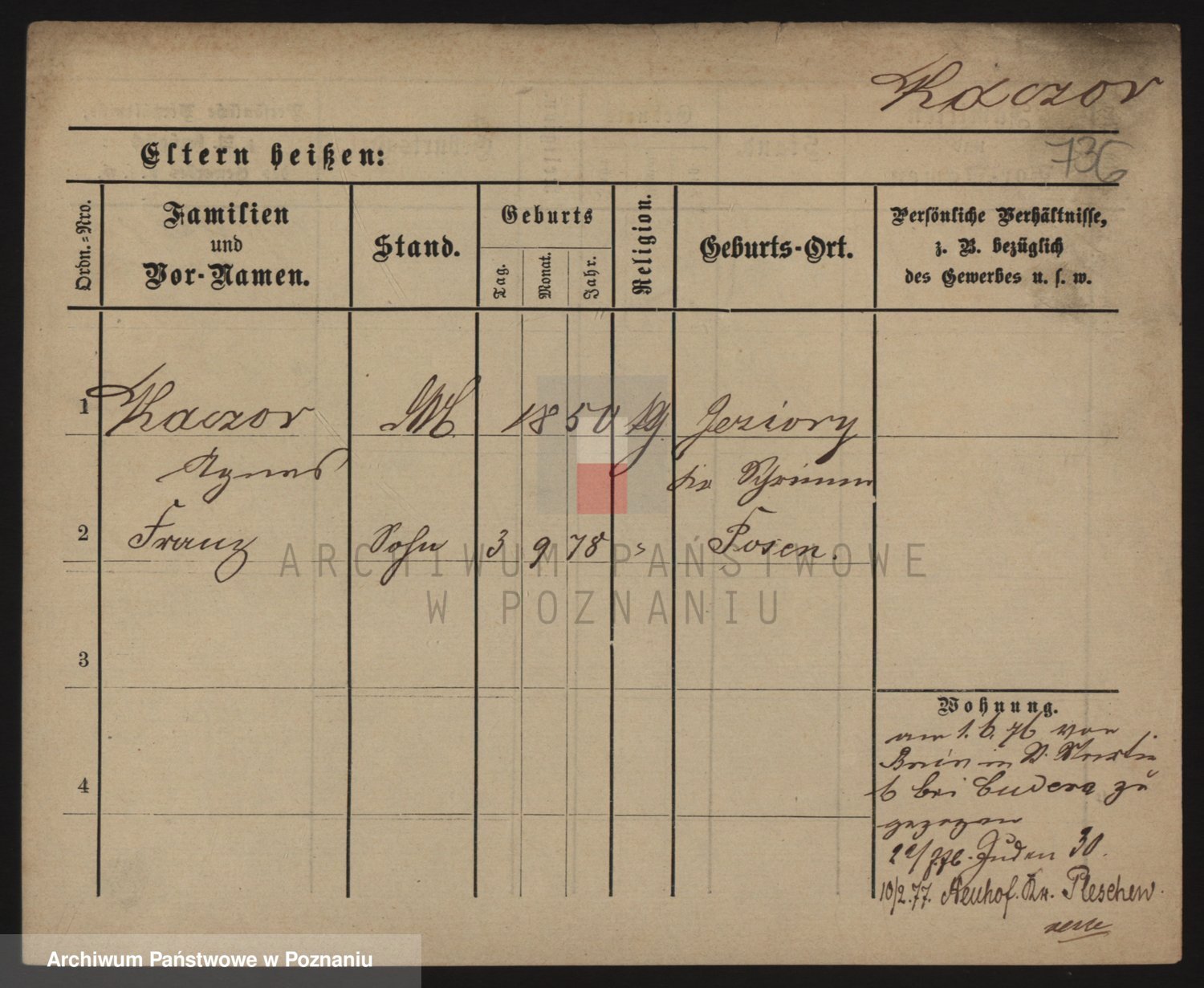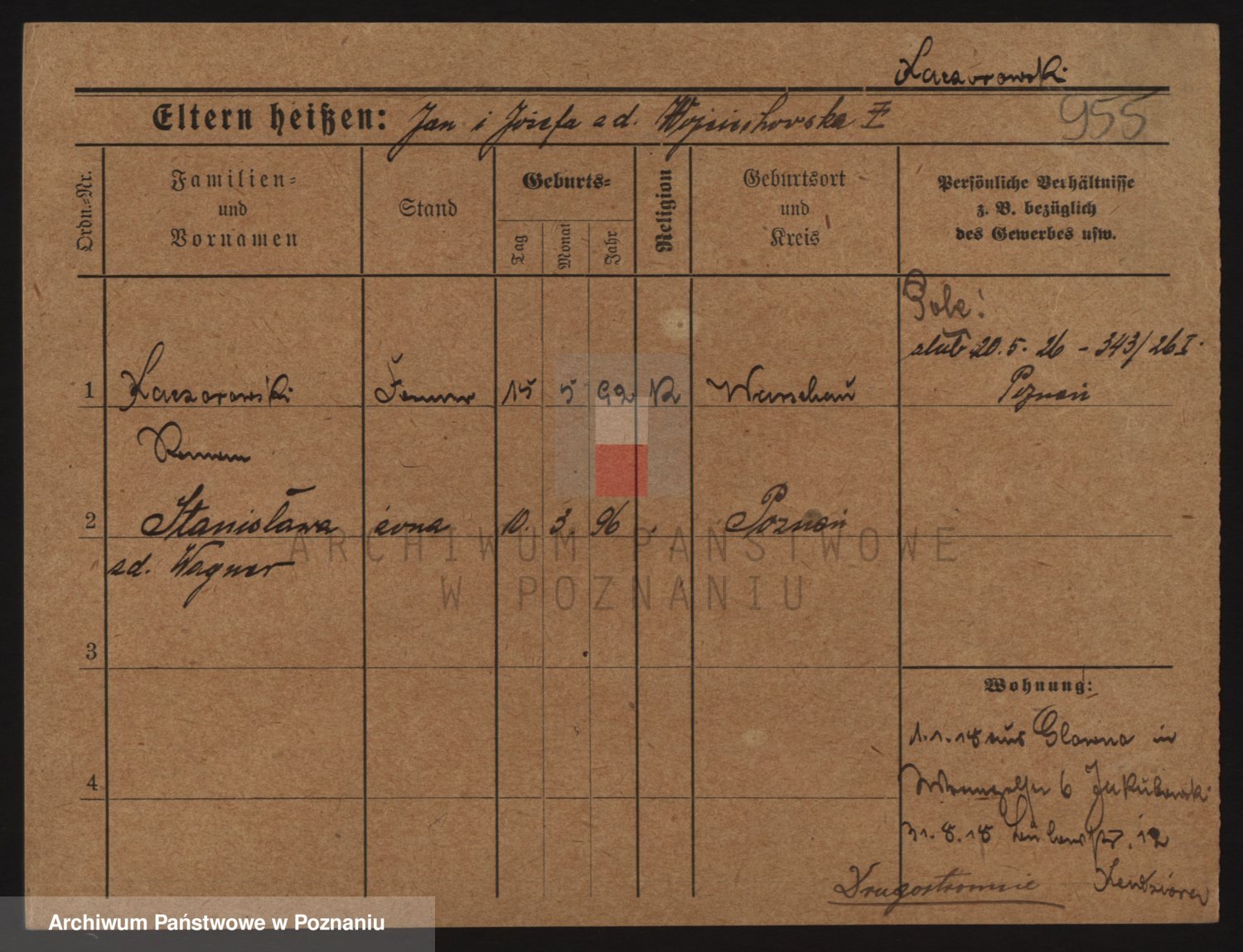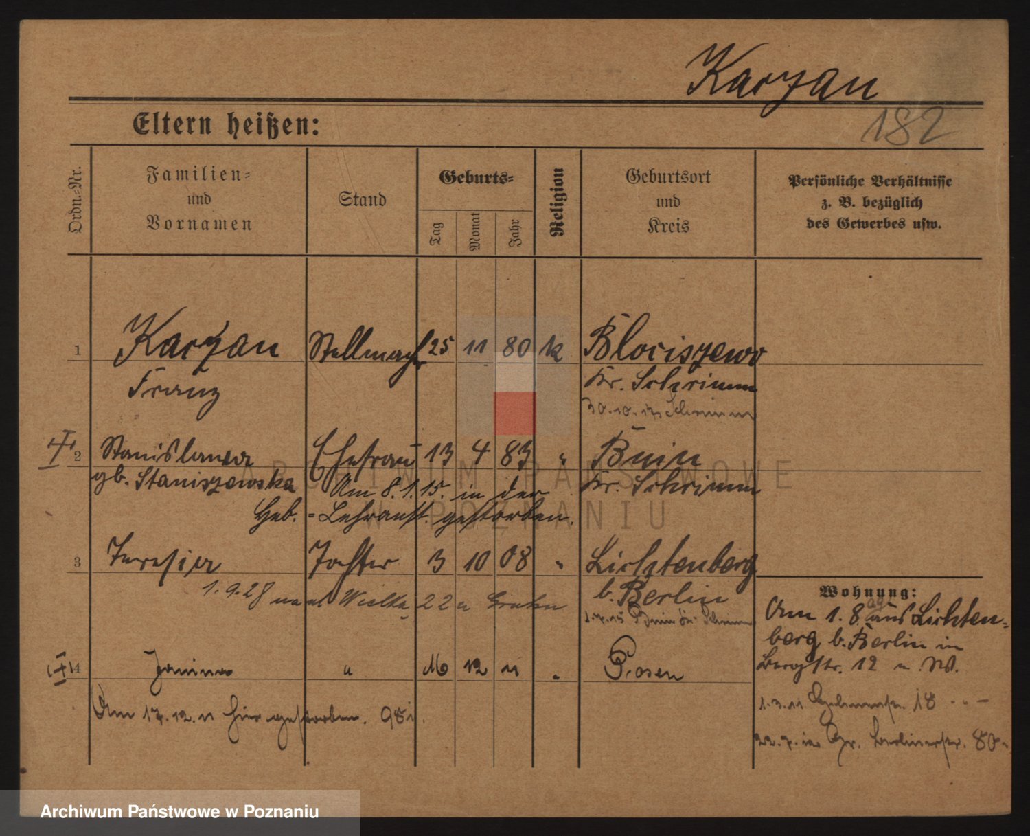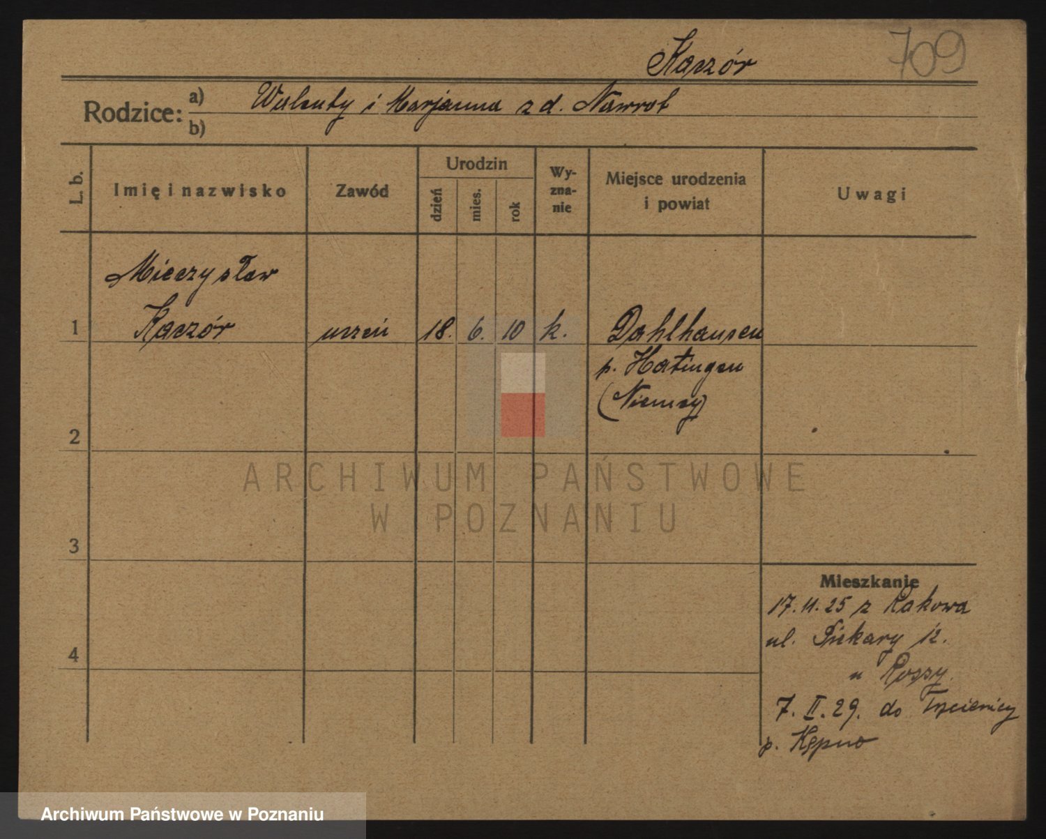 Podgląd karty osobowej dostępny jest po kliknięciu na nazwisko lub ikonkę karty. Można dokonywać powiększenia (ikony na górze) lub przechodzić między kolejnymi skanami (strzałki po bokach).