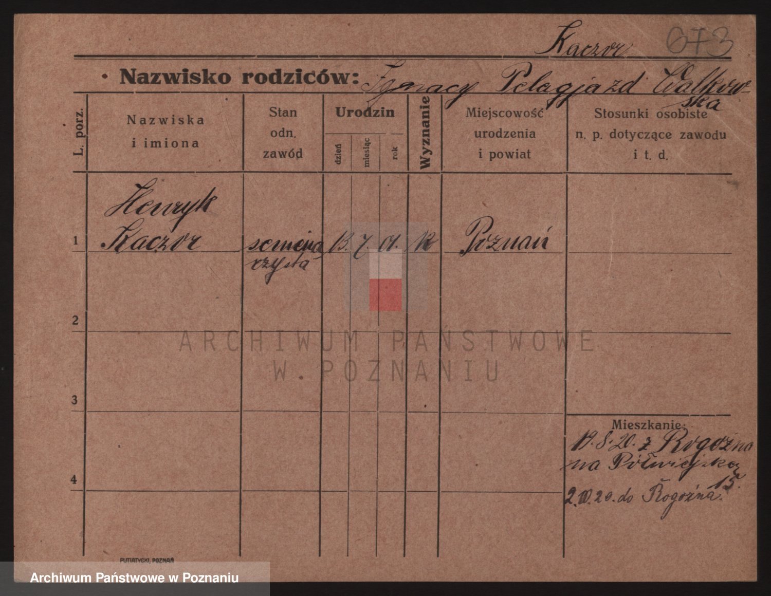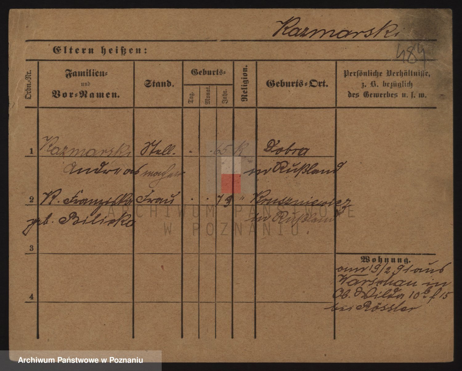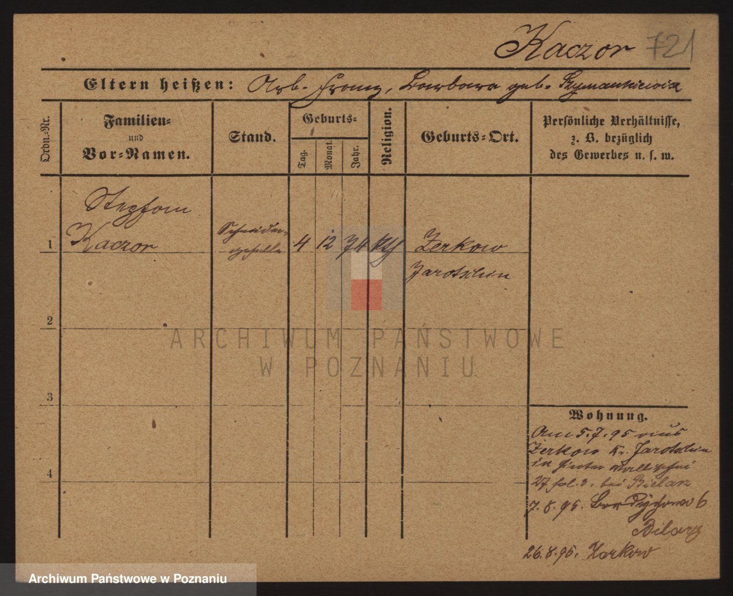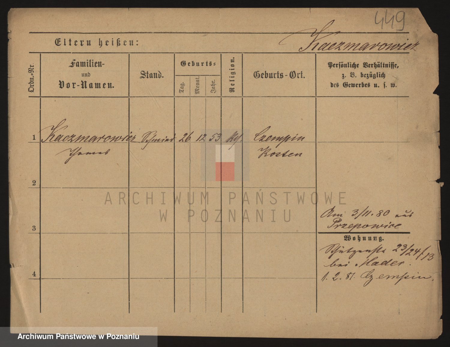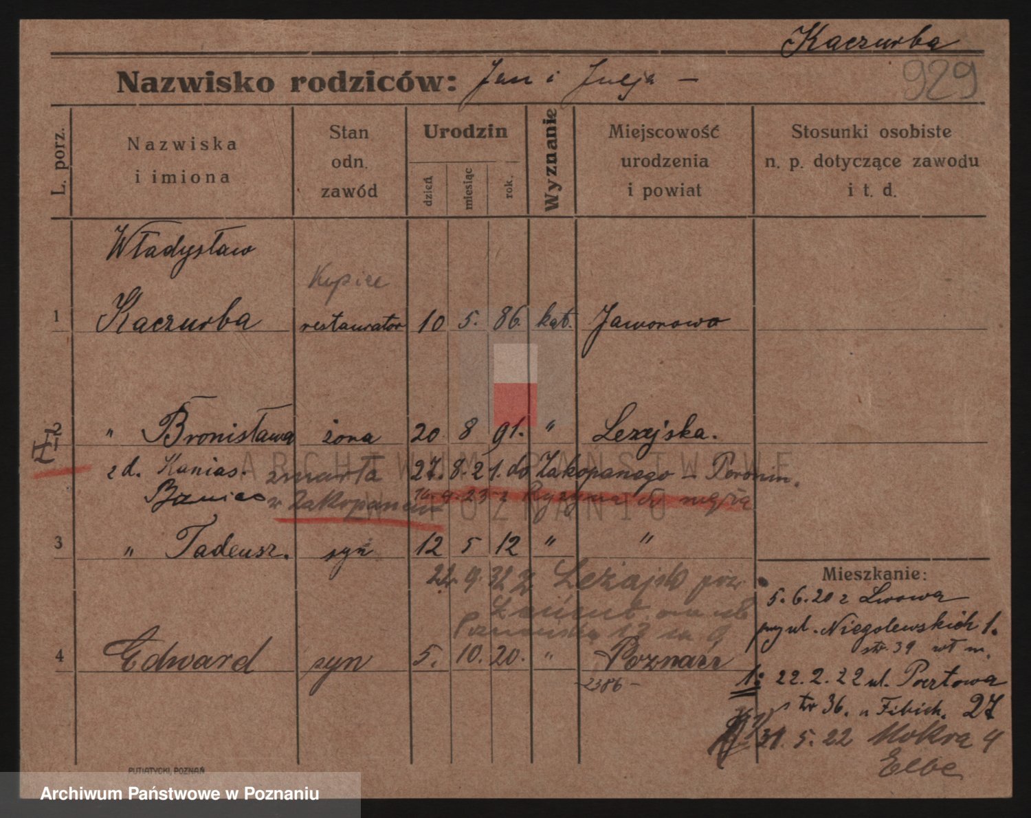 Podgląd karty osobowej dostępny jest po kliknięciu na nazwisko lub ikonkę karty. Można dokonywać powiększenia (ikony na górze) lub przechodzić między kolejnymi skanami (strzałki po bokach).