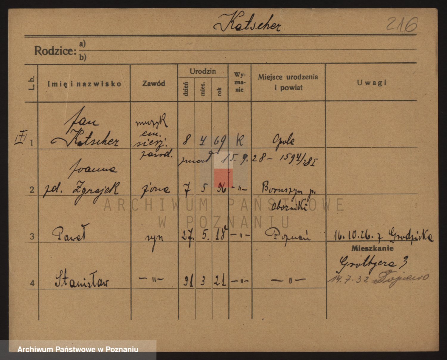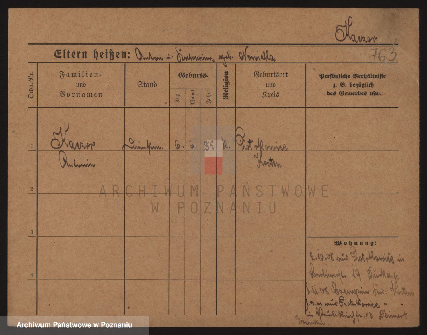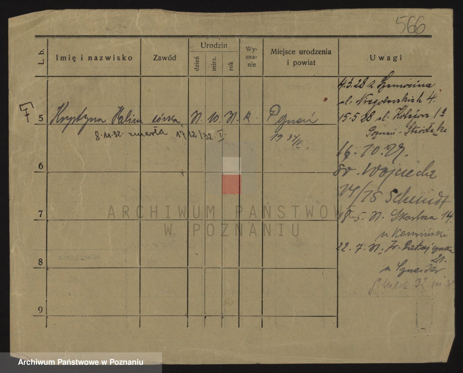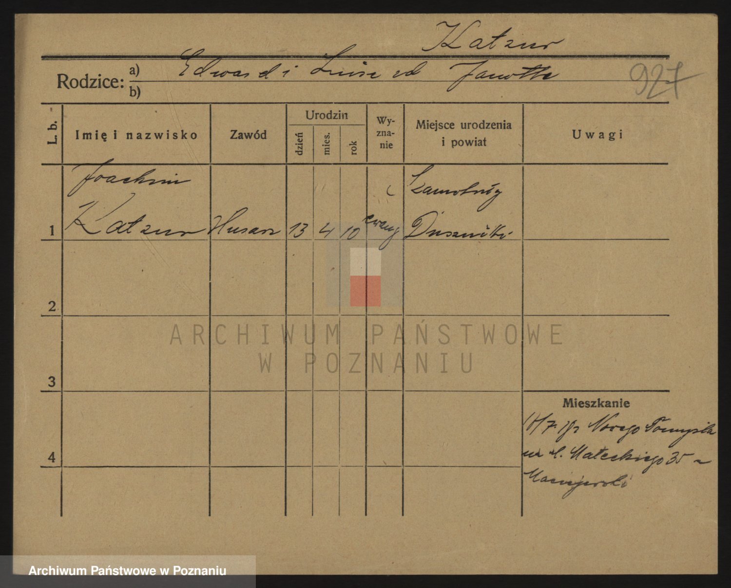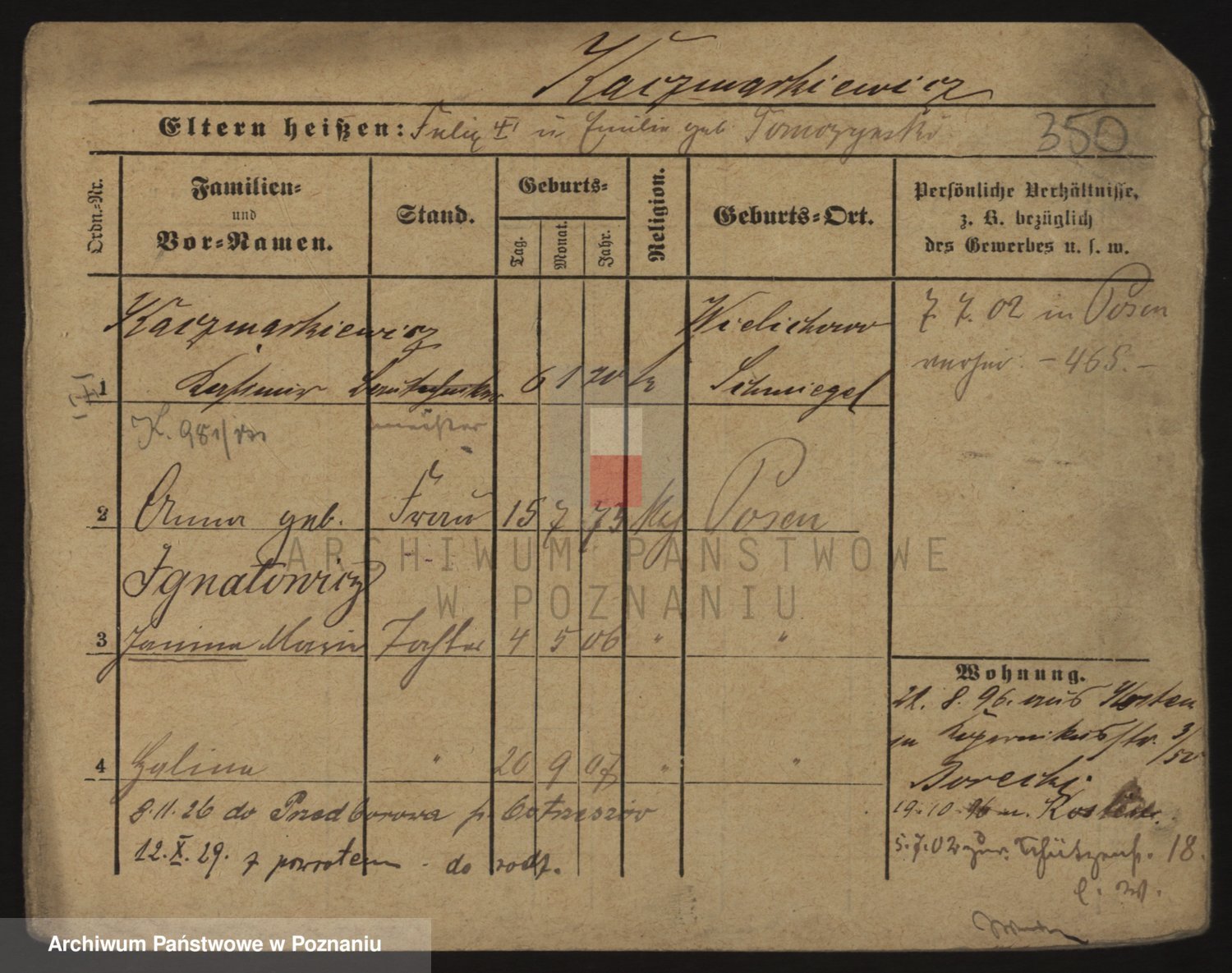 Podgląd karty osobowej dostępny jest po kliknięciu na nazwisko lub ikonkę karty. Można dokonywać powiększenia (ikony na górze) lub przechodzić między kolejnymi skanami (strzałki po bokach).